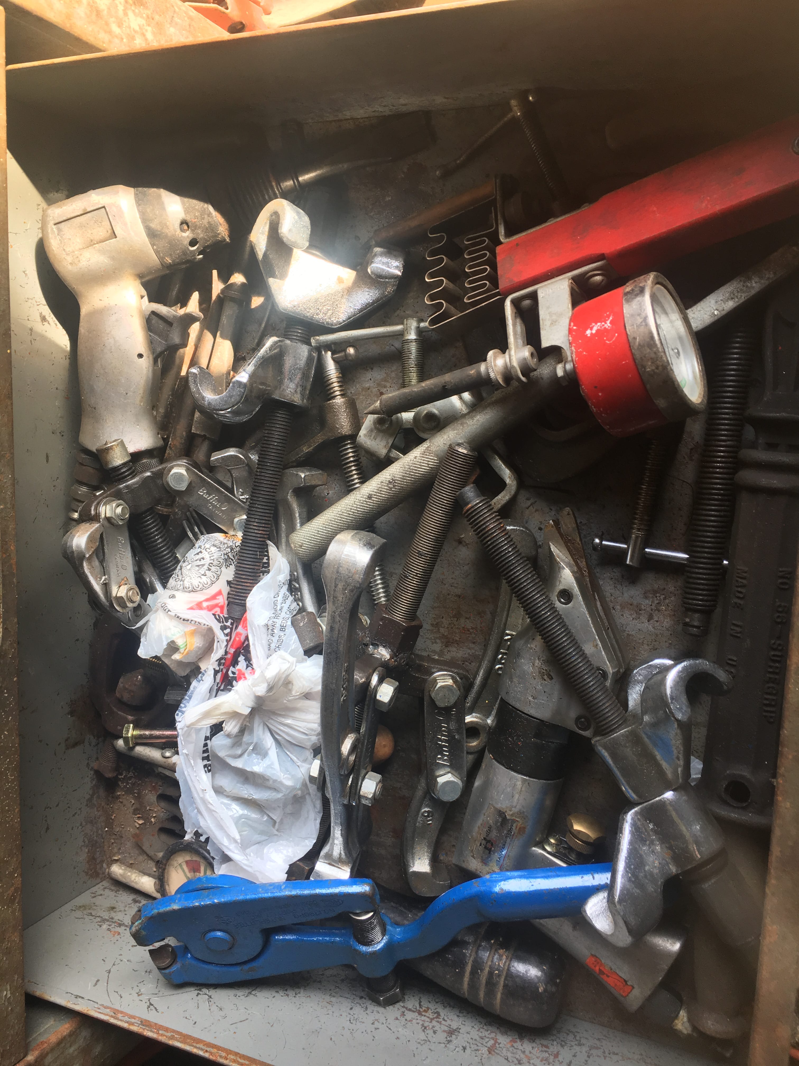 ANTIQUES . VINTAGE ELECTRONICS . PINBALL MACHINE. GUN RELOADING EQUIP. HOUSEHOLD Duncan Phyfe Drop Leaf Table & Chairs; Iron Bed; Retro Office Chair; Index Cabinet; Antique Air Compressor; Wood Organizer; GE Electric Clock; Weston Direct Current Voltmeter in Wood Case; Binks Gauge; Gra-Lab Universal Darkroom Timer; Cabinet Stereo; Vintage Microphone; Electro-Brand Portable Radio; Realistic TRC-415; Vintage Luggage; Army Cot; Torch; Antique Tools; Drill Presses; Hand Saws; 1 Btm. Plow; Coca-Cola Opener; Nut Dispenser; Railroad Switch Light; Pitcher Pump; Canning Jars; Kitchen Primitives; Oilers; Galvanized Tubs, Buckets, Sprinkling Cans; Double Wash Tub; Set of Lockers; Wonder Wizard Demolition Derby Pinball Machine; School Desk; Kids Chalkboard; Toy Cash Register; Tonka & Farm Toys inc. Farmall, Ford, Tru Scale, Huskee; Croquet Set; Ross Apollo Tricycle; Gun Reloaders; Reloading Supplies; Scales; Gun Value Books; Fishing Poles; Bow; HOUSEHOLD: Recliners; Occ. Chairs; Coffee & End Tables; Desks; File Cabinets; Metal Storage Cabinet with Safe; Bookshelf; Pots, Pans, Dishes, Bakeware, Sm. Appliances; Luggage; Bedding & Linens; Montgomery Ward Sewing Machine; Electrolux Vacuum; Health Care Items; Kenmore Heater; Lamps & Mirrors; Pictures & Prints; Wind Chimes; Floral Arrangements; Home & Holiday Décor;