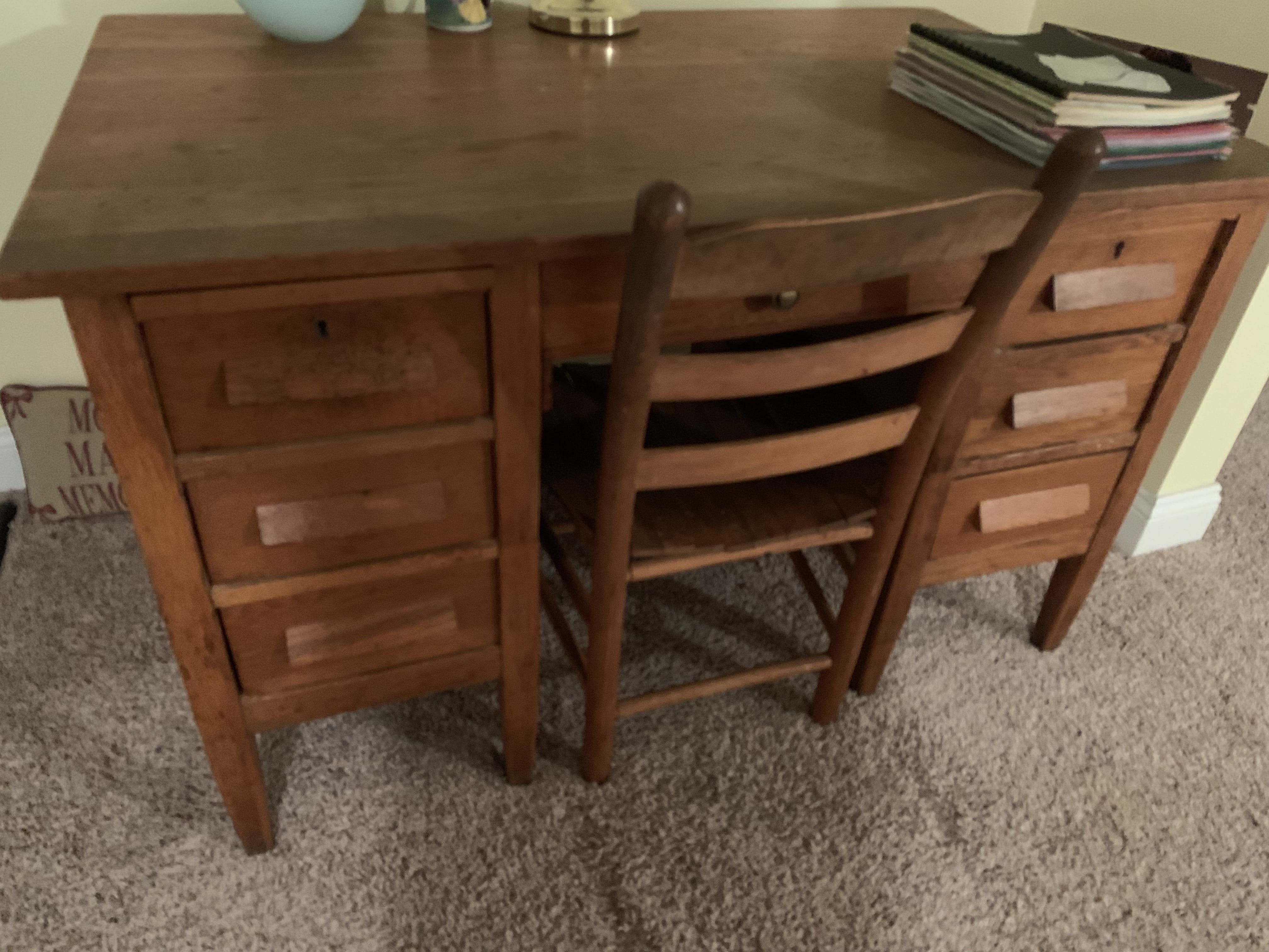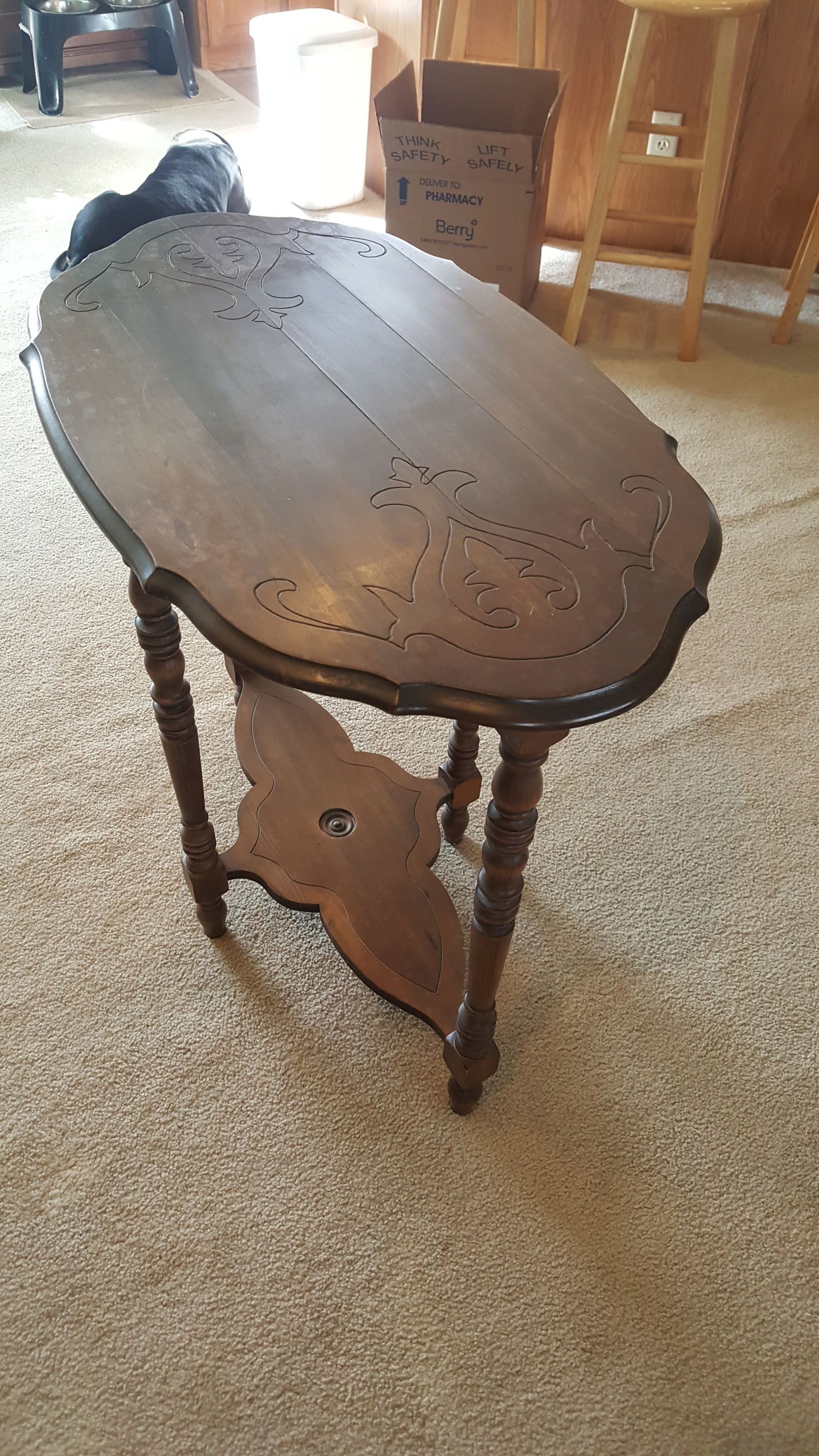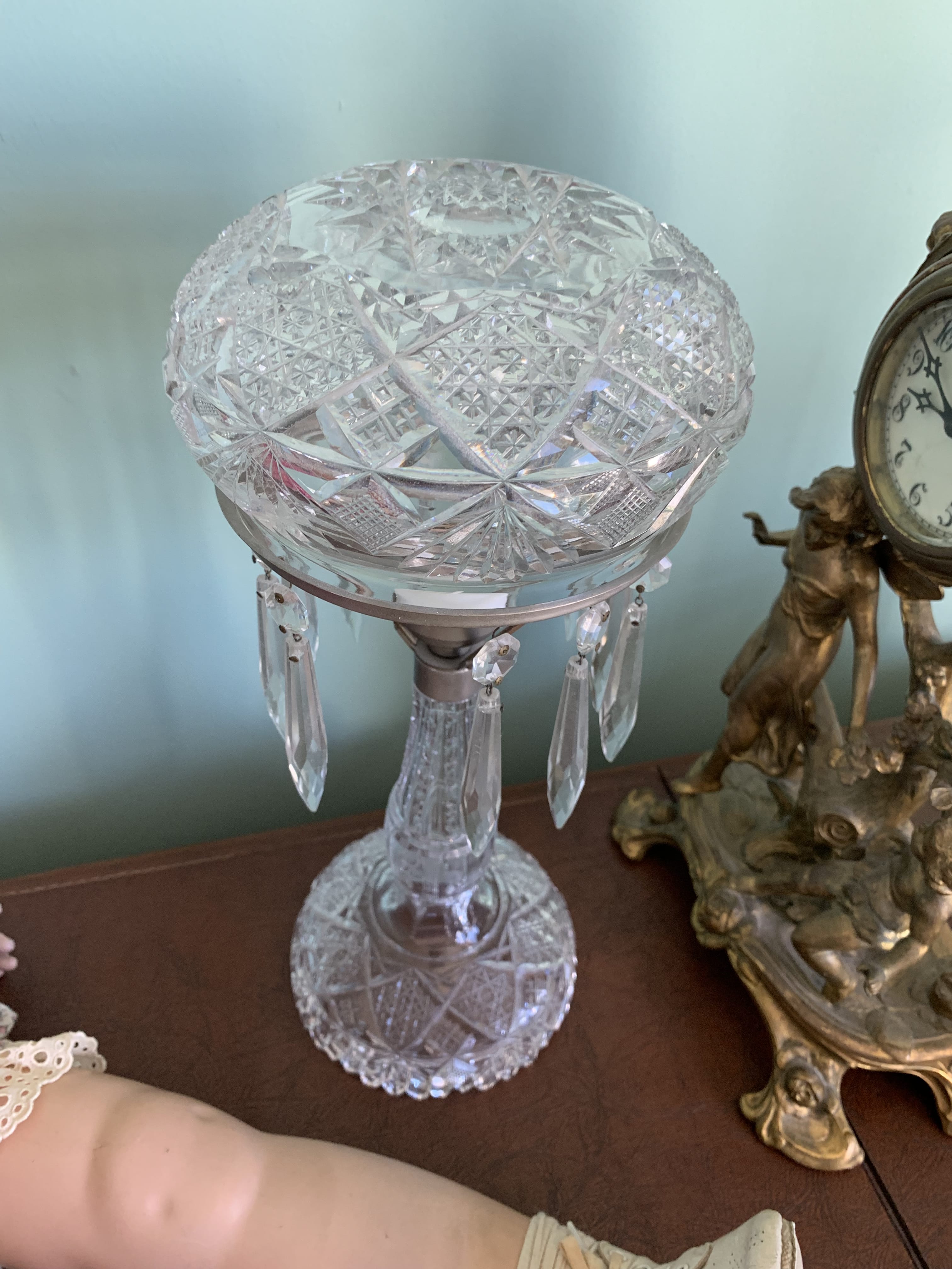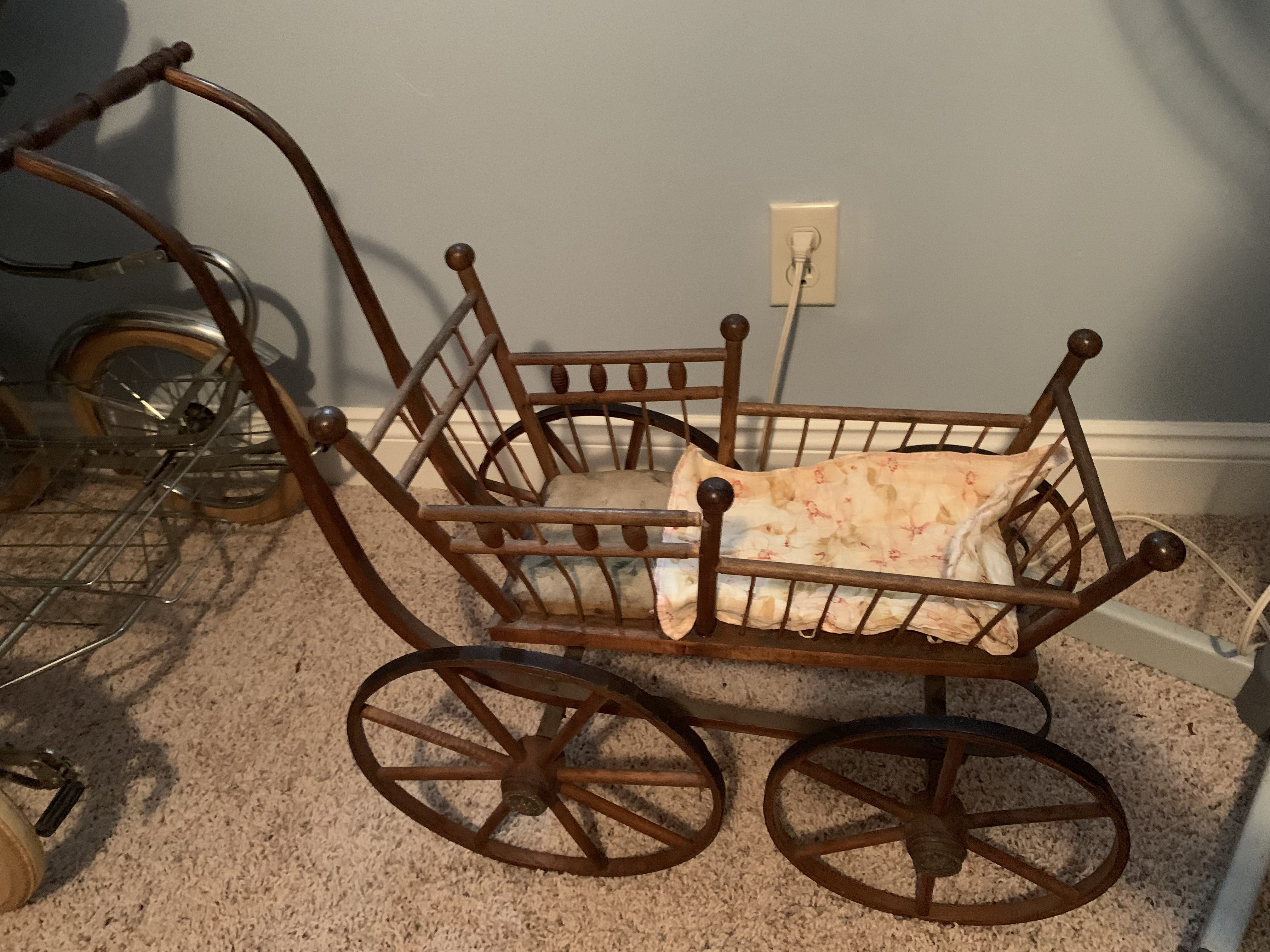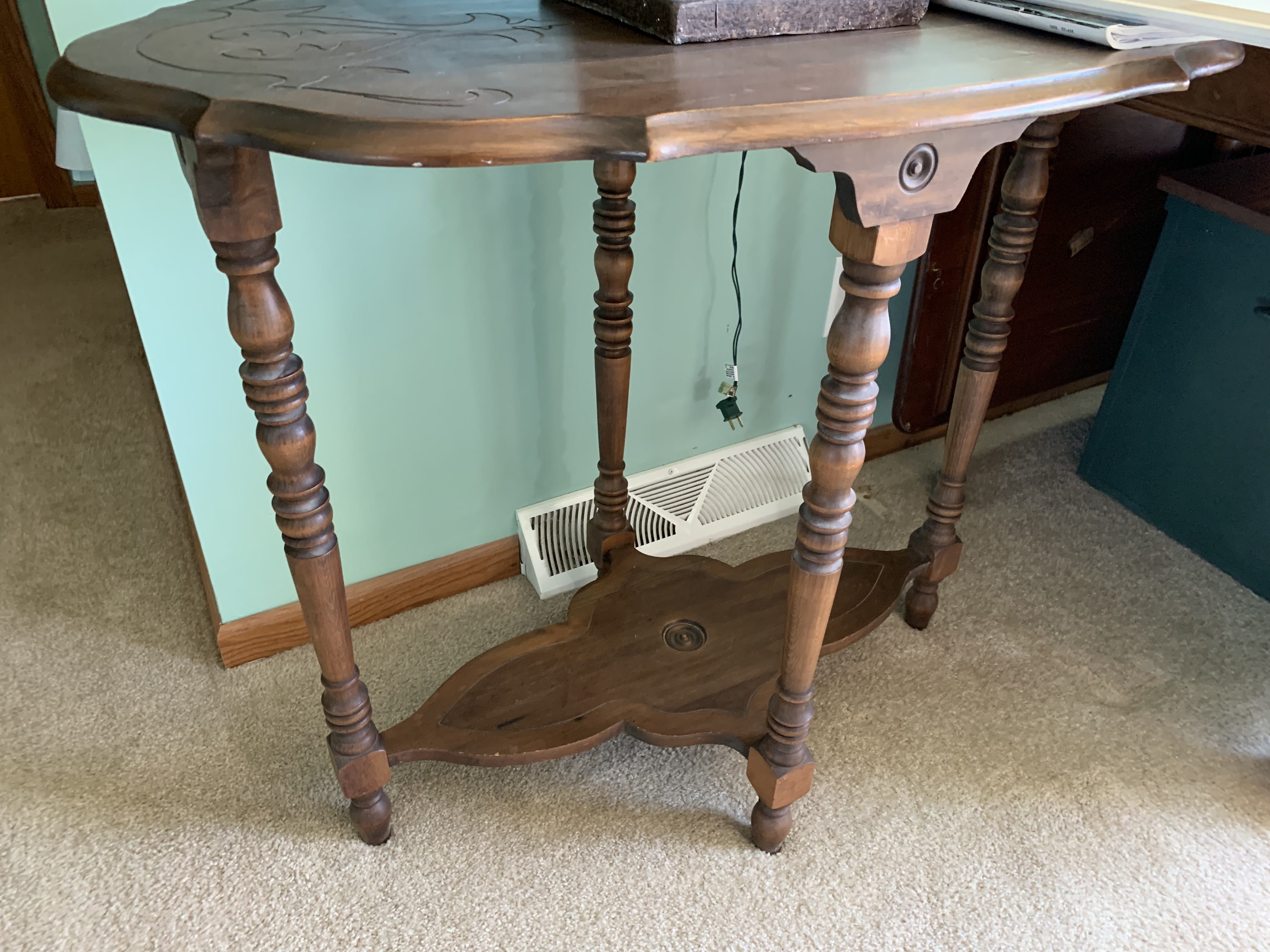 Glass Front China Cabinet; Gate Leg Drop Leaf Table; Drop Front Secretary; Hoosier Style Cabinet; Dry Sink; Settee; 3-Drawer Chest of Drawers; Lamp Tables; Blanket Chest; Drop Leaf End Table; Straight Chairs; Camel Back Trunk; Steamer Trunk; Oak Teachers Desk; Childs Rocker; Army Chest; Finger Lamp; Retro Desk Lamp; Mantle Clock; Figural Clock; Decanters; Cut Glass; Silver Plate Pcs.; Fenton Rose Bowl; Set of Rosalind China; Ped. Cake Plate; Soup Tureen; Vases; Candlesticks; Dazey #40 Glass Butter Churn; Crock Jug w/ Blue; 3 Gal. Crock; Copper Pcs.; Primitive Wood Bowl; School Bell; Spittoon; Copper Coal Bucket; Wicker Laundry Basket; Cultivator; Dog Sled; Hargrove Painting; Chrome Baby Buggy; Doll Buggy; Doll Collection; Wood Barn;