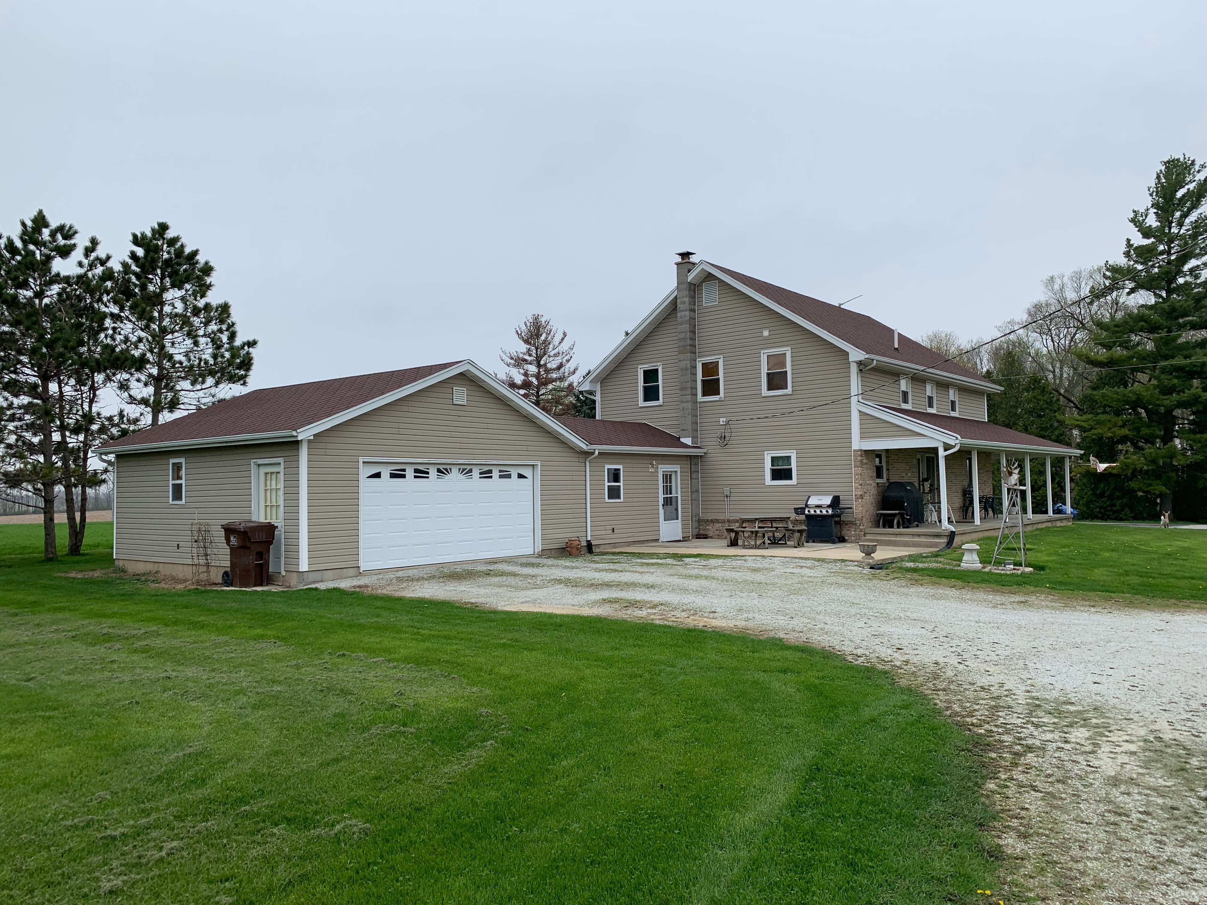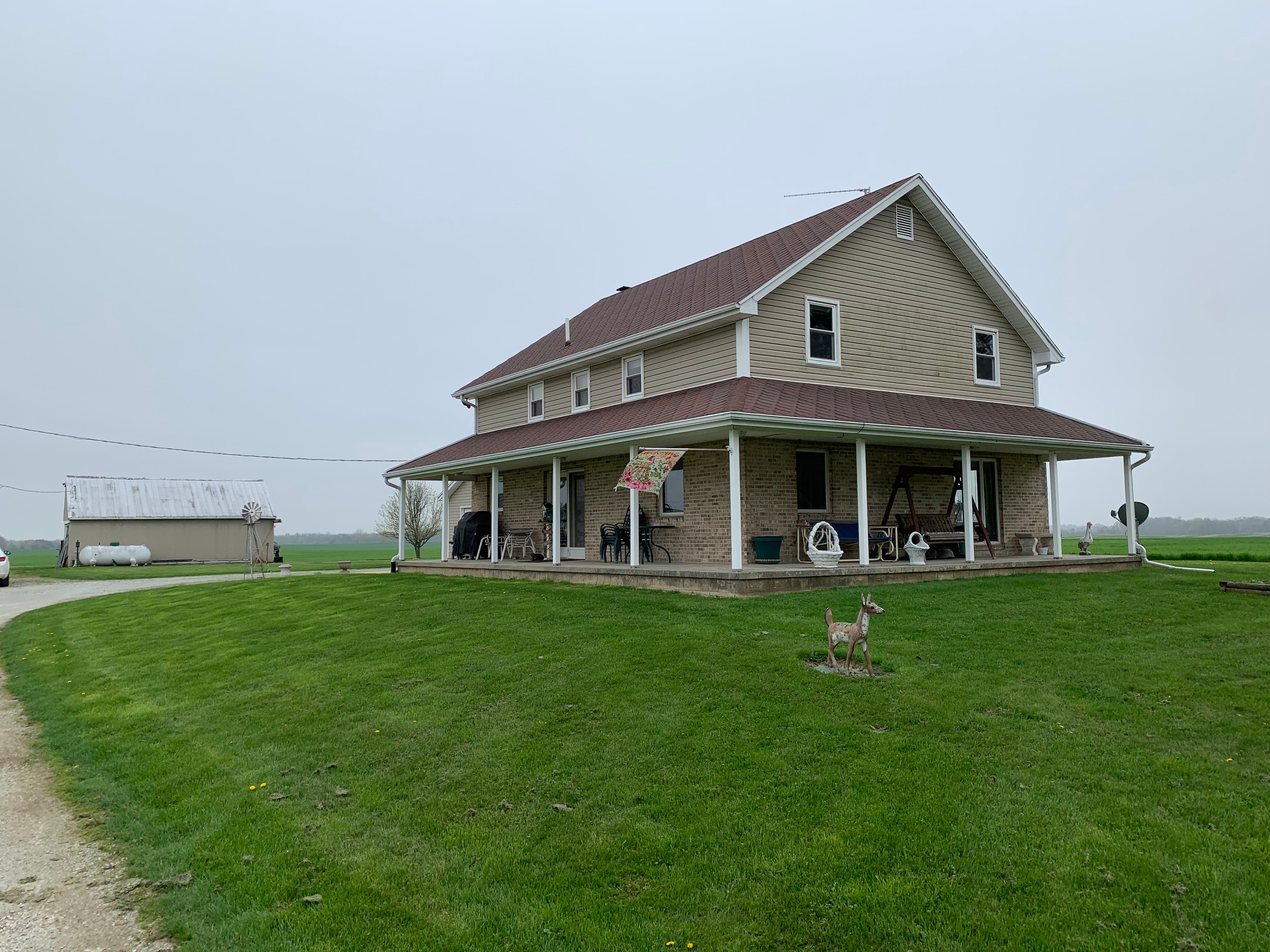 COUNTRY Property on 1.24+/- Acres! Freshly painted Home features 4-5 Bedrooms, 2.5 baths with Open Kitchen/Dining/Living Room Area. Kitchen has Custom Oak Cabinets with ample storage & counter top space that opens to the dining room & large living room. Room off of kitchen would make a nice office! Main level has the laundry room and a full bath. Full, Waterproofed Basement is partially finished, complete with a full kitchen that has multiple sinks & is perfect for canning! Basement is a great place to entertain or to have game tables. Upstairs features 3-4 bedrooms with walk-in closets & a full bath! Walk-Up Attic is great for storage and easy to access! Home has 2-car attached garage & Wrap-Around Porch to take in the sunrise or sunset! Many newer mechanicals including: Furnace in 2012, Central Air in 2014, newer windows, roof in 2007 & much more!