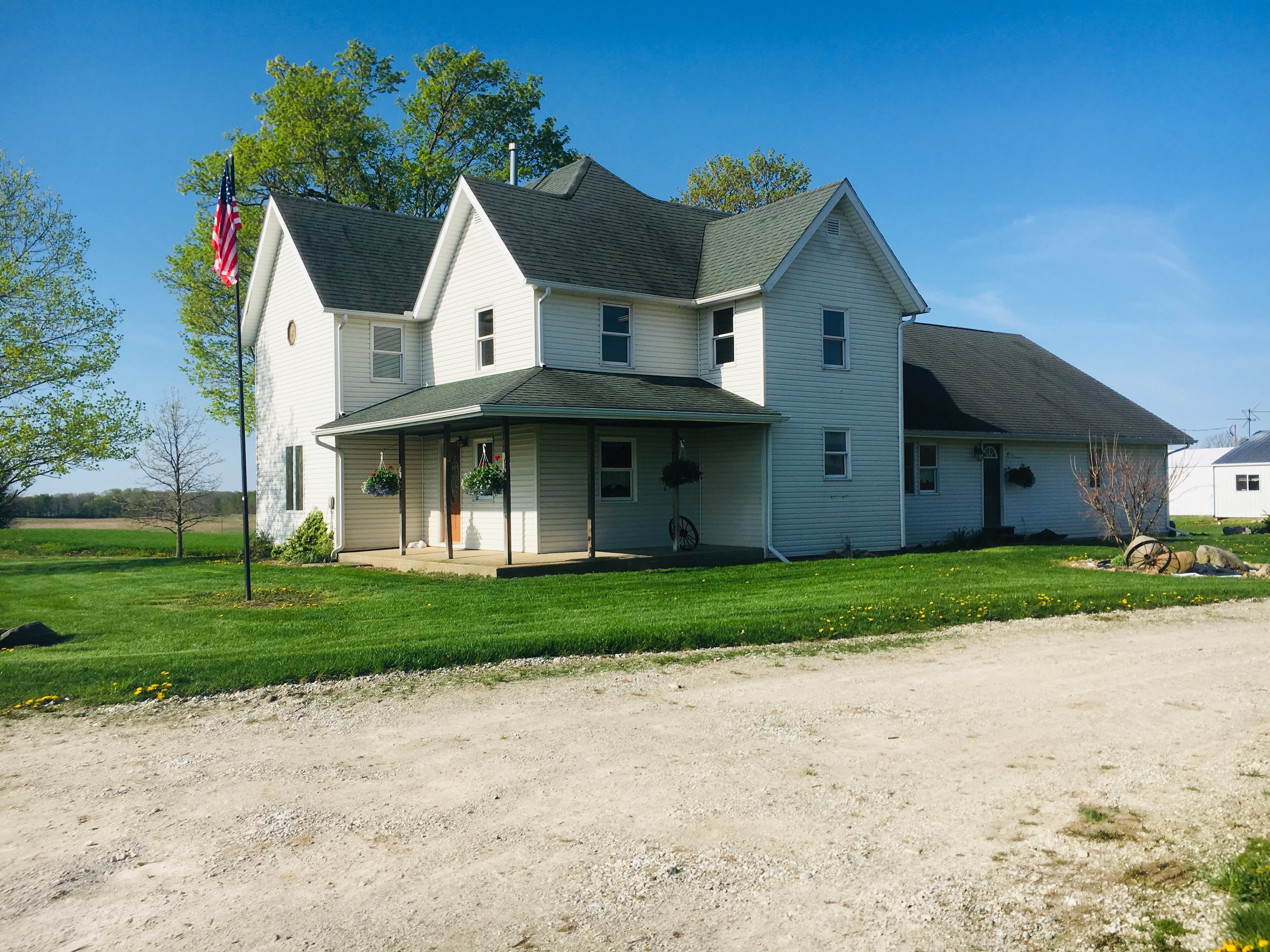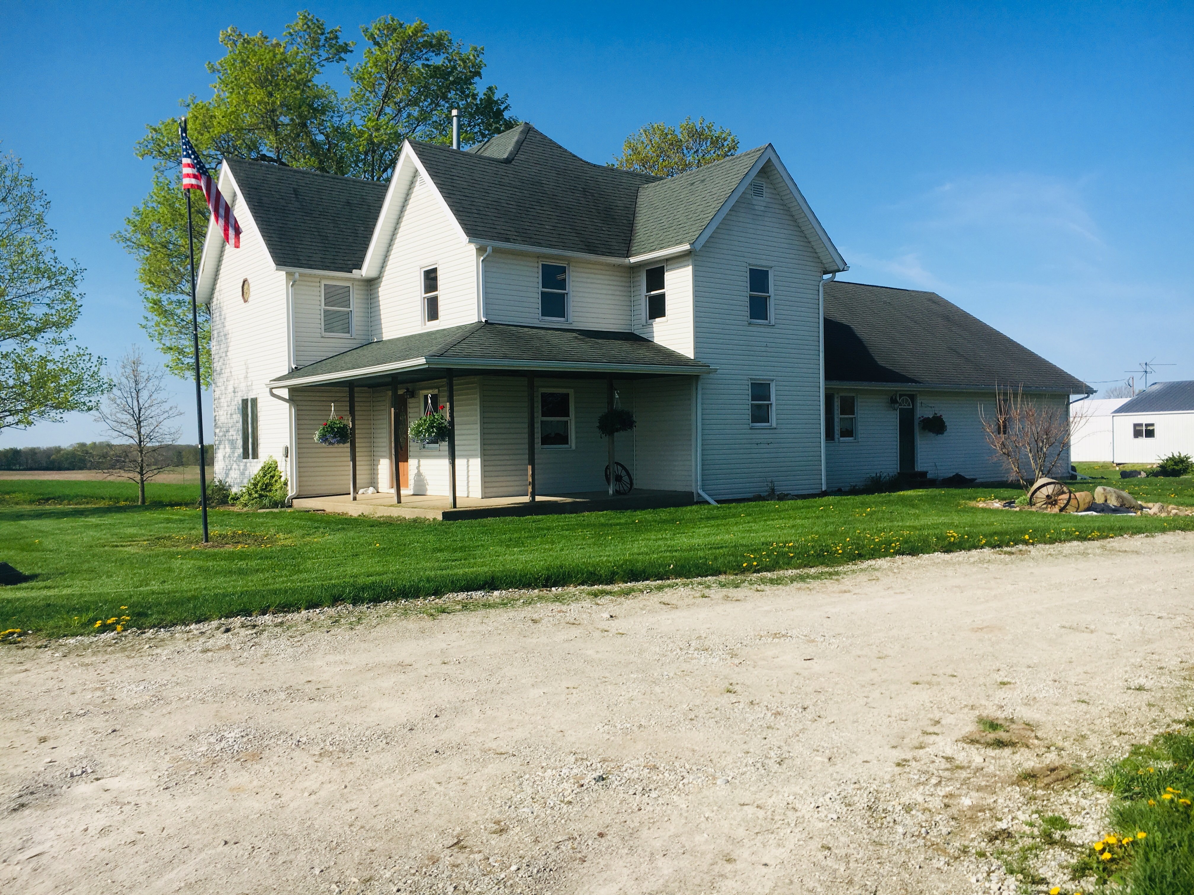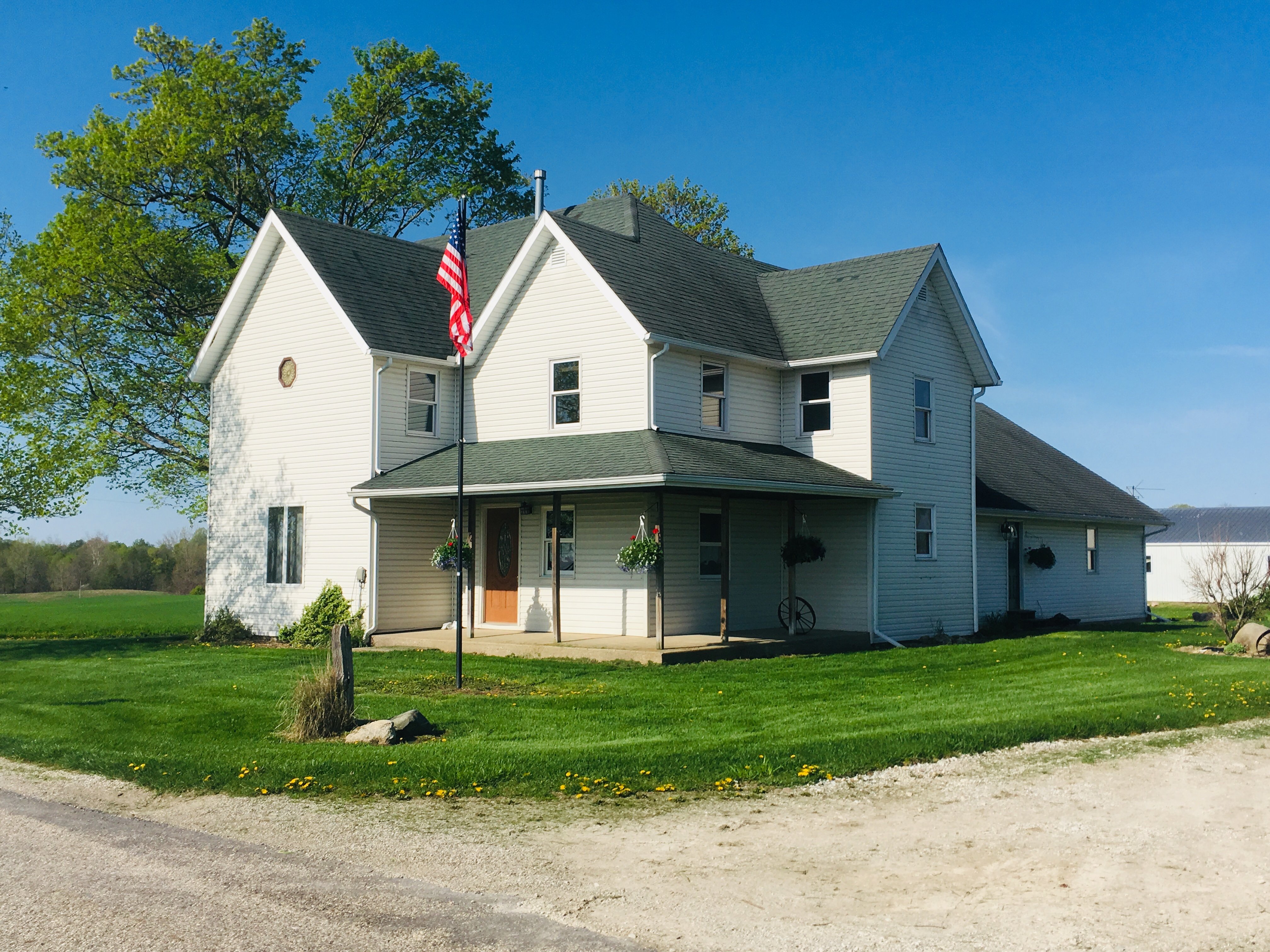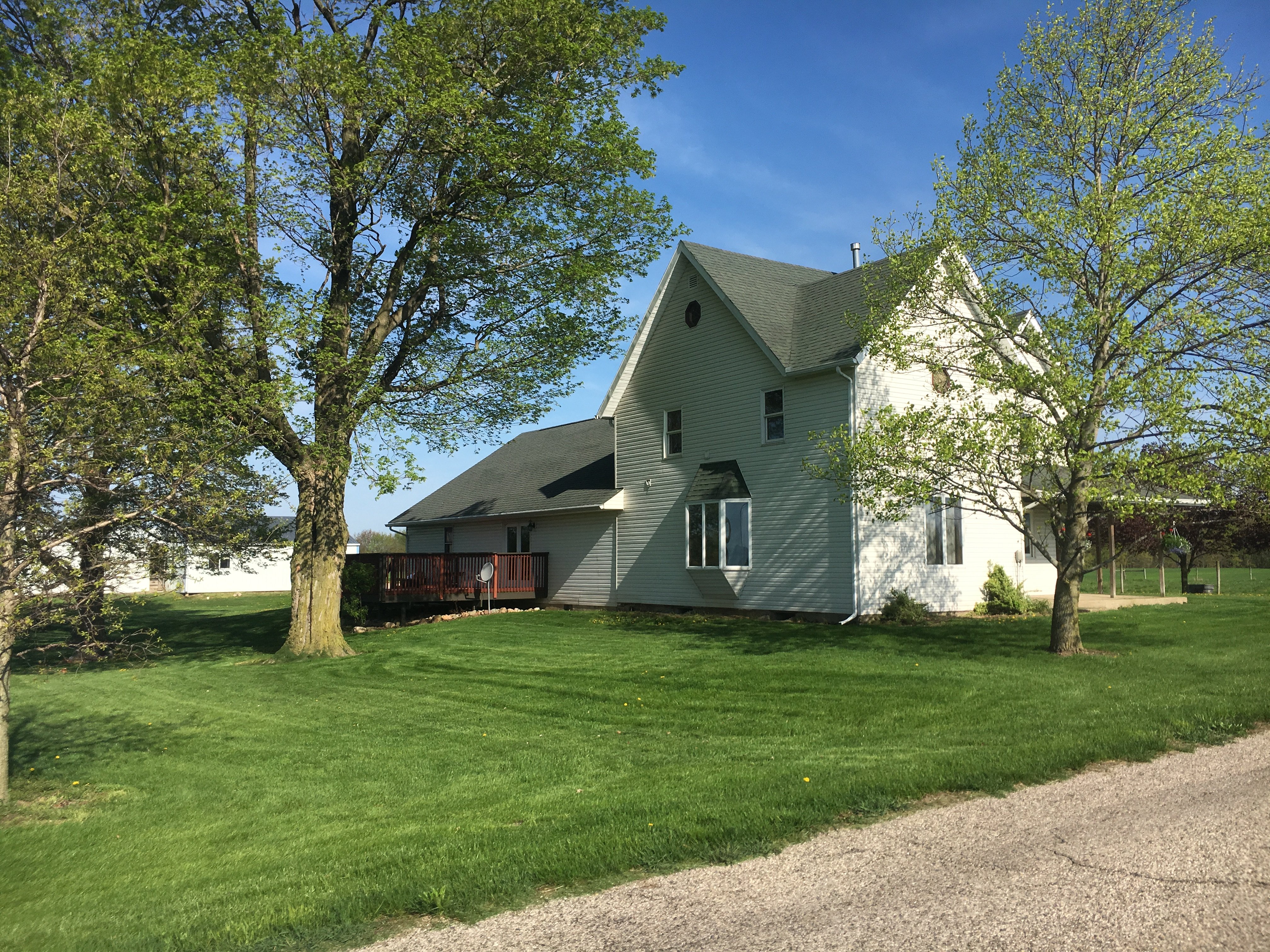 Peaceful COUNTRY Property on 3.07 +/- Acres! Move-In Ready Home featuring 3-4 Bedrooms, 2 baths, Large Open Concept Living Room with a Deck for Entertaining or Relaxing all while taking in peaceful views! Kitchen Opens to the Dining room & living room both! Upstairs bedrooms feature original Hardwood Floors! 2-Car Attached Garage, Large Pasture & 3 Pole Barns make this an ideal country setting for 4-H Animals or a Mini Farm!