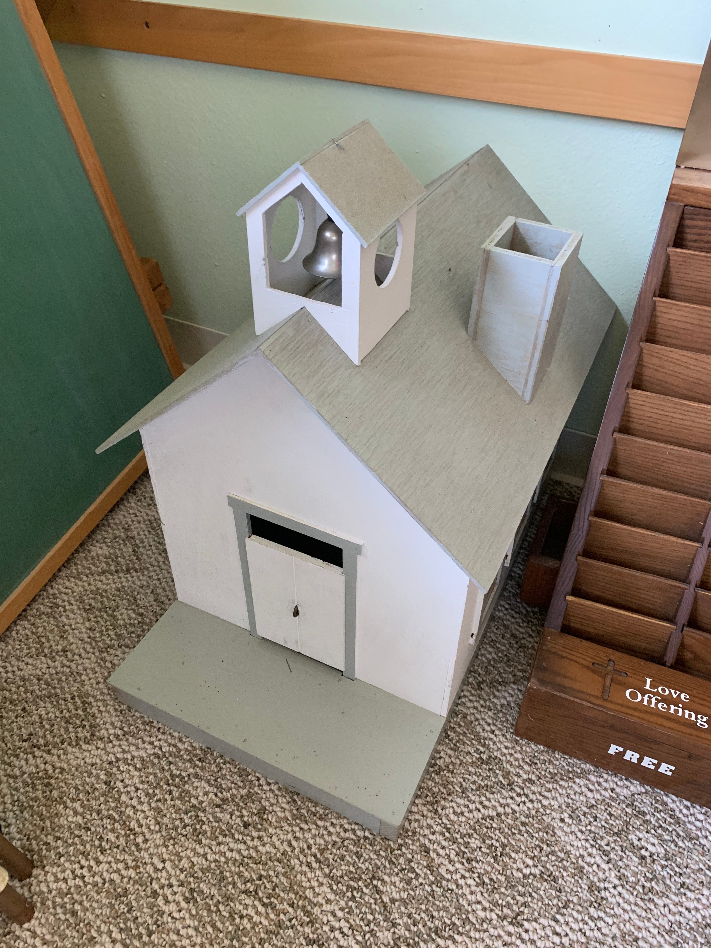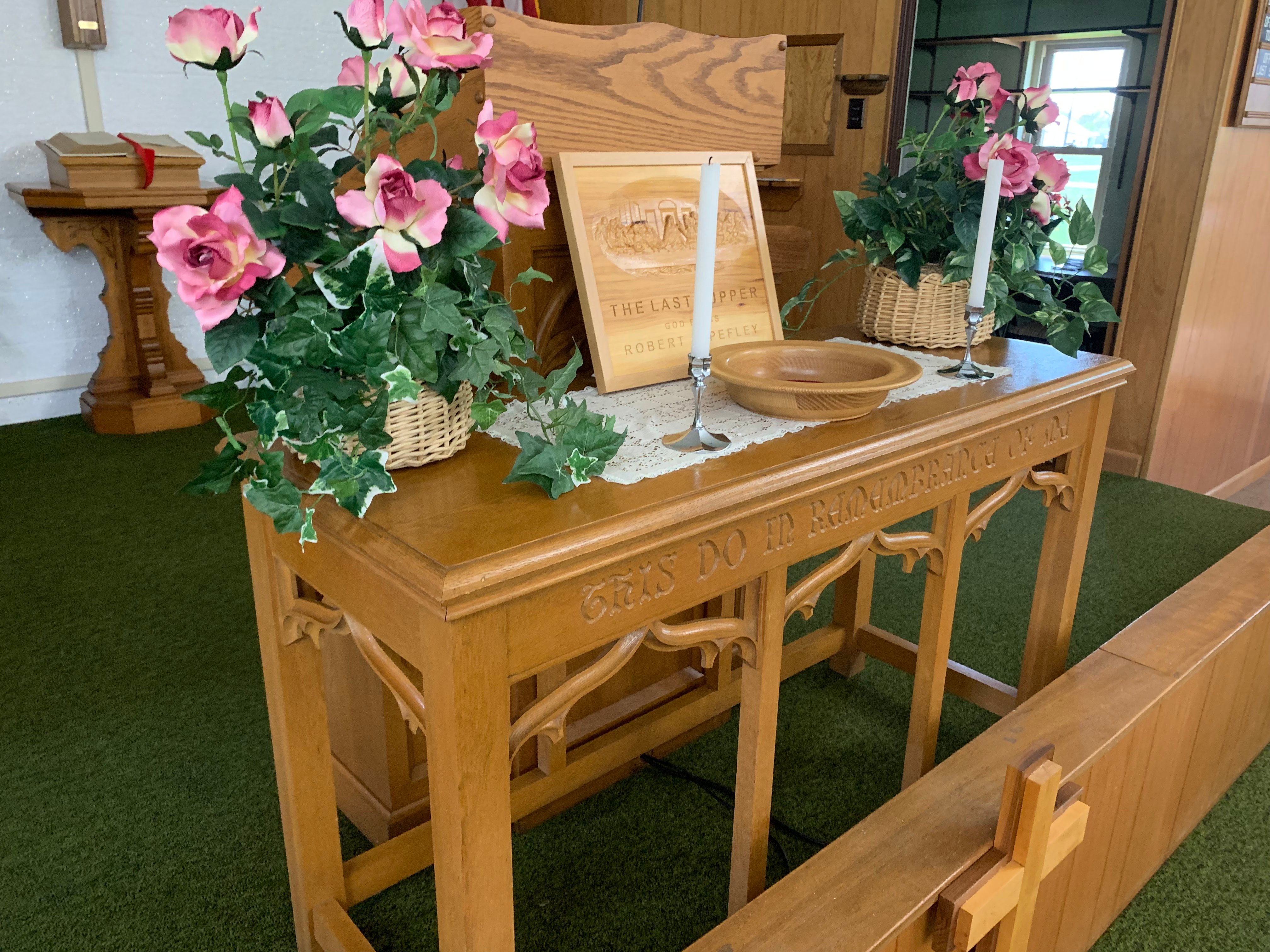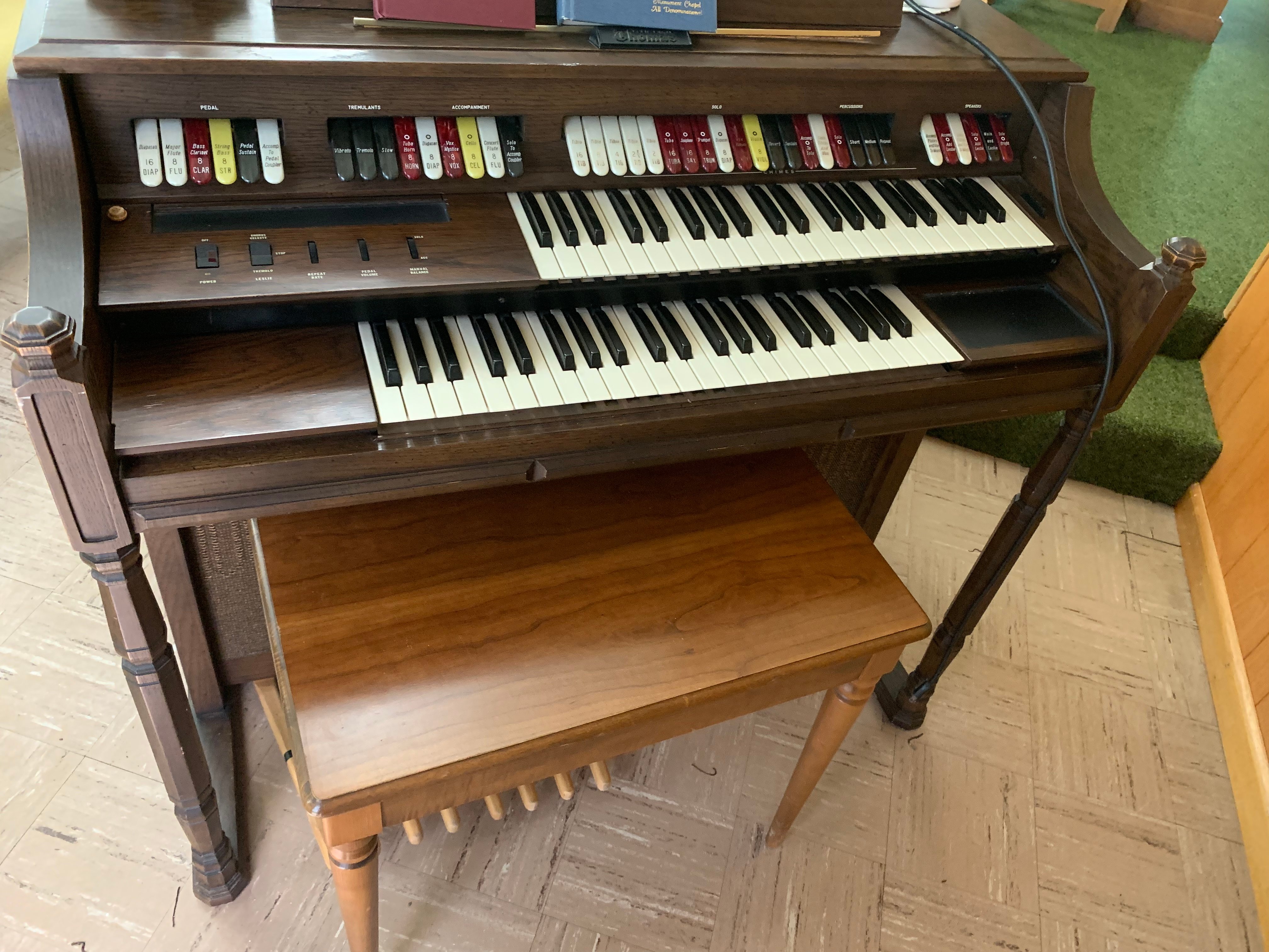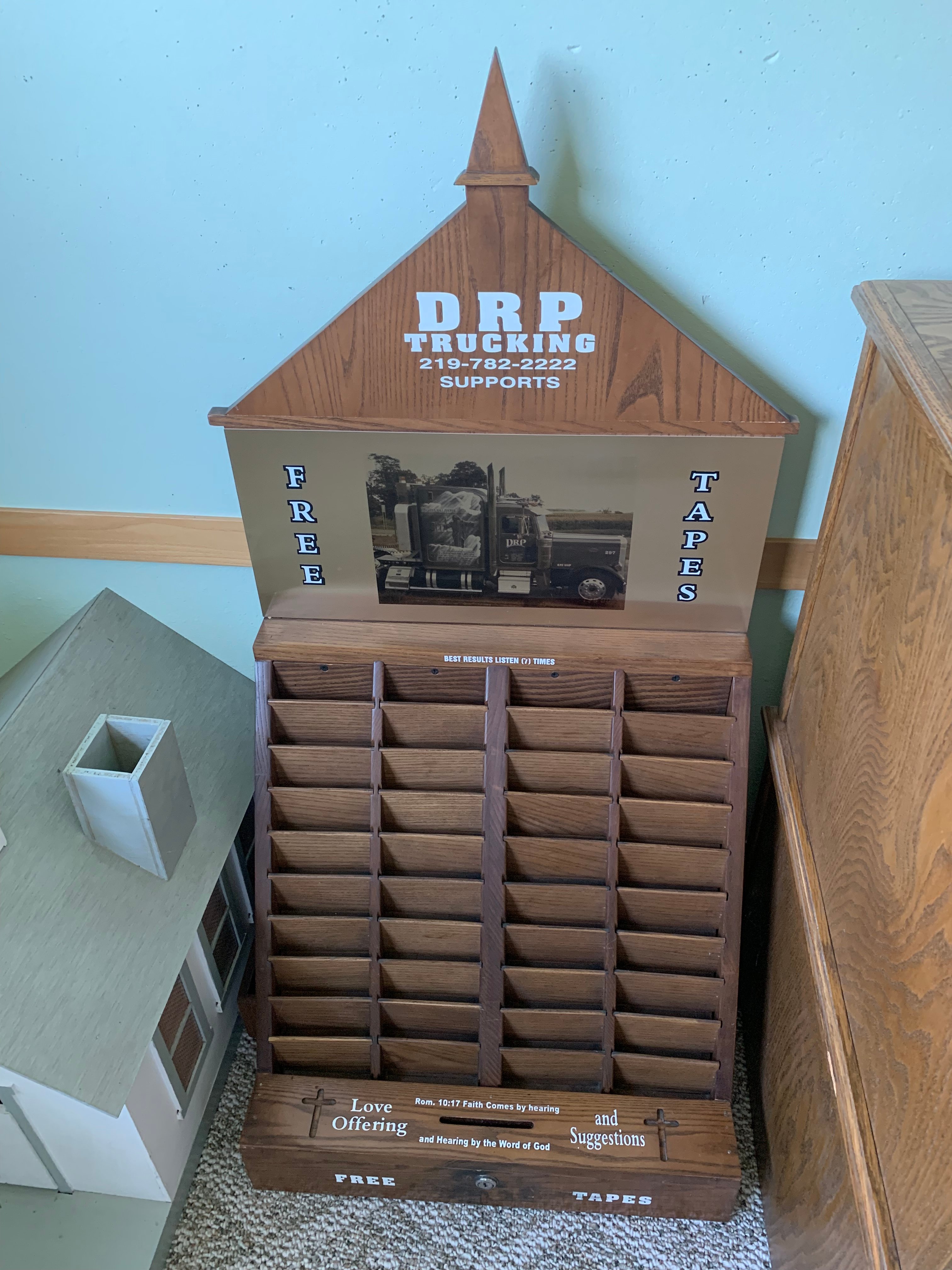 17-Church Pews; 4-Smaller Church Pews; Oak Carved Chairs; Carved Podium; Pulpit; Communion Table; Wurlitzer Organ; Thomas Organ; Estey Spindle Piano; Oak Desk; Oak Cabinets; Vintage Light Fixtures; Leather Sofa; Folding Tables & Chairs; Wall Dividers; Cribs; Changing Table; Childs Picnic Table; Childs Toys; Peavey XR600C Mixer Amp; Pioneer CD Player; TEAC CD Player; Projector; Chalkboards; Bulletin Holders; Donation Boxes; Hymnals & Bibles; Flags; Pictures & Prints; Clocks; Holiday Décor; Primo Water Cooler;
