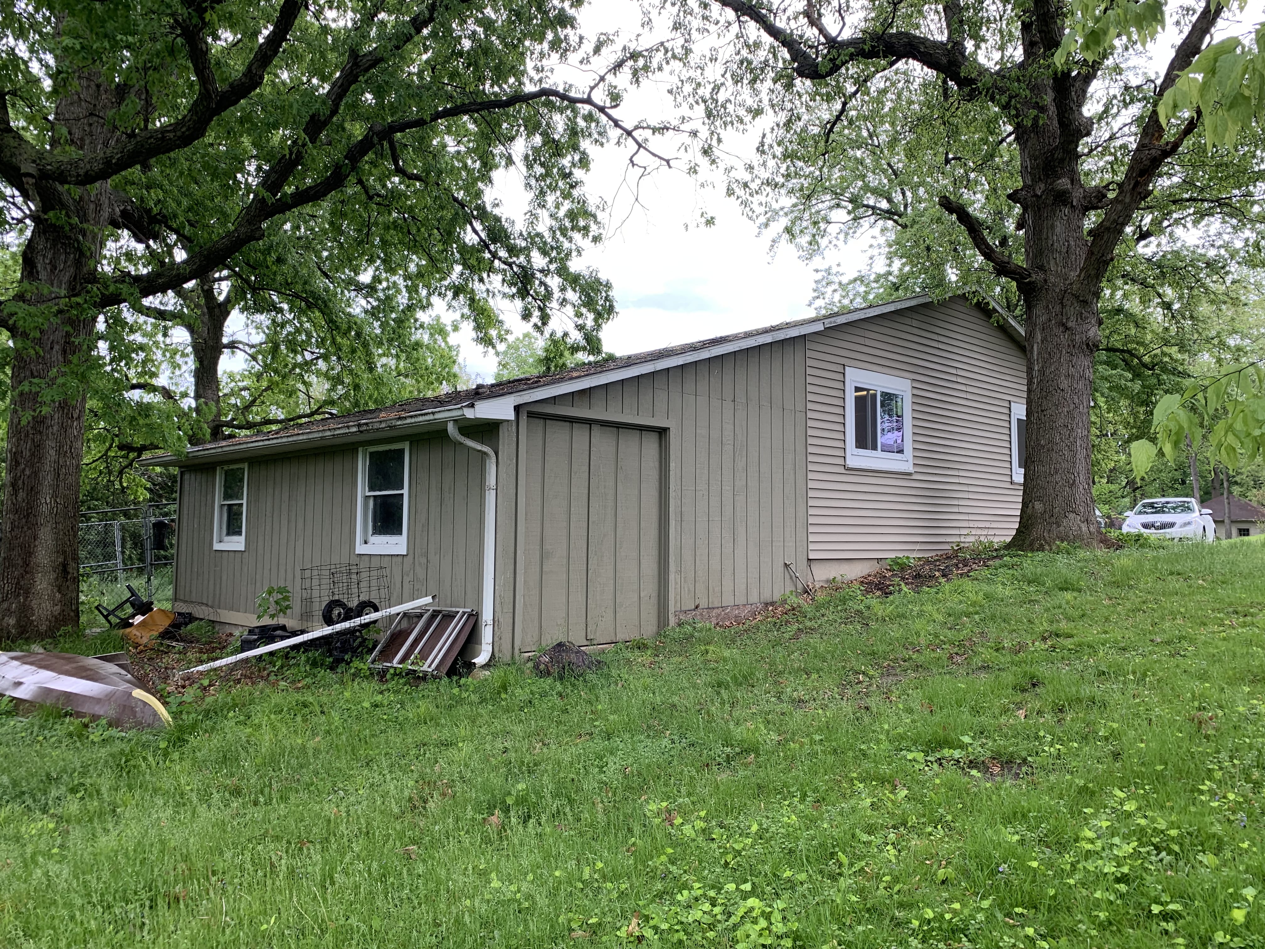 This home is going to auction on June 30, 1pm at the property. Home features an open concept main floor and an unfinished basement that could be easily converted into a recreational room! The main floor features an eat-in kitchen, living room, hardwood floors, newer windows, central air unit new in 2015, 2 bedrooms, a bathroom, and a breezeway that leads to the garage! The unfinished basement also has a roughed in bathroom that could be updated into a complete bath. The home also has an attached 2-car garage, with an attached work room that would be perfect for the hobbyist! The yard has a chain-link fence that would be great for keeping pets! The patio is another nice outdoor feature, and would be a perfect spot for backyard barbecues! Come see for yourself, OPEN HOUSE: June 25, 5:30-6pm.