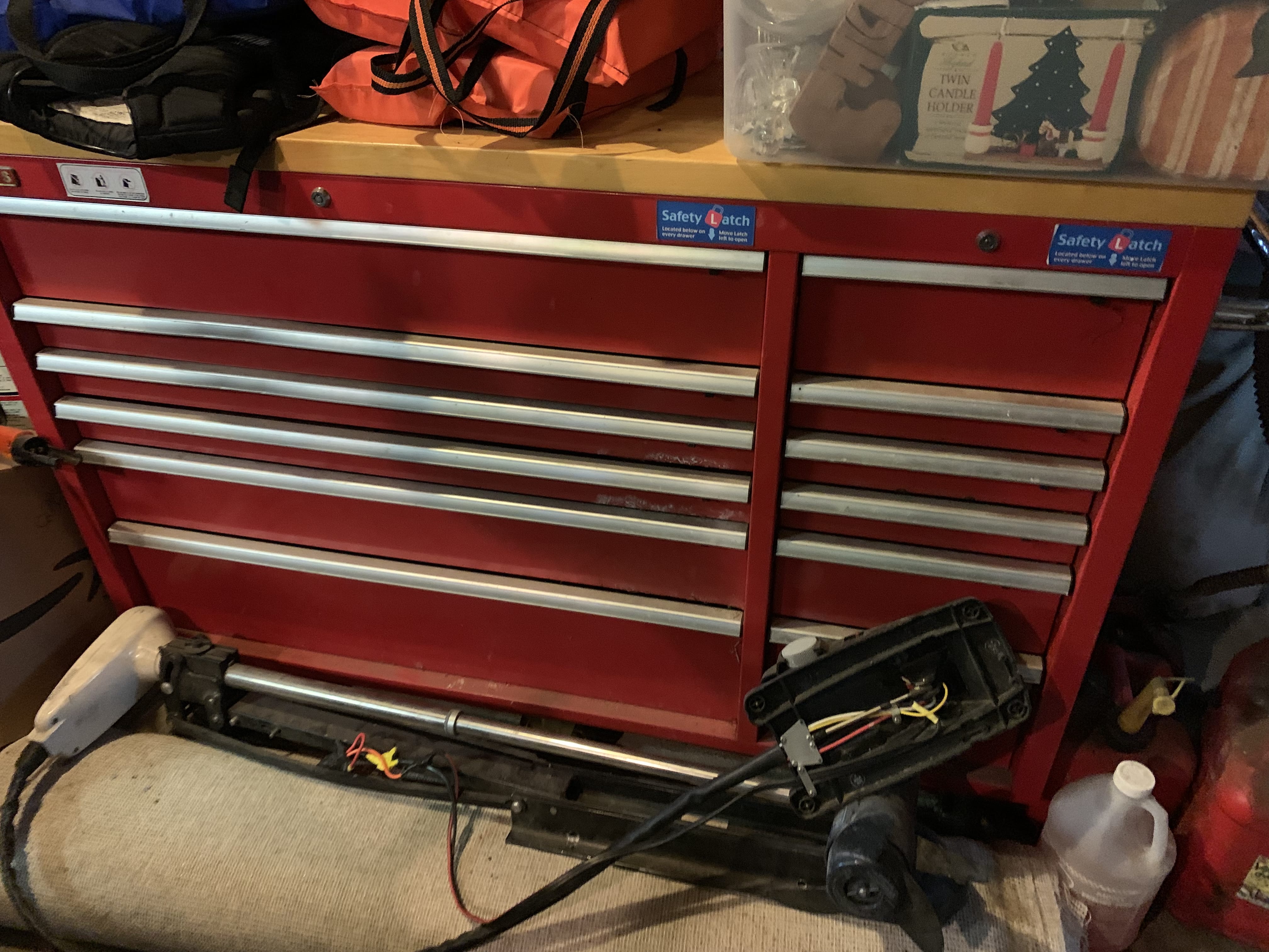 Single Axle Utility Trailer; Troy-Bilt Storm 2660 Self-Propelled Snow Blower; DR Lawn Vacuum System; Pull Type Lawn Spreader; Backpack Blower; Lawn Sweeper; Lawn Cart; Troy-Bilt Push Mower; Snapper Weedeater; Millway Weedeater; Poulan Chainsaw; Garden Tools; Craftsman 7500-Watt Generator; Craftsman Air Compressor; Brute 2700 PSI Pressure Washer; Lincoln 225 Welder; Chicago Electric Mig 170 Welder; Hobart 175 Welder; Hoist; Machinist & Bench Vises; Delta Dust Collector; 6 in Jointer; Tabletop Drill Press inc. Iron Smith & Wen; Craftsman Lathe; Metal Cutting Band Saw; Craftsman Band Saw; Craftsman Power Miter Box; Chop Saws inc. Craftsman Contractor Series; Circular Saws; Ryobi Radial Arm Saw; Delta Scroll Saw; Portable Table Saw; Router Table; Scroll Saw; Craftsman 12 in. Planer; Craftsman Router; Sanders inc. Craftsman Combination; Bench Grinder; Air Hammers; Drills inc. Cordless; Angle Grader; Wrenches; Socket Sets; Air Hose Reel; Paint Sprayer; Lg. Roll-Around Craftsman Toolbox; Workmate; Roller Stand; Sawhorses; Shop Lights; Asst. Lumber; Jack Stands; Appliance Cart; Utility Cart; Step Ladder; Car Ramps; Portable Heat Pump; Shop Vac; Oilers; Shelving; Storage Cabinets; Plastic Crates; Live Traps; Trolling Motor; Boat Anchors, Oars & Buoys; Tackle Boxes; Life Jackets; Mountain Bikes; Ebla 3-Wheel Bike; Shepherds Hooks; Patio Set w/ Umbrellas; Stack Lawn Chairs; LP Turkey Fryer;