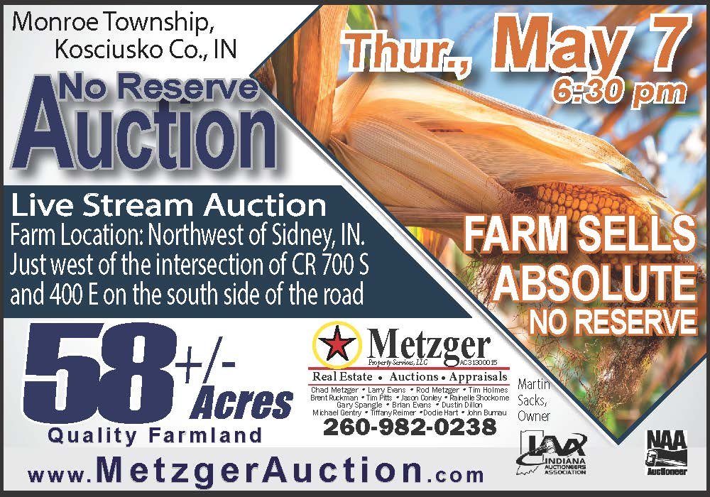 ABSOLUTE AUCTION! 58+/- ACRES OF QUALITY FARMLAND IN KOSCIUSKO COUNTY BEING OFFERED VIA LIVE STREAM AUCTION!