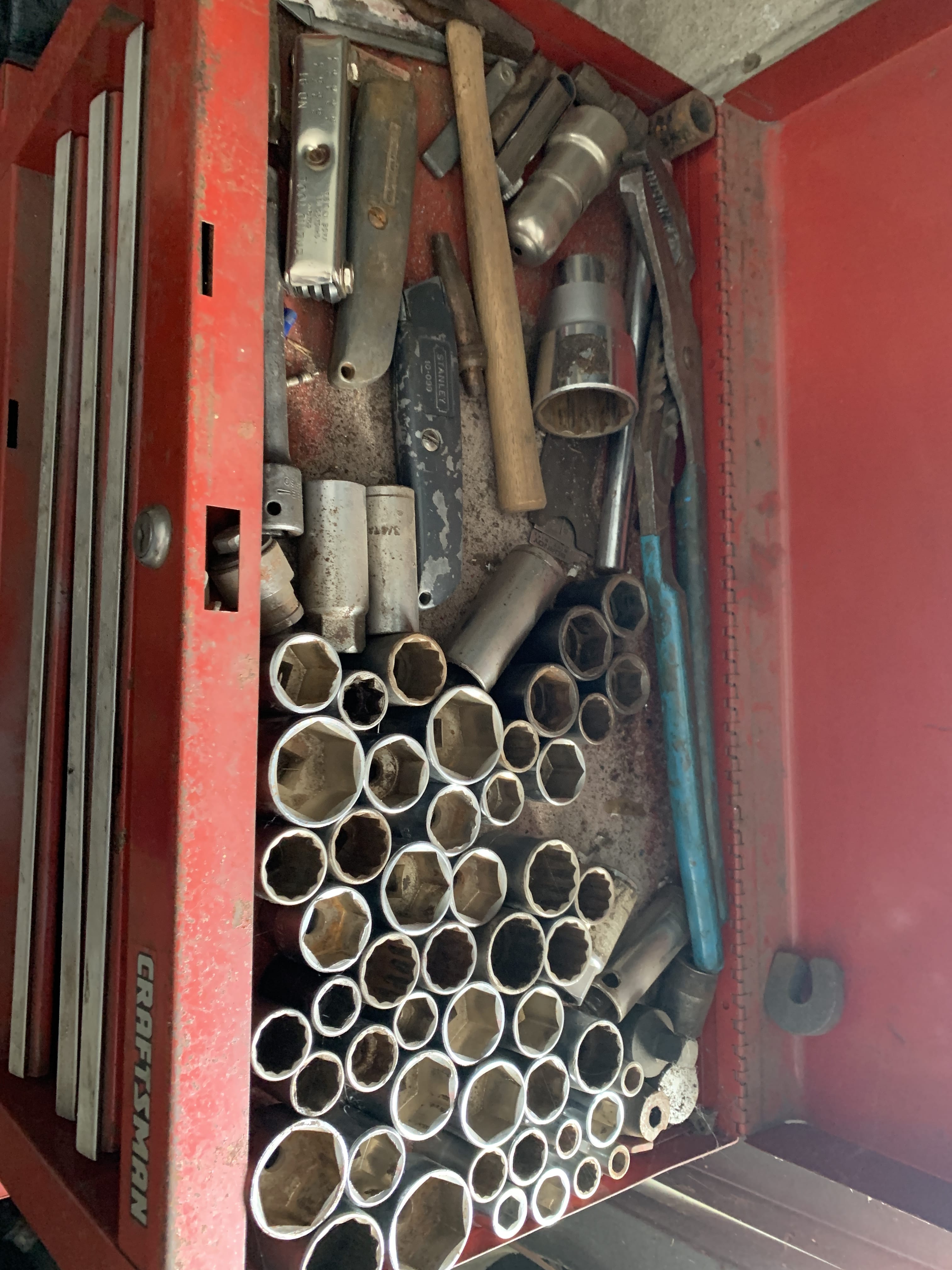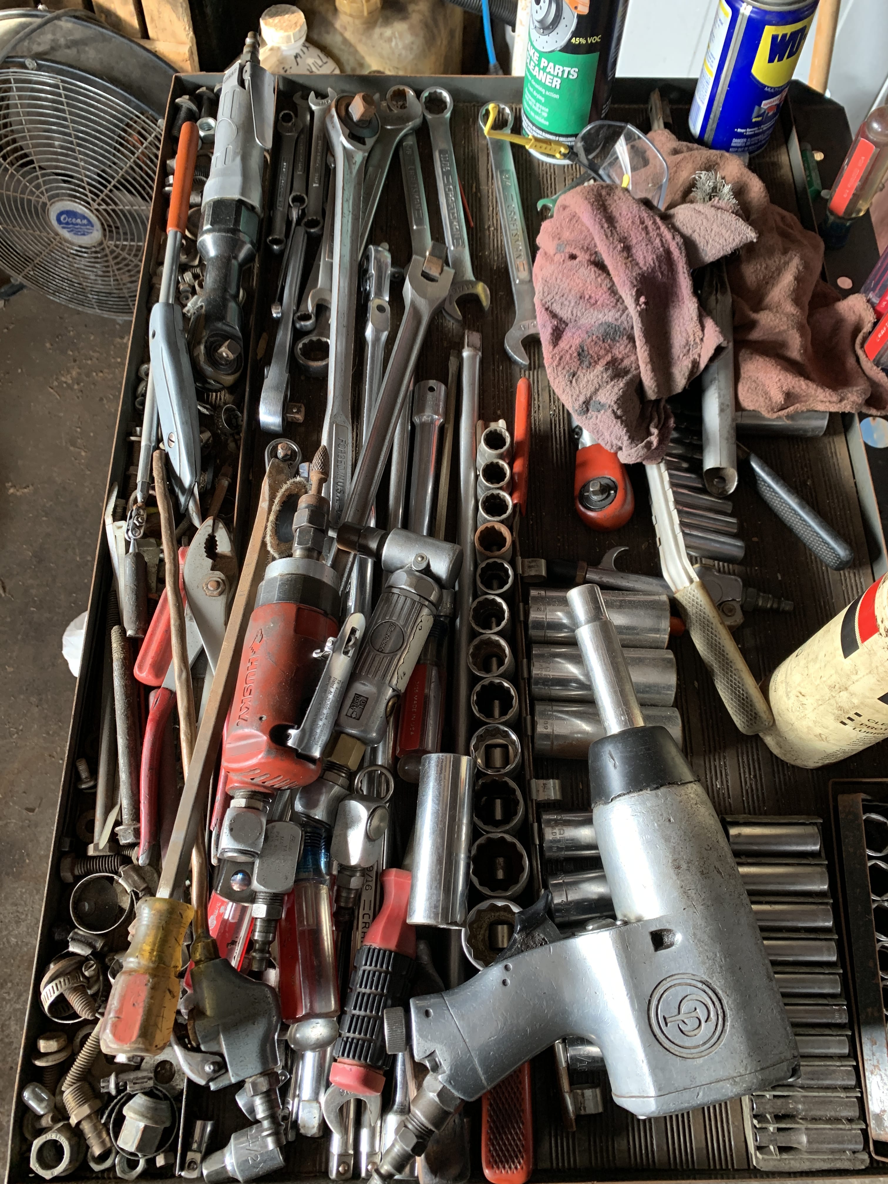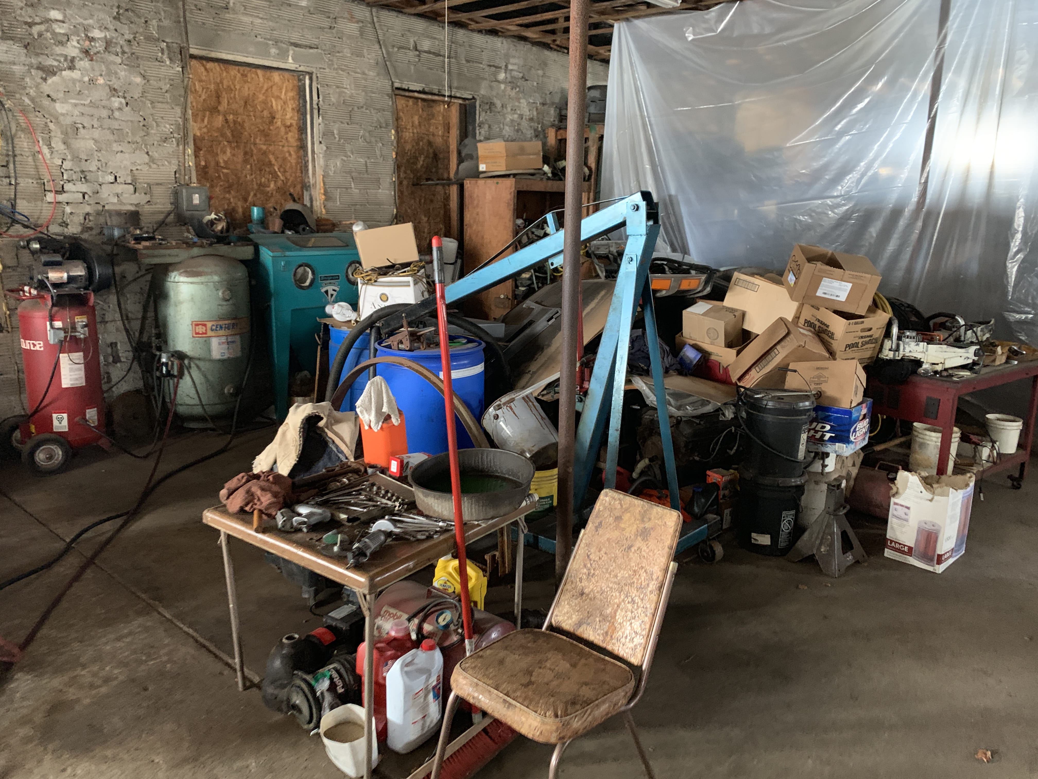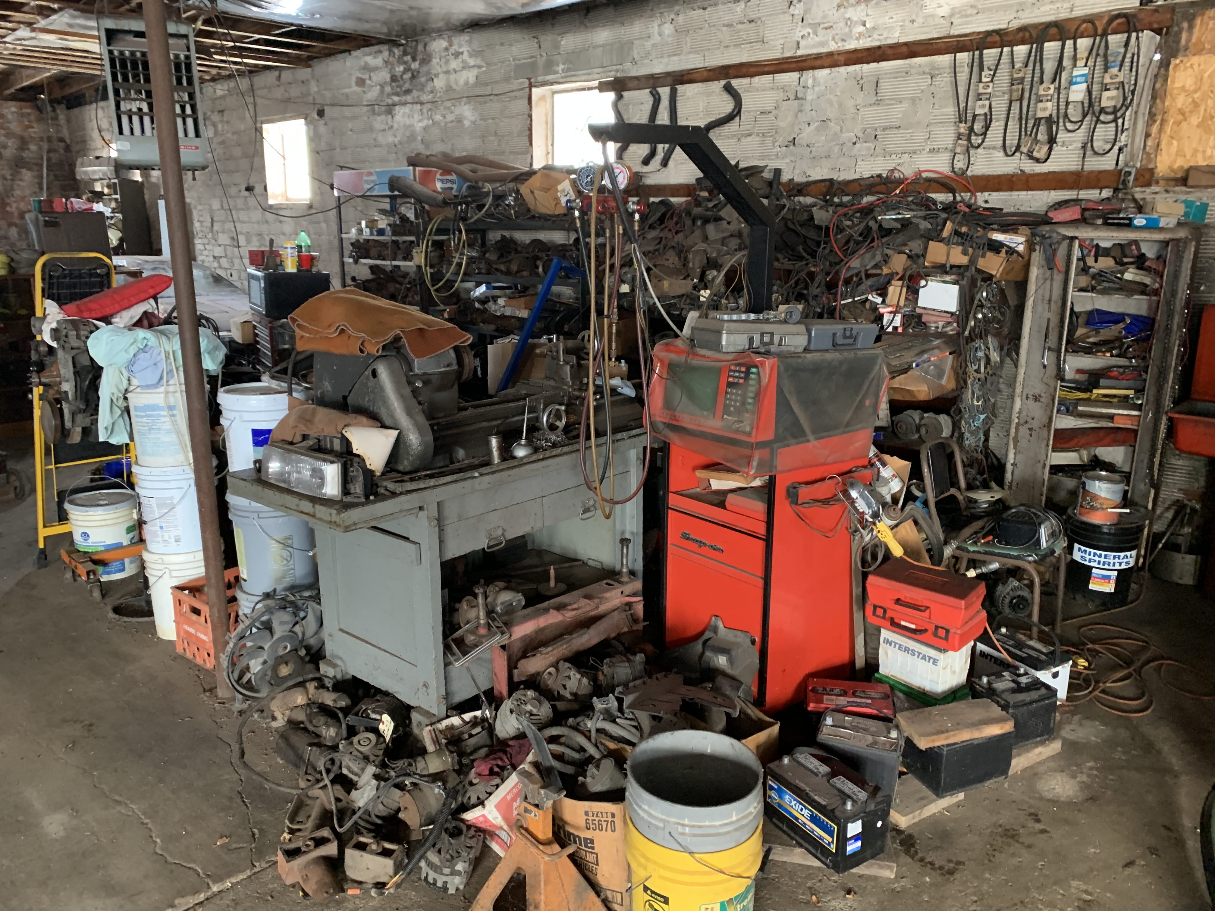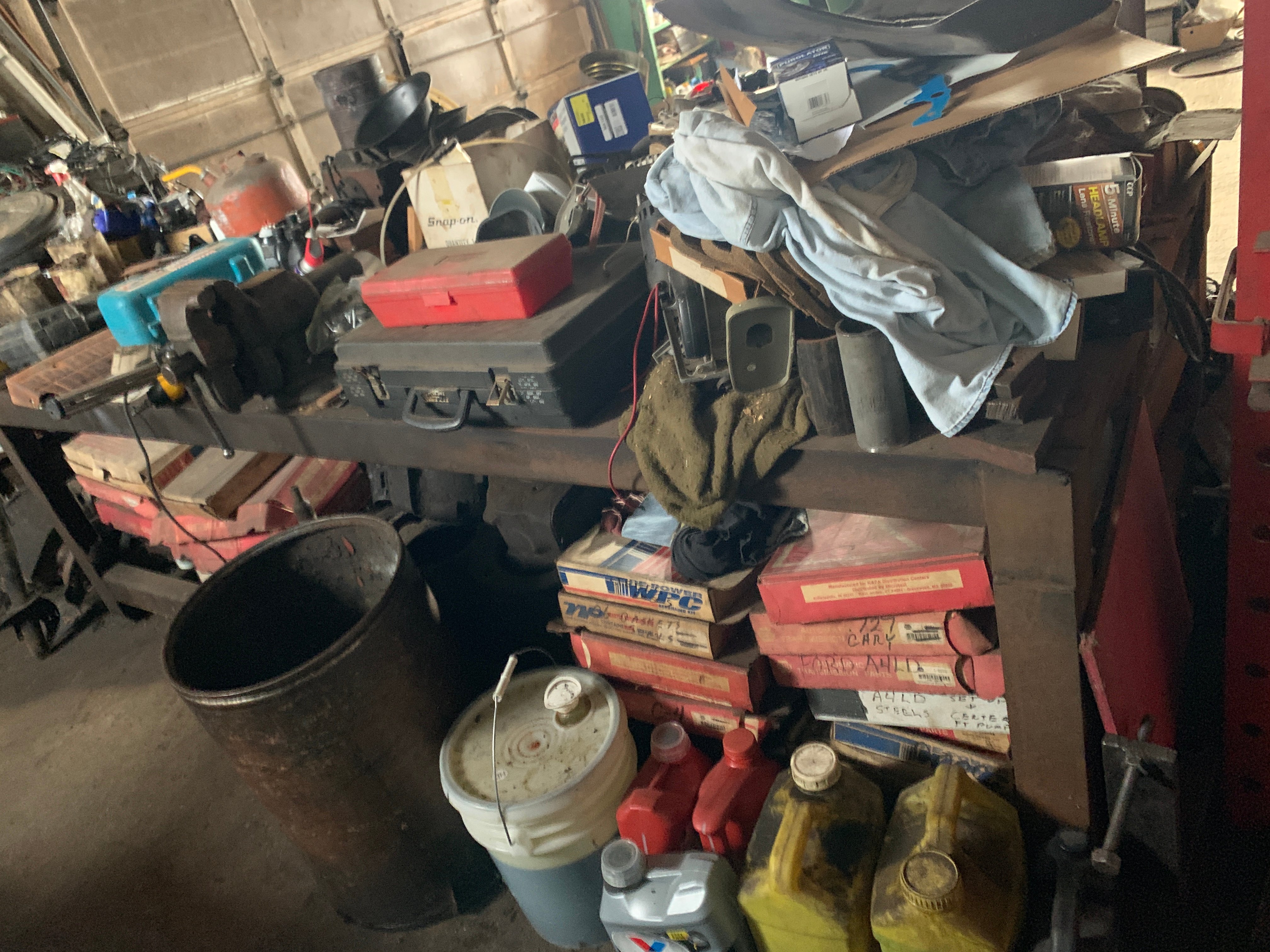 Massive Assortment of Ford & Chevy Auto Parts: Engines, Big Blocks, Transmissions, Parts Motors, Alternators, Frames, Doors, Hoods, Doghouses, Axles, Cabs, Tailgates, Steering Columns, Belts, Gears, Auto Parts, Starters, Mufflers, Rims, Fenders, Seats, Bumpers, Fans, Supplies, Transmission Castings, Engine Cradles, Dash Consoles; Camaro Front-ends & Rear-ends; Lg. Asst. Corvette Doghouses & Parts; Tires; NOS Radiators; New Ford Truck Doors; Engine Hoists; Chain Hoists; A-Frame Hoist; Motor Stands; Snap-On Counselor II Analyzer; Snap-On ACT 3000 Refrigerant Recovery Recycling Center; Snap-On MT290 Fuel Injection Tester; Snap-On Testing Kits; Blue-Point Specialty Tools; Snap-On Specialty Tools; Snap-On Sandblasting Cabinet; Kwik-Way Commercial Sandblasting Cabinet; McCulloch FG6000MK Generator; Porta-Power; Millermatic C200 Welder; Lincoln Hi-Freq Arc Welder; Clarke Weld 100E MK2 Mig Welder; Hobart Welders; Lincoln 250 Wire Matic Welder; Torch Sets; Upright Air Compressors; Ingersoll-Rand Commercial Air Compressor; Battery Chargers; Portable Air Tanks & Compressors; Safety-Kleen 60 Parts Washer; Sioux Steam Parts Cleaner; Van Norman 570 Rotary Broach; Van Norman Engines; Sperry Sonoflux Md. AB100 Magnetic Particle Inspection Machine; Ammco Model 5000 Giant Safe-Turn Brake Drum Lathe; Sheet Metal Brake; W.F. Wells & Sons Md. H, 9 in. Metal Cutting Bandsaw; Peterson Valve Guide Seat Machine; Sunnen Md. LB Grinder; Tamco Valve Grinder; Lempco Drum Lathe; Kam-Knurl #37 Knurling Machine; Tillis Mfg. Co. Md. 119 Lathe; Machinist Lathe; Machinist Tools & Tooling; Calipers; Micrometers; Niagara Shear; Nugier Md. H60-14 60 Ton Shop Press; Carolina Ind. 30 Ton Shop Press; 5 in. Turret Vise; Tru-Drill 12 sp. Drill Press; South Bend Drill Press; Cummins Drill Press; Metal Cutting Band Saw; Bench Grinders; DeWalt Chop Saw; Craftsman Professional Series Compound Miter Box on Stand; Craftsman Combination Sander; Craftsman Cont. Series Table Saw; Makita 5 in. Orbit Sander; Milwaukee Sawzall; Makita Pad Sander; Bostitch Brad & Finish Nailers; DeWalt Framing Nailer; Air Tools; Impacts; ¾ Drive Socket Set; Lg. Asst. of Power & Hand Tools; Wrenches; Pipe Wrenches; Lg. Monkey Wrench; Sockets; Huge Asst. Hardware: Bolts, Nails, Screws, Washers; C-Clamps; Material Rollers; Craftsman Roll-Around Toolboxes; Tool Carts & Totes; Toolboxes; Organizers; Bolt Bins; Drill Indexes; Truck Toolboxes; Electrical Supplies; Electric Service 3 Phase Panels; Auto Supplies: Cleaners, Filters, Repair Parts; Grease Guns; Oilers; Car Manuals; Air Bumper Jack; Floor Jacks; Pallet Racking; Steel, Metal & Wood Shelving; Storage Cabinets; Work Tables; Steel Rolling Carts; Hand Carts; Furniture Dollies; Alum. & Fiberglass Step & Extension Ladders; Folding Ladder; Log Chains; Come-a-longs; Chain Binders; Ratchet Straps; Reese Hitches; Jack Stands; Bottle Jacks; Creepers; Dyna-Glo Pro Heater; Craftsman Shop Vacs; Air Hoses; Ext. Cords; Fans; Squirrel Cage Fan; Shop Lights; Window AC Unit; Garage Door; Lg. Assortment of Scrap Metal; Appliances for Parts; Lumber; Drywall; Patio Furniture; Folding Chairs; Turkey Fryer; Hoses & Reels; Bug Light; Live Traps;