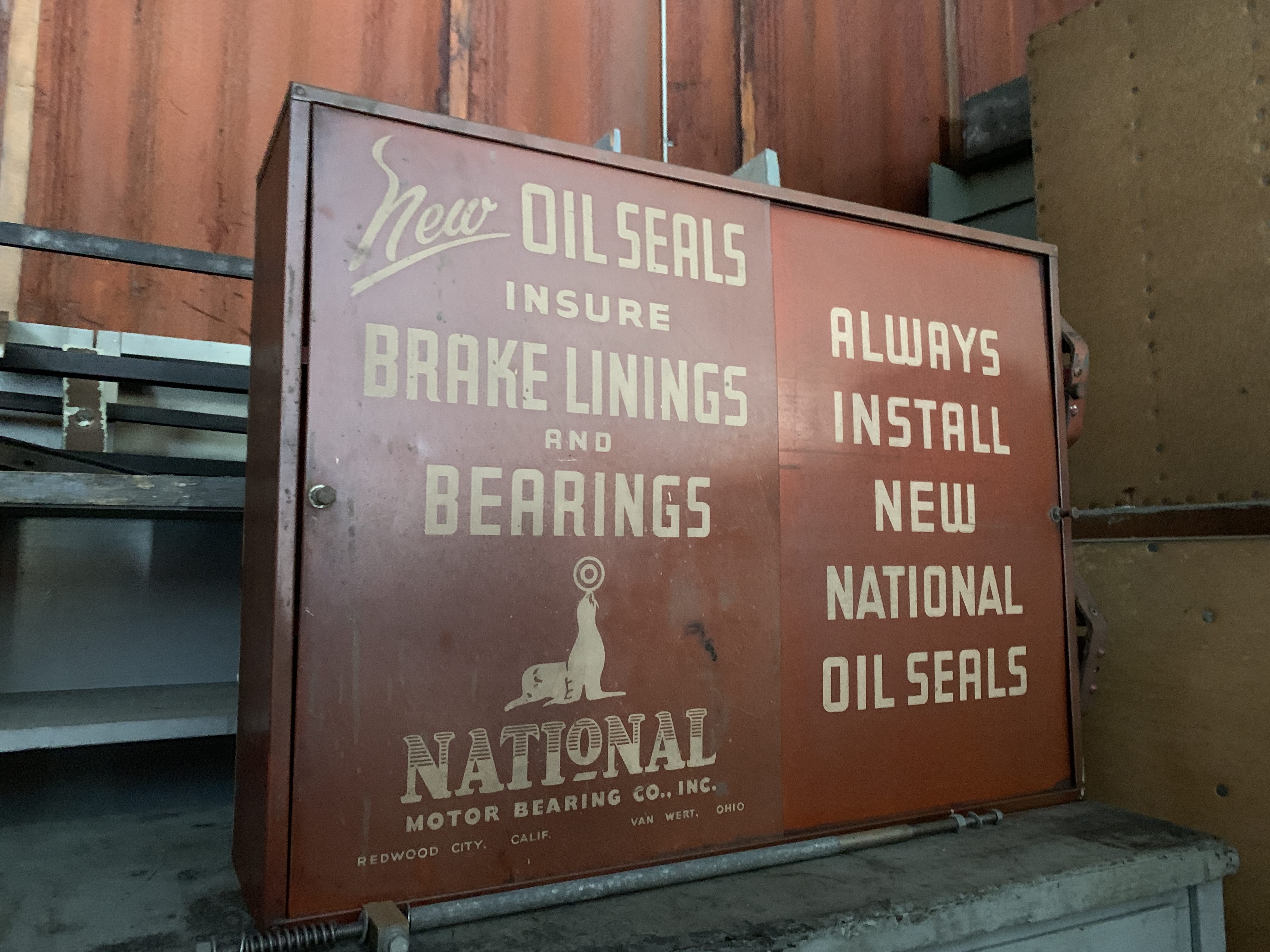 Wix Oil Filter Cartridges Adv. Cabinet; National Motor Bearing Co. Adv. Cabinet; Martin Senour Paint Adv. Cabinet; Pepsi Crate; Wood Adv. Crates; Cast Iron Caboose Stove; Cast Iron Dinner Bell; Cast Iron Kettle; Singer Commercial Sewing Machine; Industrial Tables, Carts & Salvage; Architectural Fretwork & Doors; Steel Wheels; Milk Cans; Oil Cans & Handy Oilers; Vintage Bikes inc. Renegade 3-Speed & Sears Spyder 500; Childs Bike; Lil Red Wagon; Wood Sled; School Bell; Childs Rocker; HOUSEHOLD: AMF Playmaster Ornate Oak Pool Table with Leather Pockets; Pool Cues; Vintage Lights inc. Pool Light; Magic Chef Wine Fridge; Metal Desks; File Cabinets; Office Chairs; Chest of Drawers; Kitchen Cabinets; Bookshelves; Stereos; CB Radios;