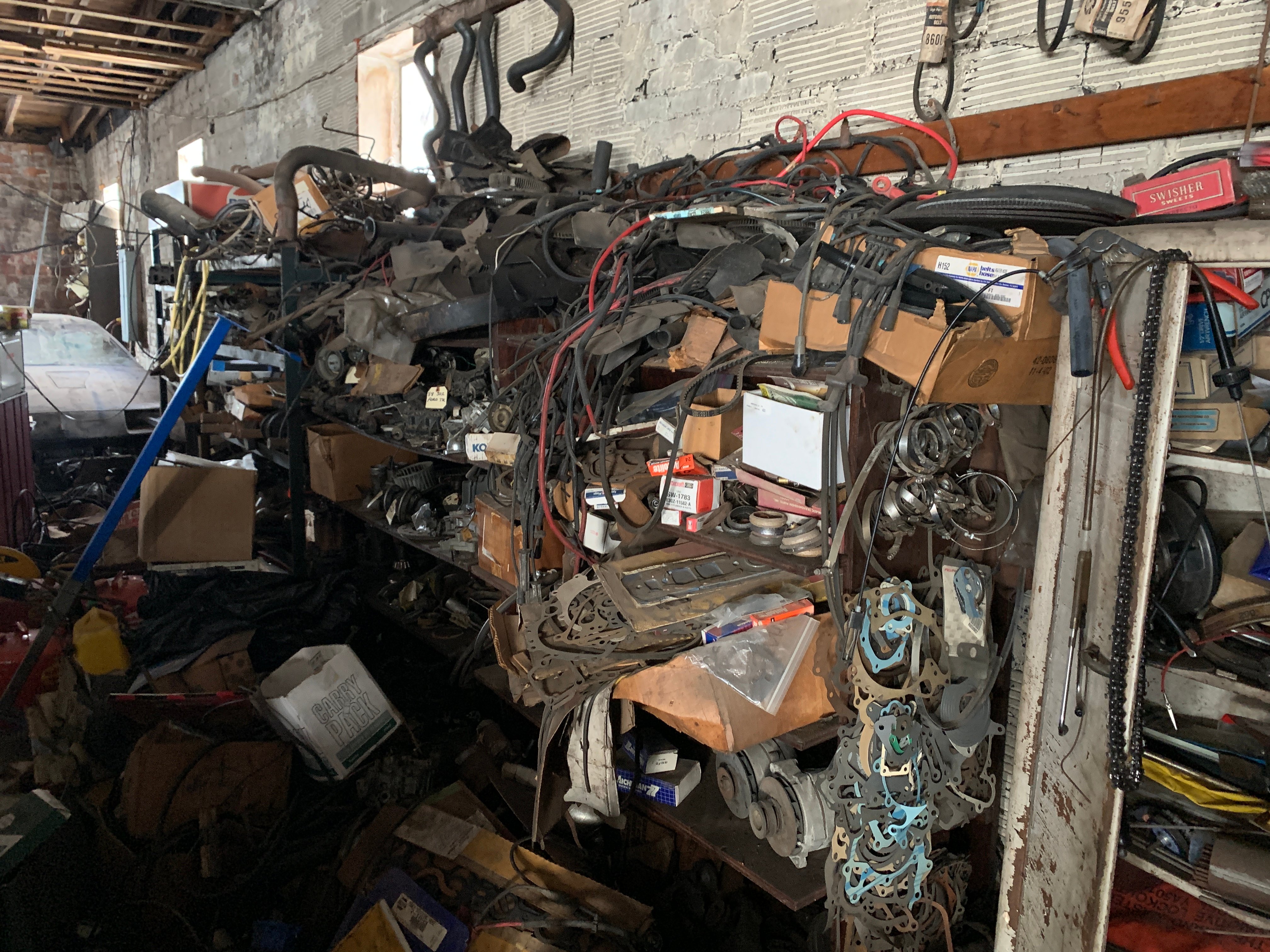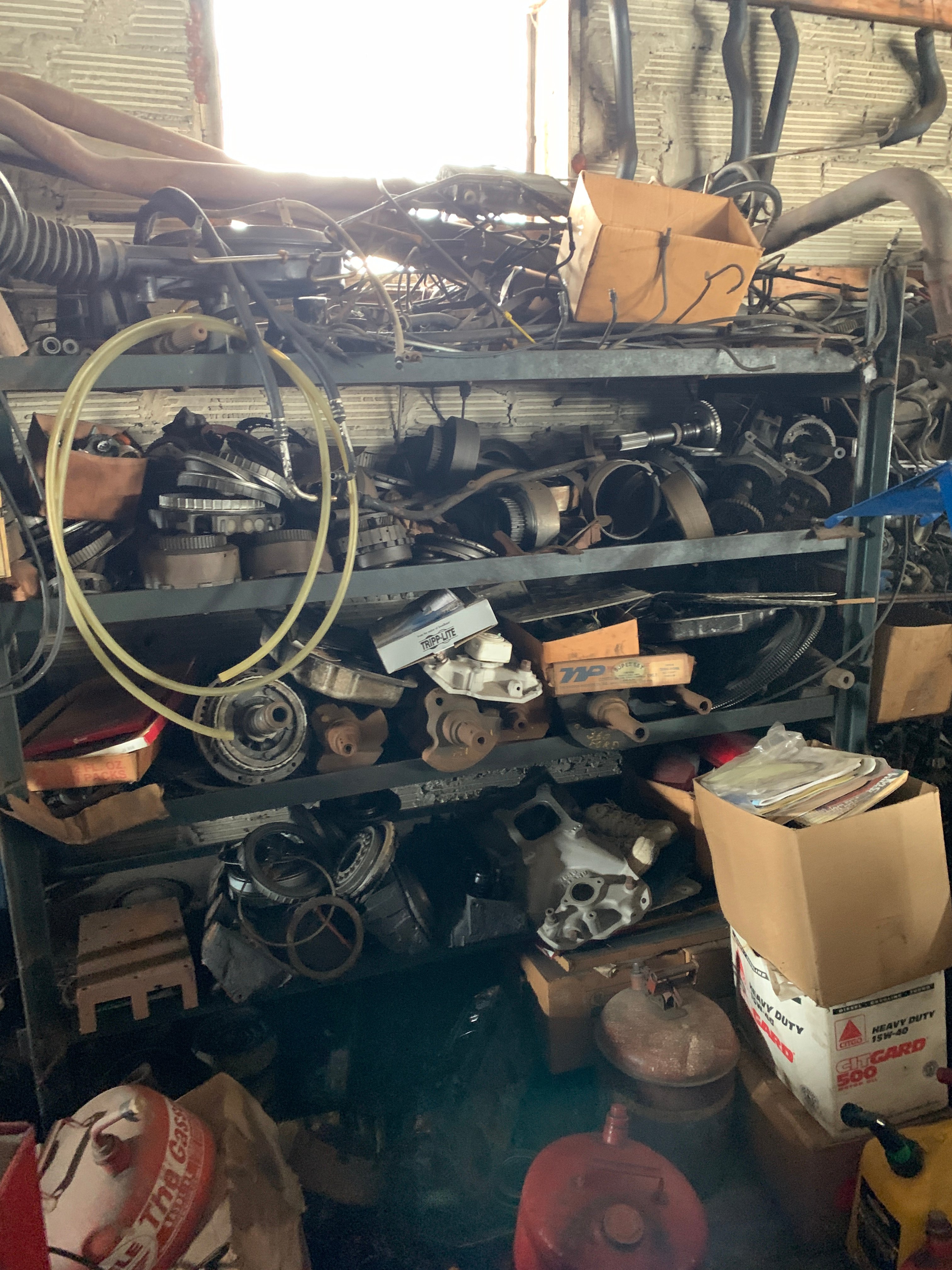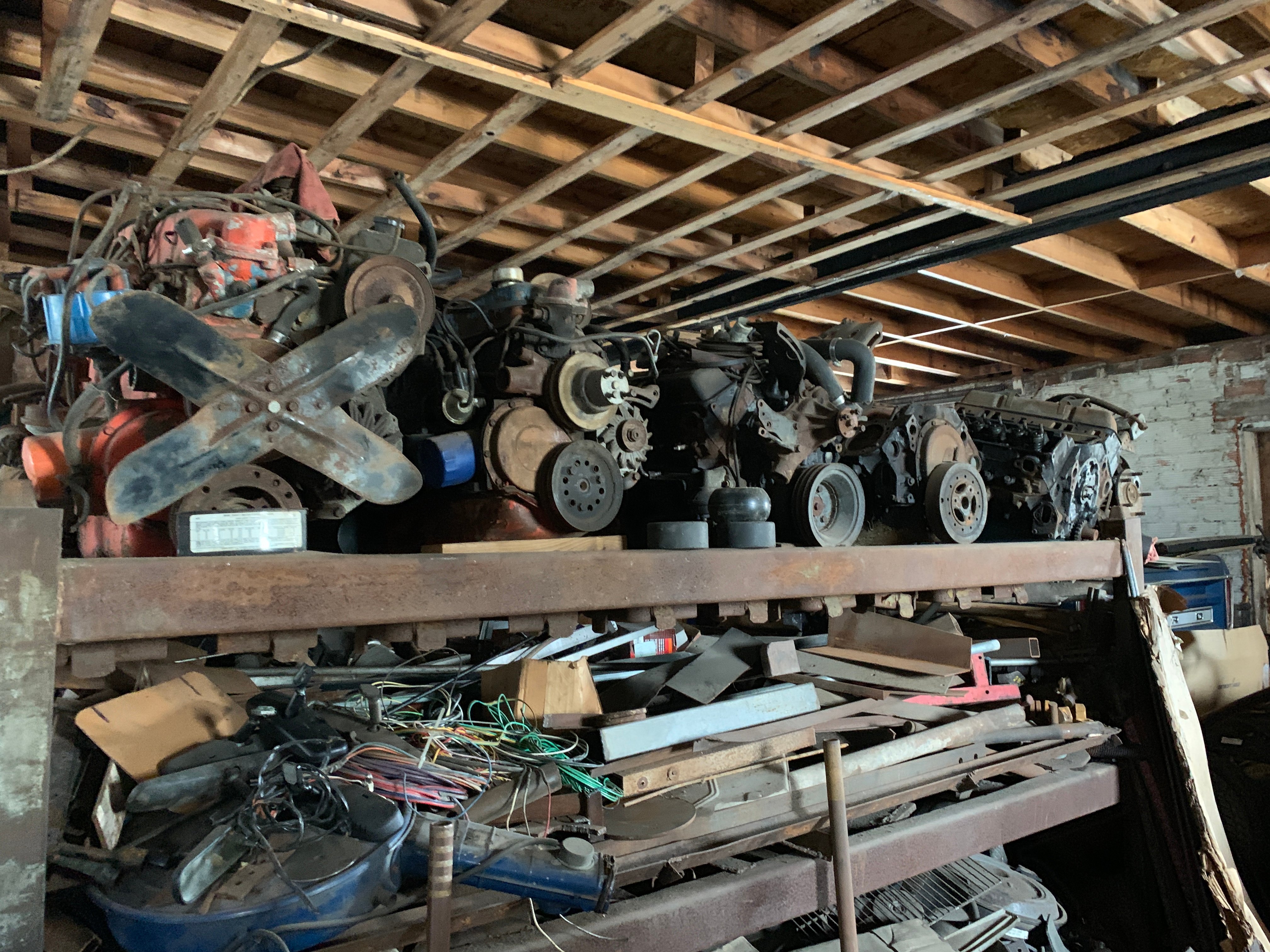 Massive Assortment of Ford & Chevy Auto Parts: Engines, Big Blocks, Transmissions, Parts Motors, Alternators, Frames, Doors, Hoods, Doghouses, Axles, Cabs, Tailgates, Steering Columns, Belts, Gears, Auto Parts, Starters, Mufflers, Rims, Fenders, Seats, Bumpers, Fans, Supplies, Transmission Castings, Engine Cradles, Dash Consoles; Camaro Front-ends & Rear-ends; Lg. Asst. Corvette Doghouses & Parts; Tires; NOS Radiators; New Ford Truck Doors; Engine Hoists; Chain Hoists; A-Frame Hoist; Motor Stands; Snap-On Counselor II Analyzer; Snap-On ACT 3000 Refrigerant Recovery Recycling Center; Snap-On MT290 Fuel Injection Tester; Snap-On Testing Kits; Blue-Point Specialty Tools; Snap-On Specialty Tools; Snap-On Sandblasting Cabinet; Kwik-Way Commercial Sandblasting Cabinet; McCulloch FG6000MK Generator; Porta-Power; Millermatic C200 Welder; Lincoln Hi-Freq Arc Welder; Clarke Weld 100E MK2 Mig Welder; Hobart Welders; Lincoln 250 Wire Matic Welder; Torch Sets; Upright Air Compressors; Ingersoll-Rand Commercial Air Compressor; Battery Chargers; Portable Air Tanks & Compressors; Safety-Kleen 60 Parts Washer; Sioux Steam Parts Cleaner; Van Norman 570 Rotary Broach; Van Norman Engines; Sperry Sonoflux Md. AB100 Magnetic Particle Inspection Machine; Ammco Model 5000 Giant Safe-Turn Brake Drum Lathe; Sheet Metal Brake; W.F. Wells & Sons Md. H, 9 in. Metal Cutting Bandsaw; Peterson Valve Guide Seat Machine; Sunnen Md. LB Grinder; Tamco Valve Grinder; Lempco Drum Lathe; Kam-Knurl #37 Knurling Machine; Tillis Mfg. Co. Md. 119 Lathe; Machinist Lathe; Machinist Tools & Tooling; Calipers; Micrometers; Niagara Shear; Nugier Md. H60-14 60 Ton Shop Press; Carolina Ind. 30 Ton Shop Press; 5 in. Turret Vise; Tru-Drill 12 sp. Drill Press; South Bend Drill Press; Cummins Drill Press; Metal Cutting Band Saw; Bench Grinders; DeWalt Chop Saw; Craftsman Professional Series Compound Miter Box on Stand; Craftsman Combination Sander; Craftsman Cont. Series Table Saw; Makita 5 in. Orbit Sander; Milwaukee Sawzall; Makita Pad Sander; Bostitch Brad & Finish Nailers; DeWalt Framing Nailer; Air Tools; Impacts; ¾ Drive Socket Set; Lg. Asst. of Power & Hand Tools; Wrenches; Pipe Wrenches; Lg. Monkey Wrench; Sockets; Huge Asst. Hardware: Bolts, Nails, Screws, Washers; C-Clamps; Material Rollers; Craftsman Roll-Around Toolboxes; Tool Carts & Totes; Toolboxes; Organizers; Bolt Bins; Drill Indexes; Truck Toolboxes; Electrical Supplies; Electric Service 3 Phase Panels; Auto Supplies: Cleaners, Filters, Repair Parts; Grease Guns; Oilers; Car Manuals; Air Bumper Jack; Floor Jacks; Pallet Racking; Steel, Metal & Wood Shelving; Storage Cabinets; Work Tables; Steel Rolling Carts; Hand Carts; Furniture Dollies; Alum. & Fiberglass Step & Extension Ladders; Folding Ladder; Log Chains; Come-a-longs; Chain Binders; Ratchet Straps; Reese Hitches; Jack Stands; Bottle Jacks; Creepers; Dyna-Glo Pro Heater; Craftsman Shop Vacs; Air Hoses; Ext. Cords; Fans; Squirrel Cage Fan; Shop Lights; Window AC Unit; Garage Door; Lg. Assortment of Scrap Metal; Appliances for Parts; Lumber; Drywall; Patio Furniture; Folding Chairs; Turkey Fryer; Hoses & Reels; Bug Light; Live Traps;