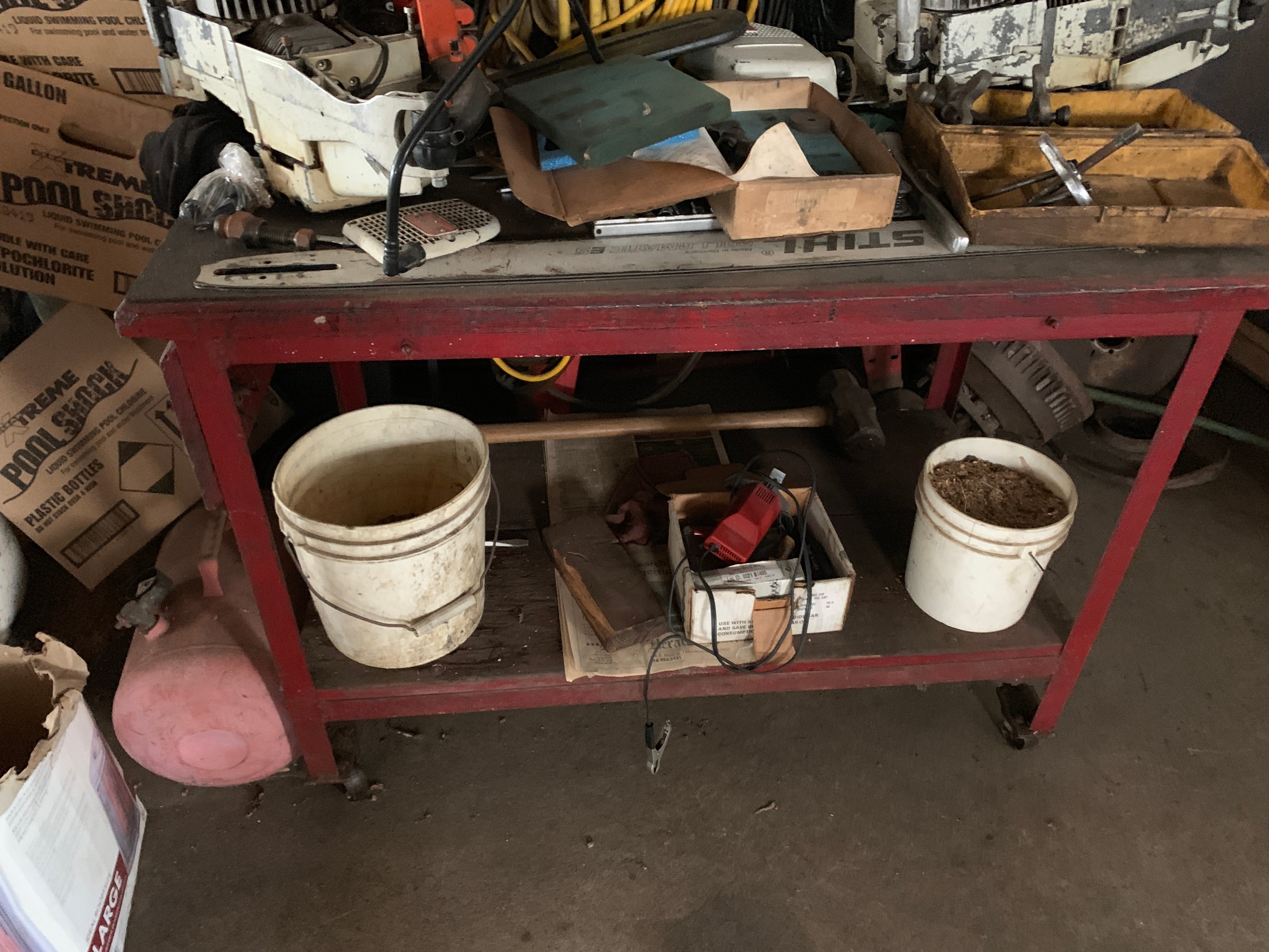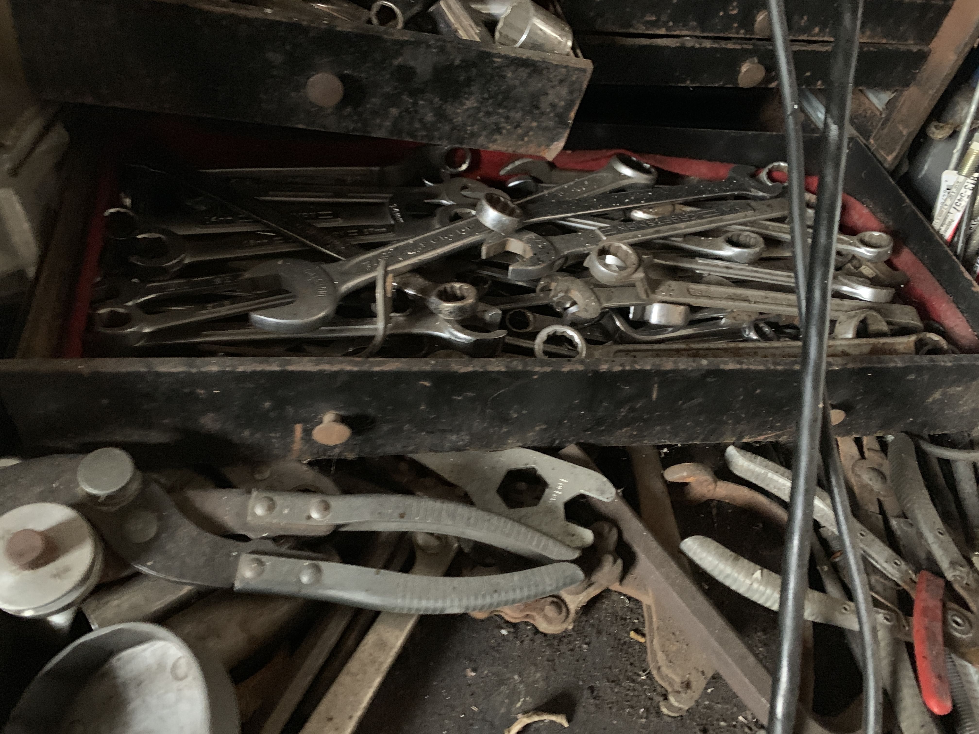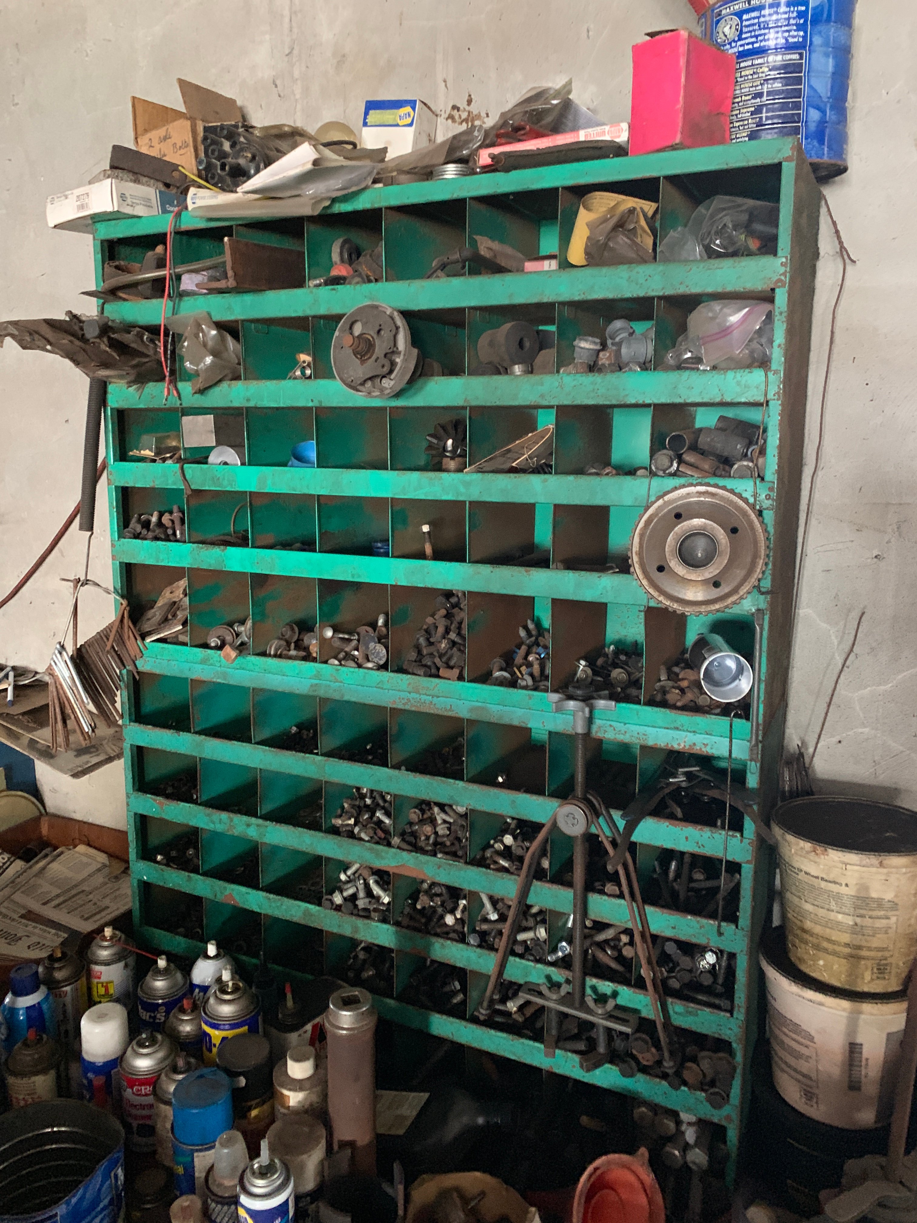 Massive Assortment of Ford & Chevy Auto Parts: Engines, Big Blocks, Transmissions, Parts Motors, Alternators, Frames, Doors, Hoods, Doghouses, Axles, Cabs, Tailgates, Steering Columns, Belts, Gears, Auto Parts, Starters, Mufflers, Rims, Fenders, Seats, Bumpers, Fans, Supplies, Transmission Castings, Engine Cradles, Dash Consoles; Camaro Front-ends & Rear-ends; Lg. Asst. Corvette Doghouses & Parts; Tires; NOS Radiators; New Ford Truck Doors; Engine Hoists; Chain Hoists; A-Frame Hoist; Motor Stands; Snap-On Counselor II Analyzer; Snap-On ACT 3000 Refrigerant Recovery Recycling Center; Snap-On MT290 Fuel Injection Tester; Snap-On Testing Kits; Blue-Point Specialty Tools; Snap-On Specialty Tools; Snap-On Sandblasting Cabinet; Kwik-Way Commercial Sandblasting Cabinet; McCulloch FG6000MK Generator; Porta-Power; Millermatic C200 Welder; Lincoln Hi-Freq Arc Welder; Clarke Weld 100E MK2 Mig Welder; Hobart Welders; Lincoln 250 Wire Matic Welder; Torch Sets; Upright Air Compressors; Ingersoll-Rand Commercial Air Compressor; Battery Chargers; Portable Air Tanks & Compressors; Safety-Kleen 60 Parts Washer; Sioux Steam Parts Cleaner; Van Norman 570 Rotary Broach; Van Norman Engines; Sperry Sonoflux Md. AB100 Magnetic Particle Inspection Machine; Ammco Model 5000 Giant Safe-Turn Brake Drum Lathe; Sheet Metal Brake; W.F. Wells & Sons Md. H, 9 in. Metal Cutting Bandsaw; Peterson Valve Guide Seat Machine; Sunnen Md. LB Grinder; Tamco Valve Grinder; Lempco Drum Lathe; Kam-Knurl #37 Knurling Machine; Tillis Mfg. Co. Md. 119 Lathe; Machinist Lathe; Machinist Tools & Tooling; Calipers; Micrometers; Niagara Shear; Nugier Md. H60-14 60 Ton Shop Press; Carolina Ind. 30 Ton Shop Press; 5 in. Turret Vise; Tru-Drill 12 sp. Drill Press; South Bend Drill Press; Cummins Drill Press; Metal Cutting Band Saw; Bench Grinders; DeWalt Chop Saw; Craftsman Professional Series Compound Miter Box on Stand; Craftsman Combination Sander; Craftsman Cont. Series Table Saw; Makita 5 in. Orbit Sander; Milwaukee Sawzall; Makita Pad Sander; Bostitch Brad & Finish Nailers; DeWalt Framing Nailer; Air Tools; Impacts; ¾ Drive Socket Set; Lg. Asst. of Power & Hand Tools; Wrenches; Pipe Wrenches; Lg. Monkey Wrench; Sockets; Huge Asst. Hardware: Bolts, Nails, Screws, Washers; C-Clamps; Material Rollers; Craftsman Roll-Around Toolboxes; Tool Carts & Totes; Toolboxes; Organizers; Bolt Bins; Drill Indexes; Truck Toolboxes; Electrical Supplies; Electric Service 3 Phase Panels; Auto Supplies: Cleaners, Filters, Repair Parts; Grease Guns; Oilers; Car Manuals; Air Bumper Jack; Floor Jacks; Pallet Racking; Steel, Metal & Wood Shelving; Storage Cabinets; Work Tables; Steel Rolling Carts; Hand Carts; Furniture Dollies; Alum. & Fiberglass Step & Extension Ladders; Folding Ladder; Log Chains; Come-a-longs; Chain Binders; Ratchet Straps; Reese Hitches; Jack Stands; Bottle Jacks; Creepers; Dyna-Glo Pro Heater; Craftsman Shop Vacs; Air Hoses; Ext. Cords; Fans; Squirrel Cage Fan; Shop Lights; Window AC Unit; Garage Door; Lg. Assortment of Scrap Metal; Appliances for Parts; Lumber; Drywall; Patio Furniture; Folding Chairs; Turkey Fryer; Hoses & Reels; Bug Light; Live Traps;