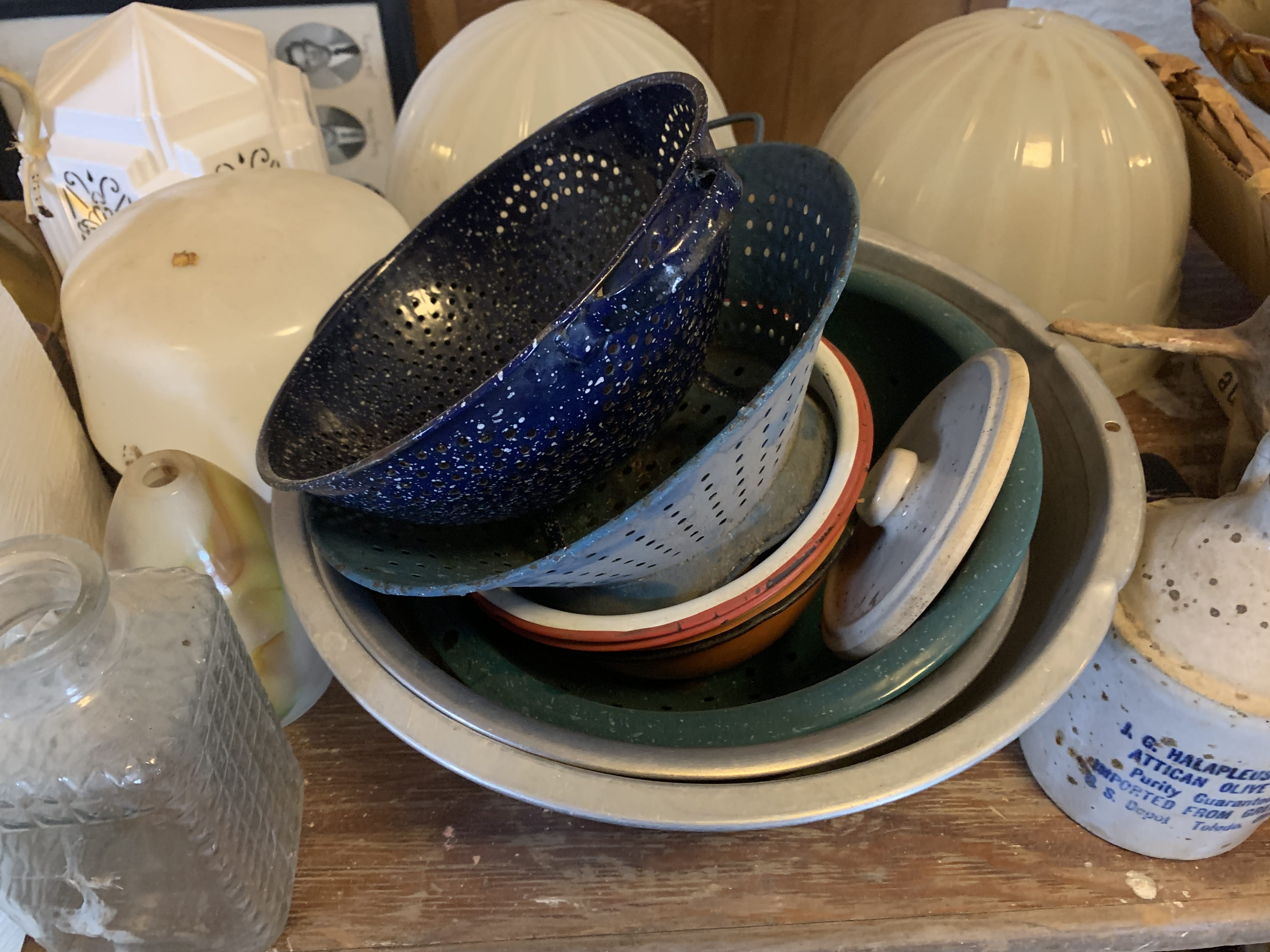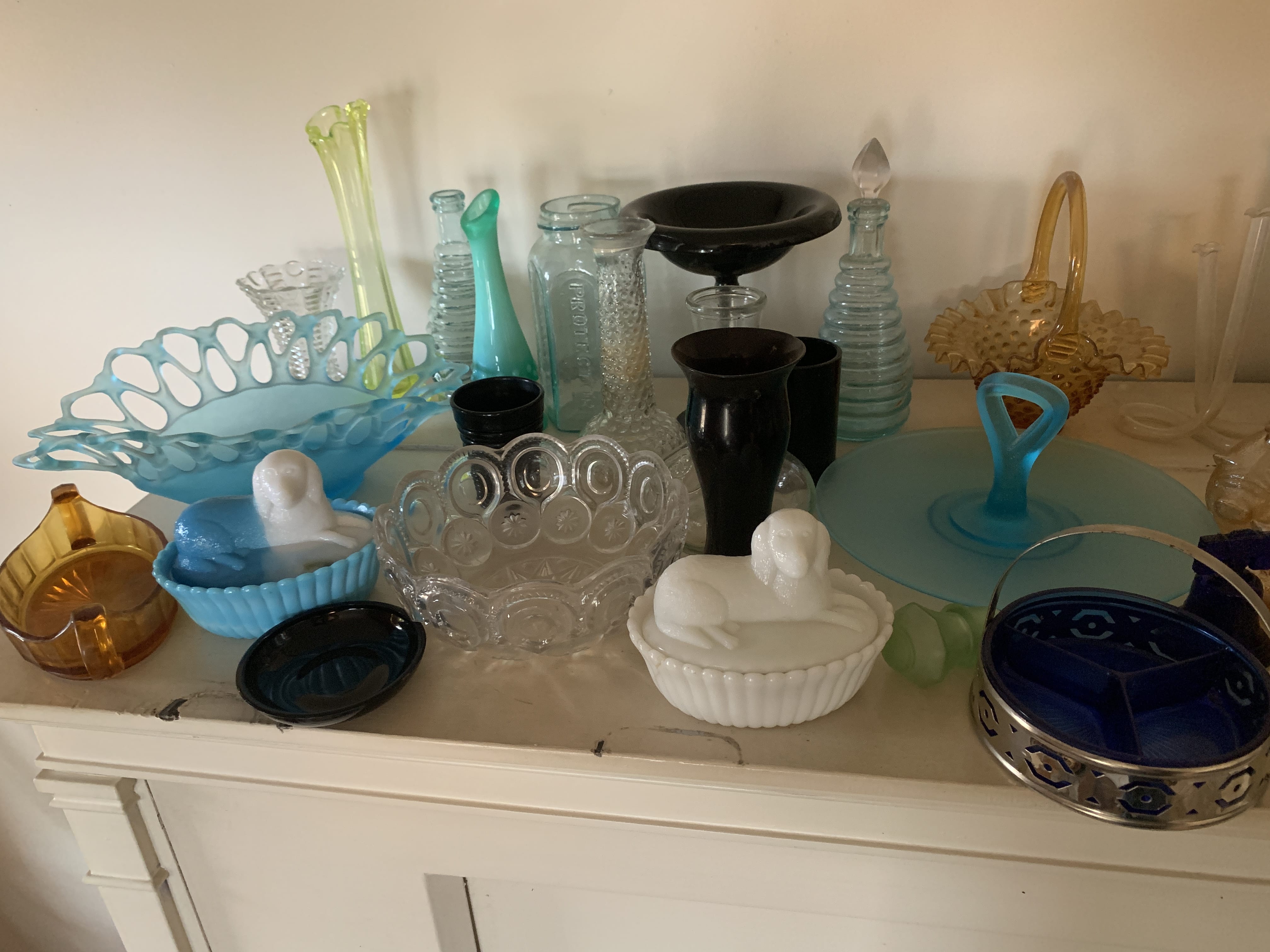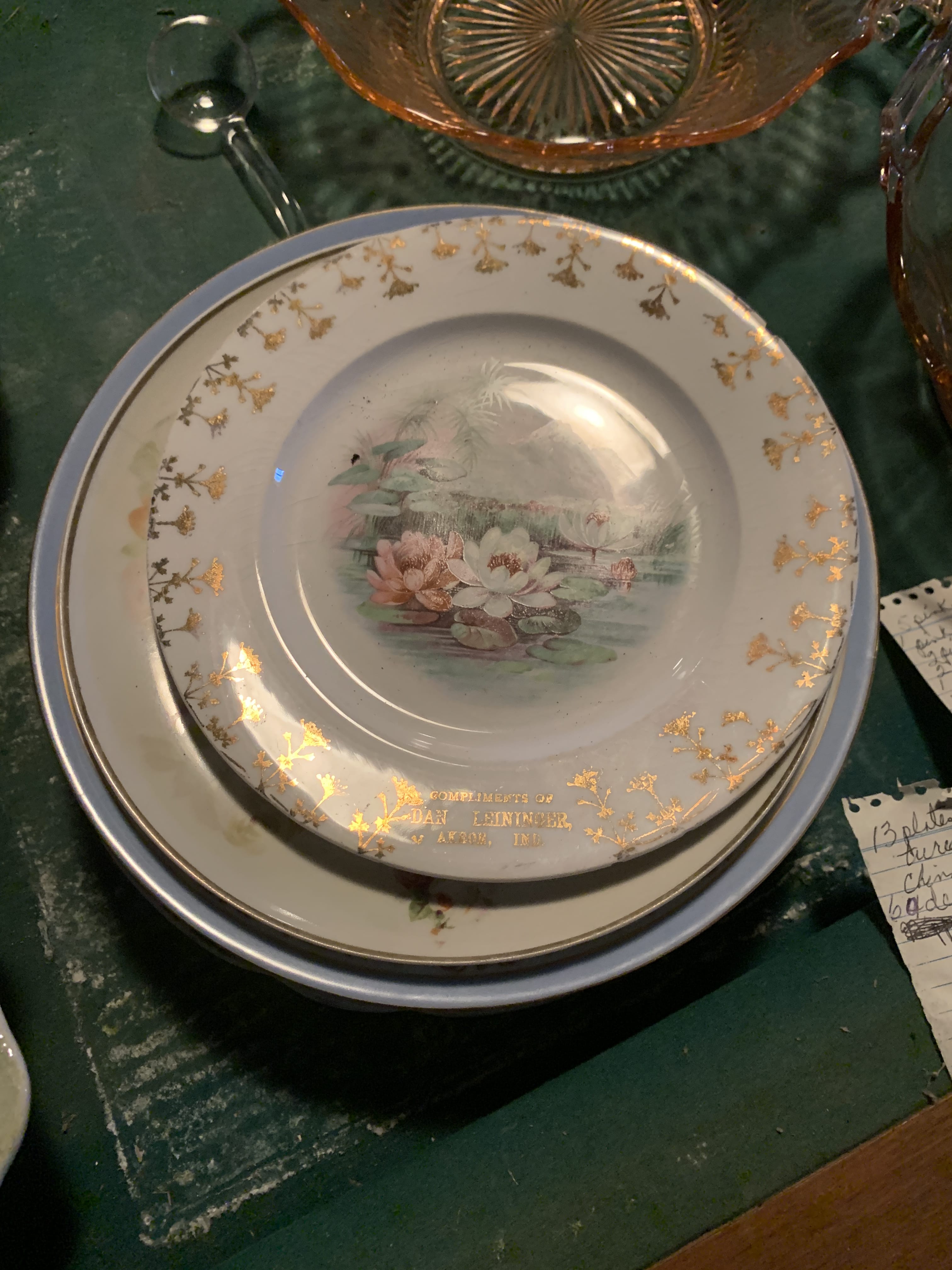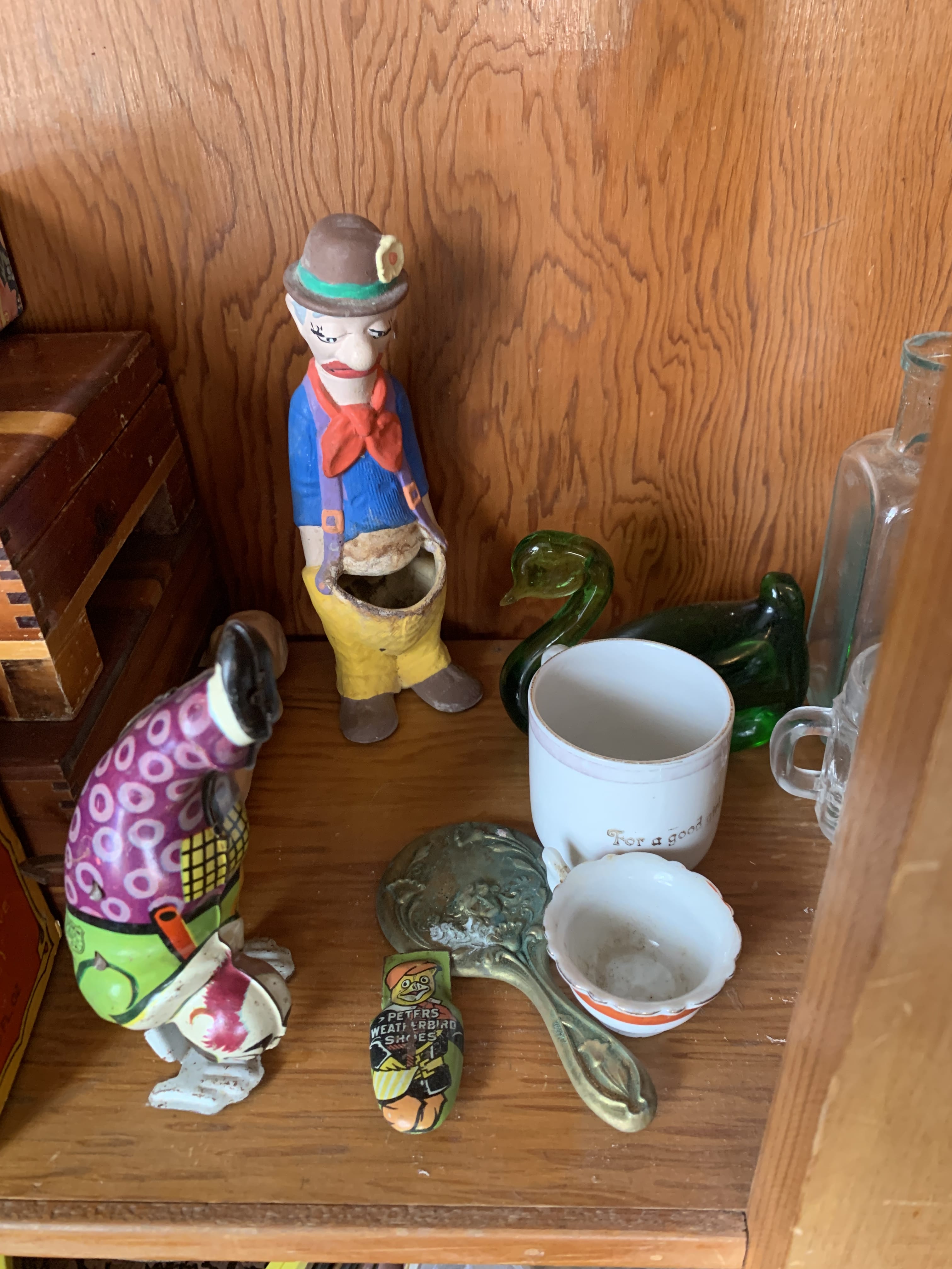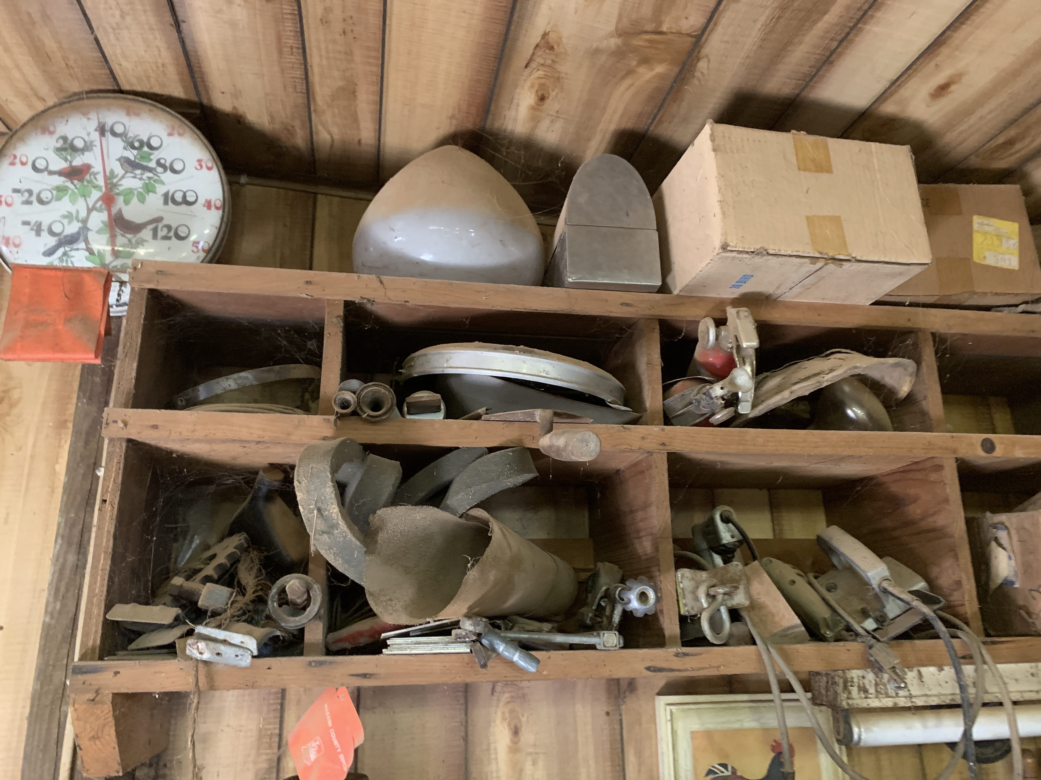 Hoosier Cabinet; Pie Safe; Dry Sink; Secretary; Vanity with Mirror; Mirrored Shelf; Slant Front Desk; Kitchen Table & Chairs; Spoon Carved Lamp Table; Lamp Tables; Drop Leaf Table; Corner Cabinet; Kitchen Cabinet Base; Wooden Medicine Cabinet; Painted Furniture; Player Piano & Rolls; Sewing Table; Carved Platform Rocker; Wooden Rockers; Wicker Rocker; Plank Bottom Chairs; Ice Cream Chairs; Straight Chairs; Highchair; Fern Pedestal Stand; Wooden Cradle; Trunk; Piano Stools with Ball & Claw Feet; Oil Lamps inc. Mini; Hurricane Lamp; Slag Glass Lamp; GWW Lamp; Vintage Light Fixtures & Lamp Shades; Cast Iron Bridge Lamp; Cast Iron Brackets; Wall Phone; Mantle & Wall Clocks; Anniversary Clocks; Cuckoo Clock; Oil Paintings; Stained Glass; Quilts; Coverlets; Vintage Clothing; Embroidered Linens, Doilies & Handkerchiefs; Dresser Sets; Covered Powders; Pocket Watches inc. Illinois 17 Jewel, Ingersoll Junior, Heyworth; Pocket Knives inc. Case, Barlow, Solingen; Pyrex; Fire King; Lg. Asst. Green, Clear, Yellow & Pink Depression Glass; Fenton; Cobalt Blue Glass; Carnival Pitcher & Glass Sets; Hen on Nests; Covered Fish on Nest; Cut, Etched & Pressed Glass; Cracker Jars; Milk Glass; Bavarian Pcs.; Silver Plate; Tea Set; Gold-Finished Glass; Ruby Blass; Sets of China; Hand Painted Porcelain; Deep Bowls; Stemware; Cream & Sugars; Vases; Figurines; Juice Sets; Pitchers; Juice Sets; Spooners; Head Vases; Toothpicks; Pedestal Cake Plates; Salt & Peppers; Matching Pitcher & Bowl with Chamber Pot Set; Canister Sets; Salt Dips; Paperweights; Cookie Jars; McCoy Pottery; Crocks & Crock Bowls; Uhl Crock Jug; Olive Oil Crock; Iron skillets inc. Griswold No. 5; Primitive Wood Bowl; Canning Jars inc. Blue; Glass Canisters; Picnic Baskets; Canes & Walking Sticks; Adv. Yardsticks; Fulton County Bottling Co. Bottle, Rochester, Ind.; Vintage Bottles inc. Coke & Apothecary; Candy Jars; Bottle Tops; Merritt Advertising Plates, Gilead, Ind.; Childrens Advertising Plate, Ross Smith Gilead, Ind.; Akron & Macy, IND. Adv. Thermometers; Kitchen-Aid Lighted Sign; Weathervanes; Lg. Asst. of Steel & Wooden Wagon Wheels & Gears; Garden Cultivator; Walking Plow; Reel Mowers; Grinding Stones; Well Bucket; Lanterns; Whiskey Barrel; Wood Rake; Horse Collar; Tractor Seats inc. Advance; Apple Butter Stirrer; Masher; Corn Jobber; Parlor Stove; Feed Carts w/ Scales; Chicken Nest & Crates; Lard Press; Copper Fire Extinguisher; Milk Can; Stainless Milkers; Copper Boilers; Galvanized Tubs & Buckets; Egg Baskets; Sad Irons; Chamber Pots; Wringer Washer; Kitchen Scale; Retro Fans; Kitchen Primitives; Butter & Candle Molds; Lunch Pail; Slaw Cutter; Meat Cleaver; Enamelware; Popcorn Popper; Stanley 45 Plane with Cutters in Orig. Box; Antique Tools; Vintage Organizers; Industrial Stools; Oilers & Oil Cans; Adv. Tins; Wooden Ironing Board; Crosscut & Hand Saws; Korea Era Military Uniforms; Ammo & Ammo Boxes; Vintage Fishing Baits inc. Heddon, Arbogast & Keelings; Straight Razors; Masonic Edition of the Bible; Vintage Photo Albums; Audel Guides; Farmers Directory & Account Book; Vintage Typewriters; Slate Chalkboards; Annuals; Childrens Books; Sears Catalog Holder; Crams Imperial Globe; Marbles inc. Aggies; Vintage Bowling Pin; Magnus Air Organ; Wood Sleds; Roller Skates; Baby Stroller; Dolls inc. Black Americana; Childs Kitchen Playset; Roy Rogers Guitar; Farm Toys; Wind-Up Toys; Metal Toy Trucks inc. Wyandotte & Structo; Erector Sets; Childs Drum; Toy Vacuum;