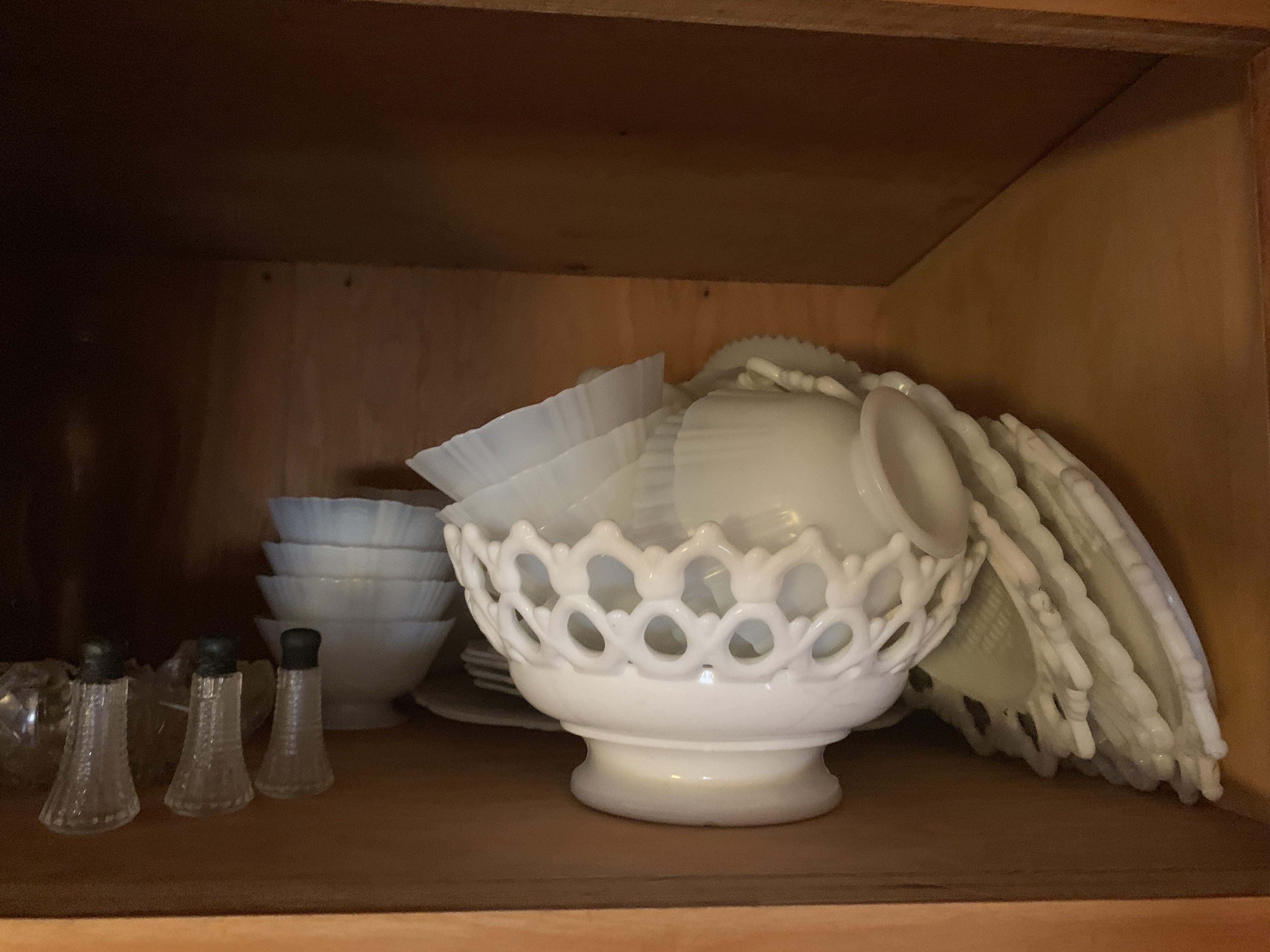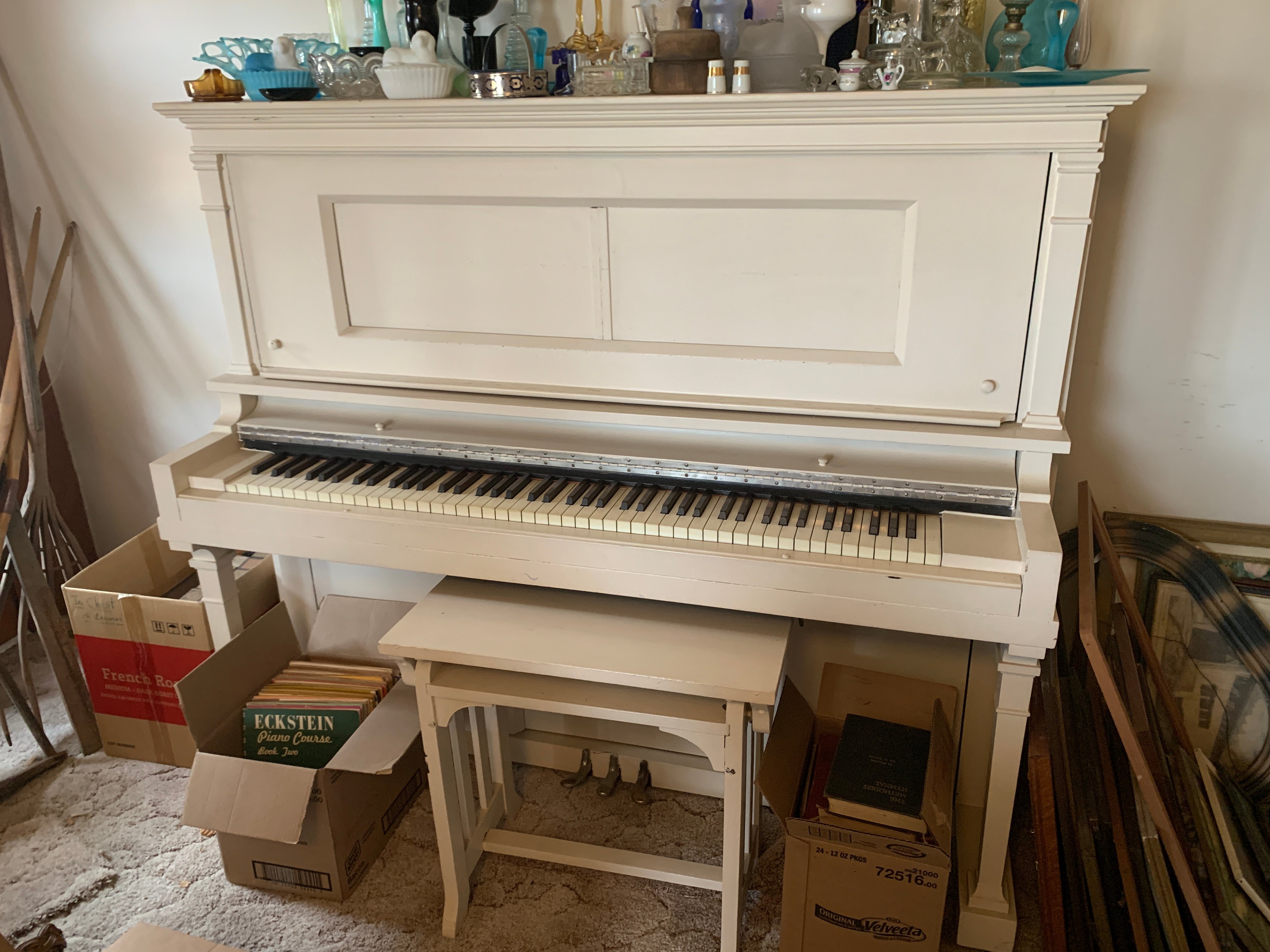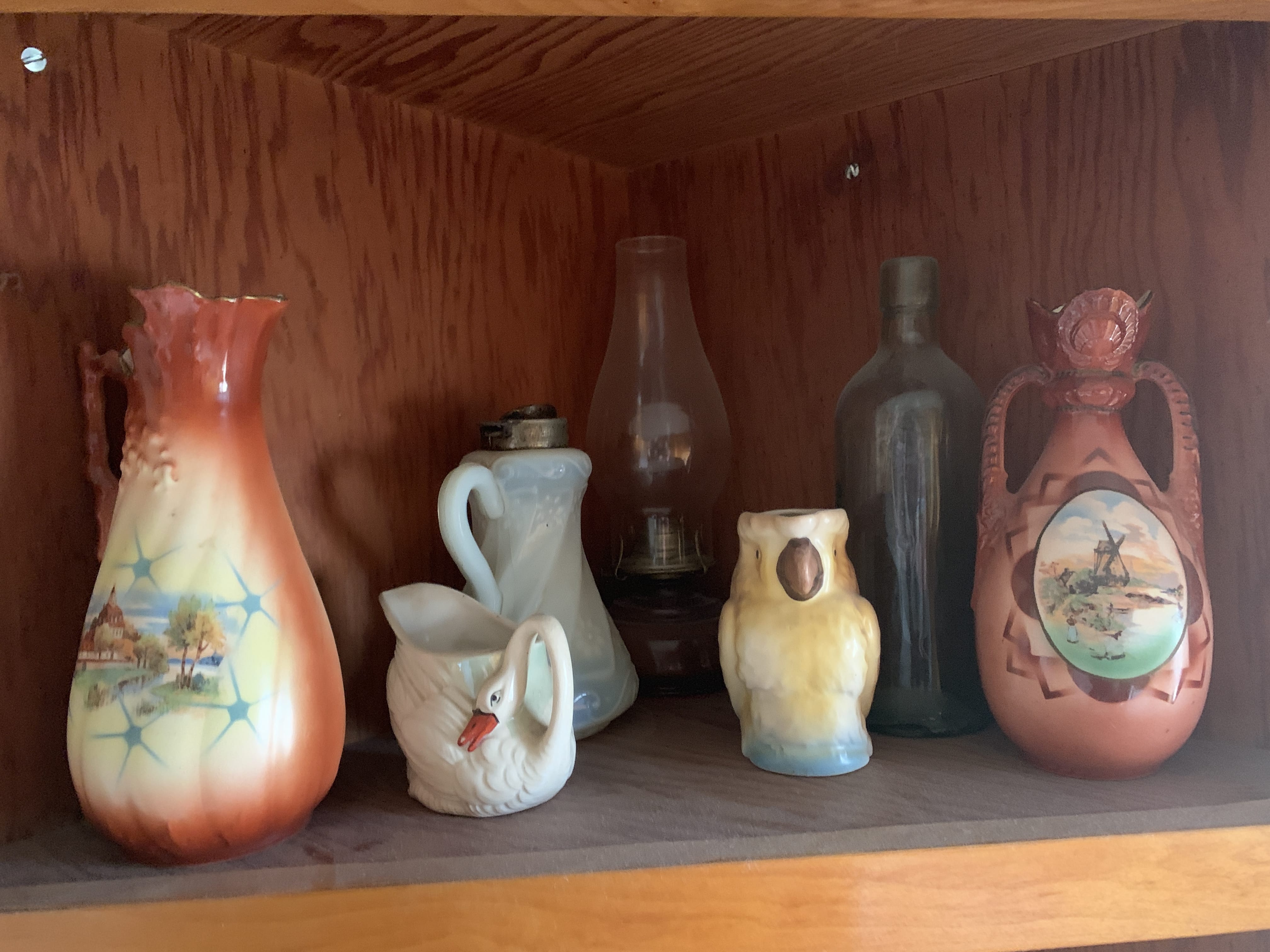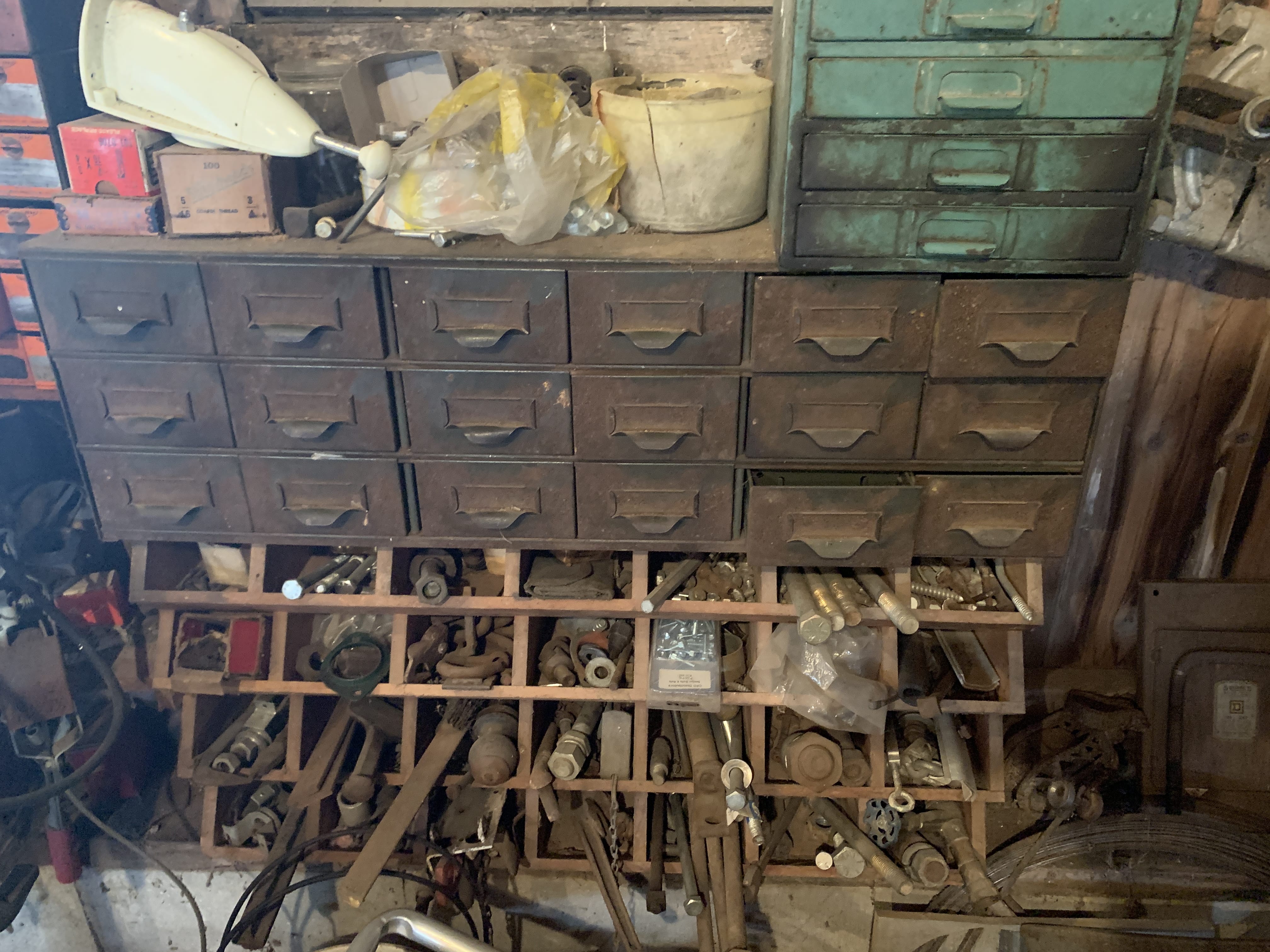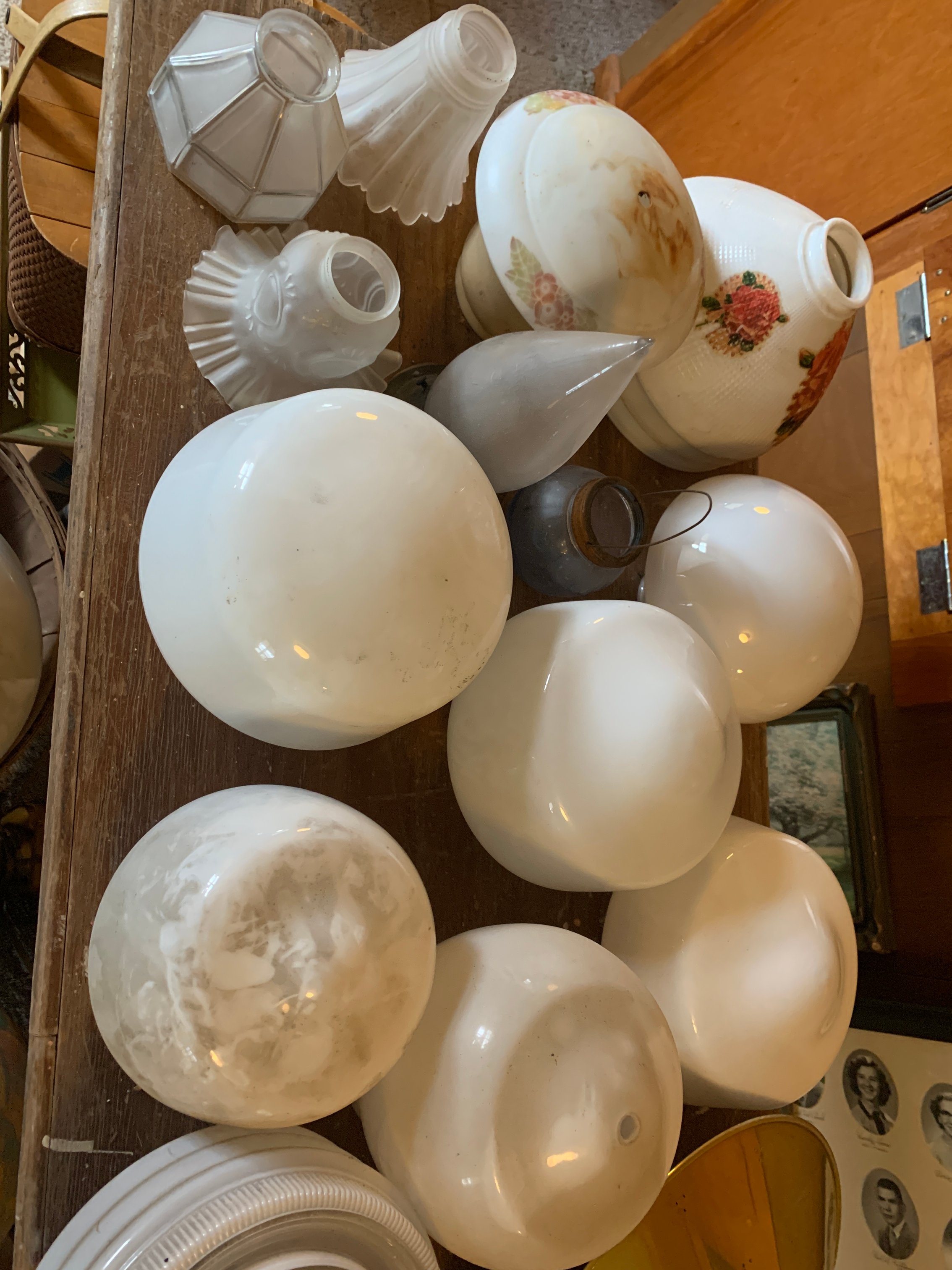 Hoosier Cabinet; Pie Safe; Dry Sink; Secretary; Vanity with Mirror; Mirrored Shelf; Slant Front Desk; Kitchen Table & Chairs; Spoon Carved Lamp Table; Lamp Tables; Drop Leaf Table; Corner Cabinet; Kitchen Cabinet Base; Wooden Medicine Cabinet; Painted Furniture; Player Piano & Rolls; Sewing Table; Carved Platform Rocker; Wooden Rockers; Wicker Rocker; Plank Bottom Chairs; Ice Cream Chairs; Straight Chairs; Highchair; Fern Pedestal Stand; Wooden Cradle; Trunk; Piano Stools with Ball & Claw Feet; Oil Lamps inc. Mini; Hurricane Lamp; Slag Glass Lamp; GWW Lamp; Vintage Light Fixtures & Lamp Shades; Cast Iron Bridge Lamp; Cast Iron Brackets; Wall Phone; Mantle & Wall Clocks; Anniversary Clocks; Cuckoo Clock; Oil Paintings; Stained Glass; Quilts; Coverlets; Vintage Clothing; Embroidered Linens, Doilies & Handkerchiefs; Dresser Sets; Covered Powders; Pocket Watches inc. Illinois 17 Jewel, Ingersoll Junior, Heyworth; Pocket Knives inc. Case, Barlow, Solingen; Pyrex; Fire King; Lg. Asst. Green, Clear, Yellow & Pink Depression Glass; Fenton; Cobalt Blue Glass; Carnival Pitcher & Glass Sets; Hen on Nests; Covered Fish on Nest; Cut, Etched & Pressed Glass; Cracker Jars; Milk Glass; Bavarian Pcs.; Silver Plate; Tea Set; Gold-Finished Glass; Ruby Blass; Sets of China; Hand Painted Porcelain; Deep Bowls; Stemware; Cream & Sugars; Vases; Figurines; Juice Sets; Pitchers; Juice Sets; Spooners; Head Vases; Toothpicks; Pedestal Cake Plates; Salt & Peppers; Matching Pitcher & Bowl with Chamber Pot Set; Canister Sets; Salt Dips; Paperweights; Cookie Jars; McCoy Pottery; Crocks & Crock Bowls; Uhl Crock Jug; Olive Oil Crock; Iron skillets inc. Griswold No. 5; Primitive Wood Bowl; Canning Jars inc. Blue; Glass Canisters; Picnic Baskets; Canes & Walking Sticks; Adv. Yardsticks; Fulton County Bottling Co. Bottle, Rochester, Ind.; Vintage Bottles inc. Coke & Apothecary; Candy Jars; Bottle Tops; Merritt Advertising Plates, Gilead, Ind.; Childrens Advertising Plate, Ross Smith Gilead, Ind.; Akron & Macy, IND. Adv. Thermometers; Kitchen-Aid Lighted Sign; Weathervanes; Lg. Asst. of Steel & Wooden Wagon Wheels & Gears; Garden Cultivator; Walking Plow; Reel Mowers; Grinding Stones; Well Bucket; Lanterns; Whiskey Barrel; Wood Rake; Horse Collar; Tractor Seats inc. Advance; Apple Butter Stirrer; Masher; Corn Jobber; Parlor Stove; Feed Carts w/ Scales; Chicken Nest & Crates; Lard Press; Copper Fire Extinguisher; Milk Can; Stainless Milkers; Copper Boilers; Galvanized Tubs & Buckets; Egg Baskets; Sad Irons; Chamber Pots; Wringer Washer; Kitchen Scale; Retro Fans; Kitchen Primitives; Butter & Candle Molds; Lunch Pail; Slaw Cutter; Meat Cleaver; Enamelware; Popcorn Popper; Stanley 45 Plane with Cutters in Orig. Box; Antique Tools; Vintage Organizers; Industrial Stools; Oilers & Oil Cans; Adv. Tins; Wooden Ironing Board; Crosscut & Hand Saws; Korea Era Military Uniforms; Ammo & Ammo Boxes; Vintage Fishing Baits inc. Heddon, Arbogast & Keelings; Straight Razors; Masonic Edition of the Bible; Vintage Photo Albums; Audel Guides; Farmers Directory & Account Book; Vintage Typewriters; Slate Chalkboards; Annuals; Childrens Books; Sears Catalog Holder; Crams Imperial Globe; Marbles inc. Aggies; Vintage Bowling Pin; Magnus Air Organ; Wood Sleds; Roller Skates; Baby Stroller; Dolls inc. Black Americana; Childs Kitchen Playset; Roy Rogers Guitar; Farm Toys; Wind-Up Toys; Metal Toy Trucks inc. Wyandotte & Structo; Erector Sets; Childs Drum; Toy Vacuum;