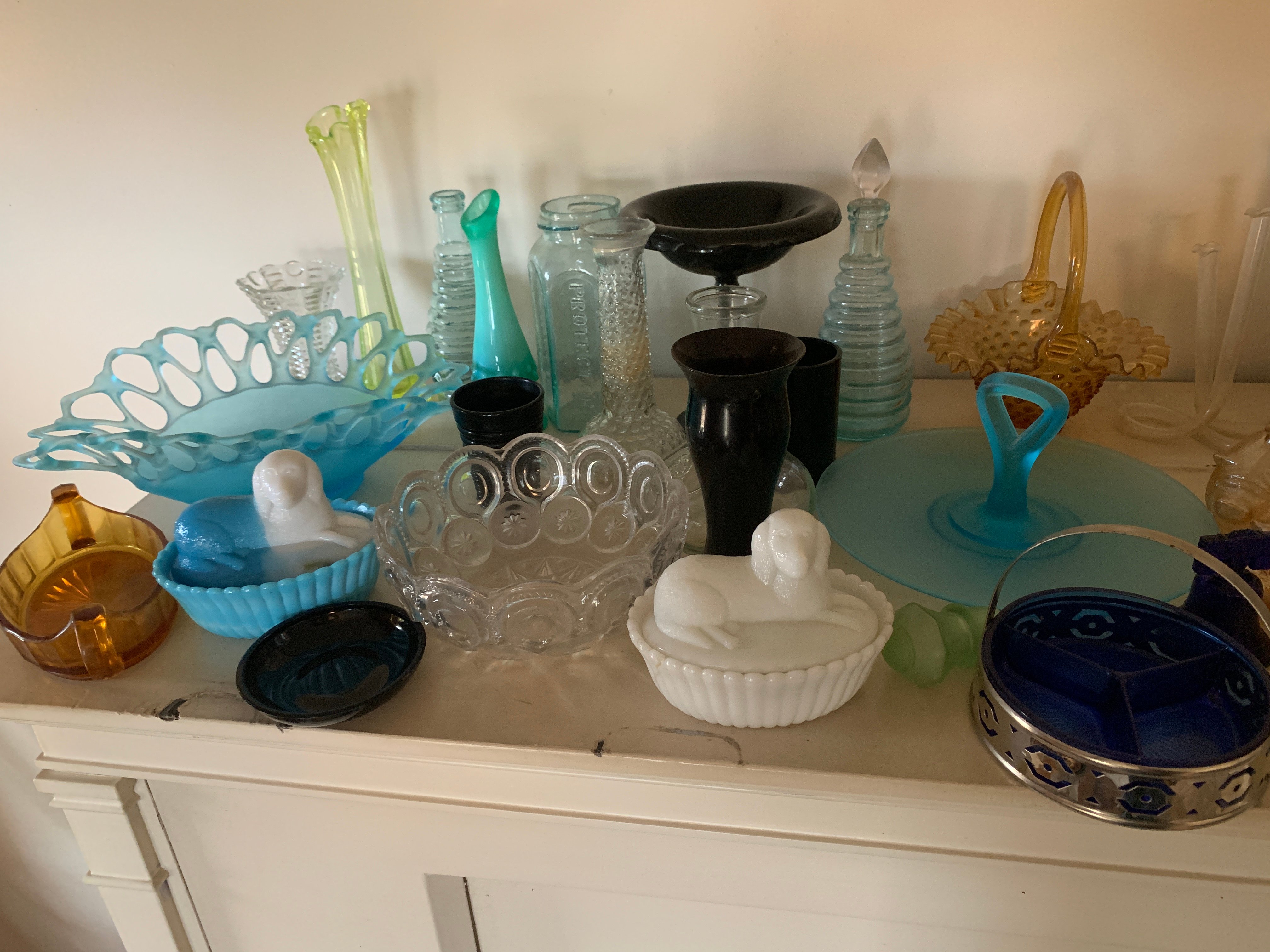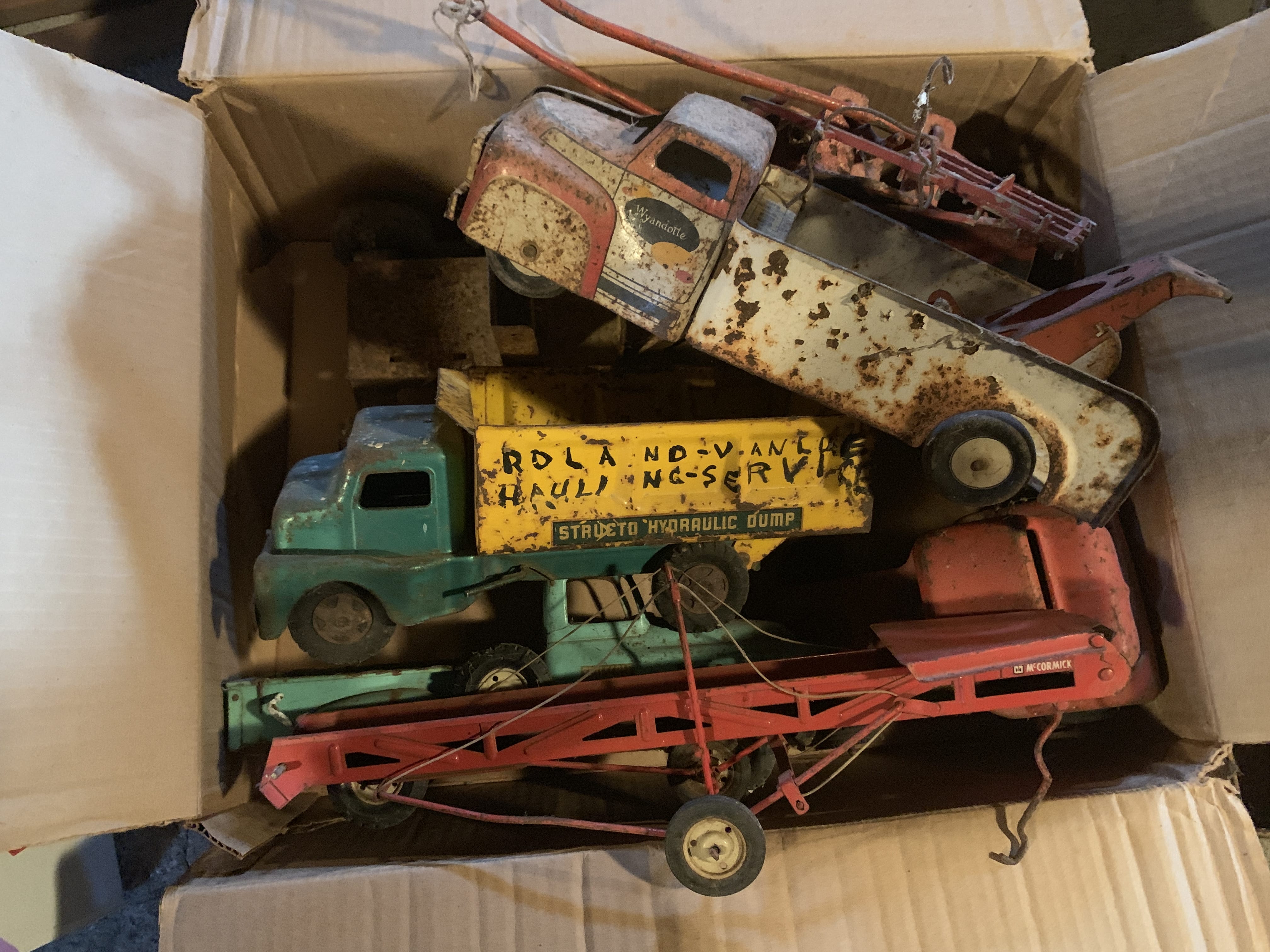 ANTIQUES – PRIMITIVES – GLASSWARE – AKRON, GILEAD & MACY ADVERTISING – TOYS – POCKET WATCHES – ANTIQUE TOOLS – STANLEY NO. 45 PLANE IN ORIGINAL BOX – WEATHERVANES – LARGE ASSORTMENT OF DEPRESSION GLASS