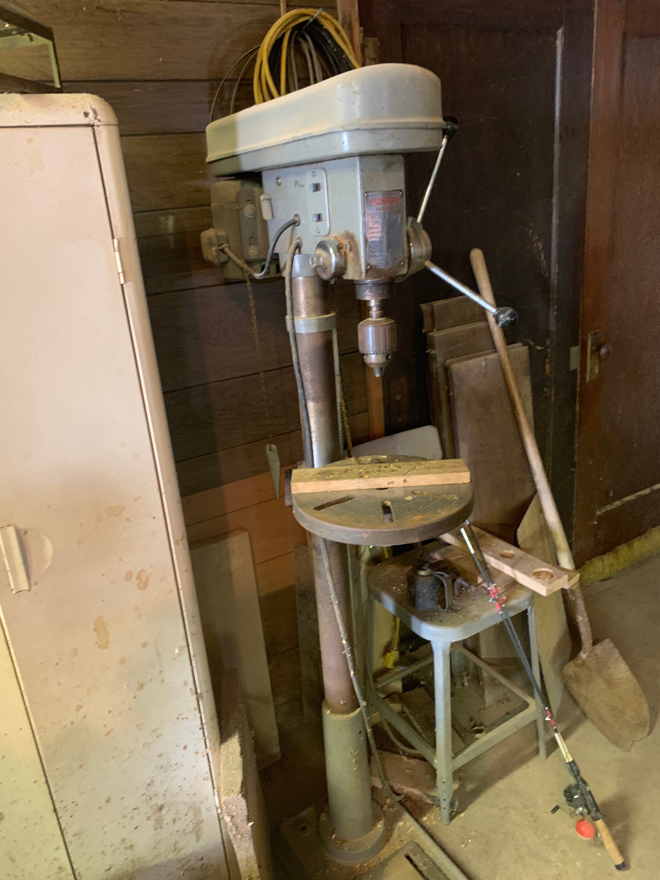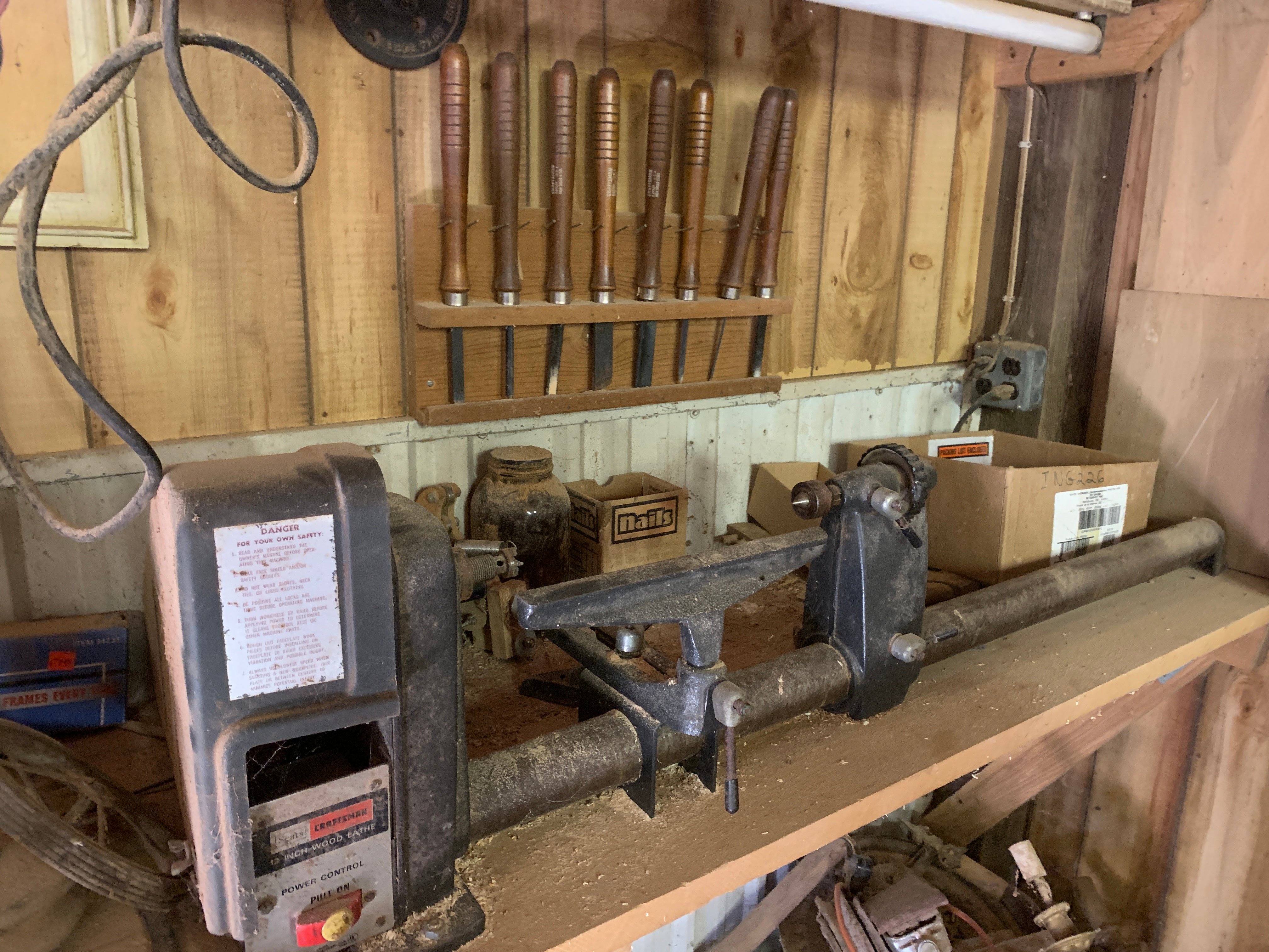 Diesel Ford 5900 Tractor, WF, 3,963 hrs.; Hay Wagons; Parker Gravity Wagon; Pony Cart; 3pt. Grader Blade; Portable Auger; Quick Hitch; Tractor Cylinders; Win Power PTO Generator 15KW; John Deere Wagon; John Deere Sprayer; 2-Wheel Trailer; Orchard Sprayer; Gas Powered Log Splitter; Over Head Fuel Tanks; Snapper Scrambler Zero Turn Mower; Lawn Roller; John Deere Chainsaw; Lawn Wagons; Wheelbarrow; Garden Tools; Torch Set; Lincoln 225 Welder; Battery Charger; Bench Grinder; Rockford Drill Press; Delta Drum Sander; Metal Cutting Band Saw; Craftsman Radial Arm Saw; Performax Scroll Saw; Craftsman Table Saw; Craftsman Lathe; Parks Surface Planer; 4-inch Joiner; Mortising Machine; Craftsman Router; Craftsman Spindle Sander; Disk Sander; Strip Sander; Combination Sander; Power & Hand Tools; Asst. Hardware; Bar Clamps; C Clamps; Organizers; Toolboxes; Woodworking Stains & Supplies; Lg. Asst. Native, Rough Sawn & Dimensional Lumber; Antique Project Furniture, Porch Posts & Antique Furniture Parts; Salvage Building Materials: Wood Floors, Porch Posts, Wood Shutters; Firewood; Gates & Hog Panels; Fence Posts; Chain Link Gates; Ext. & Step Ladders; Ext. Cords; Shop Vacs; Shelving; HOUSEHOLD: Kenmore Upright Freezer; Roper Washing Machine; Frigidaire Dryer; China Cabinet; Recliner; Safe; Pots, Pans, Dishes, Bakeware, Utensils, Sm. Appliances; Pressure Canner; Cast Aluminum Cookware; Kenmore Sewing Machine; Fabric & Sewing Notions; Drying Racks; Folding Tables & Chairs; Heaters; Fans; Electronics; Lamps & Mirrors; Home & Holiday Décor; Christmas Villages; Christmas Tree; Baskets;