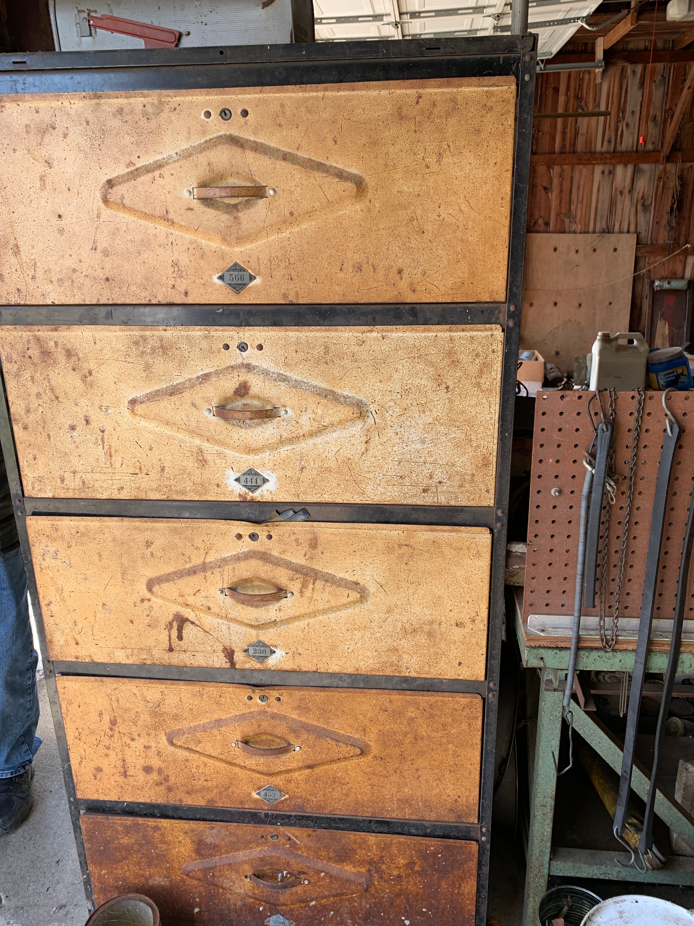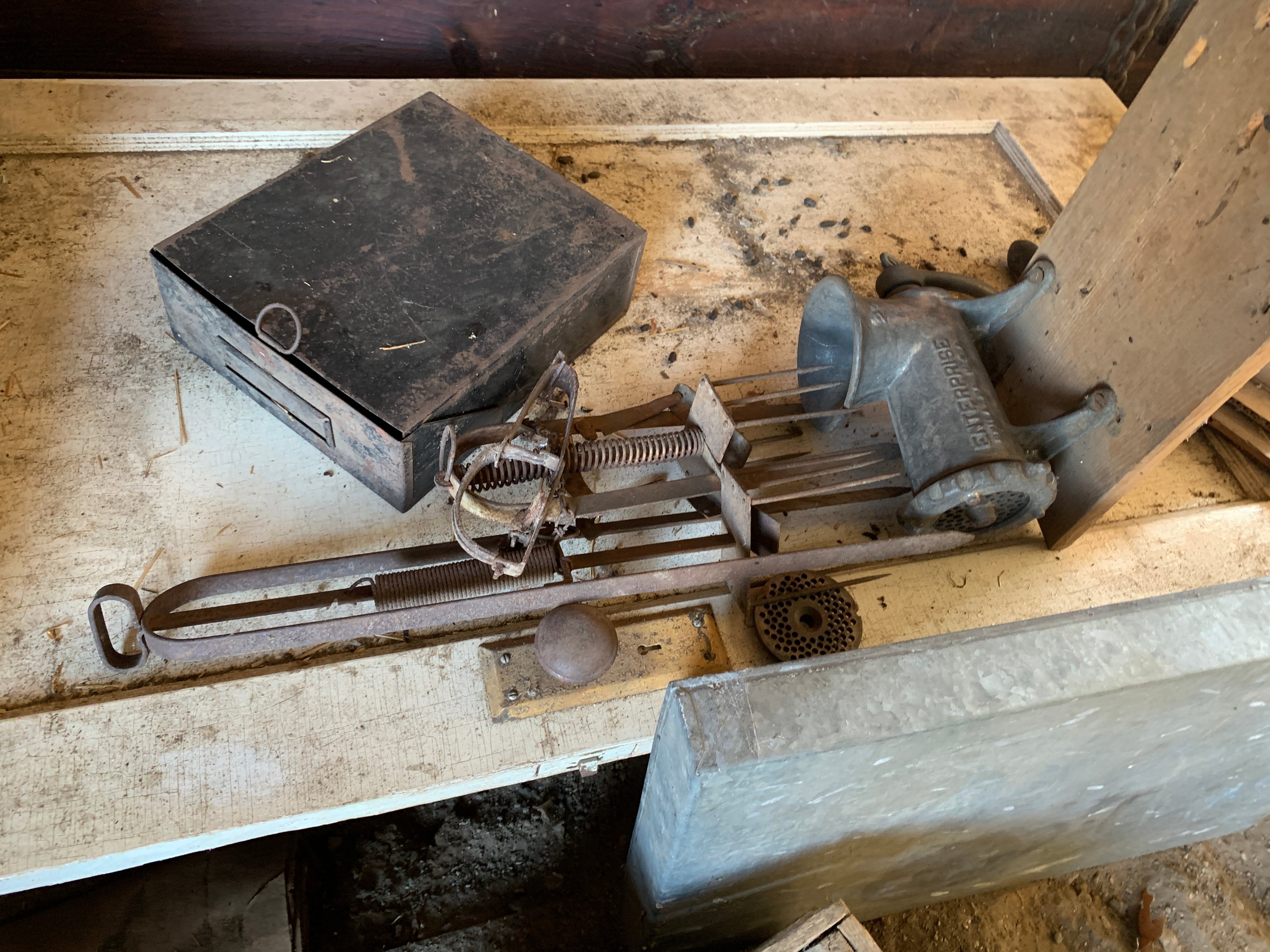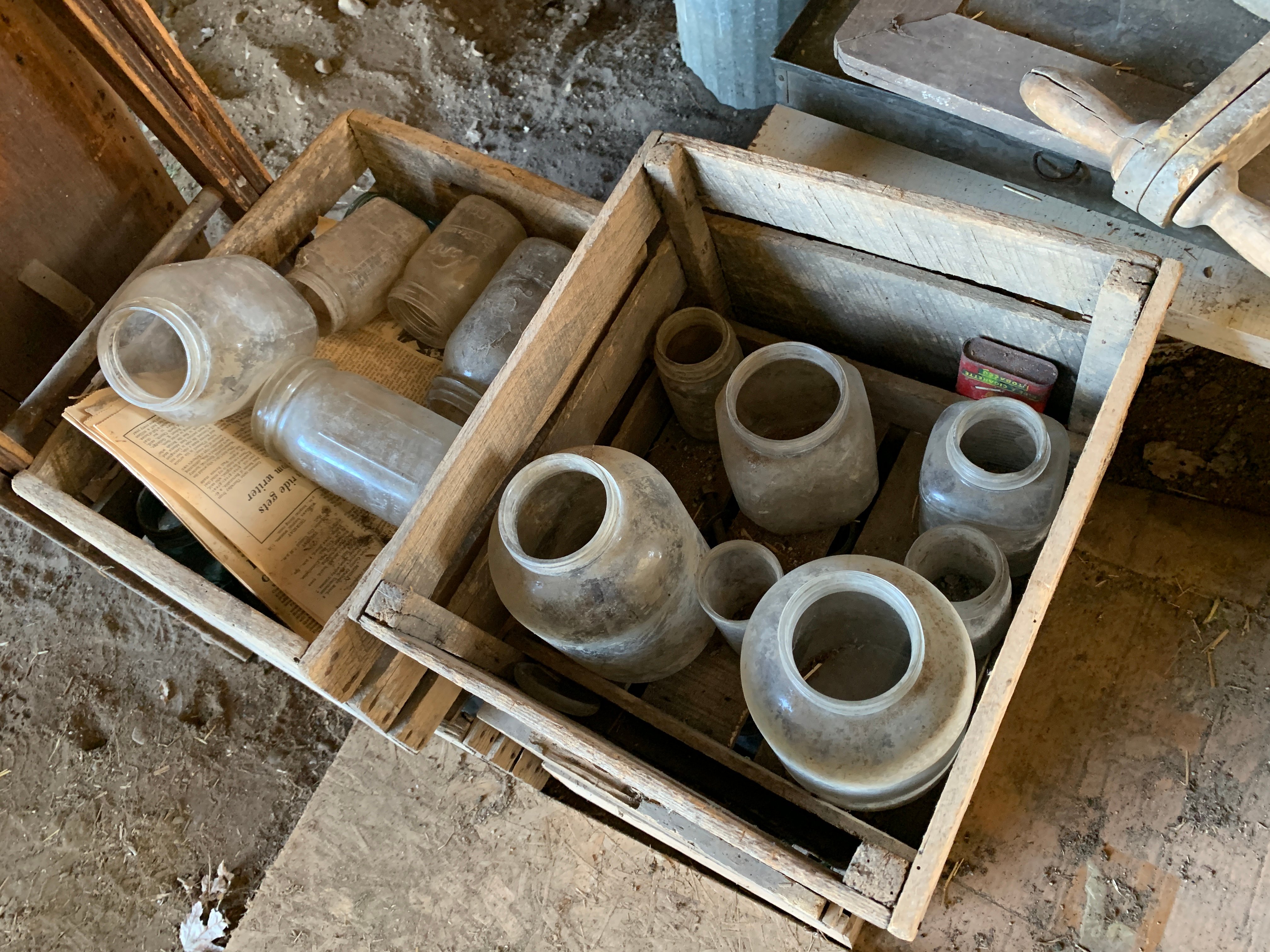 Horse Drawn Sleigh; Primitive Wood Table; Drop Leaf Table & 4 Chairs; Chest of Drawers; Oak Office Chair; Antique Mirror; Aluminum Canister Set; Canning Jars inc. Blue; Enamelware; Wood Advertising Crates; Safe-Way Food Lockers; Berry Boxes; Meat Grinder; Wood Ironing Board; Mobil Oil Can; Gal. Oil Cans & Handy Oilers; Antique Tools; Pulleys; Huffy Scout Bike; Wood Sled; Globe; Vintage Toy Trucks & Farm Toys; HOUSEHOLD: Lg. Chest Freezer; Kenmore Refrigerator; Kenmore Gas Stove; Kitchen Tables & Chairs; Tilt-Top Table; Lift Chair; Twin Beds; Sofa Tables; File Cabinets; Lamps inc. Floor; Dressing Mirror; Microwave; Pots, Pans, Dishes, Bakeware, Utensils & Sm. Appliances; Dyson Vacuum; Cabinet Sewing Machine; Sewing Notions; Exercise Bike;