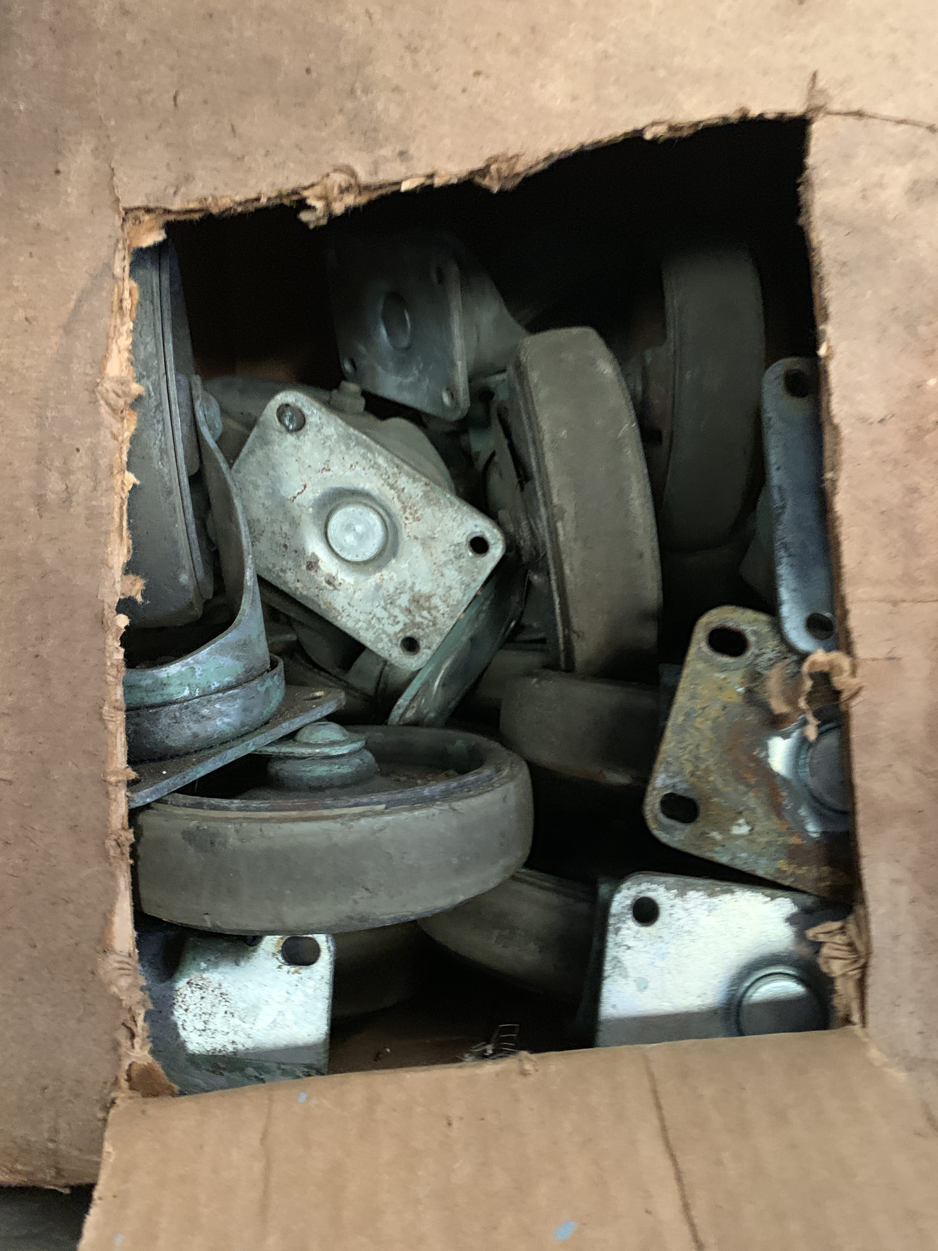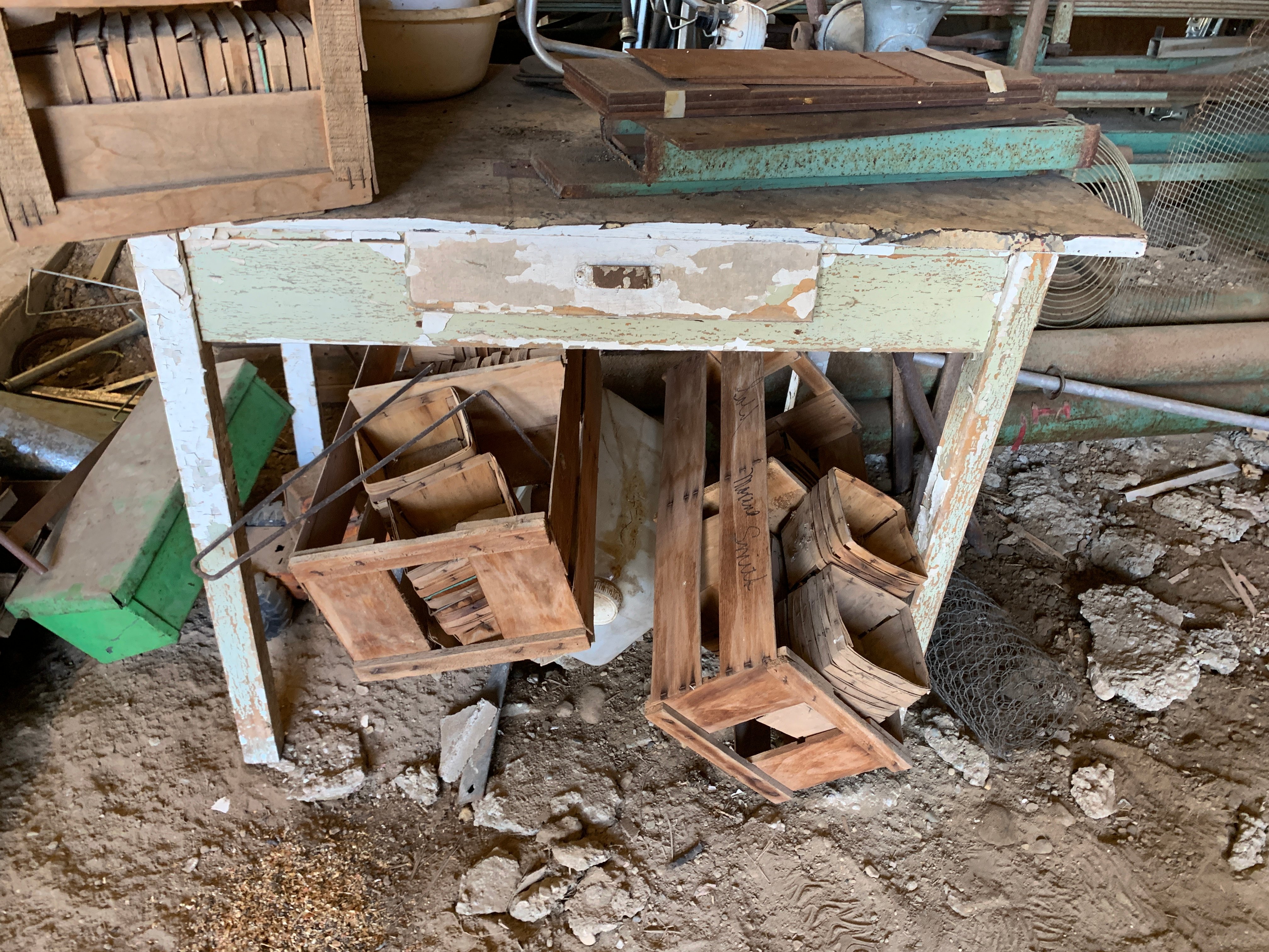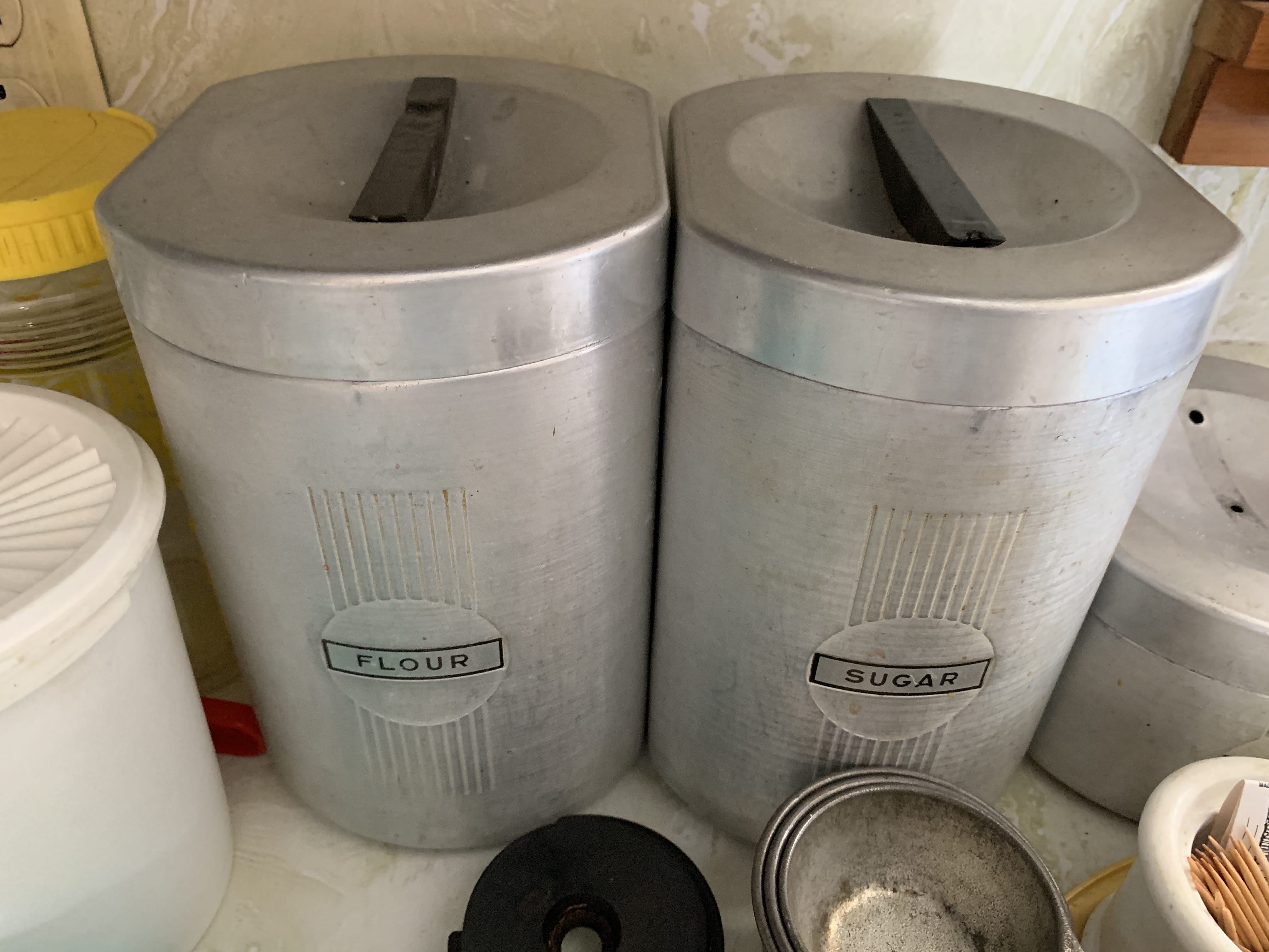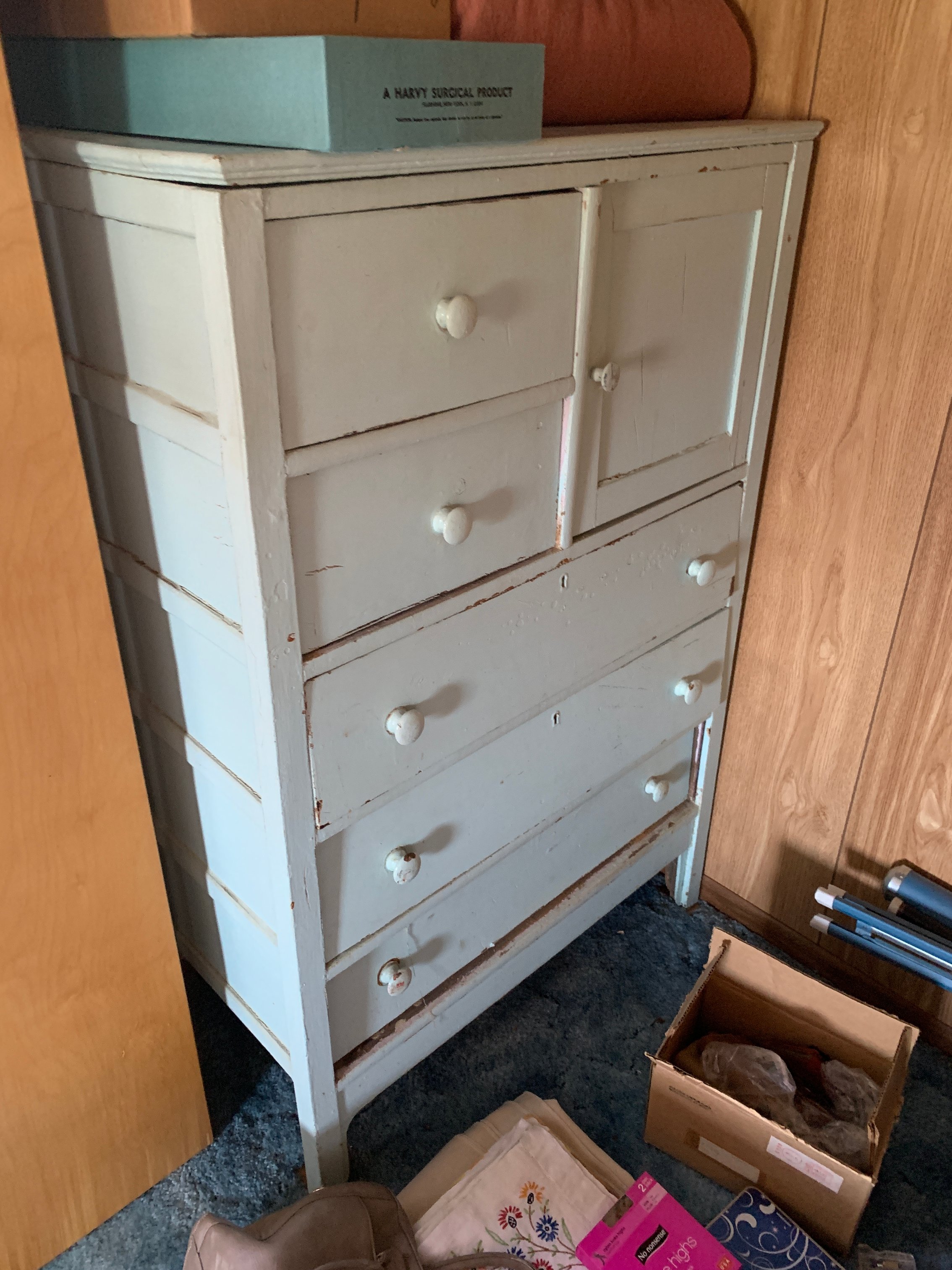 Horse Drawn Sleigh; Primitive Wood Table; Drop Leaf Table & 4 Chairs; Chest of Drawers; Oak Office Chair; Antique Mirror; Aluminum Canister Set; Canning Jars inc. Blue; Enamelware; Wood Advertising Crates; Safe-Way Food Lockers; Berry Boxes; Meat Grinder; Wood Ironing Board; Mobil Oil Can; Gal. Oil Cans & Handy Oilers; Antique Tools; Pulleys; Huffy Scout Bike; Wood Sled; Globe; Vintage Toy Trucks & Farm Toys; HOUSEHOLD: Lg. Chest Freezer; Kenmore Refrigerator; Kenmore Gas Stove; Kitchen Tables & Chairs; Tilt-Top Table; Lift Chair; Twin Beds; Sofa Tables; File Cabinets; Lamps inc. Floor; Dressing Mirror; Microwave; Pots, Pans, Dishes, Bakeware, Utensils & Sm. Appliances; Dyson Vacuum; Cabinet Sewing Machine; Sewing Notions; Exercise Bike;