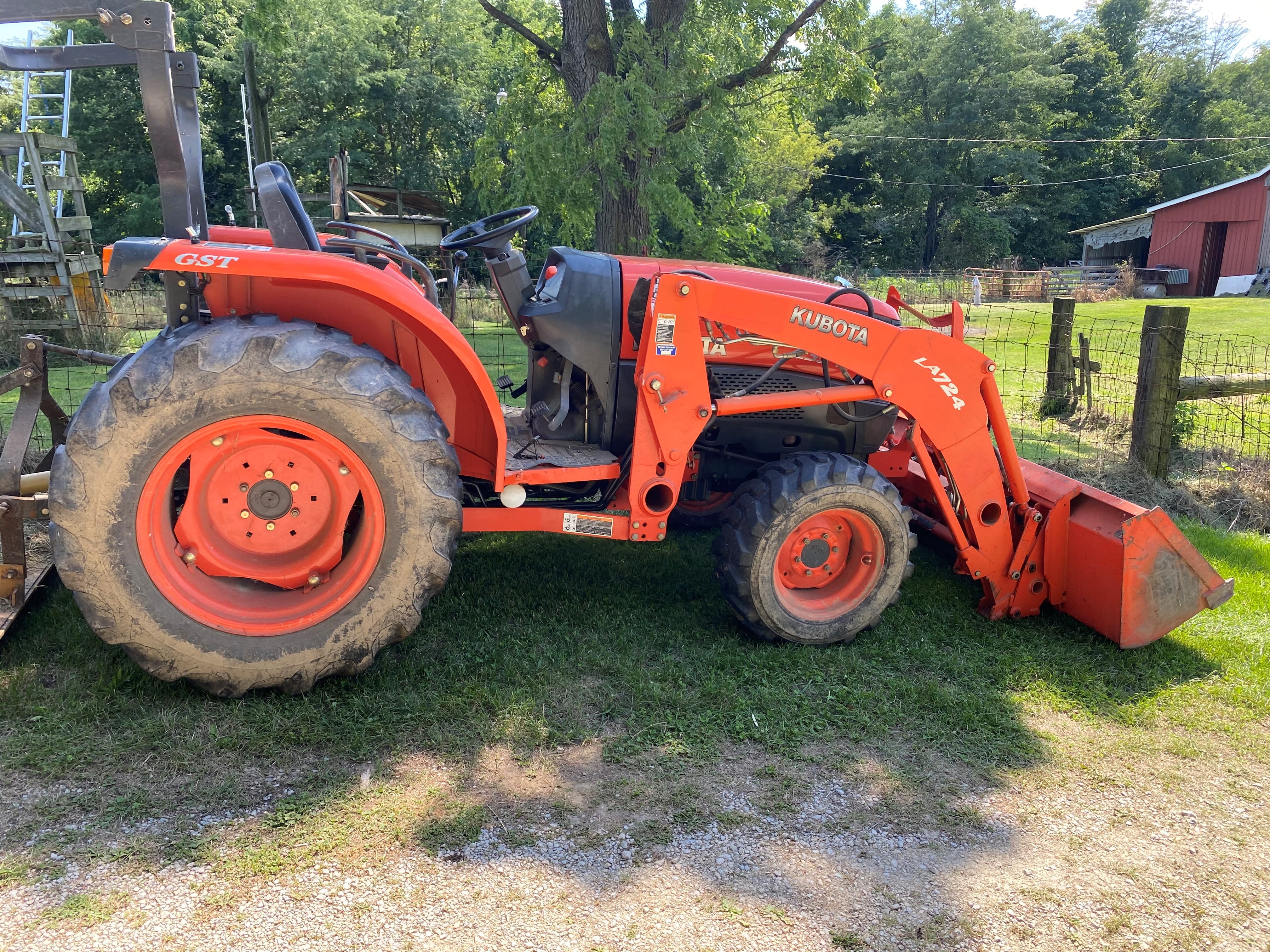 Kubota L3940 Tractor w/ LA724 Loader, 40.5HP, 2005 Hrs.; Ford 6610 Tractor w/ Loader, 82HP, 2400 Hrs.; 2004 Corn Pro SB-14 7S 14 ft. Stock Trailer, 7 ft. Tall, Tandem Axle; King Kutter 6 ft. Rotary Mower; Transfer Auger; Bale Spear; Hay Feeders; Bulk Feed Bin; 12+ Round Bales of Hay, Kept in Shed; 100+ Sq. Bales of Grass Hay; Single Axle Trailer; Overhead Fuel Tank; Quick Hitch; Cement Mixer; Lawn Boy Push Mower; Wheelbarrow; Garden Tools; Fence Charger; Air Compressor; Turret Vise; Power & Hand Tools; Wrenches; Pipe & Bar Clamps; Electrical Supplies; Asst. Hardware; Organizers; Lumber; Fence Posts; 40 ft. Alum. Ext. Ladder; Alum. & Wood Ladders; Work Lights; Saddles; Bridles & Harnesses; Feed Pans; Water Tank; Feed Cart; Work Gloves, NIB; Life Vests; Boat Buoys; Sporting Goods; Pet Carriers; Animal Traps; Coolers; Golf Clubs;