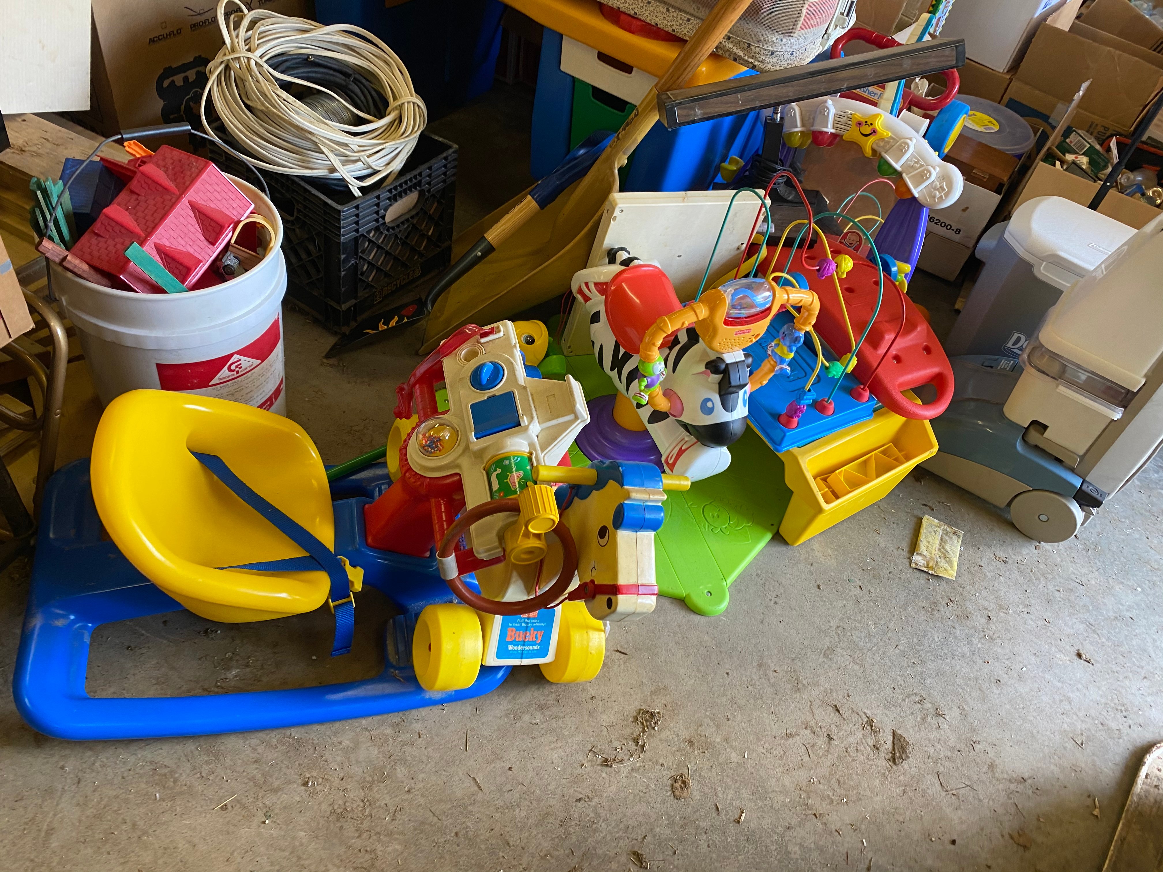 2-Kitchen Tables & Chairs; 3 pc. Bedroom Suite; Sofas & Love Seats; Occ. Chairs; Kitchen Cart; Ent. Center; Coffee & End Tables; Nightstands; Wood Desks; File Cabinet; Bookshelves; Air Bed; Aquarium; TV Trays; Set of Dishes; Pots, Pans, Dishes, Sm. Appliances; Home & Holiday Décor; Christmas Villages; Golds Gym 450 Treadmill; Weights & Weight Bench; Inversion Table; Basketball Arcade Game; Foosball Table; Carrom Board; Kids Toys; Puzzles & Games; Golden Books; Sony PlayStation 2; Electronics; DVDs; ANTIQUES: Baby Bed; Childs Rockers; Shelf Clocks; Stop Light; Cast Iron Pig Bank; Hobby Horse; Childs Schwinn Pixie Bicycle; Vintage Bikes & Tricycles; Childs Razor Scooter; Red Wagon; GUNS: S&W Bodyguard Set in Presentation Case, Md. 37 Revolver & BG.380 Pistol; RG md. 66 .22/.27 Mag Revolver; RG 40, .38 Special Revolver; RG .38 Special Revolver; Romanian SKS 7.62x39; Chinese SKS w/ Bayonet; Bayonets inc. USM84I; Spent Artillery Shell; Gun Cabinet; Holsters; Deer Stands;