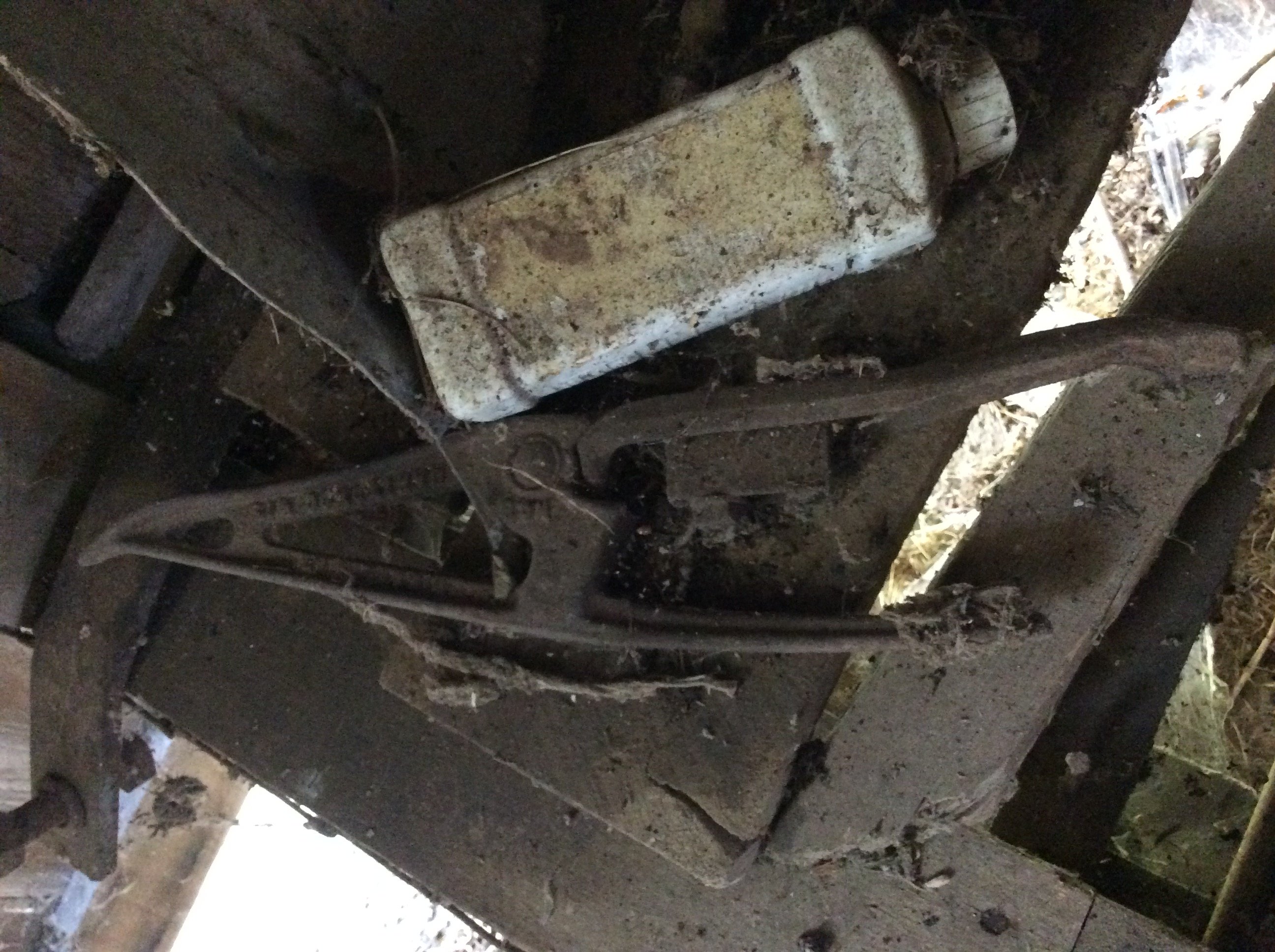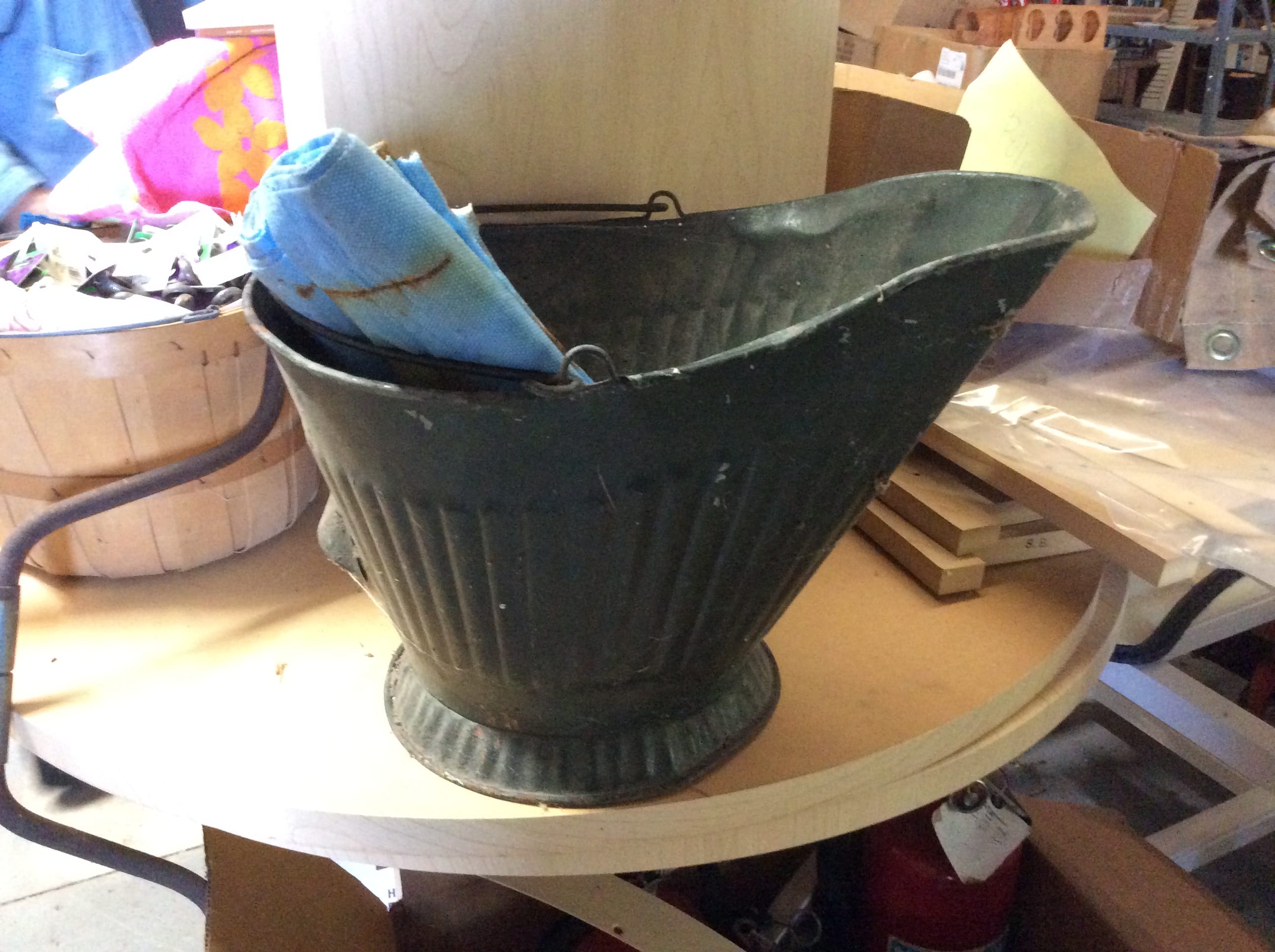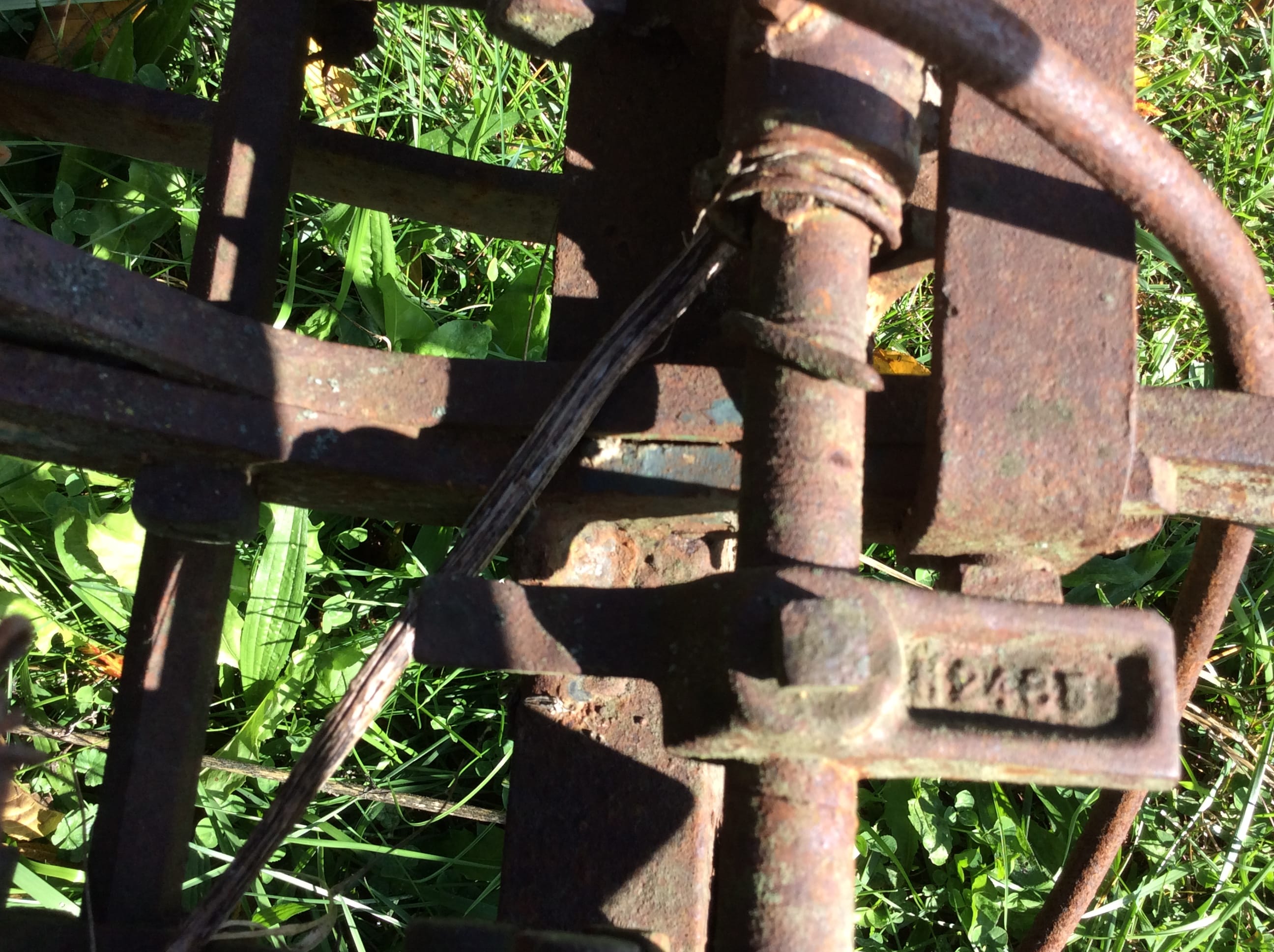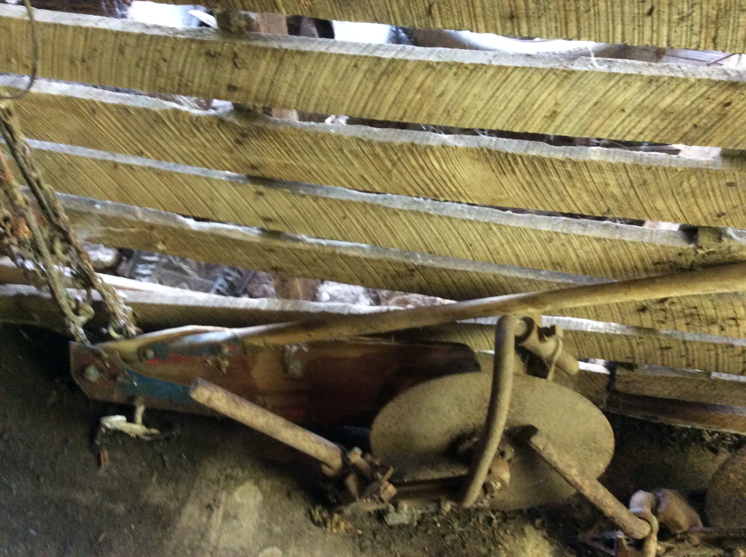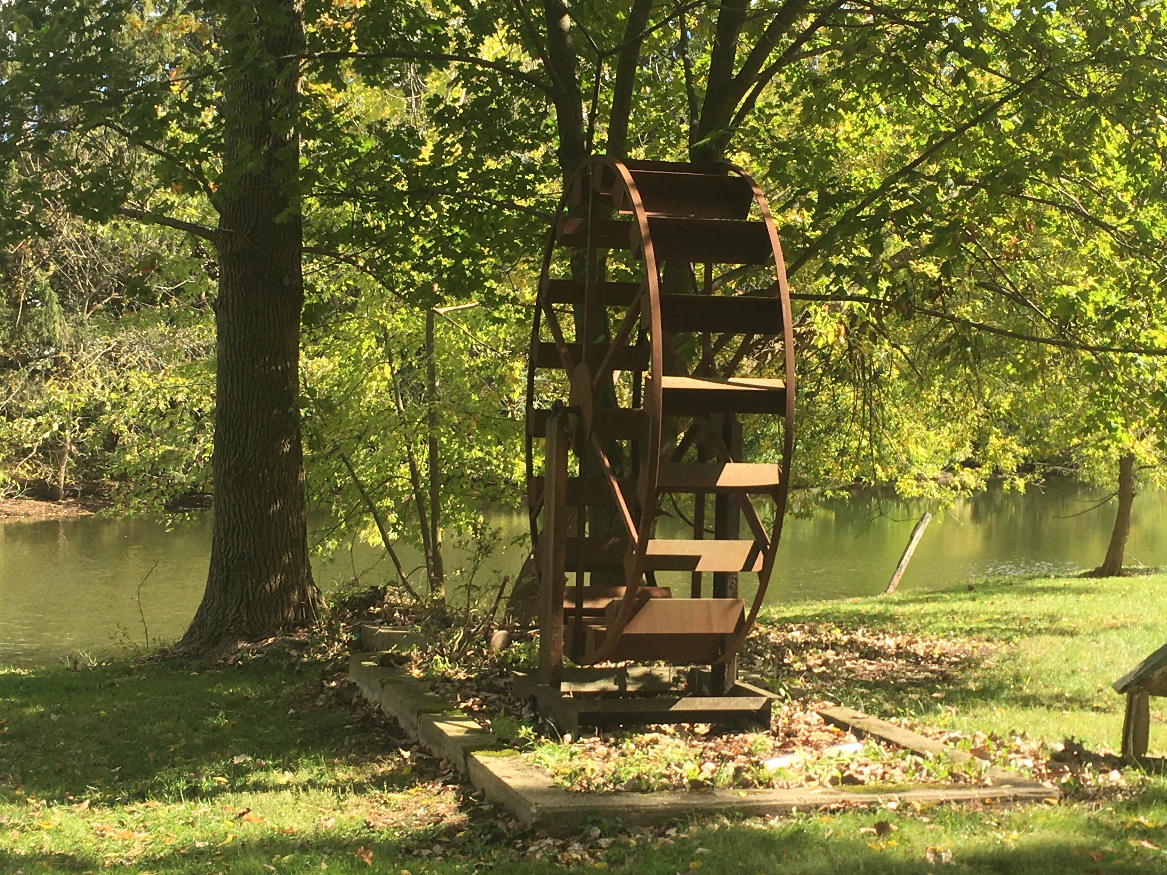 Iron Skillets; Wood Corn Sheller; Water Wheel; Barn Lanterns; Coal Bucket; Spring