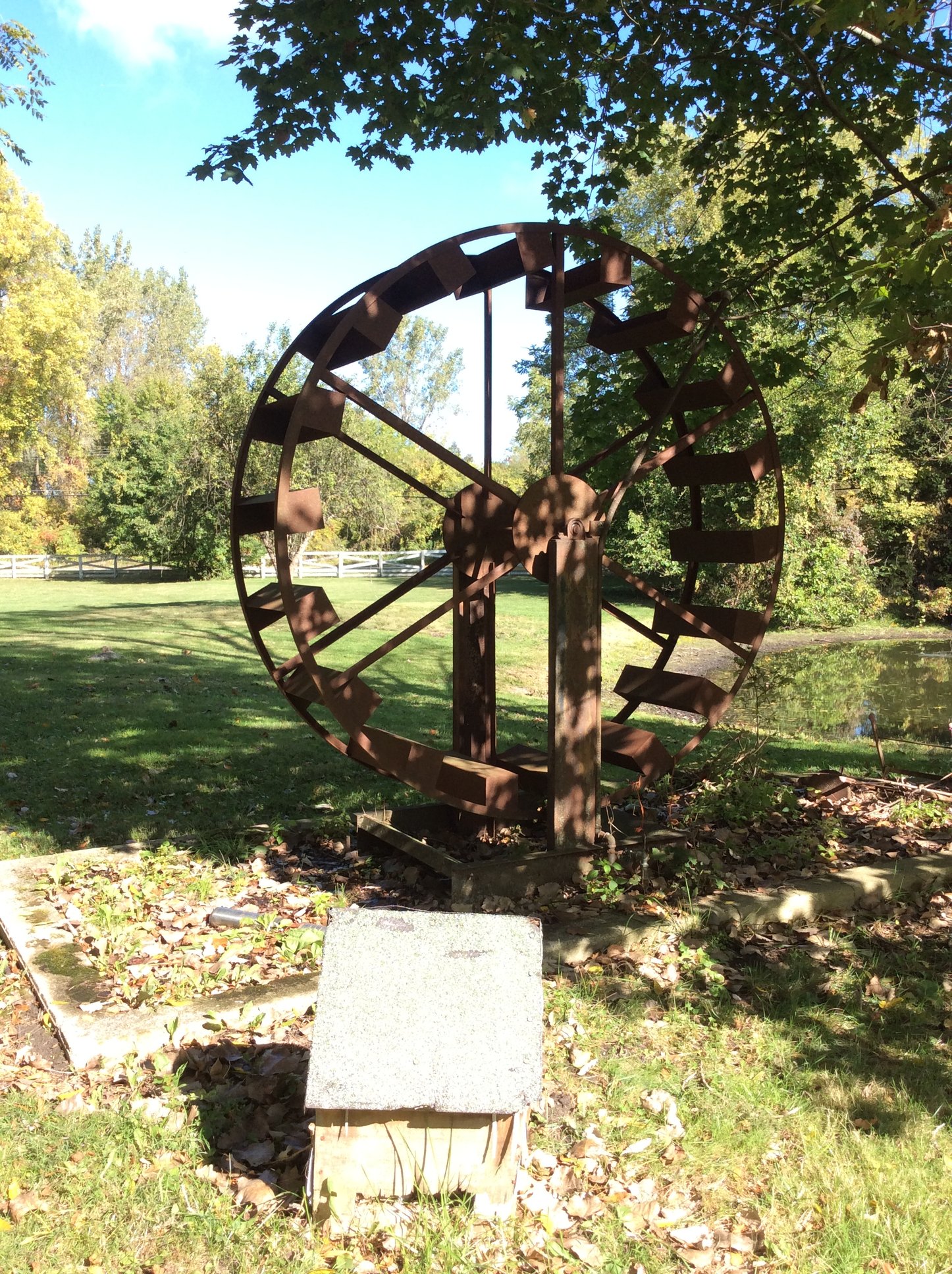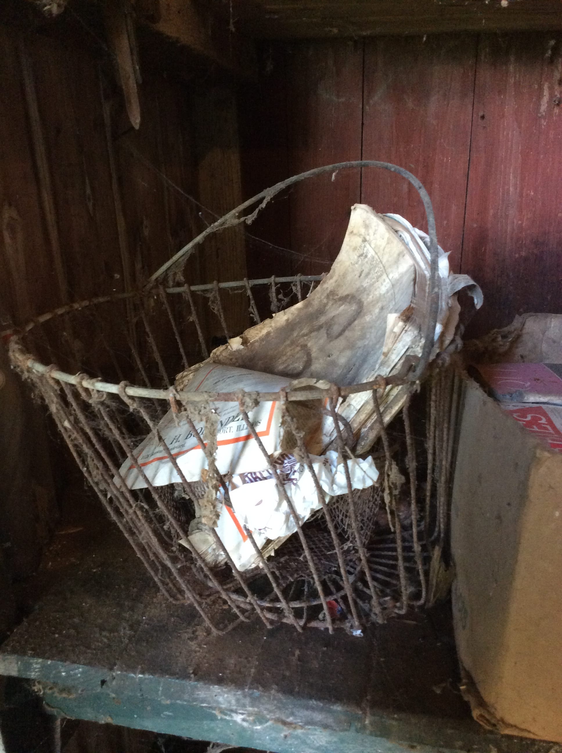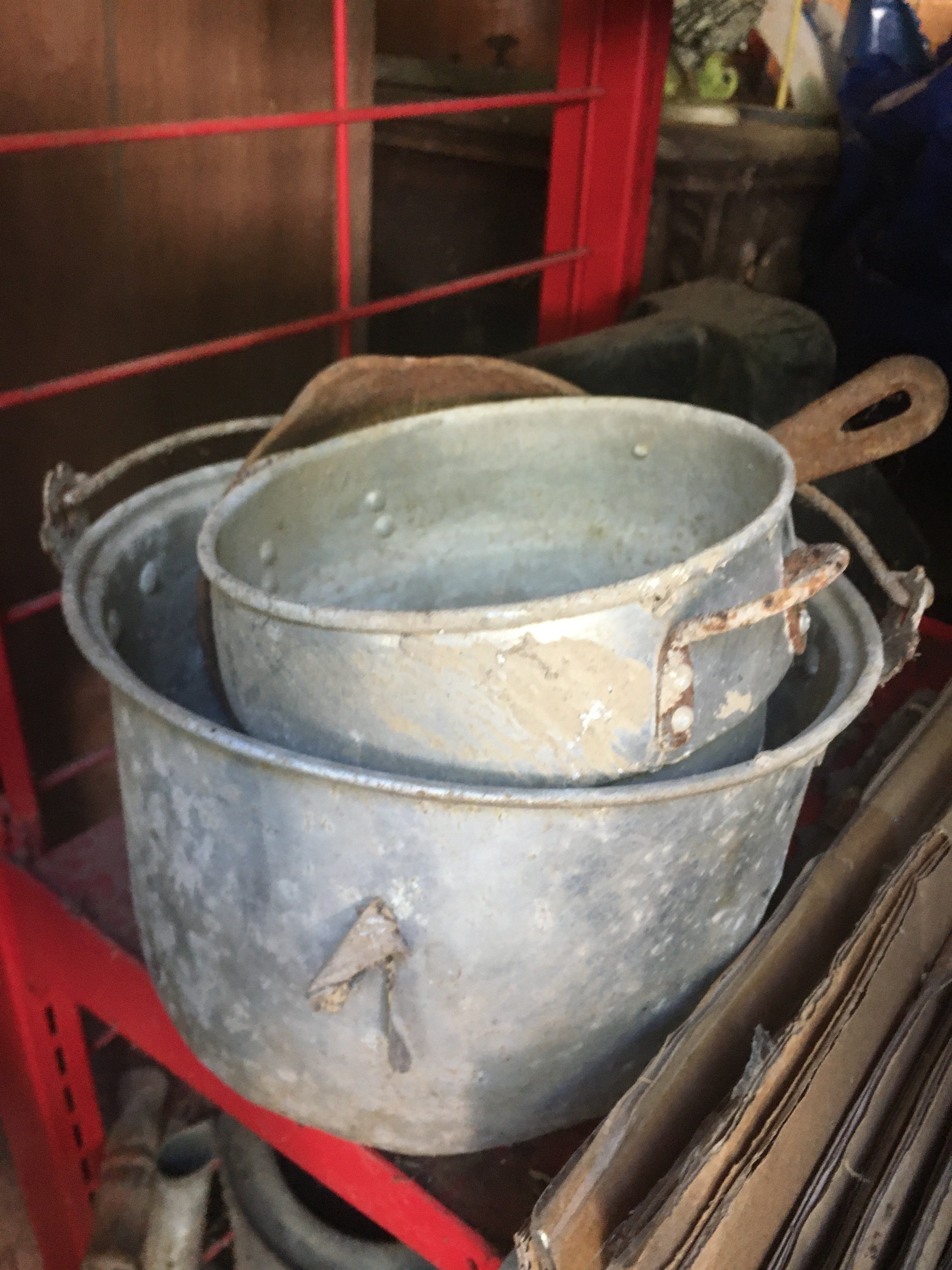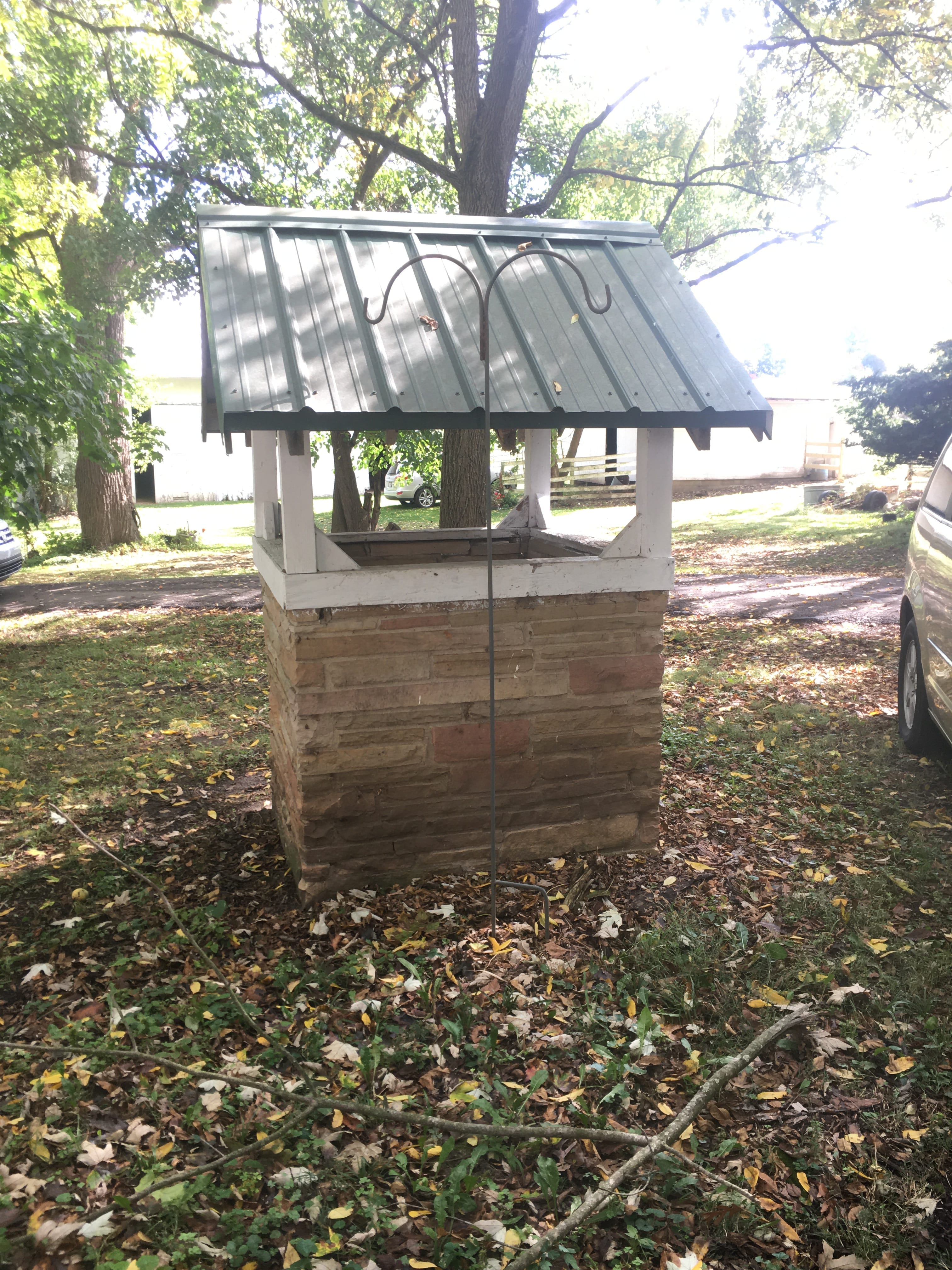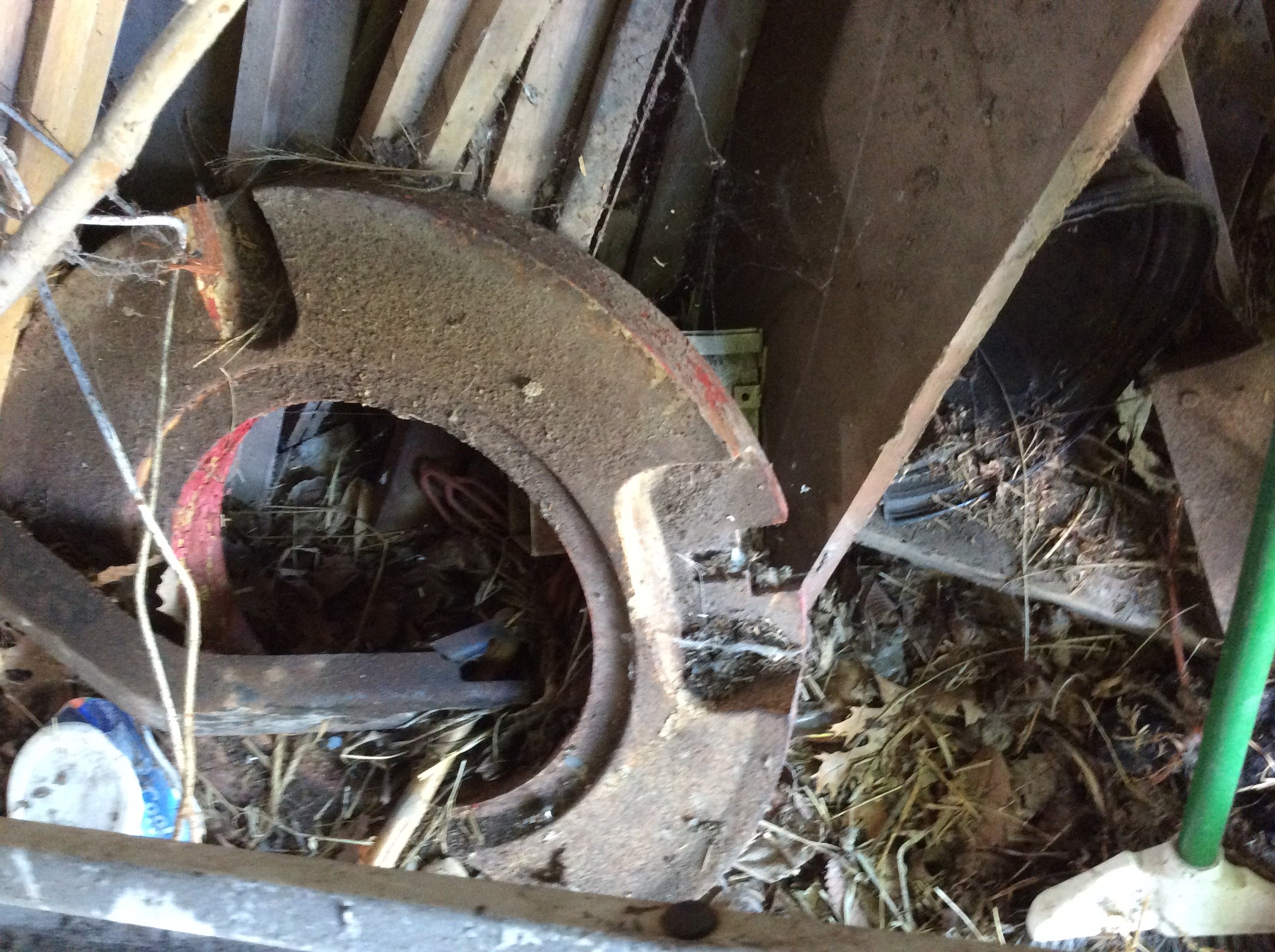 Iron Skillets; Wood Corn Sheller; Water Wheel; Barn Lanterns; Coal Bucket; Spring
