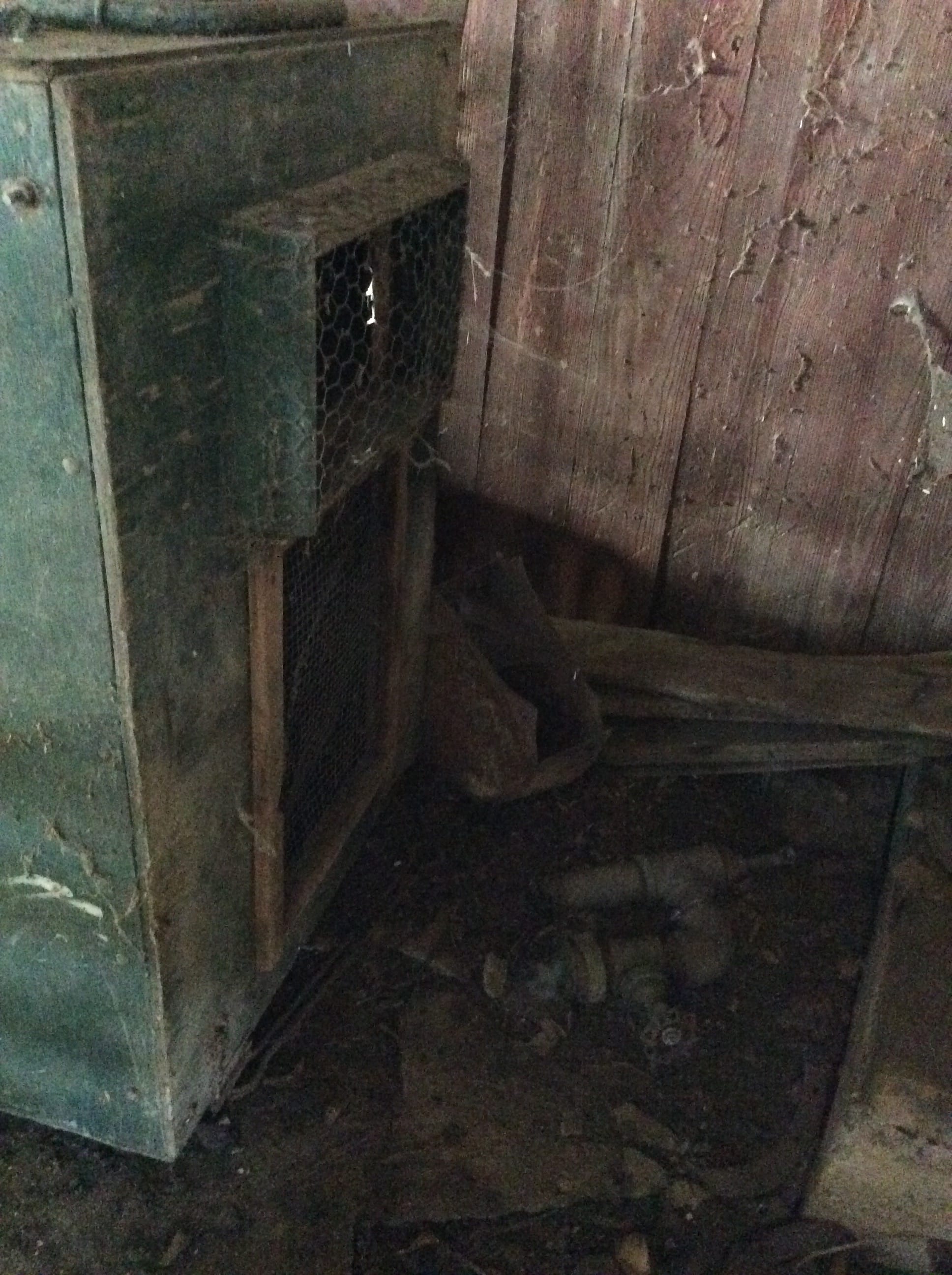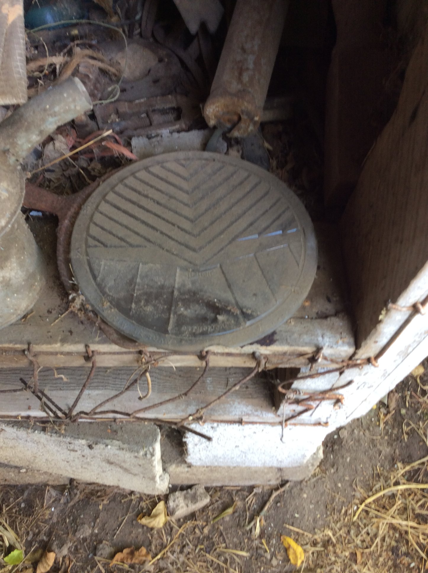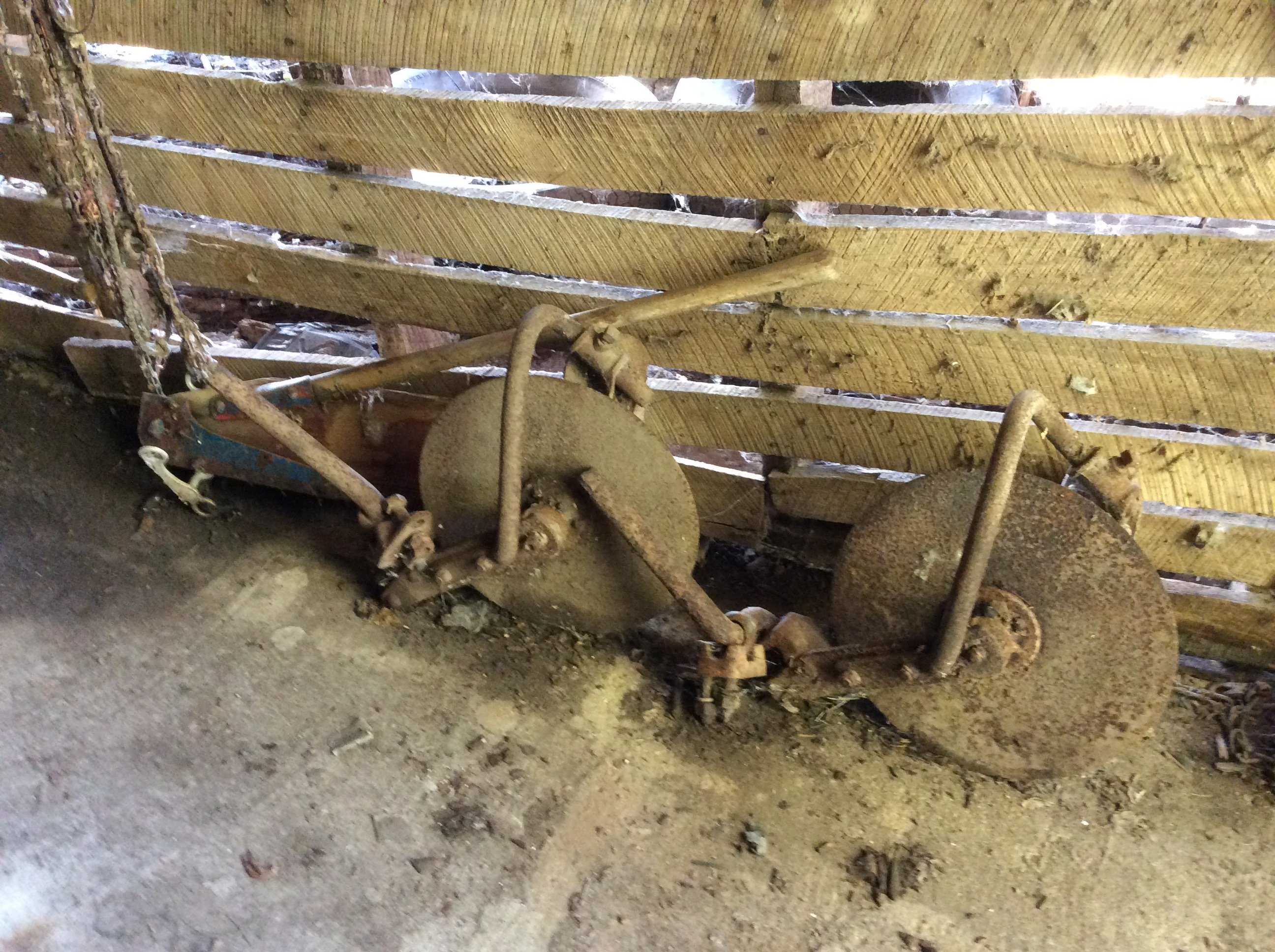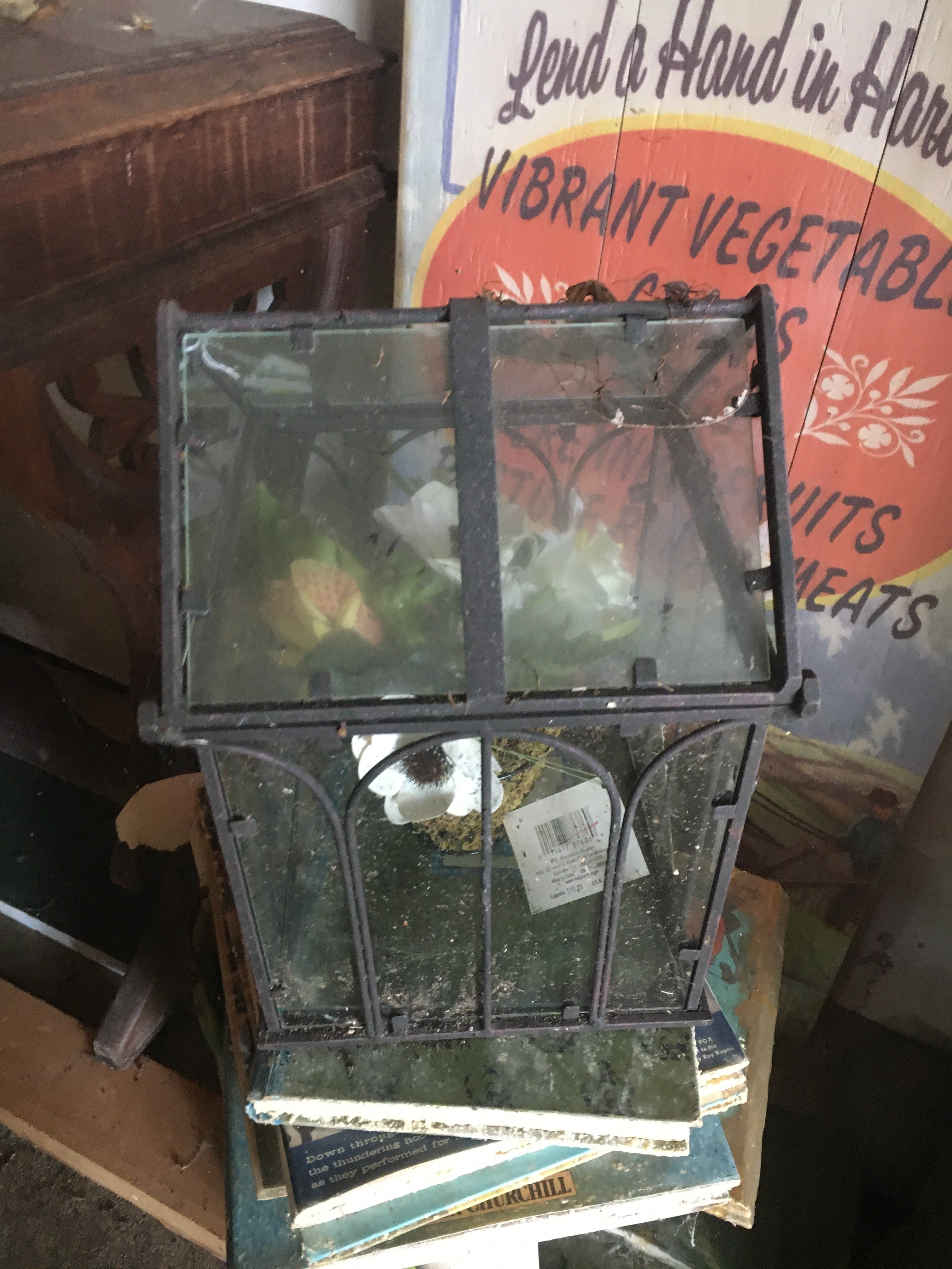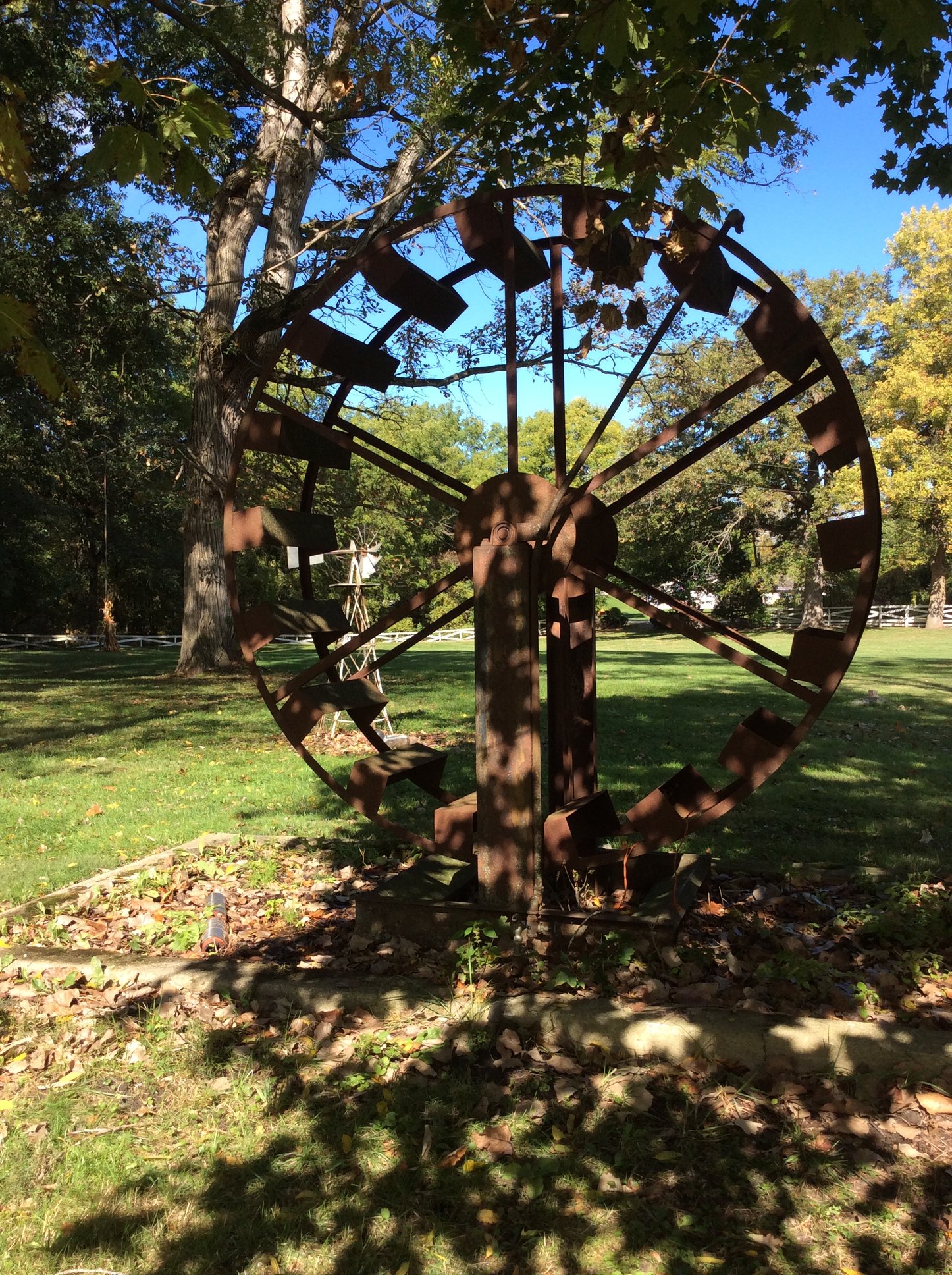 Iron Skillets; Wood Corn Sheller; Water Wheel; Barn Lanterns; Coal Bucket; Spring