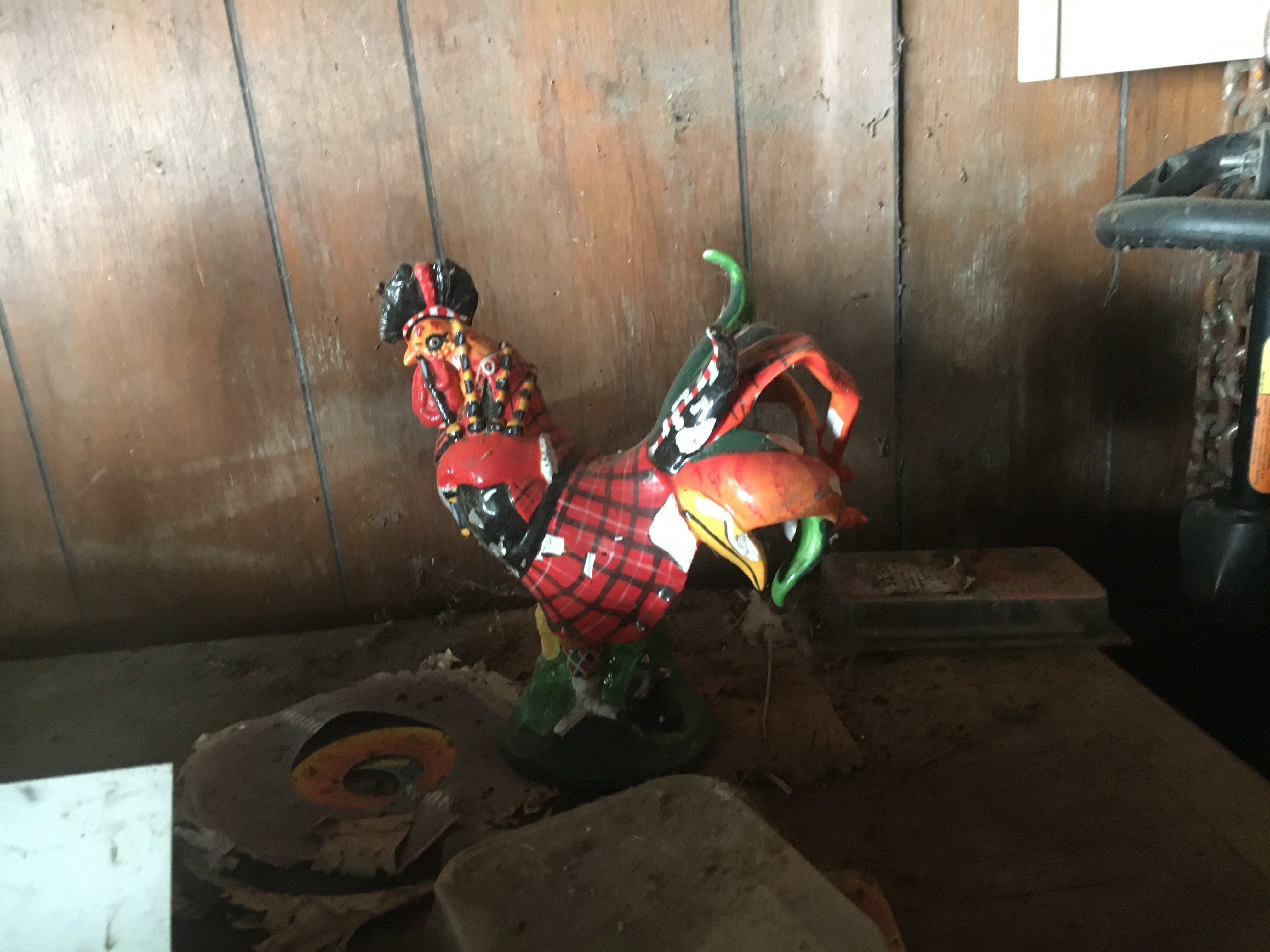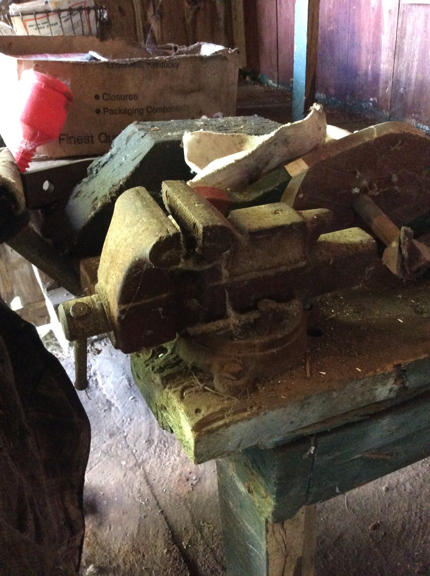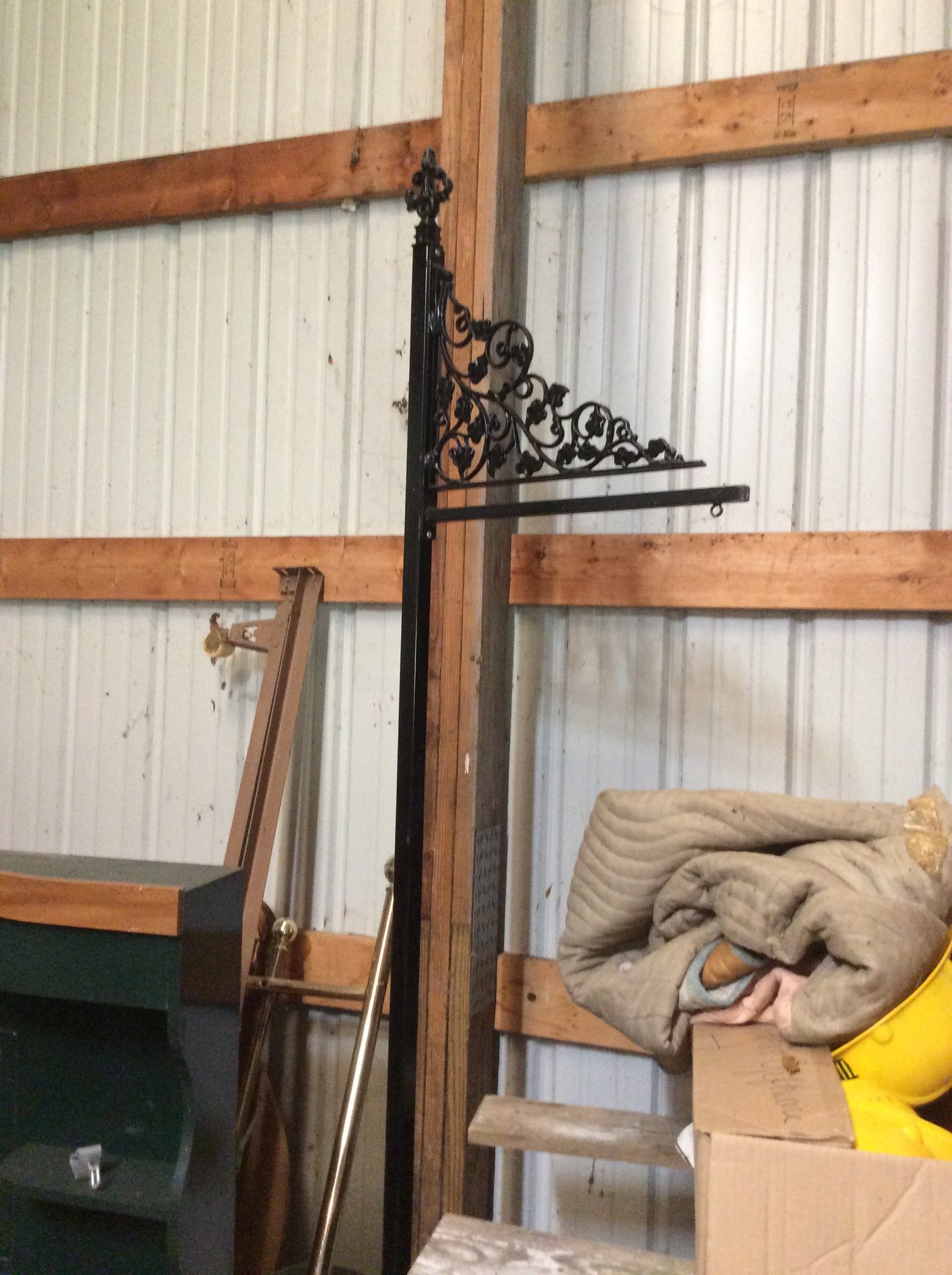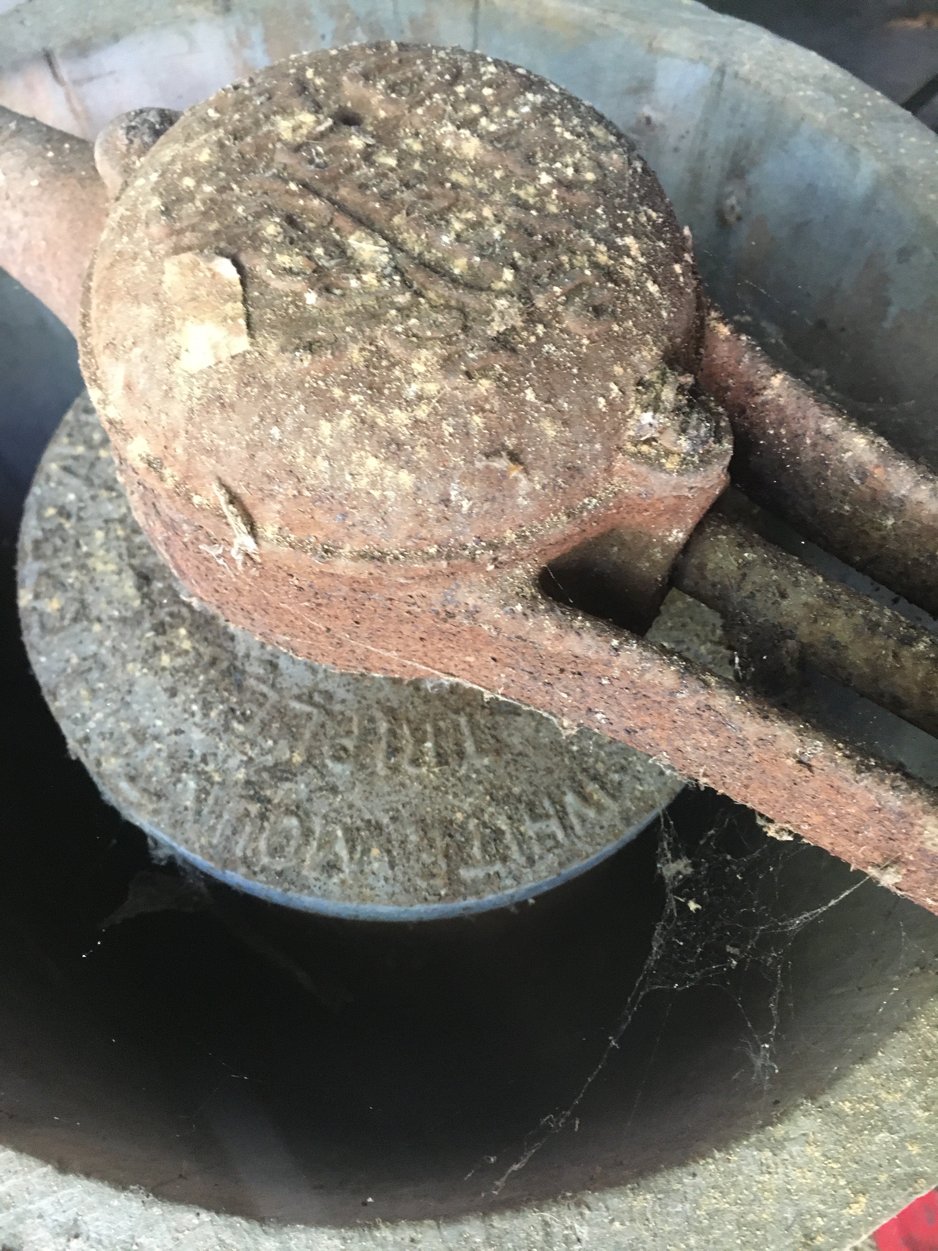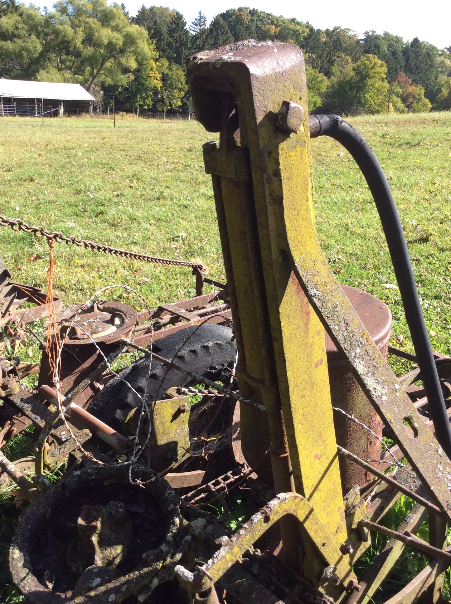 Iron Skillets; Wood Corn Sheller; Water Wheel; Barn Lanterns; Coal Bucket; Spring