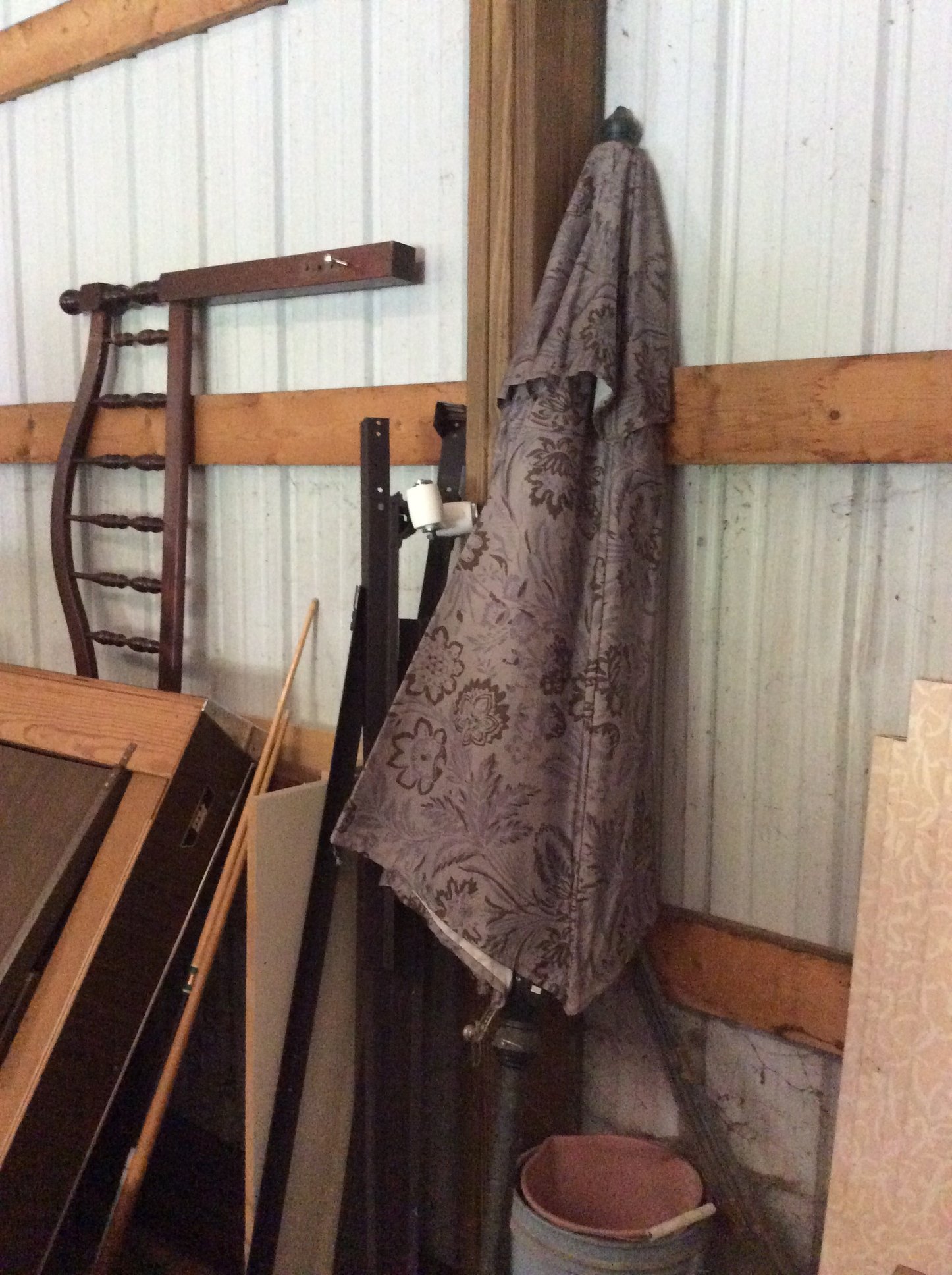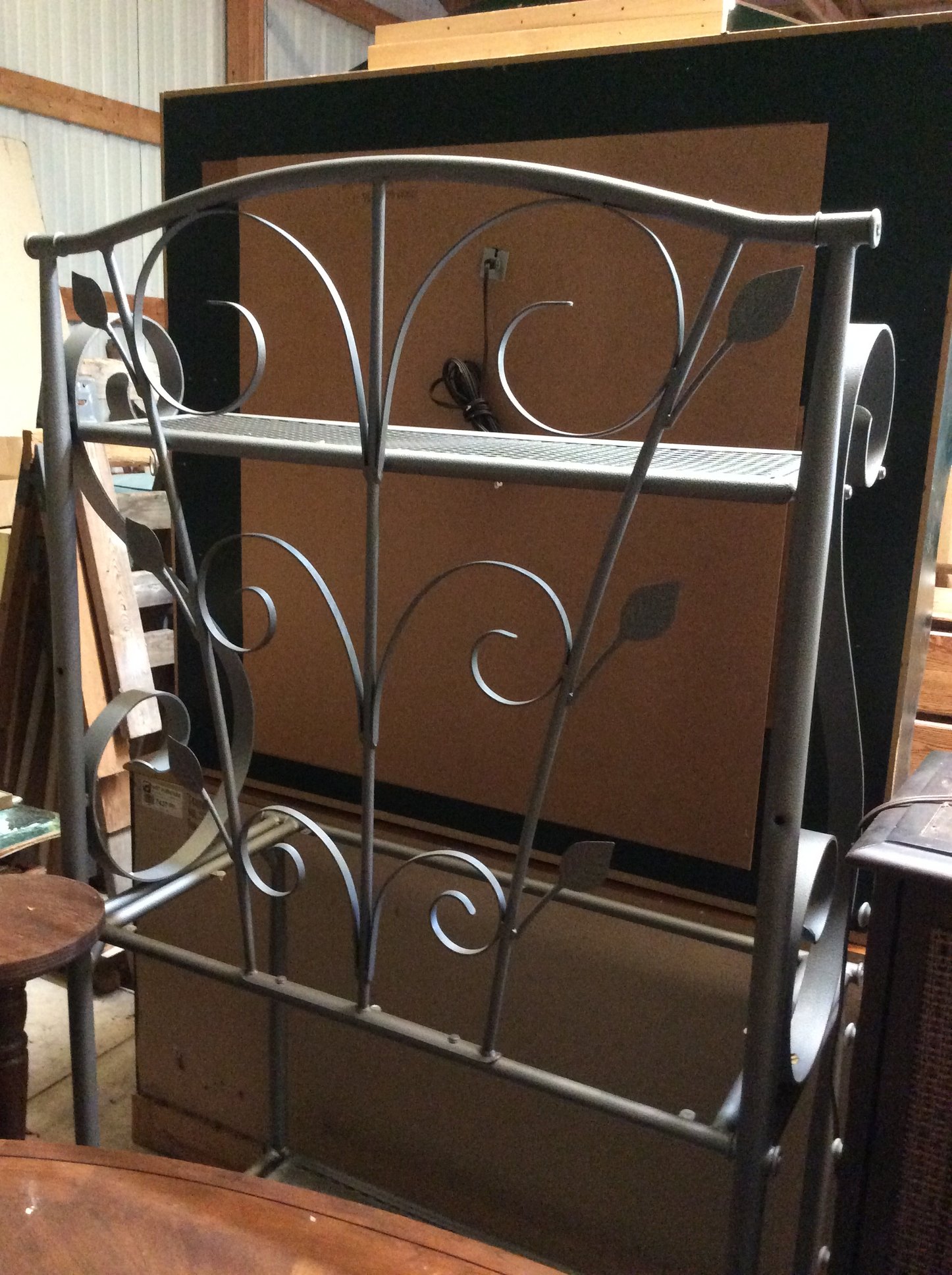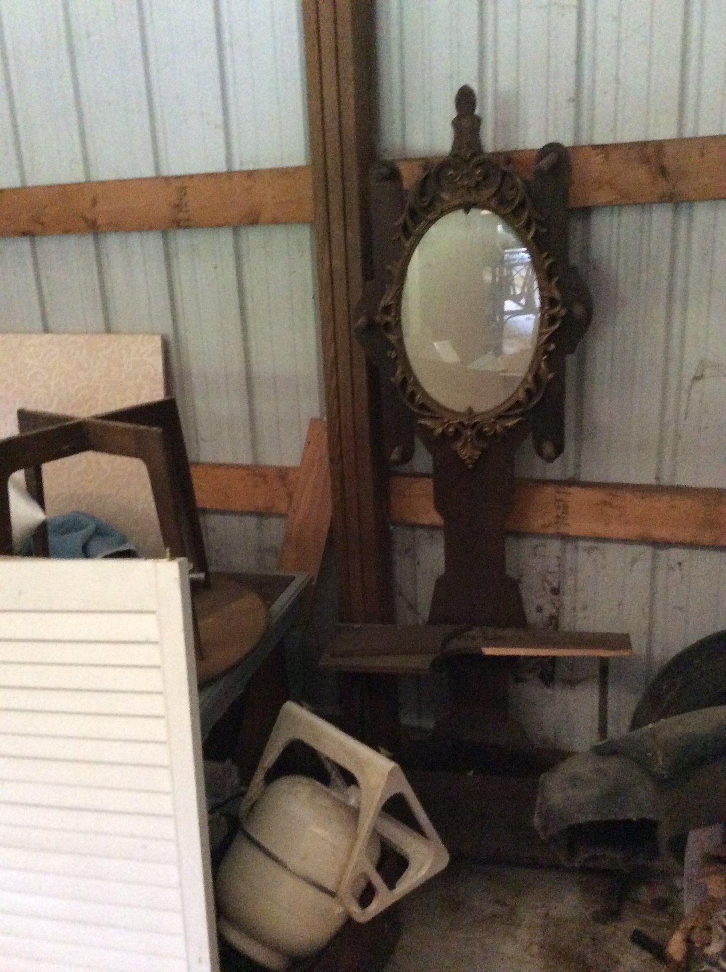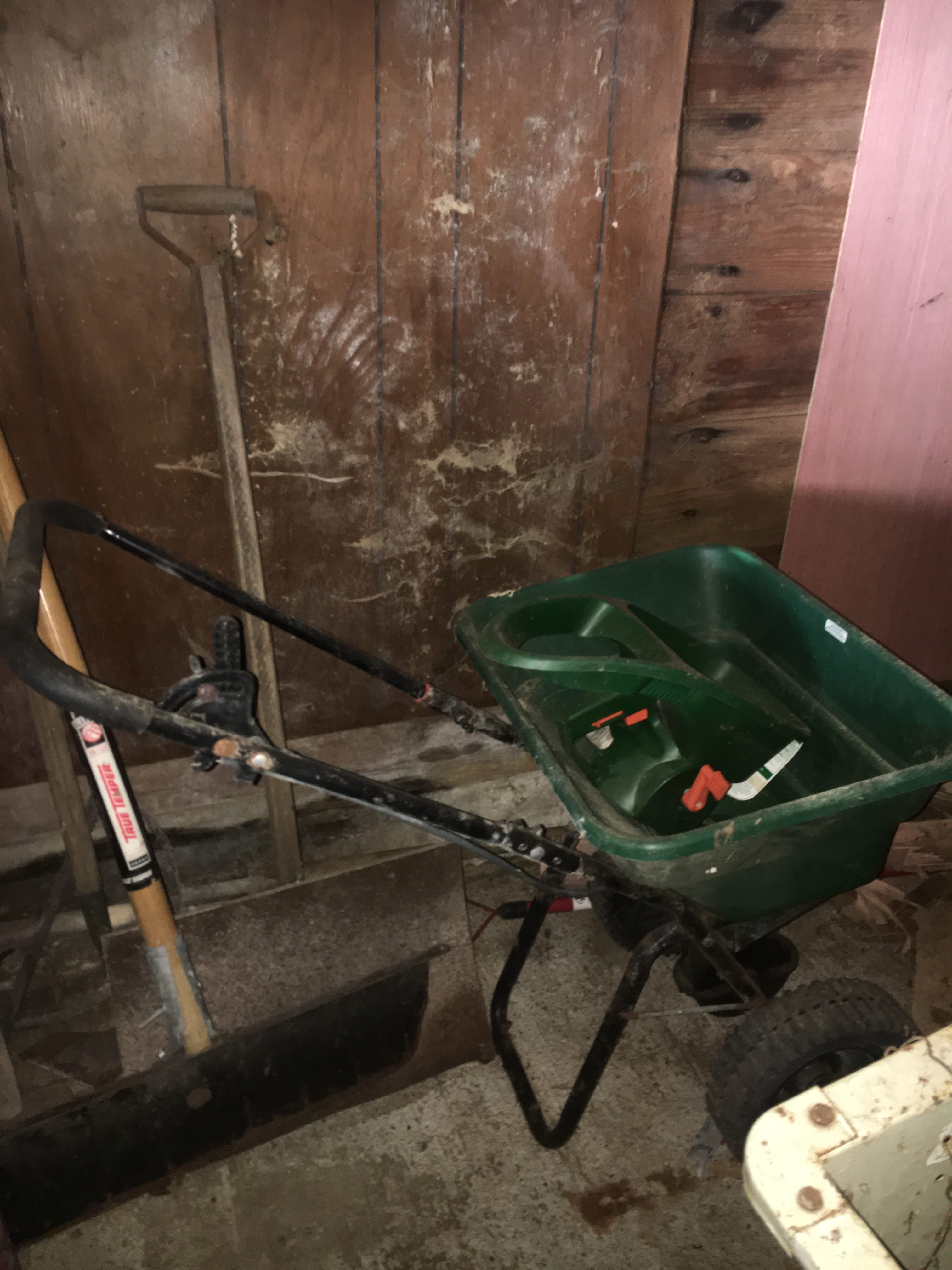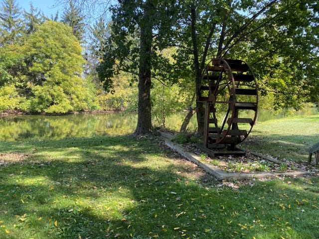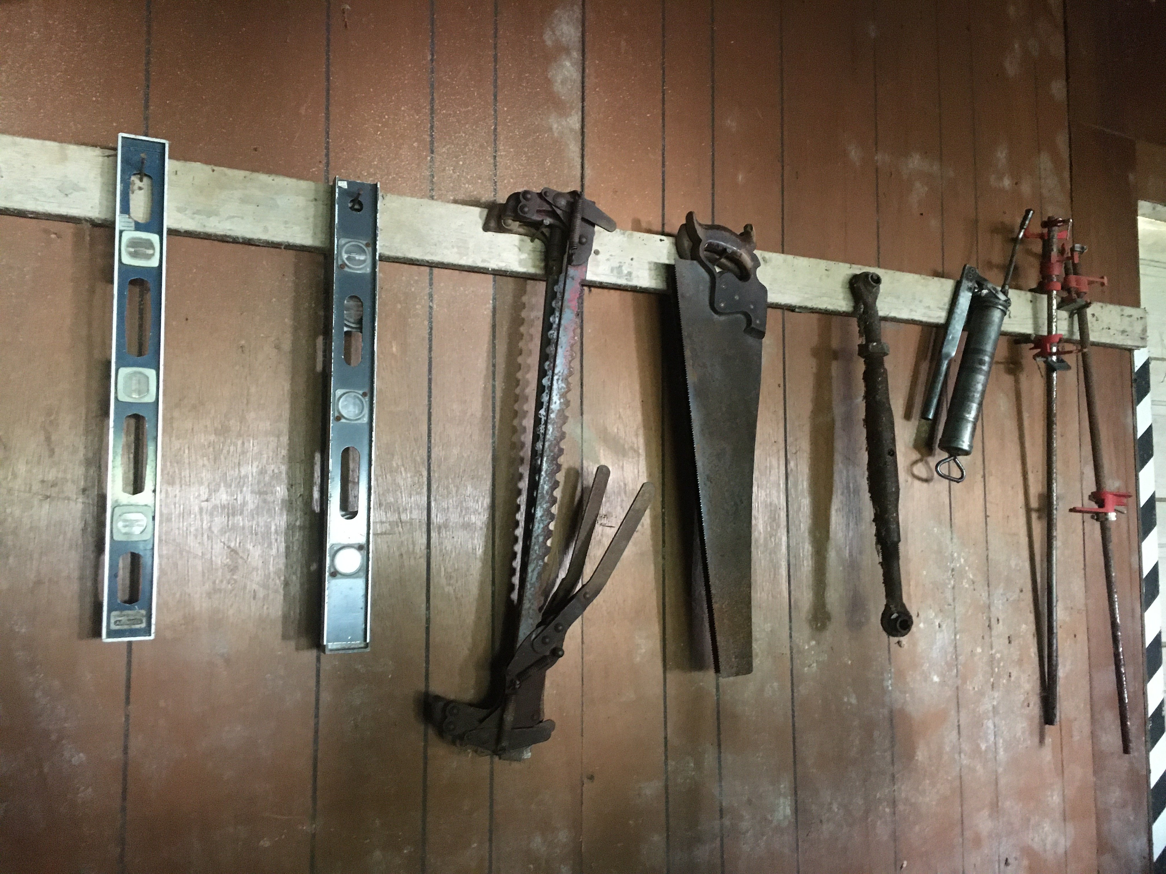 Iron Skillets; Wood Corn Sheller; Water Wheel; Barn Lanterns; Coal Bucket; Spring