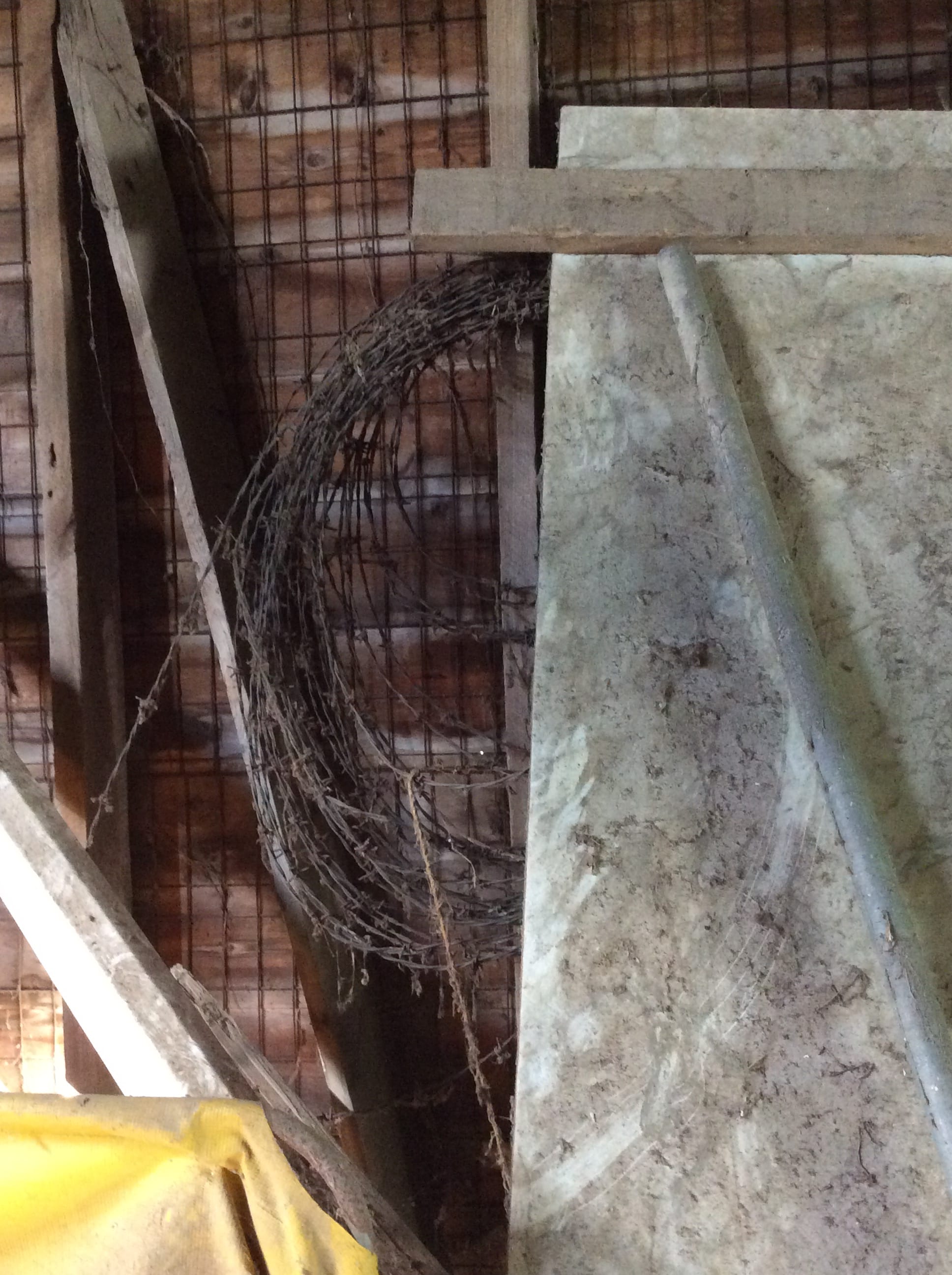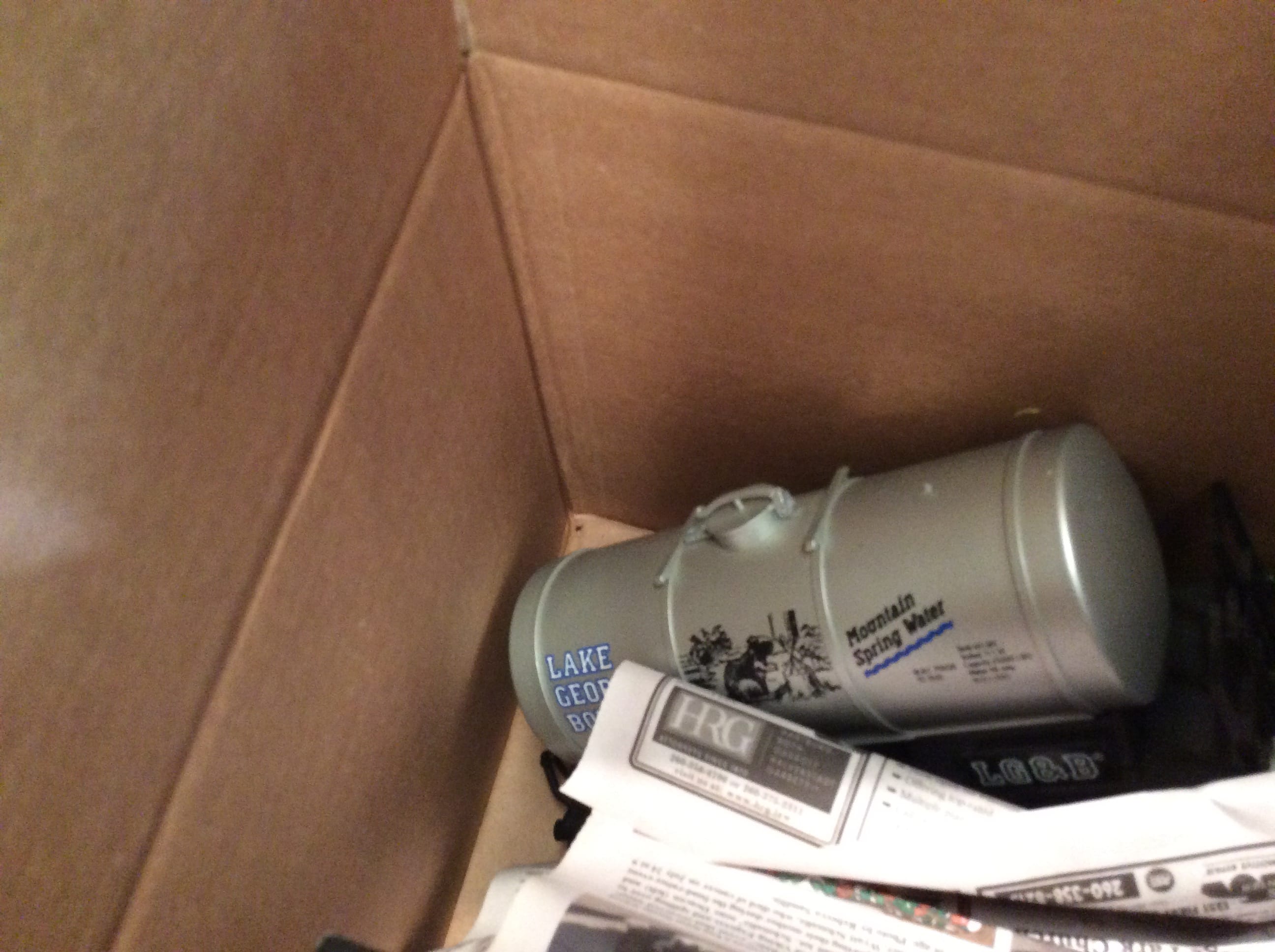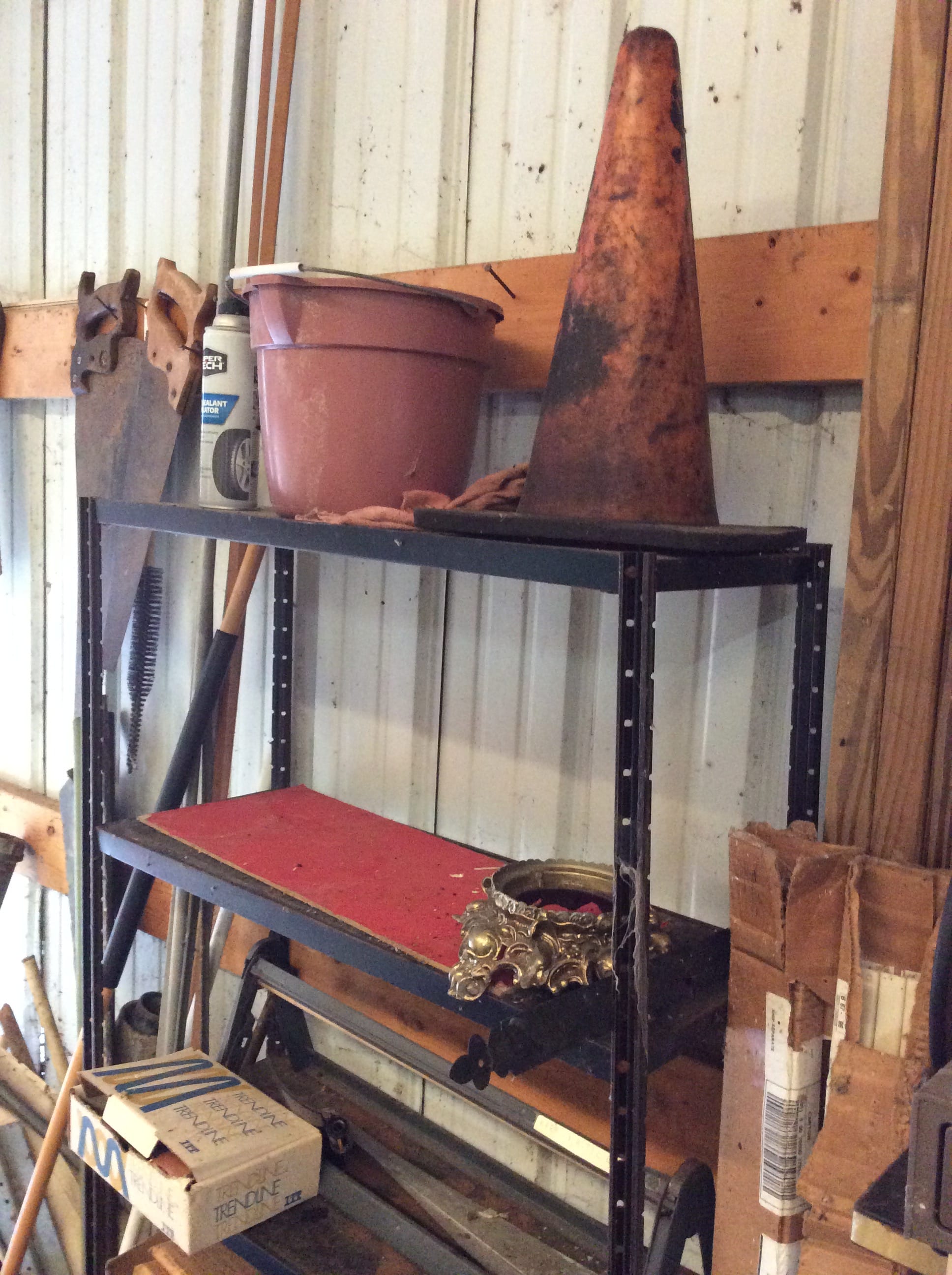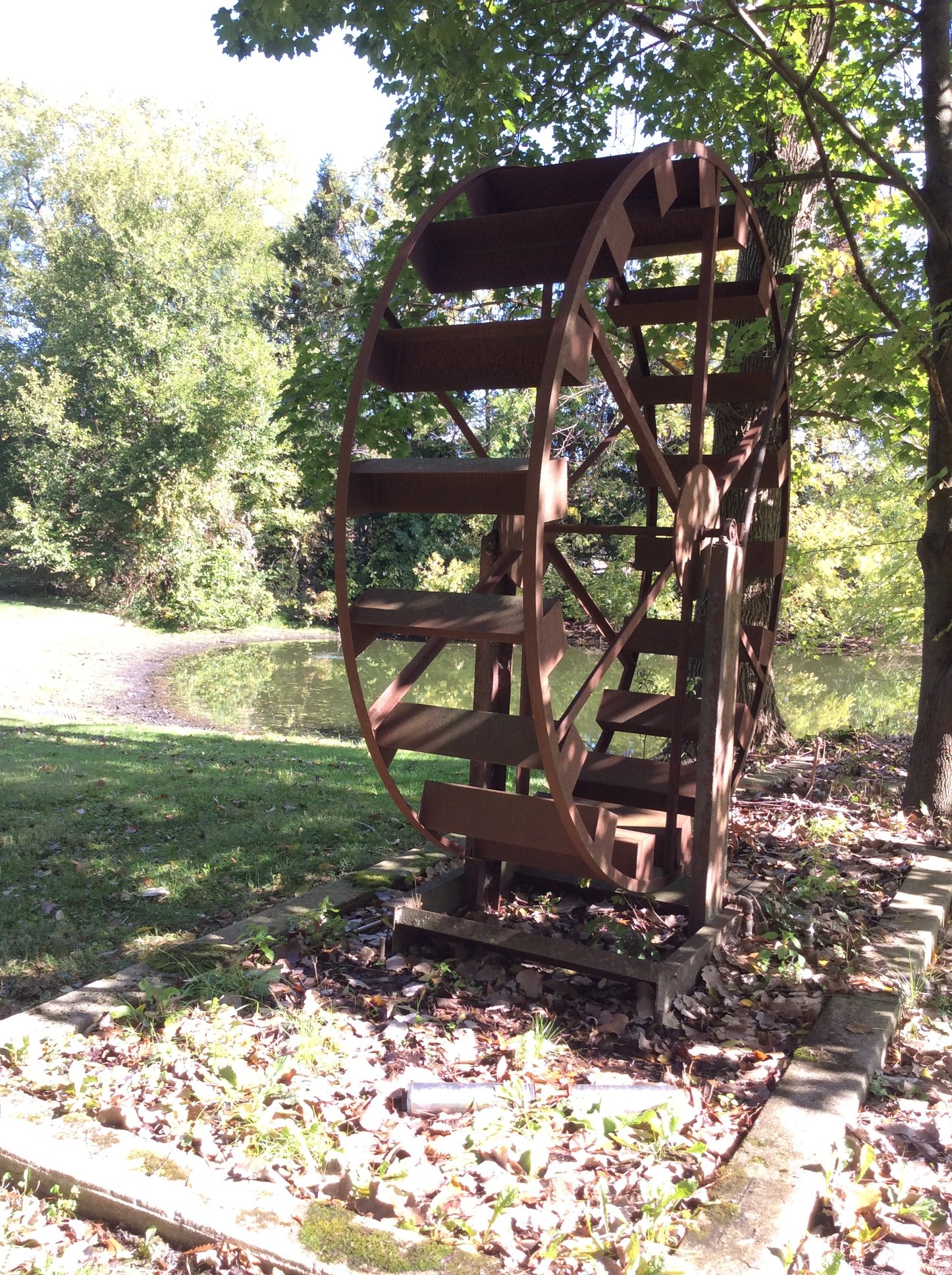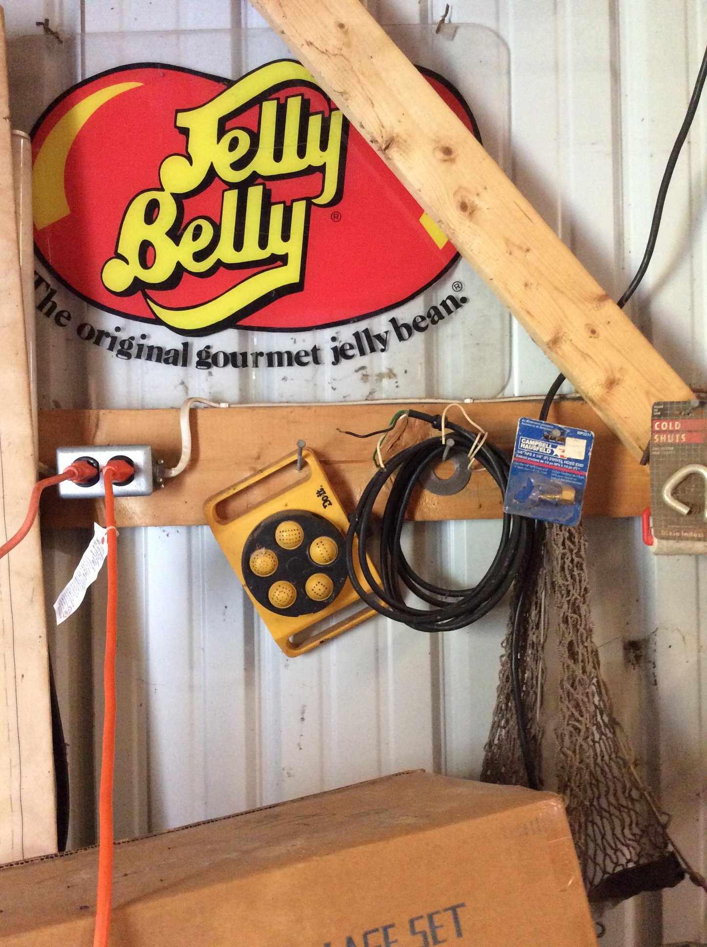 Iron Skillets; Wood Corn Sheller; Water Wheel; Barn Lanterns; Coal Bucket; Spring