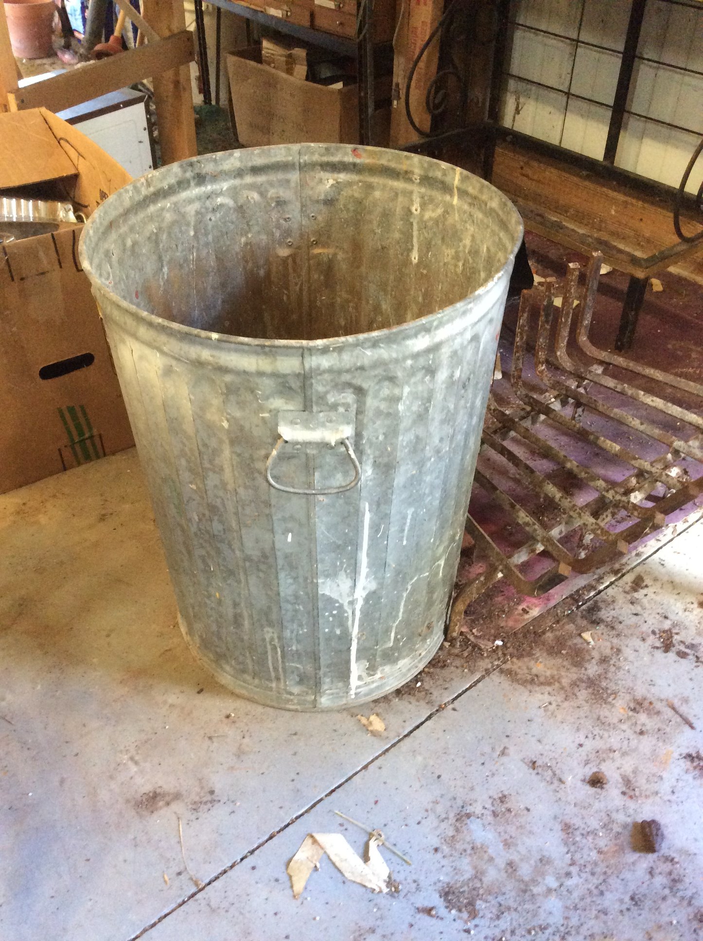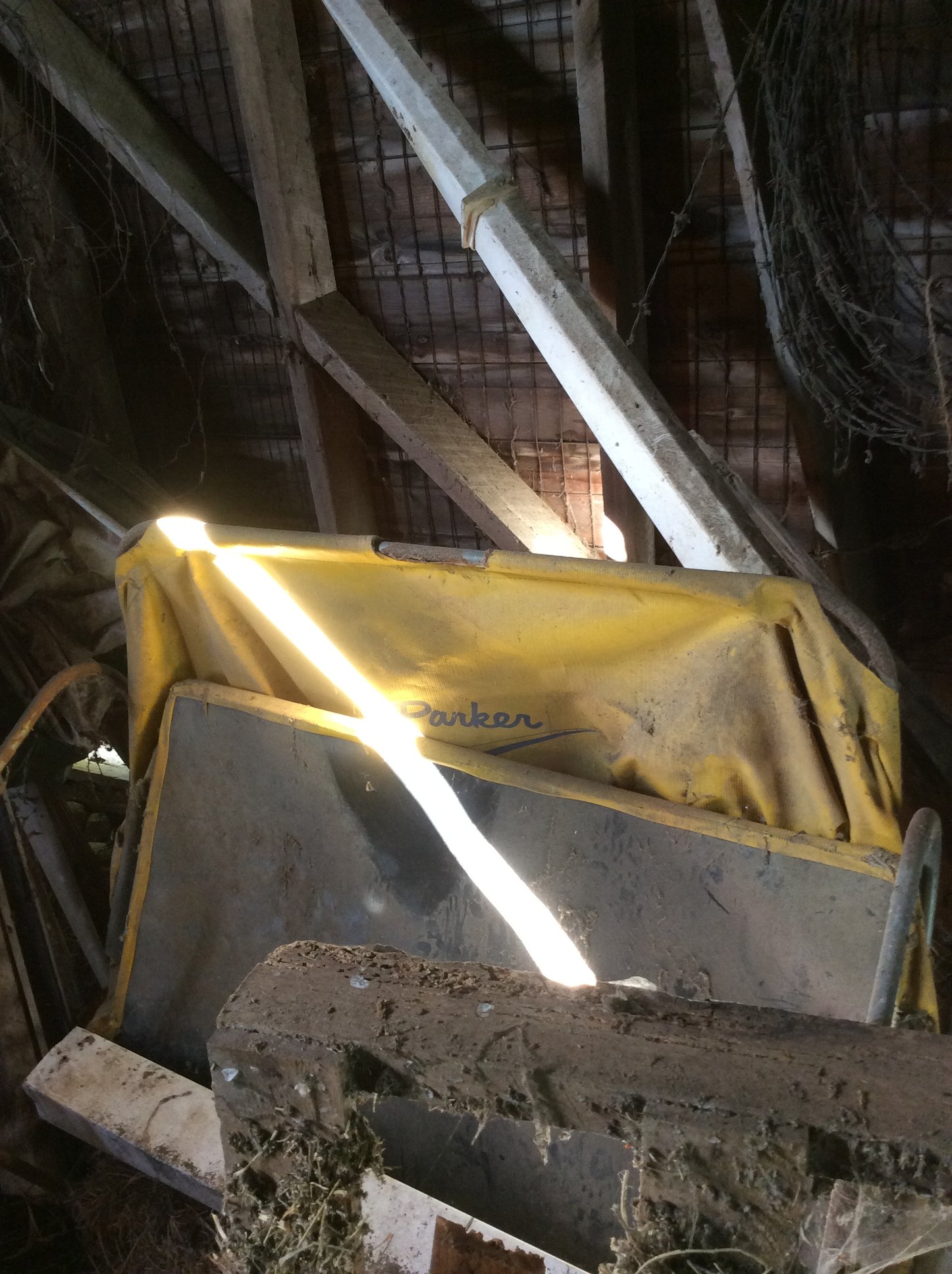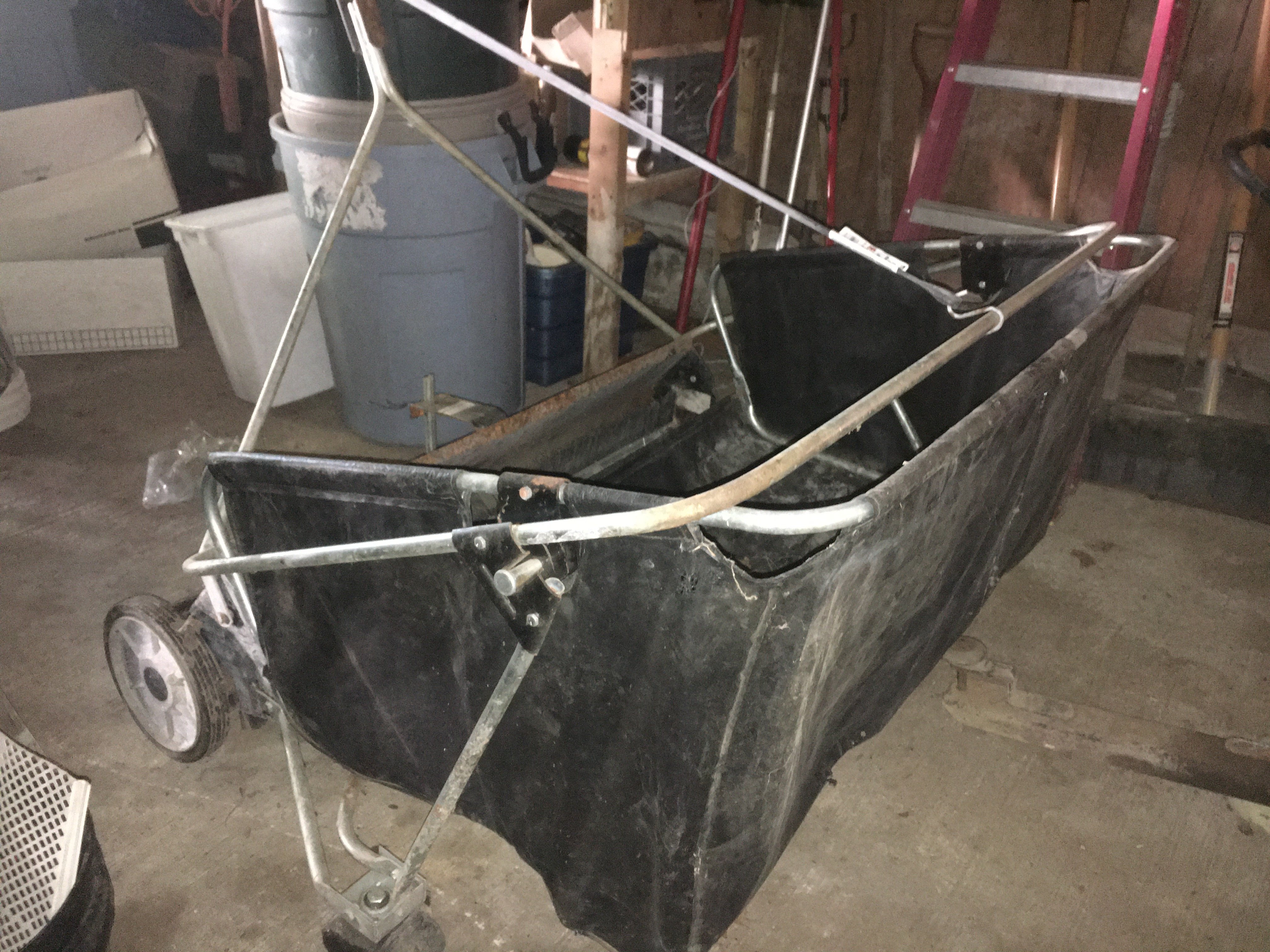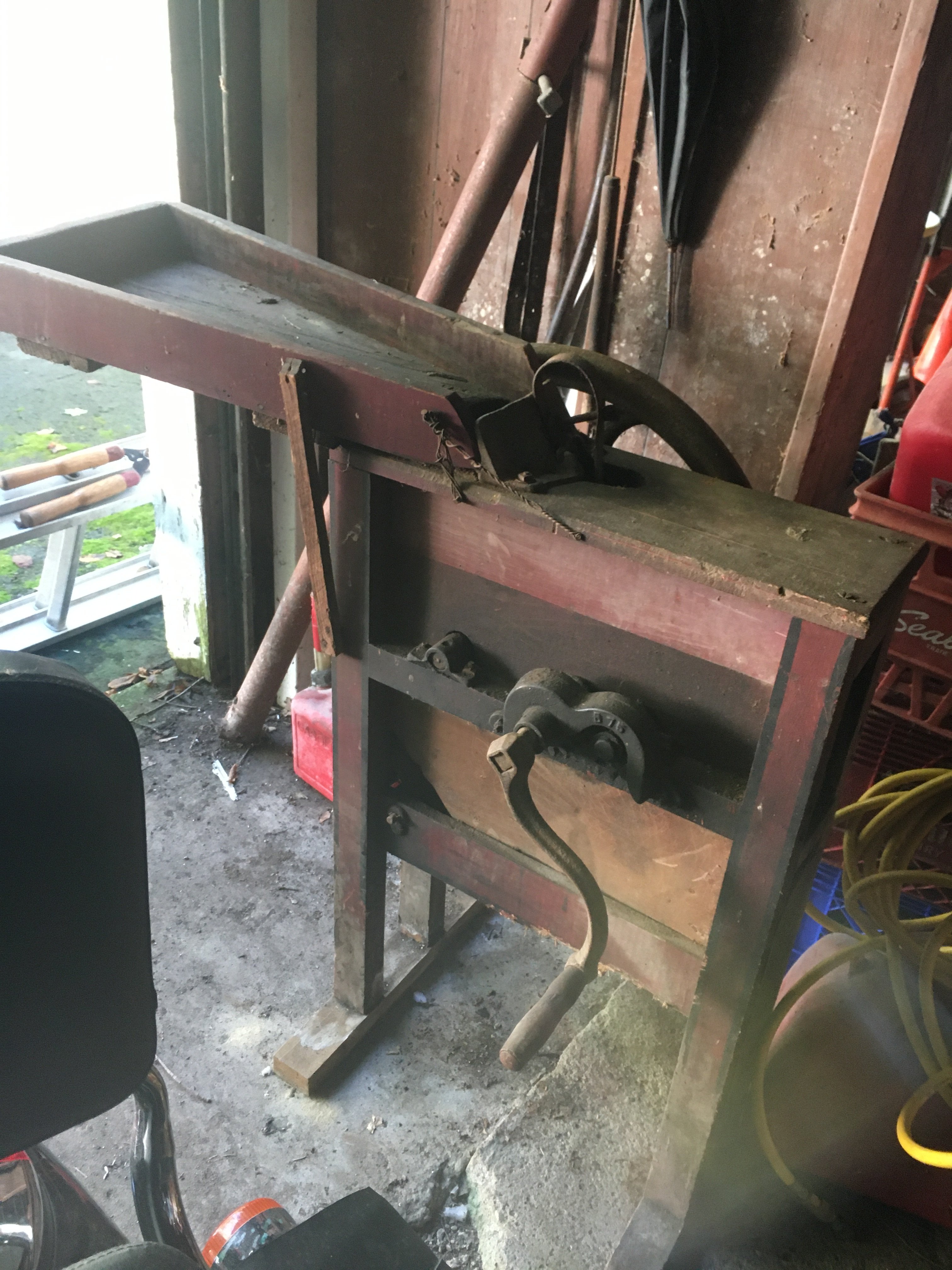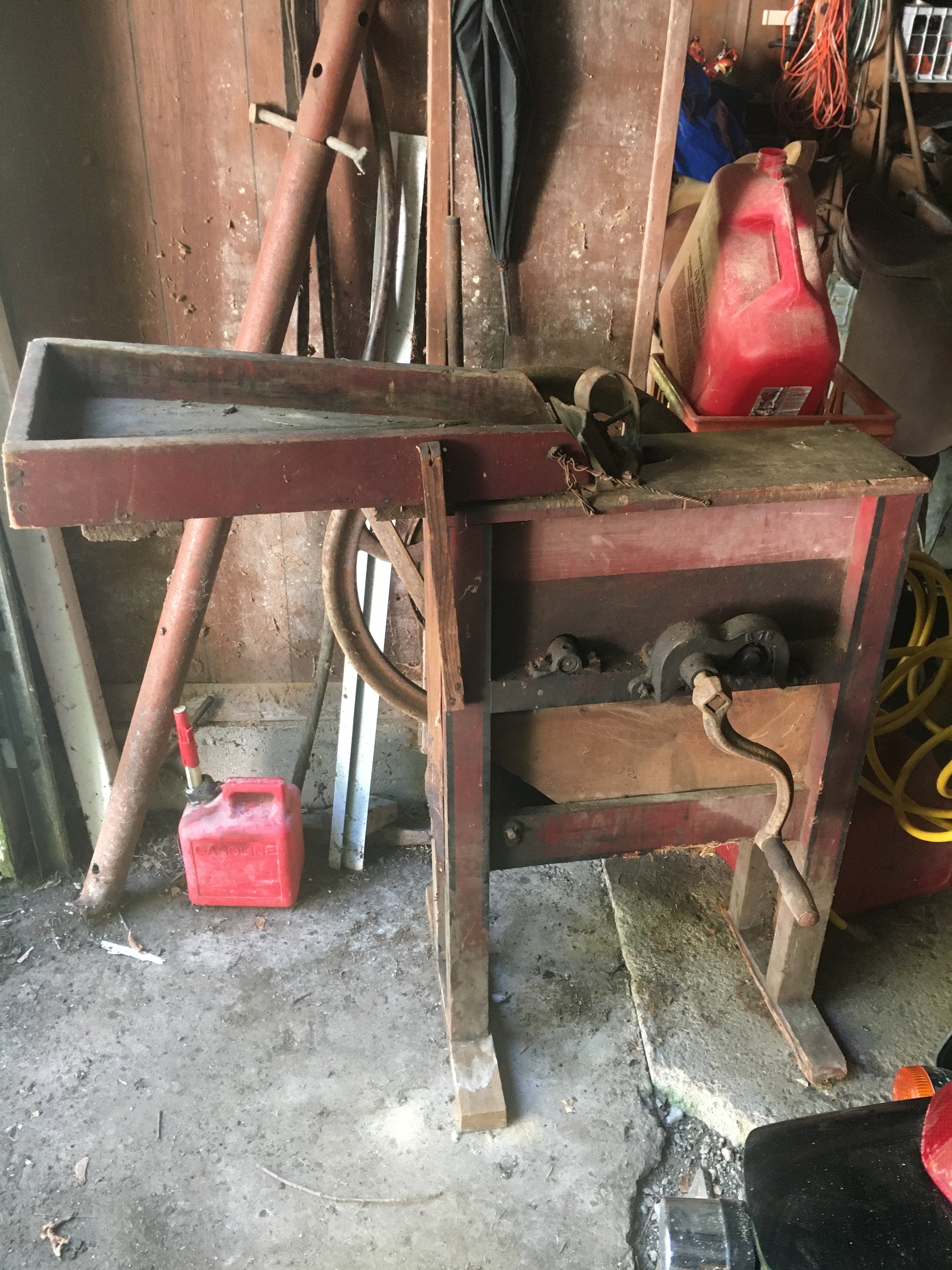 Seat; Hay Trolley; Galvanized Oil Cans, Buckets & Tubs; Hand Saws; Antique