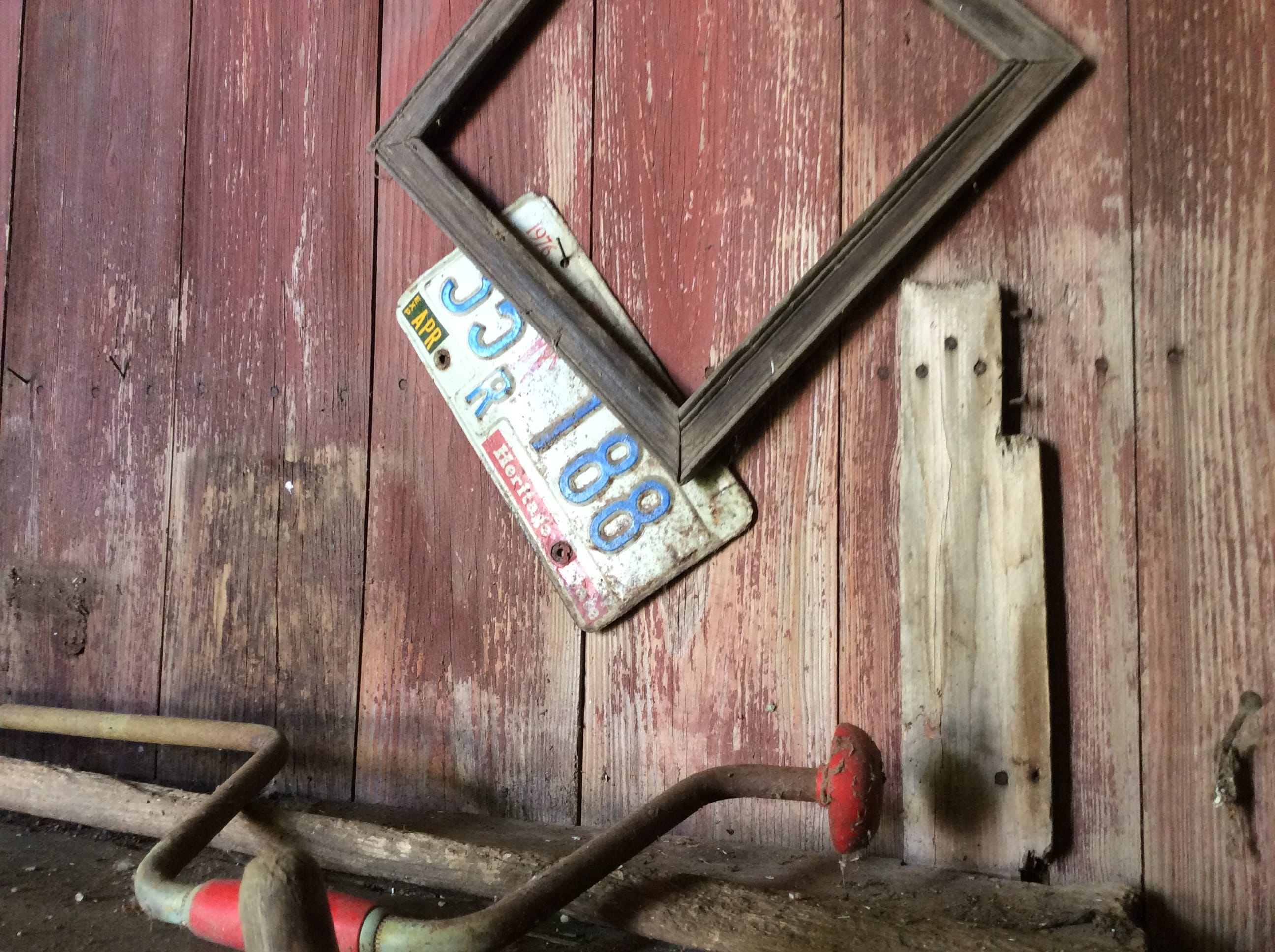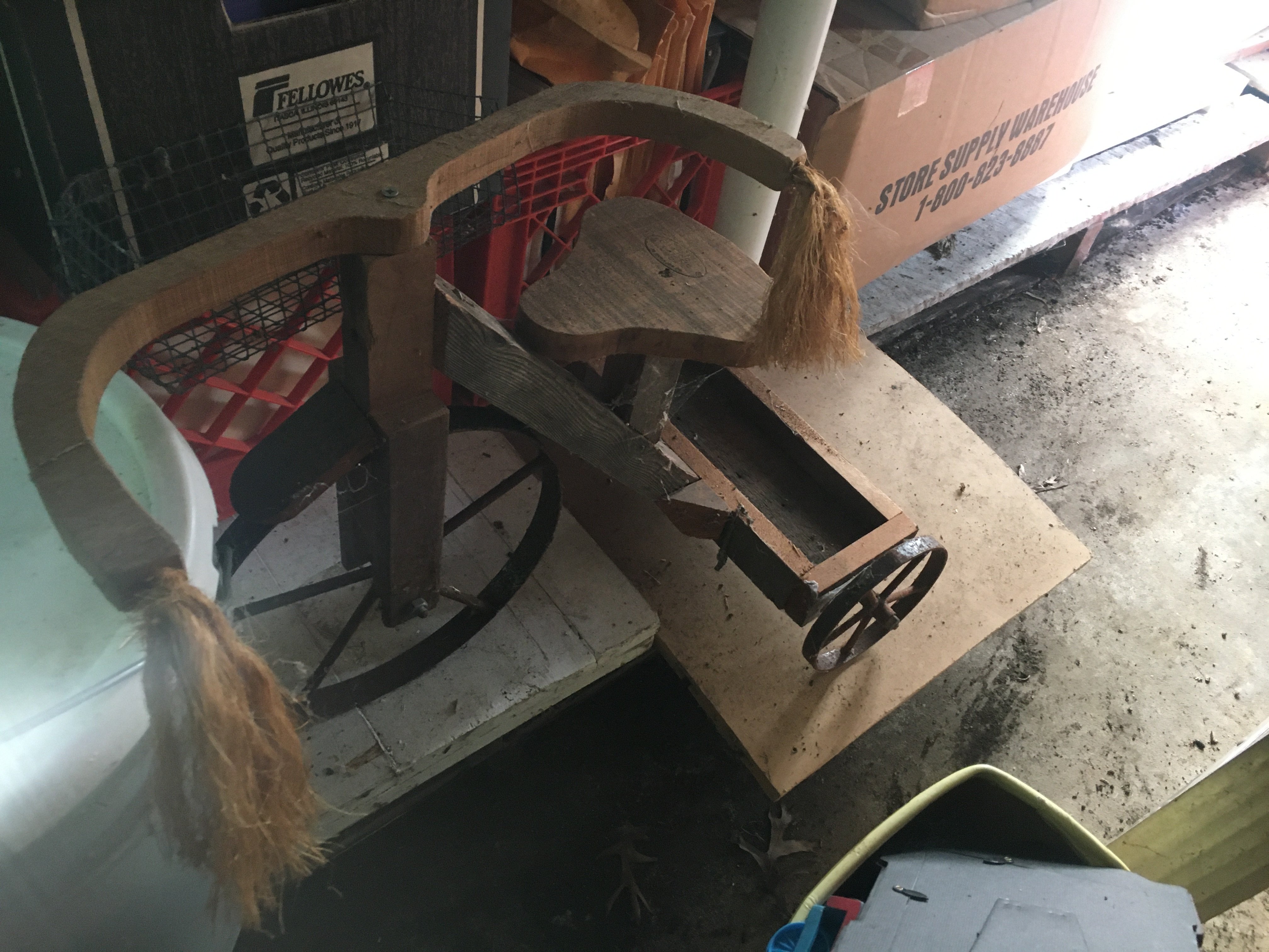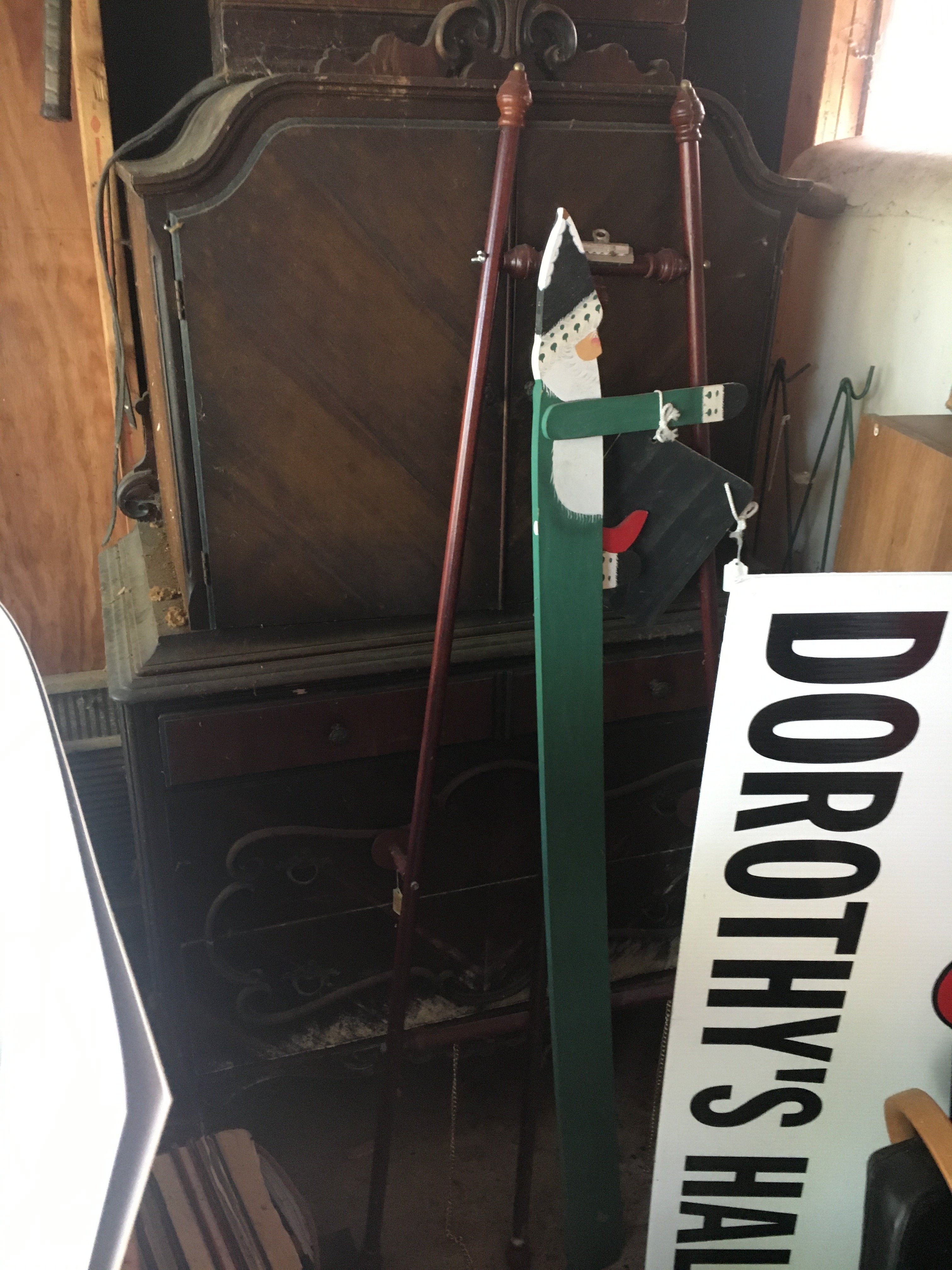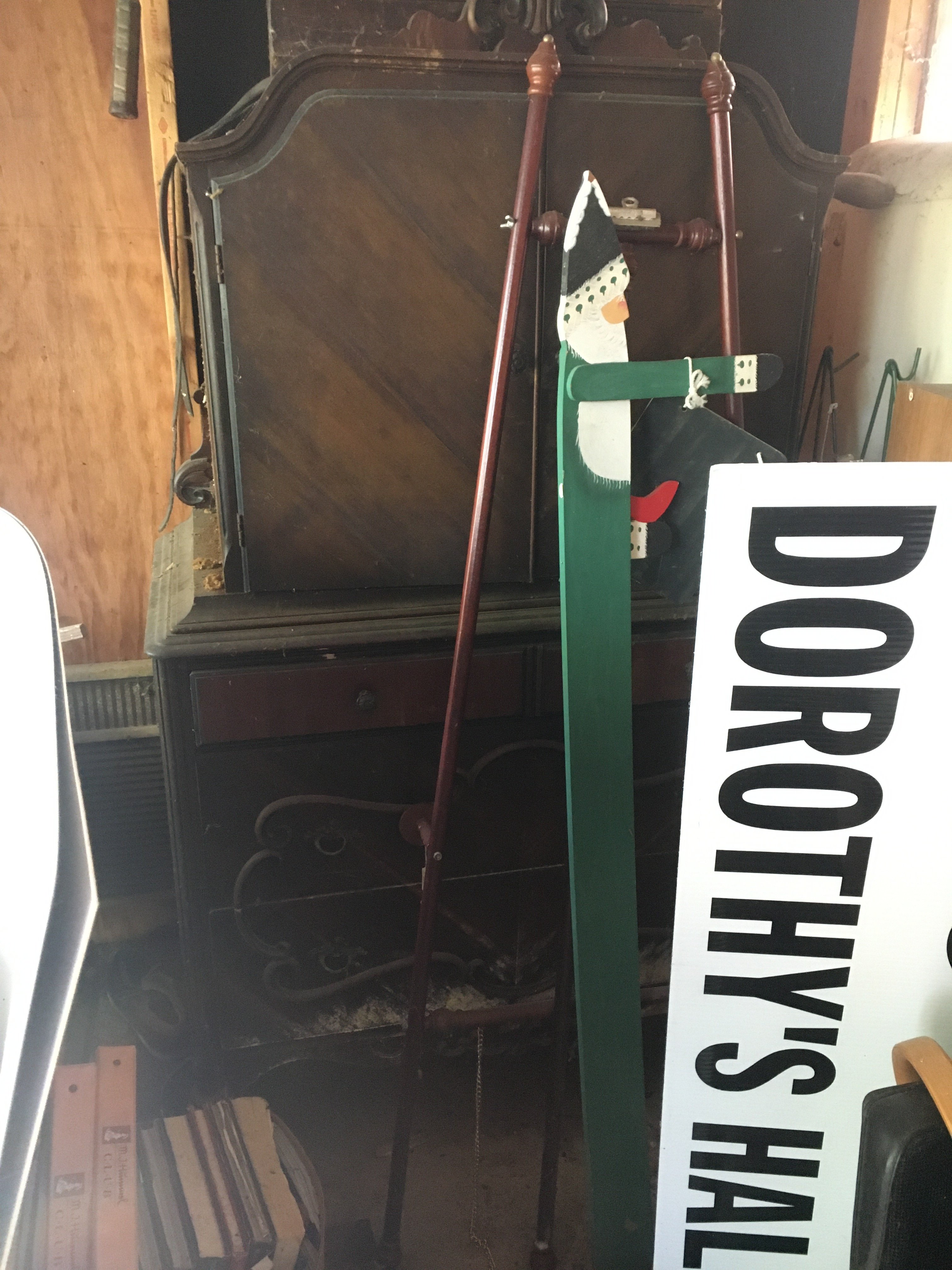 Wicker Buggy; Wooden Sleds; Ice Skates; License Plates; Plymouth Car