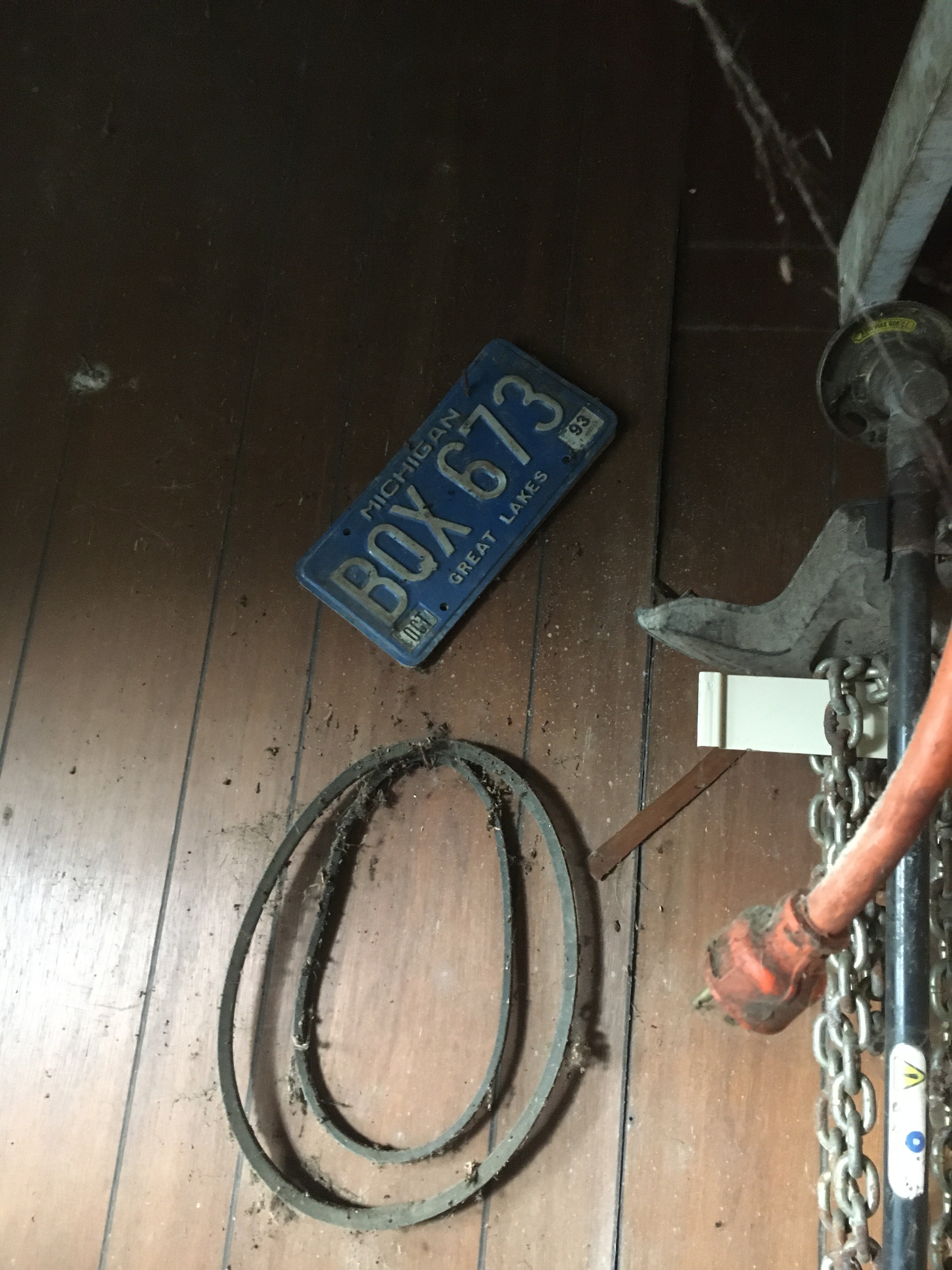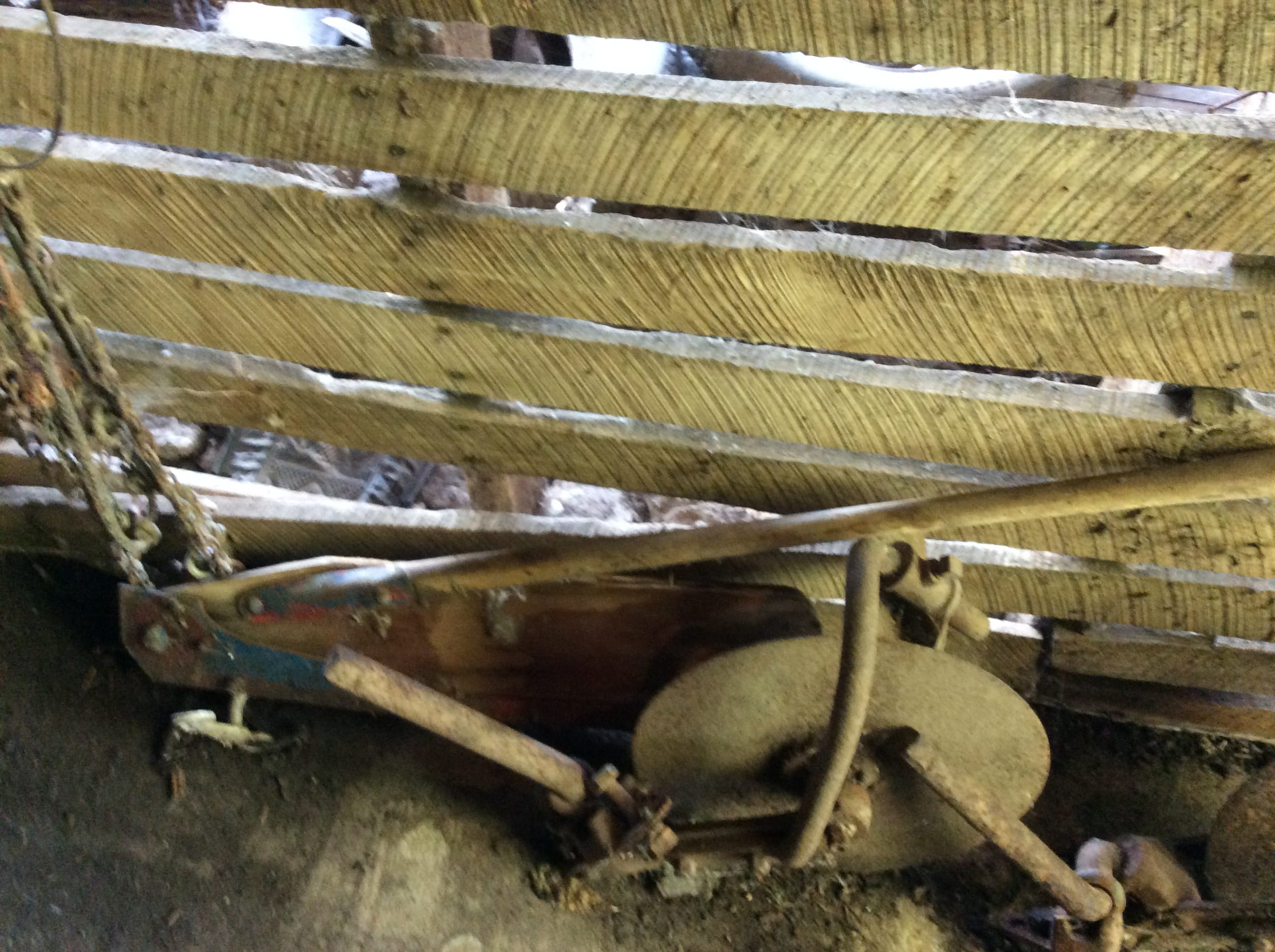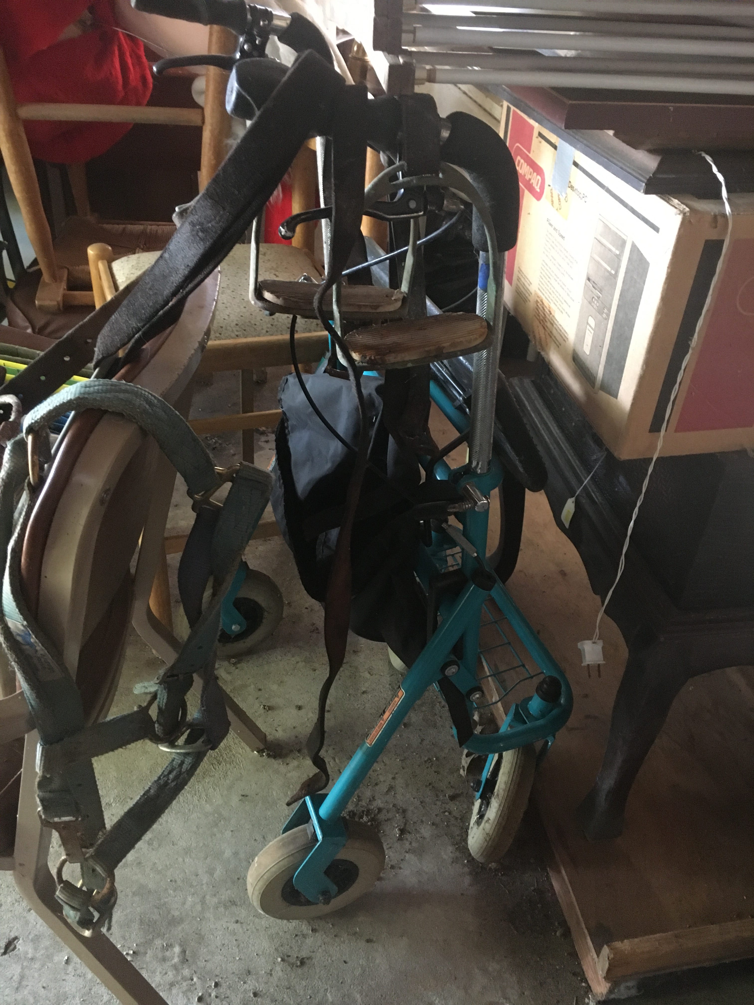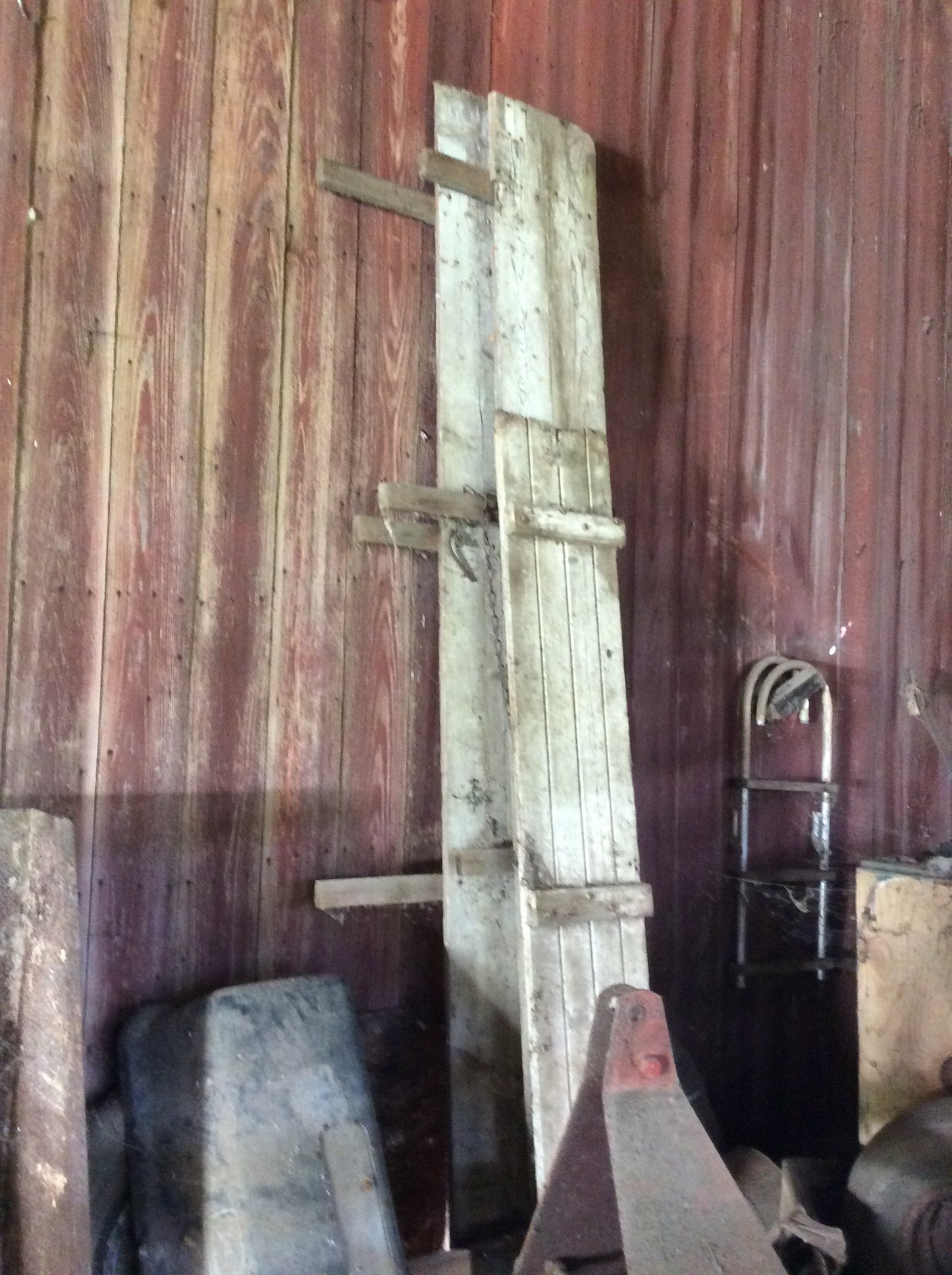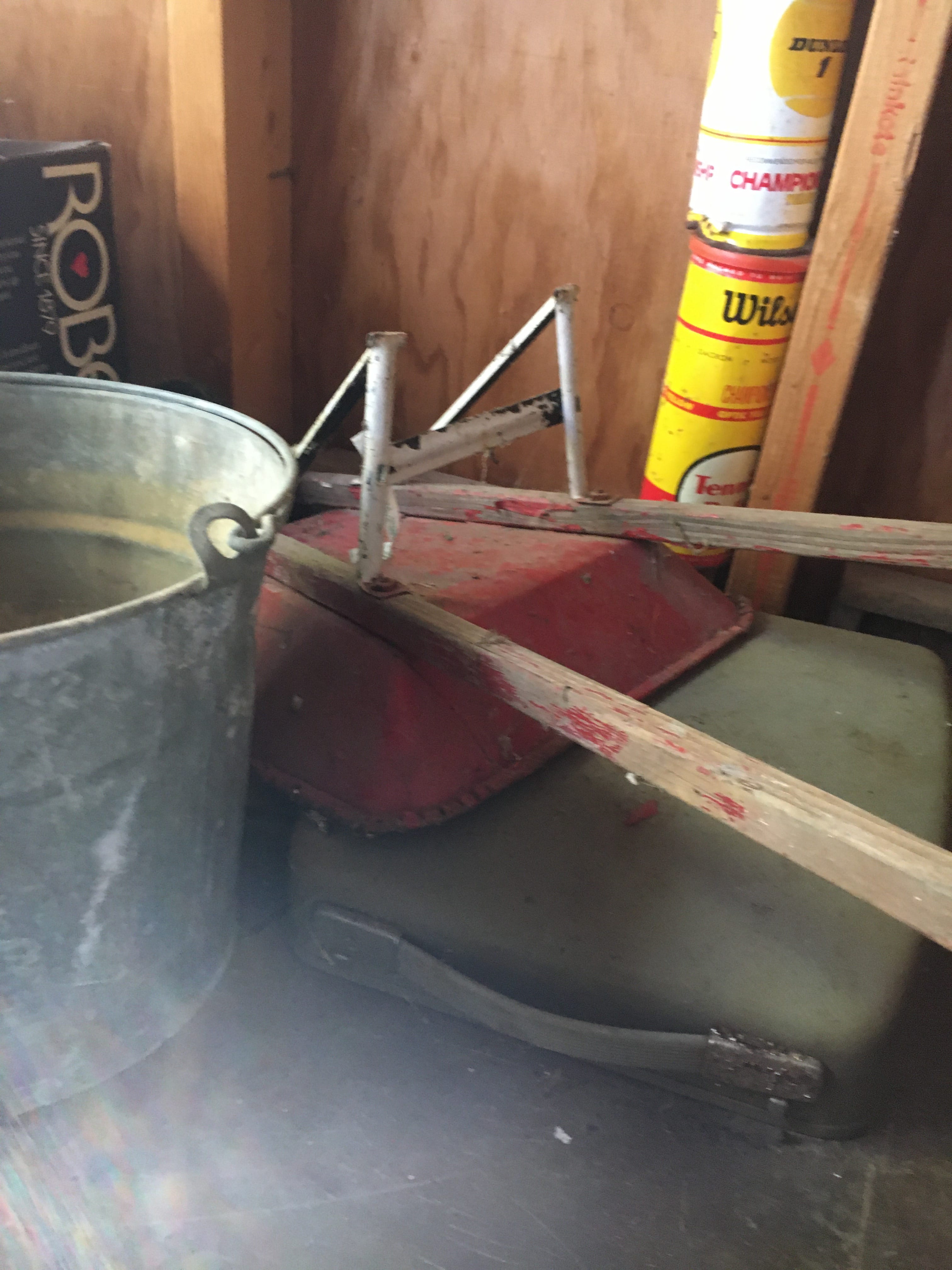 Wicker Buggy; Wooden Sleds; Ice Skates; License Plates; Plymouth Car