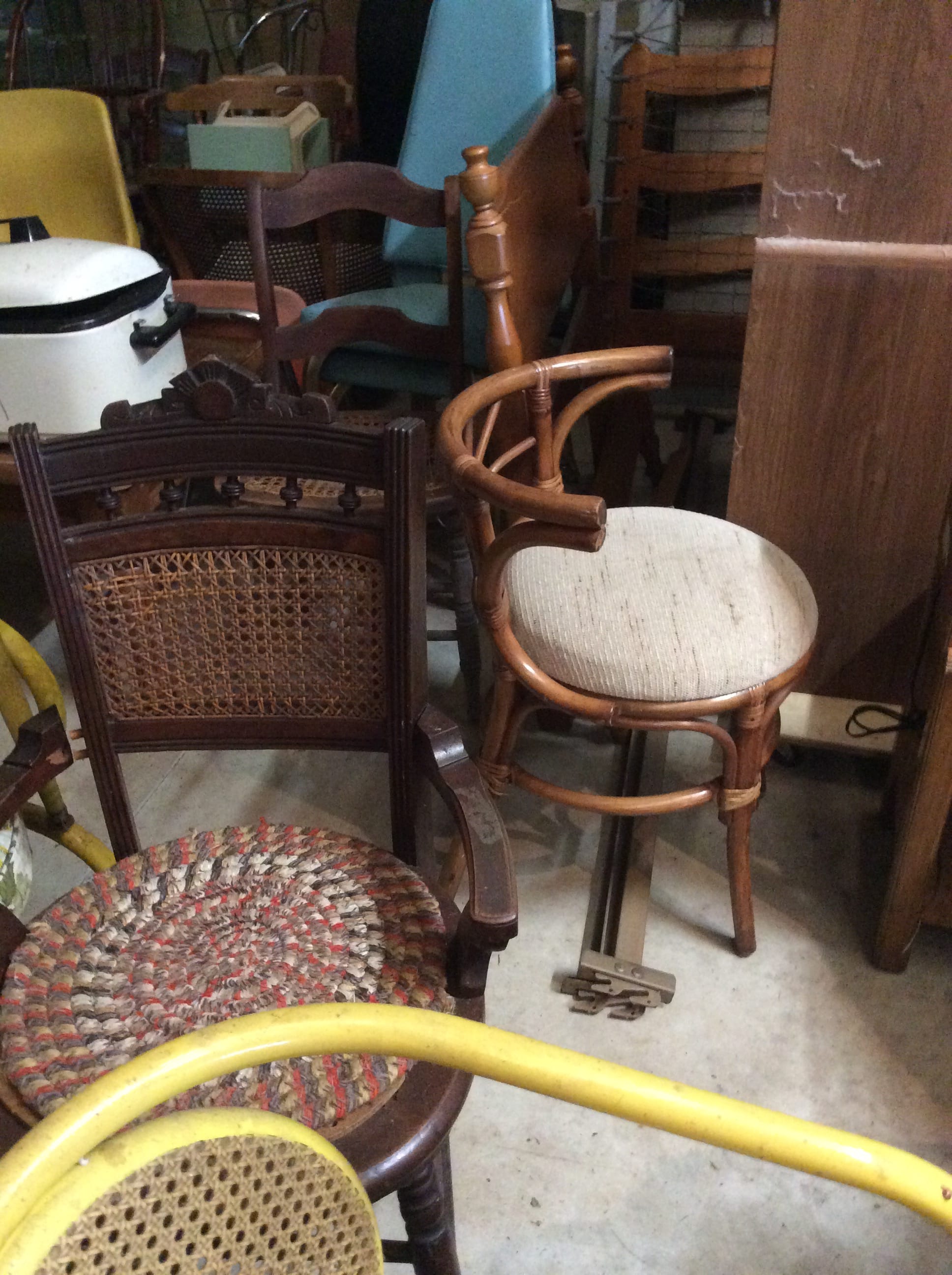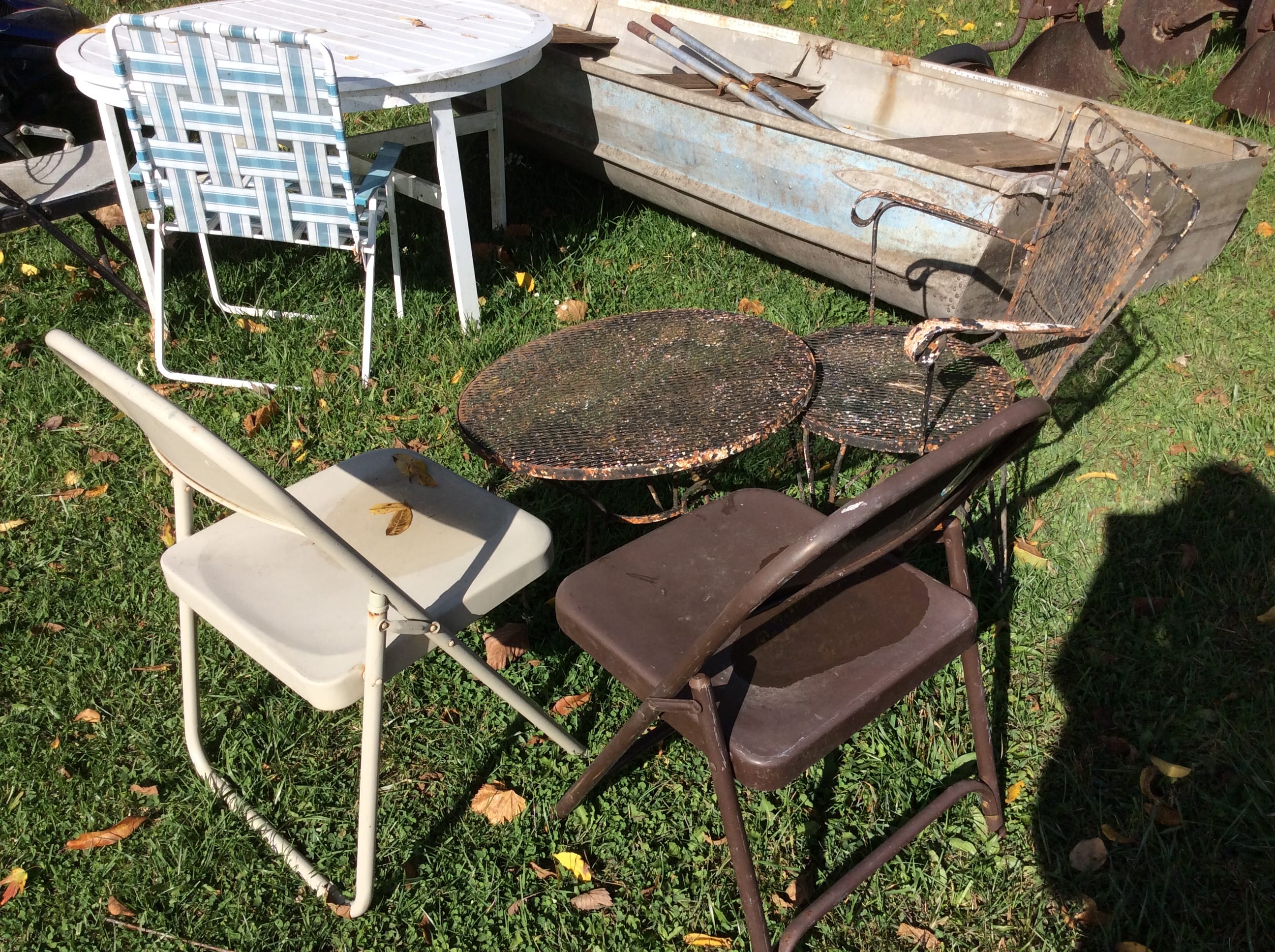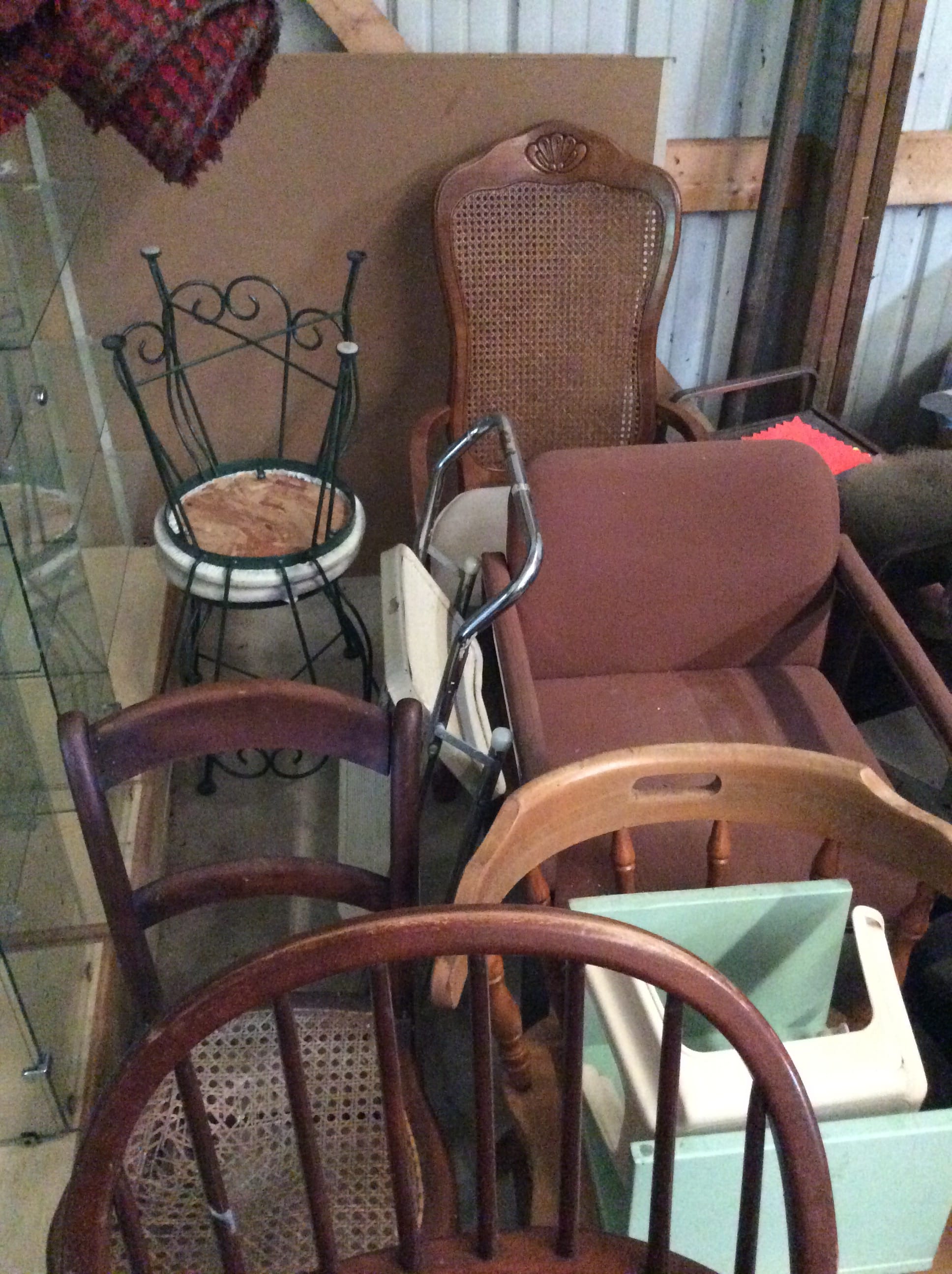 Bottom Chairs; Primitive Cabinet; Painted Furniture; Vic. Iron Fencing; Wood