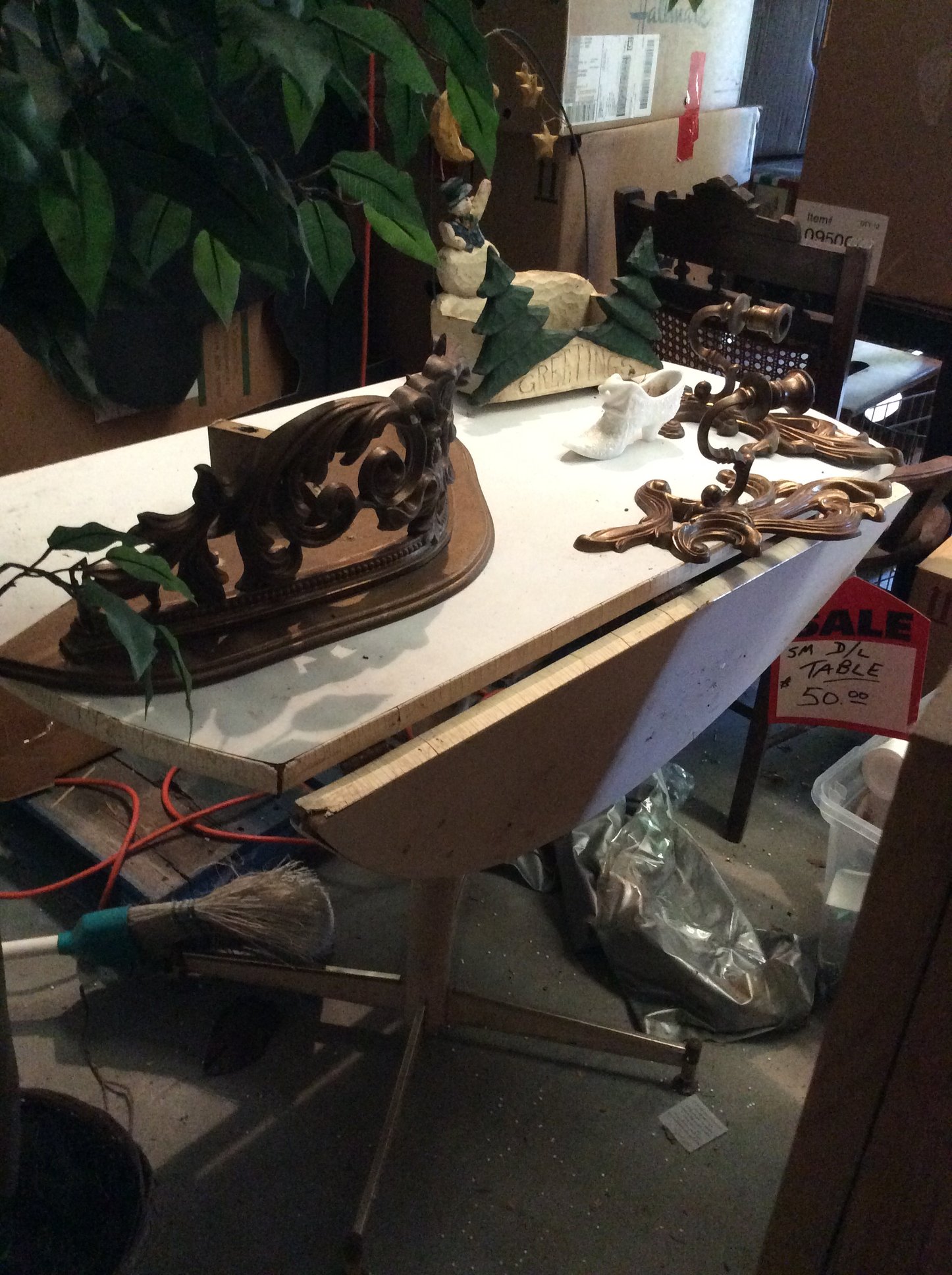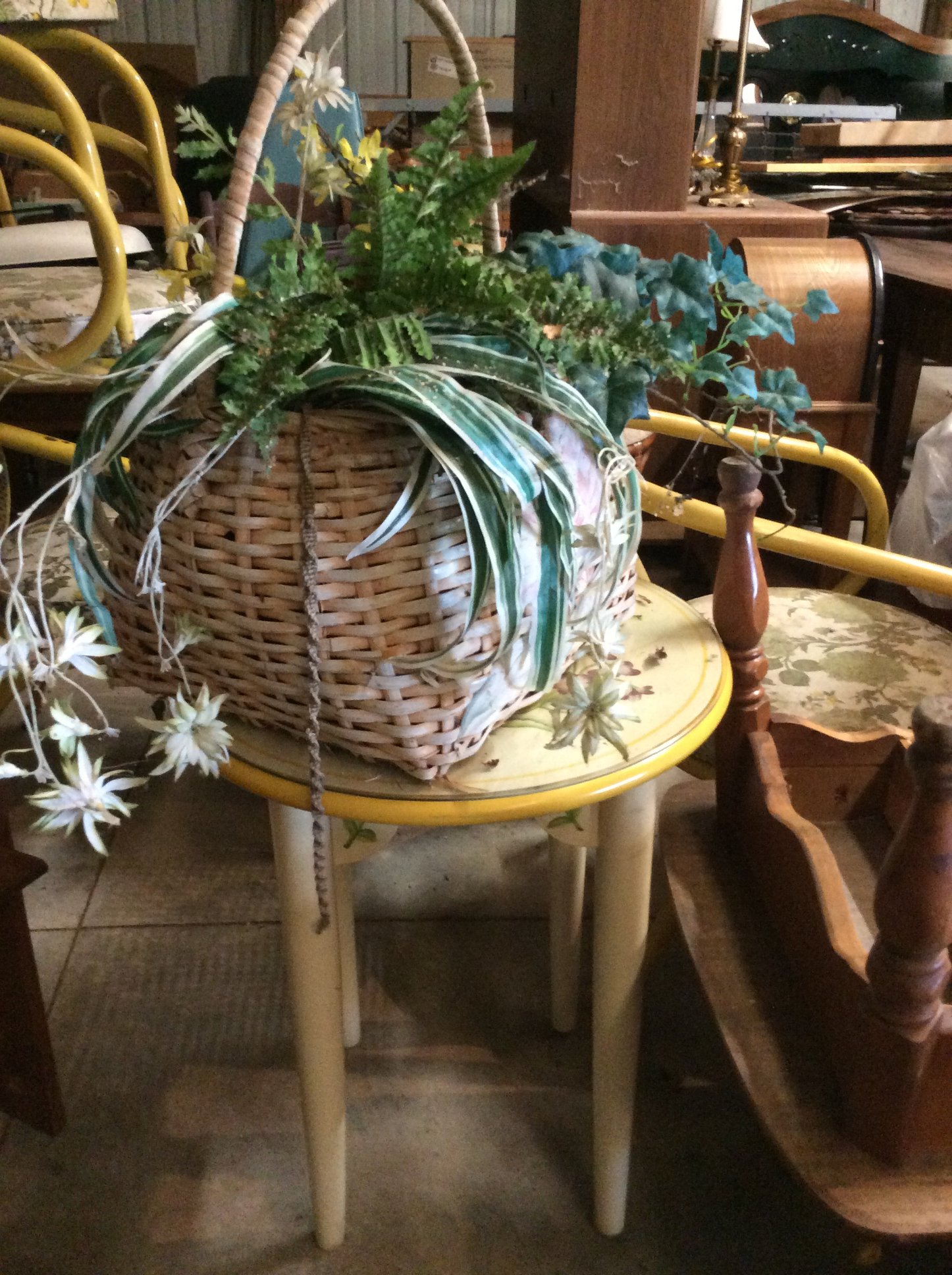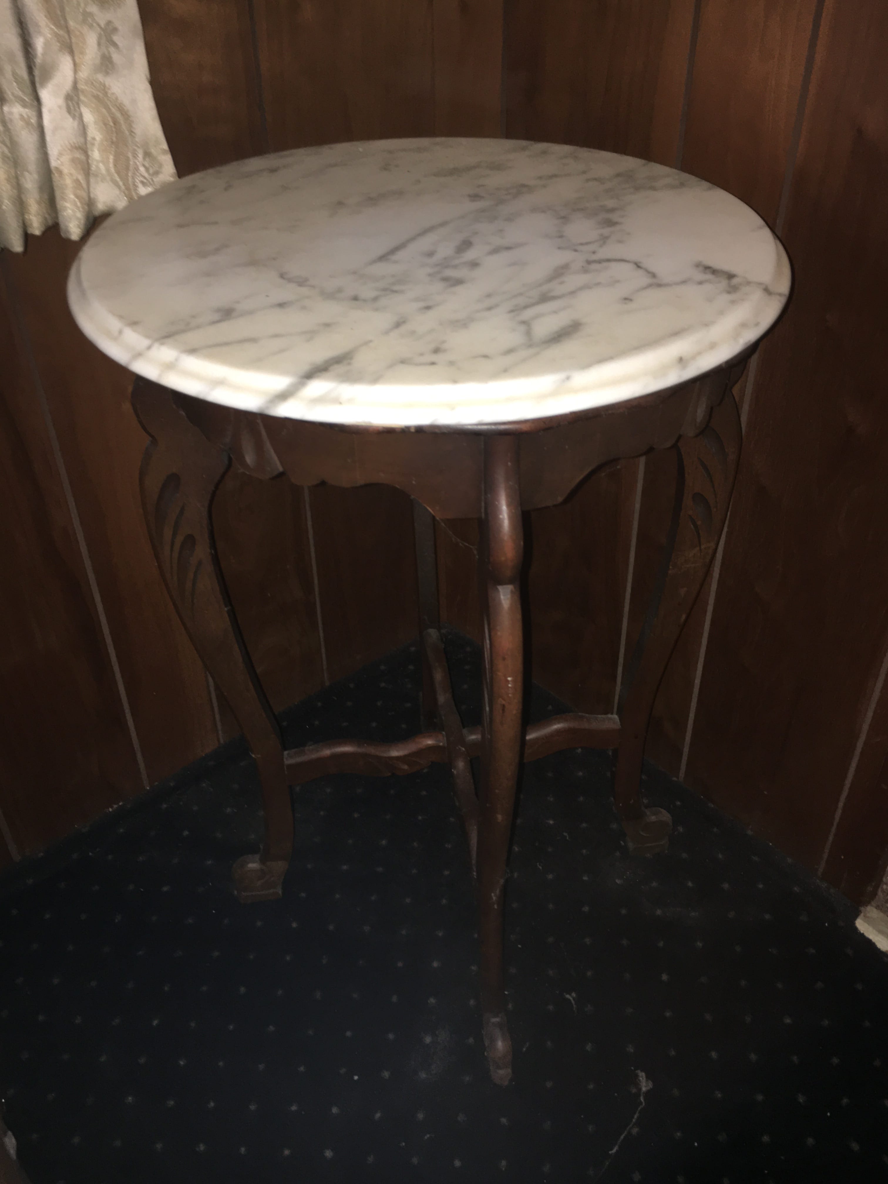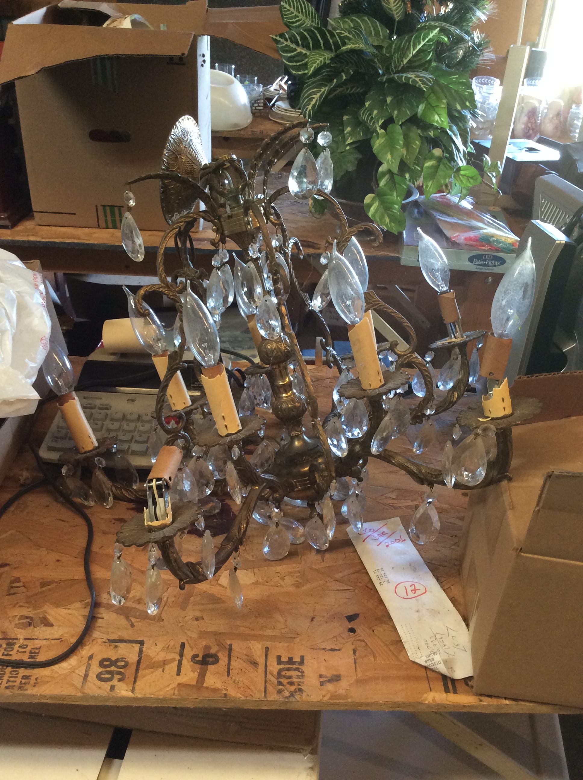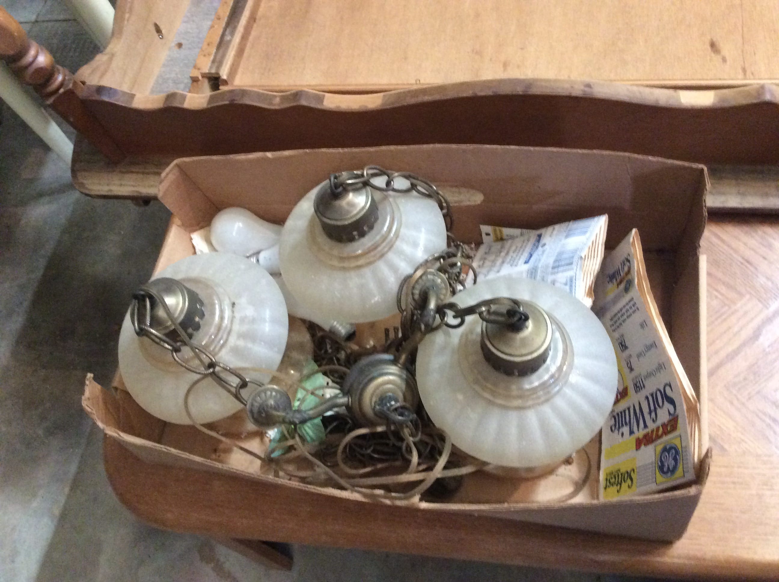 High Chair; School Desk; Lamp Tables; Marble Top Plant Stands; Vintage Chandeliers