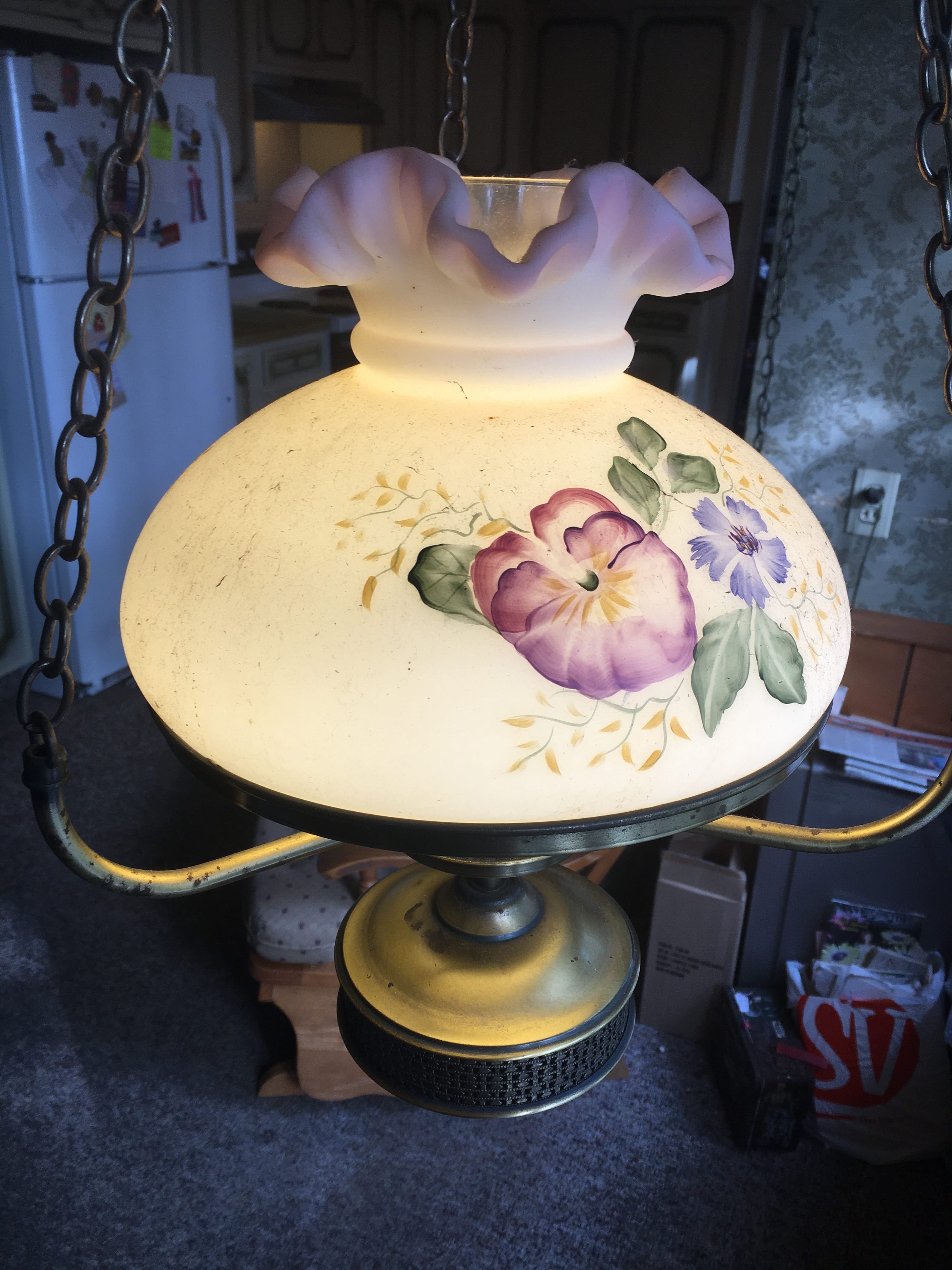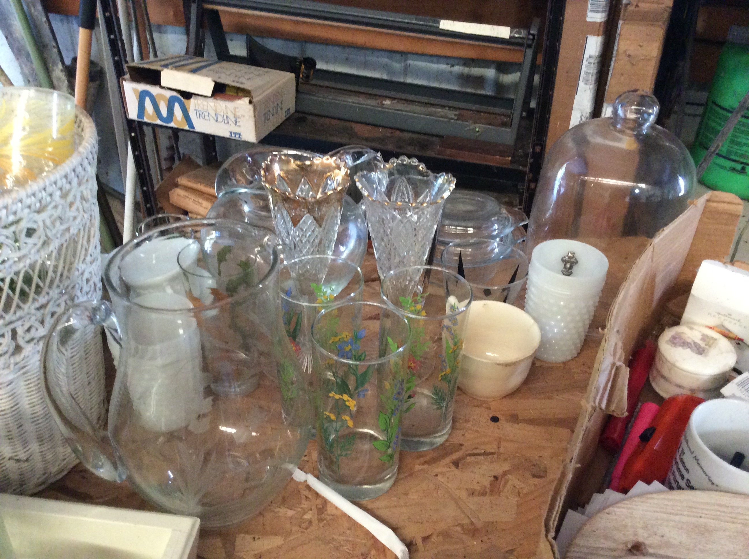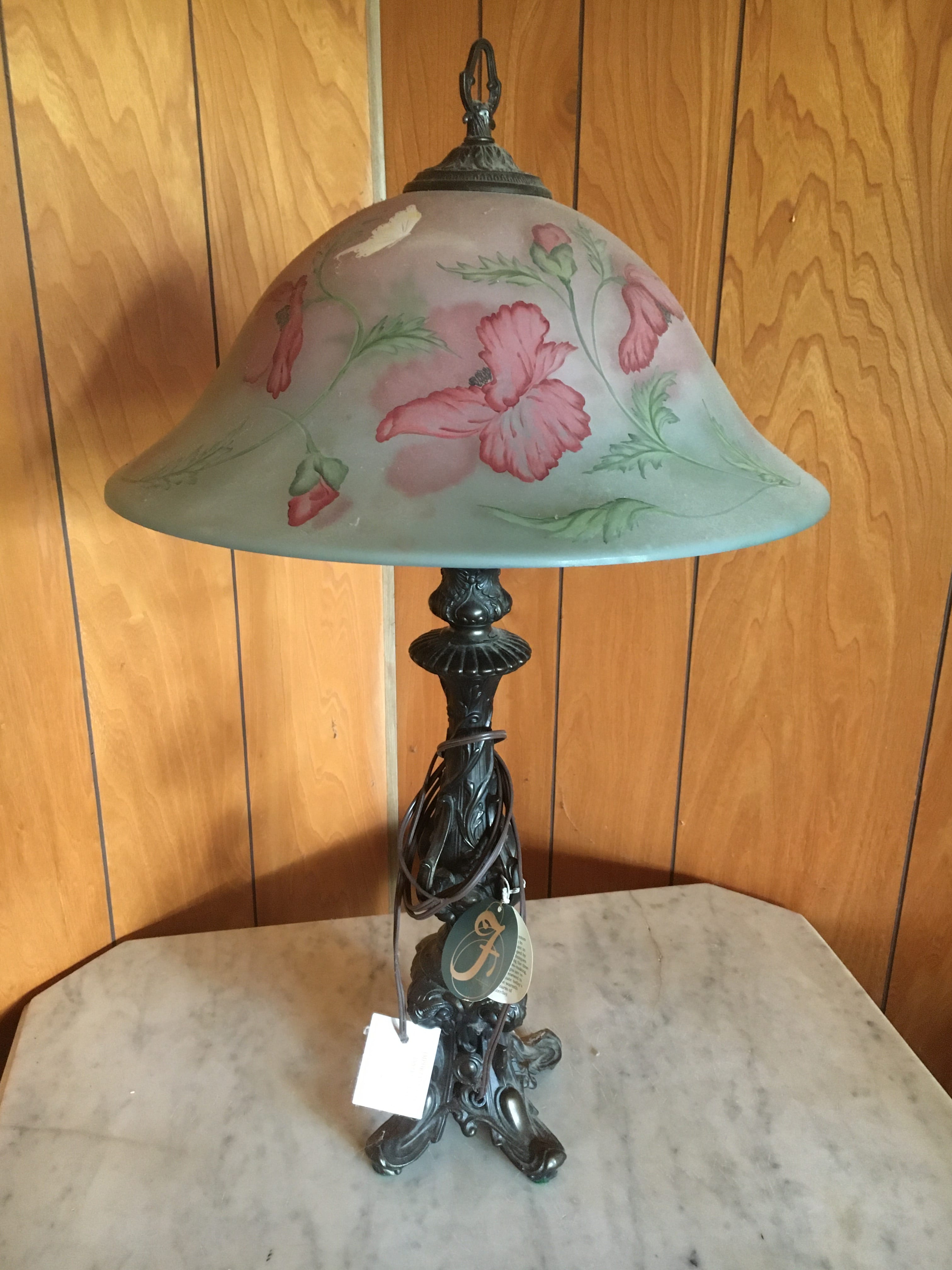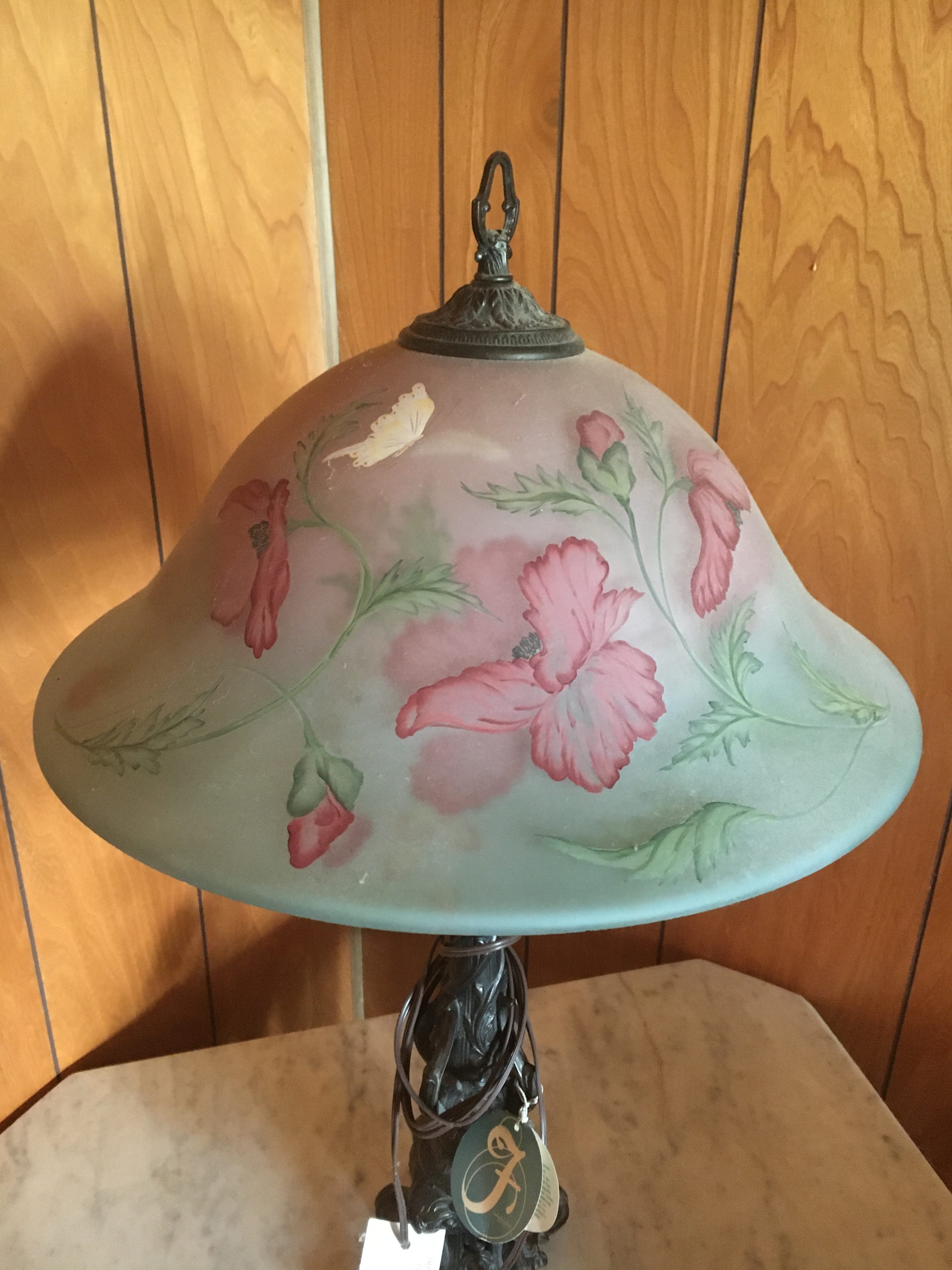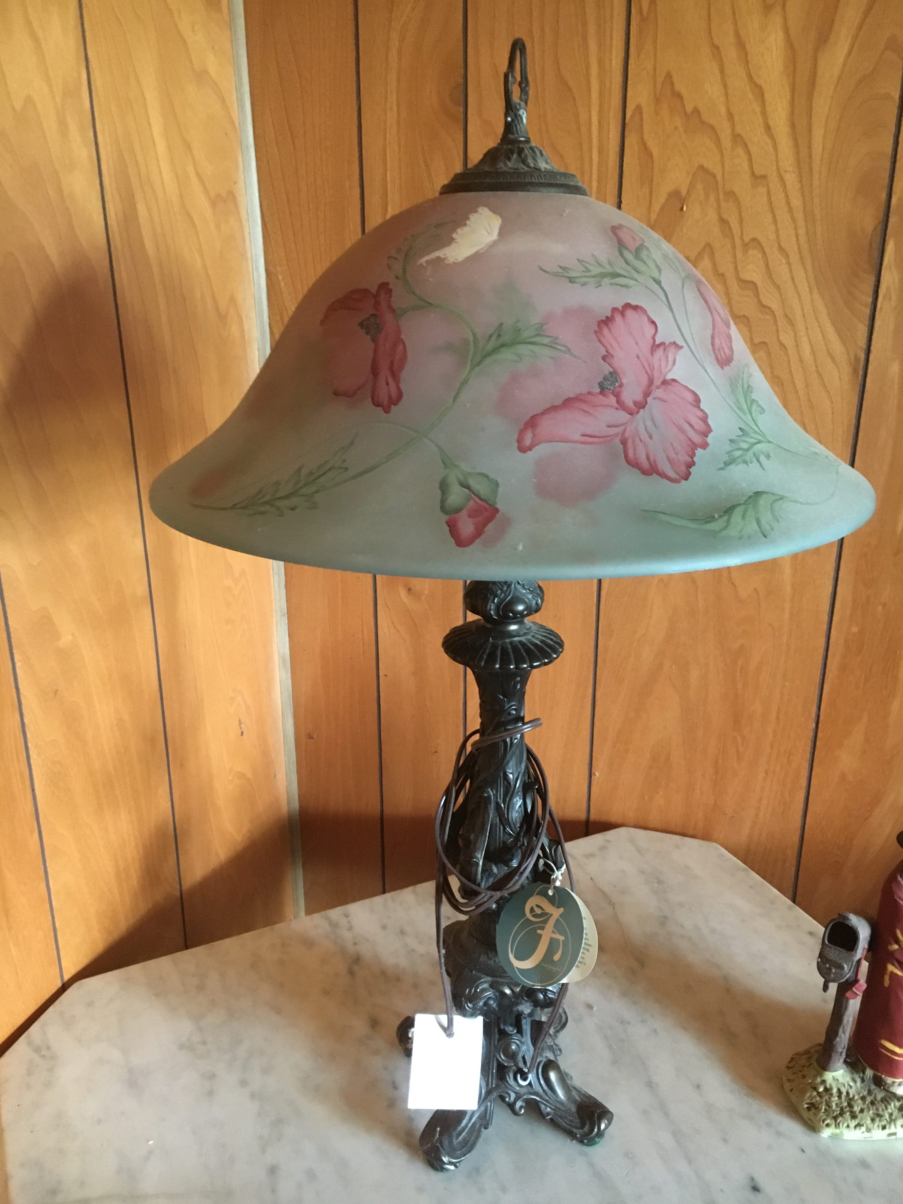 Hanging & Table Lamps, Clocks, Iridized Clock, Pitchers, Baskets, Receiver;
