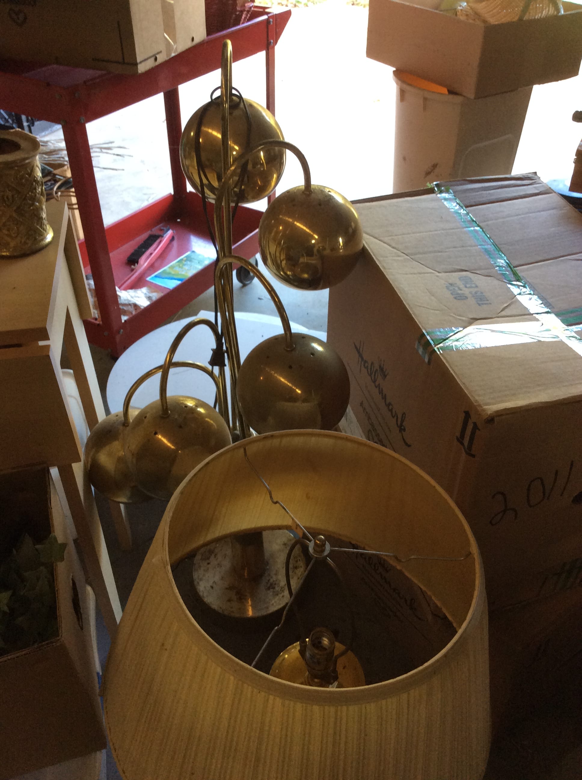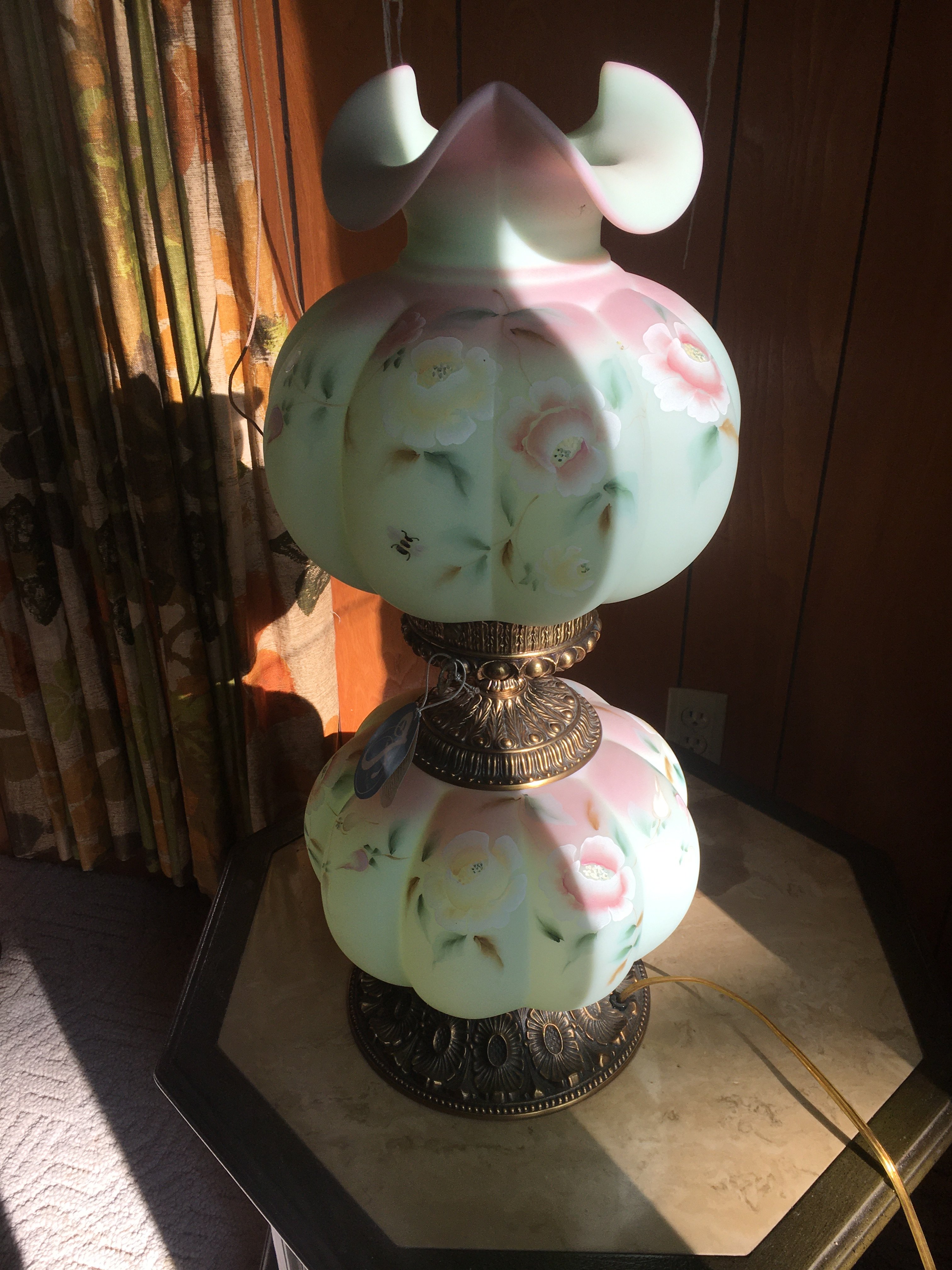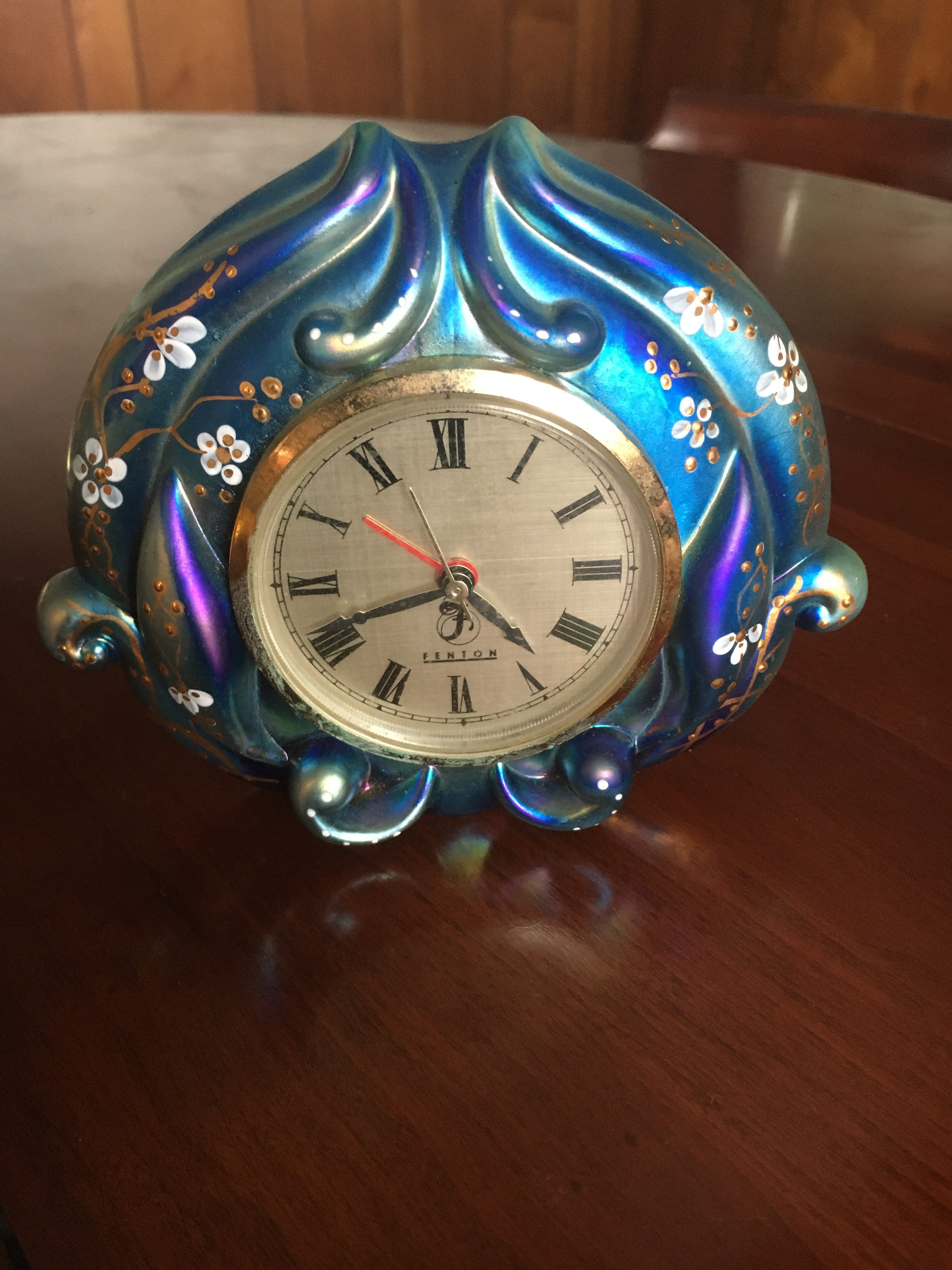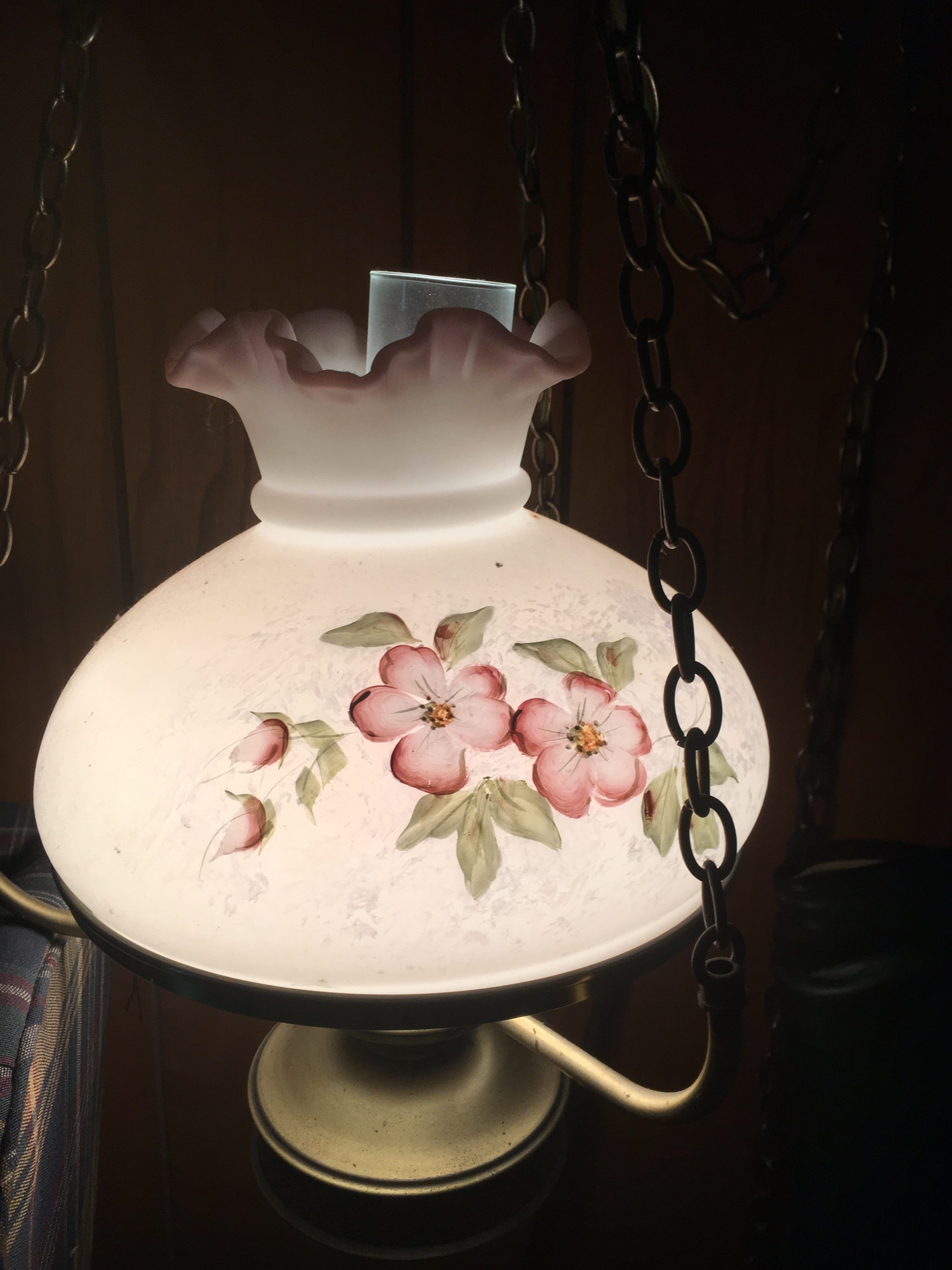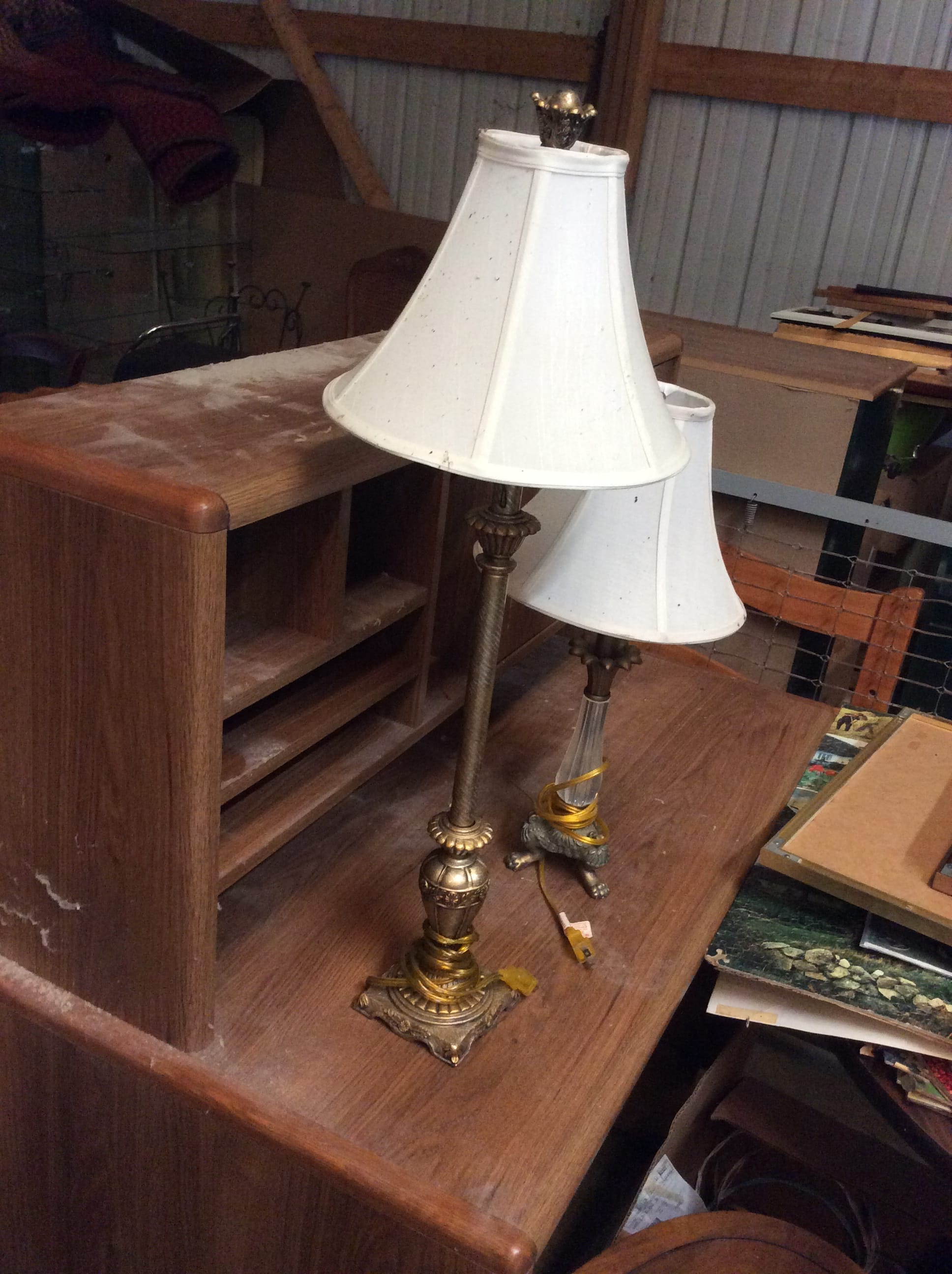Hanging & Table Lamps, Clocks, Iridized Clock, Pitchers, Baskets, Receiver;