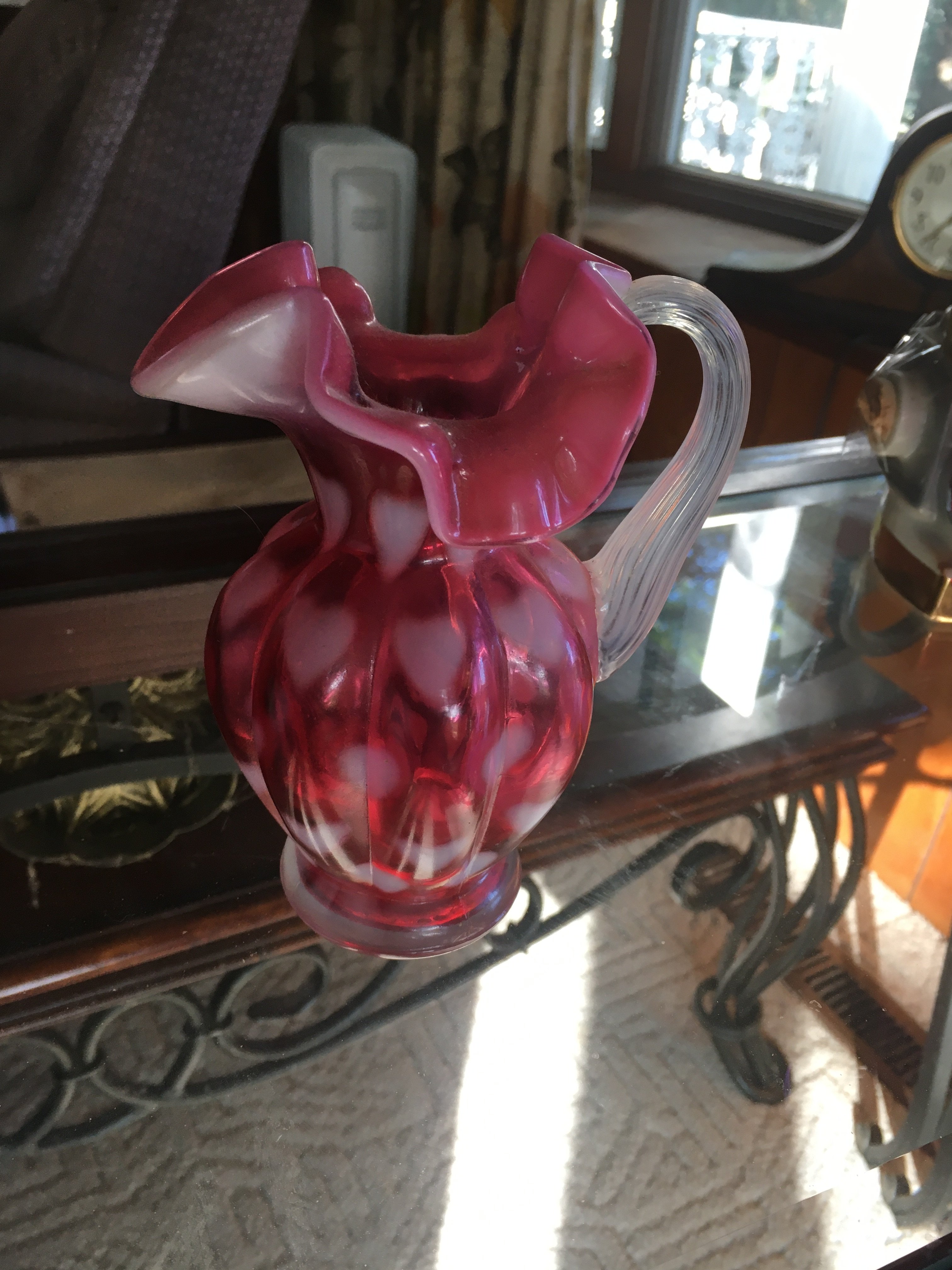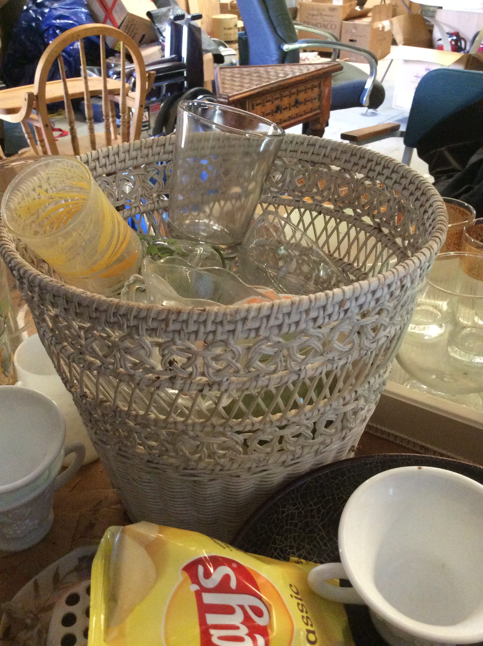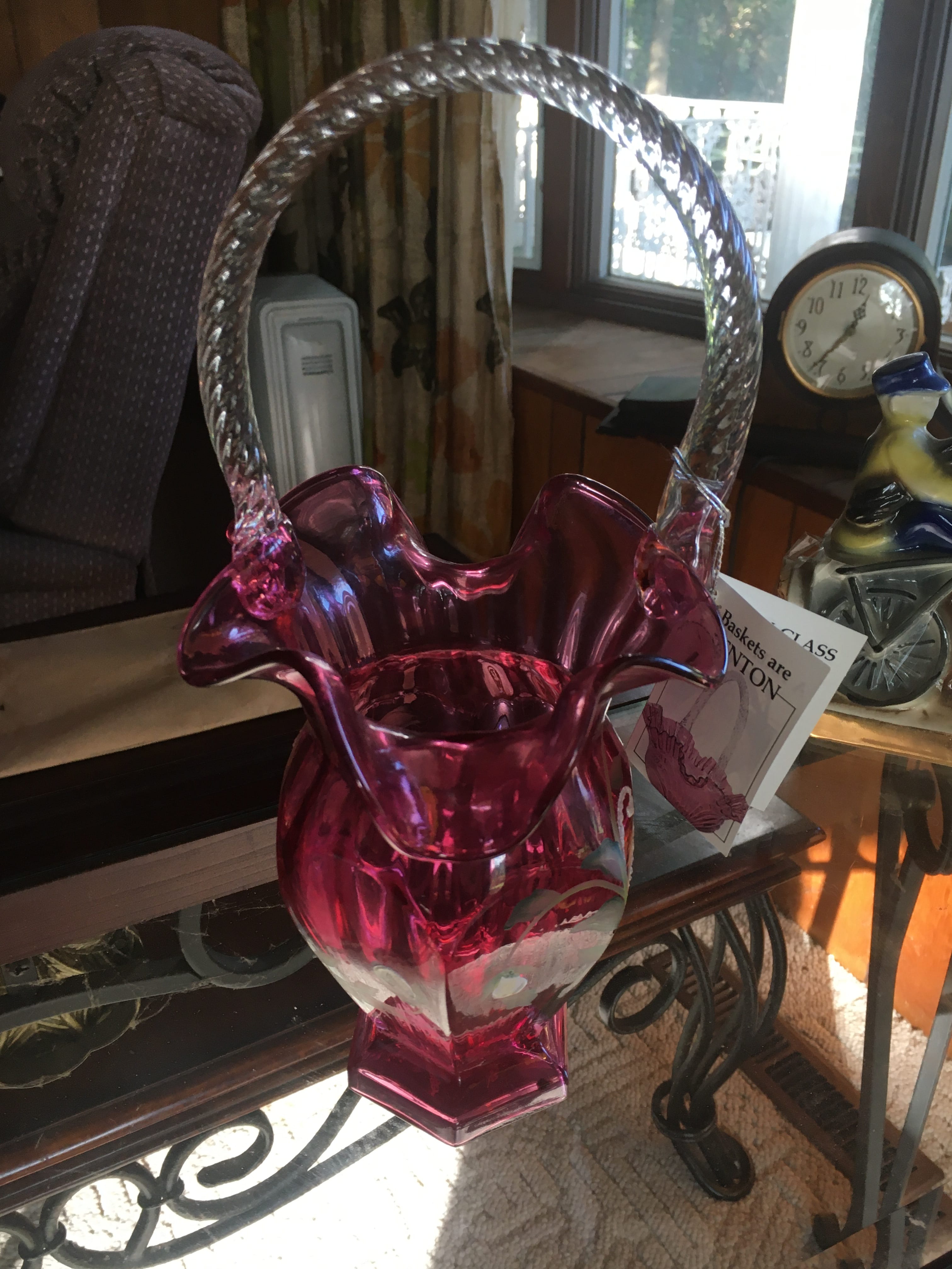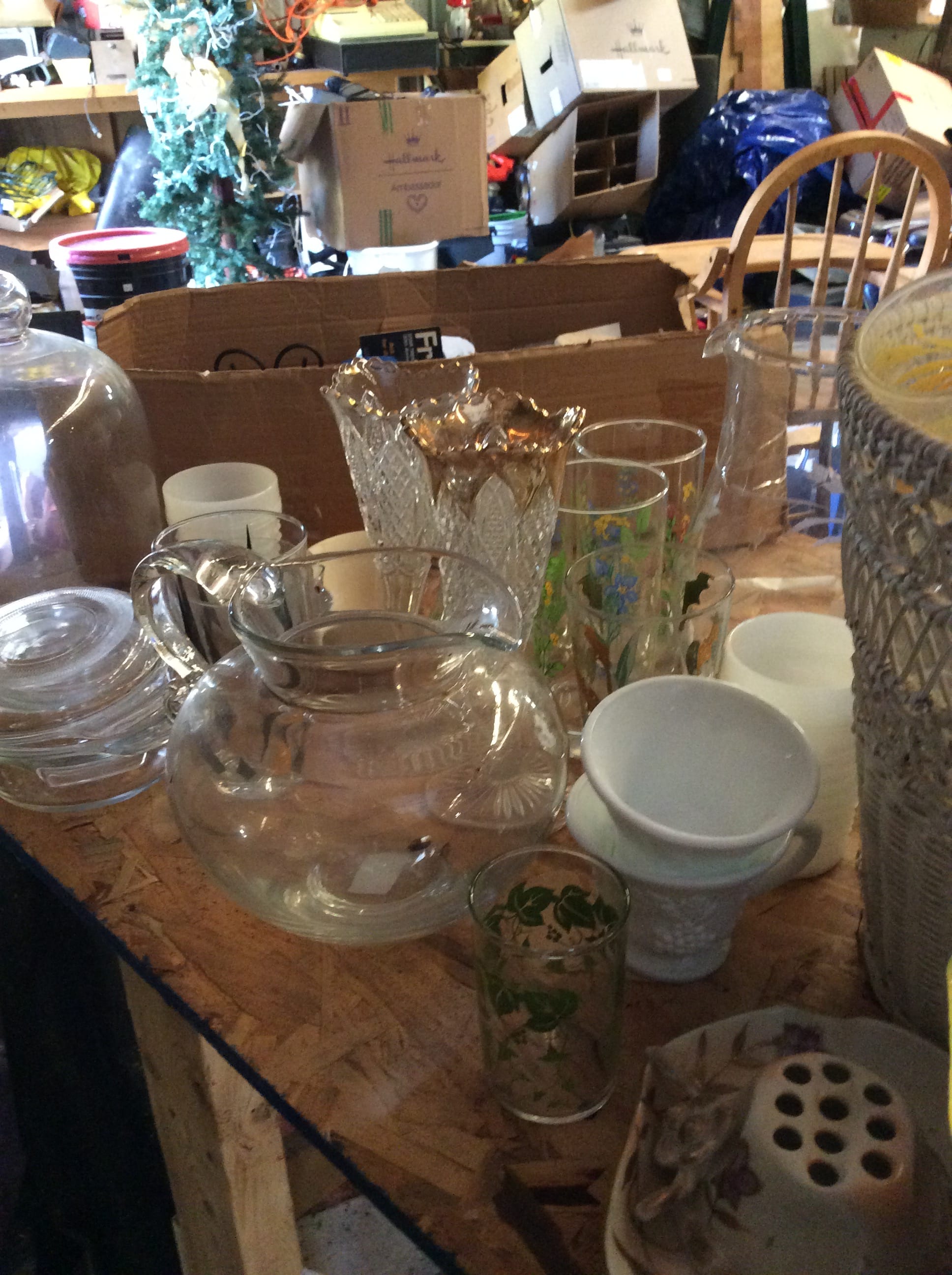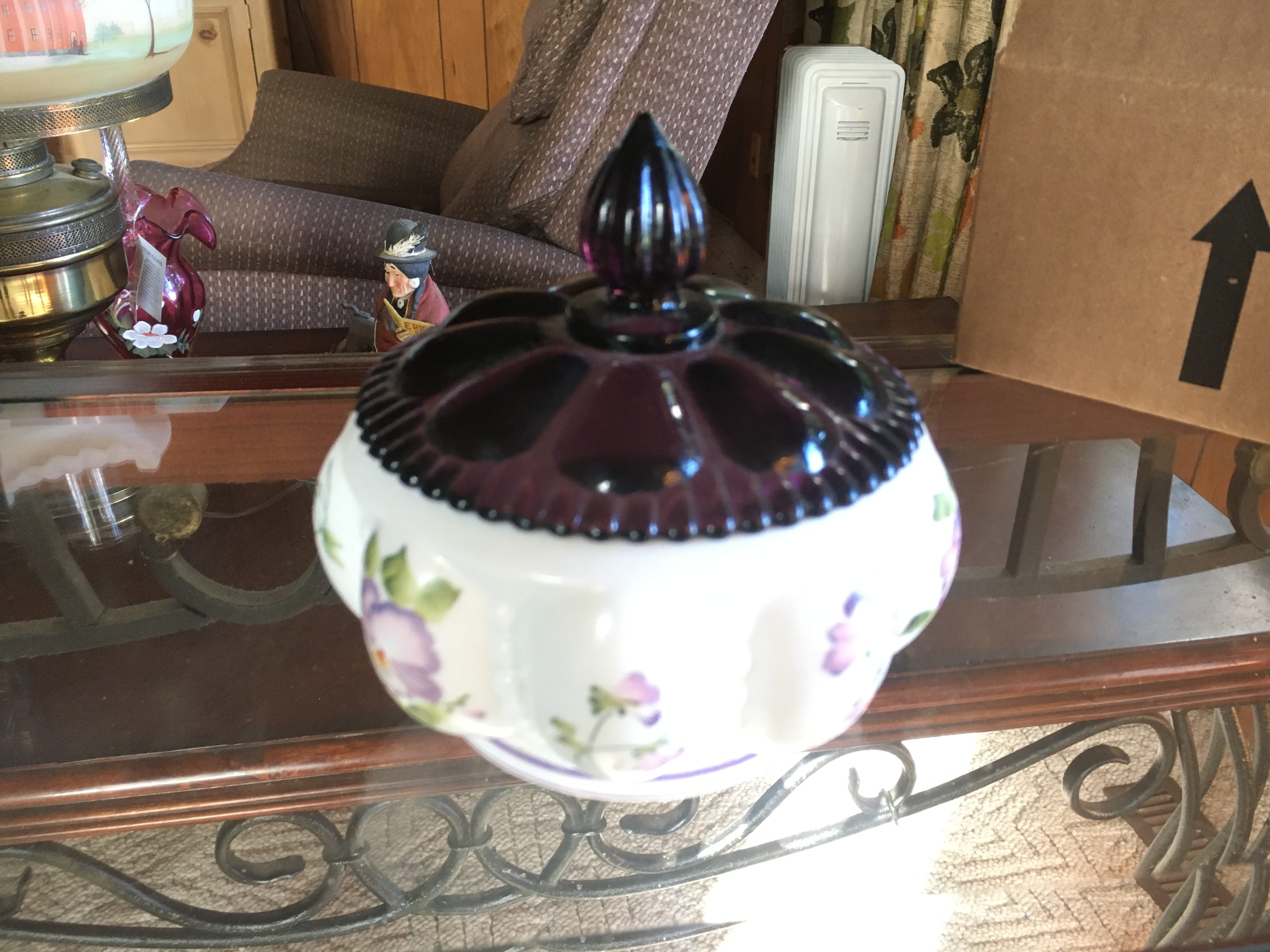 Hanging & Table Lamps, Clocks, Iridized Clock, Pitchers, Baskets, Receiver;