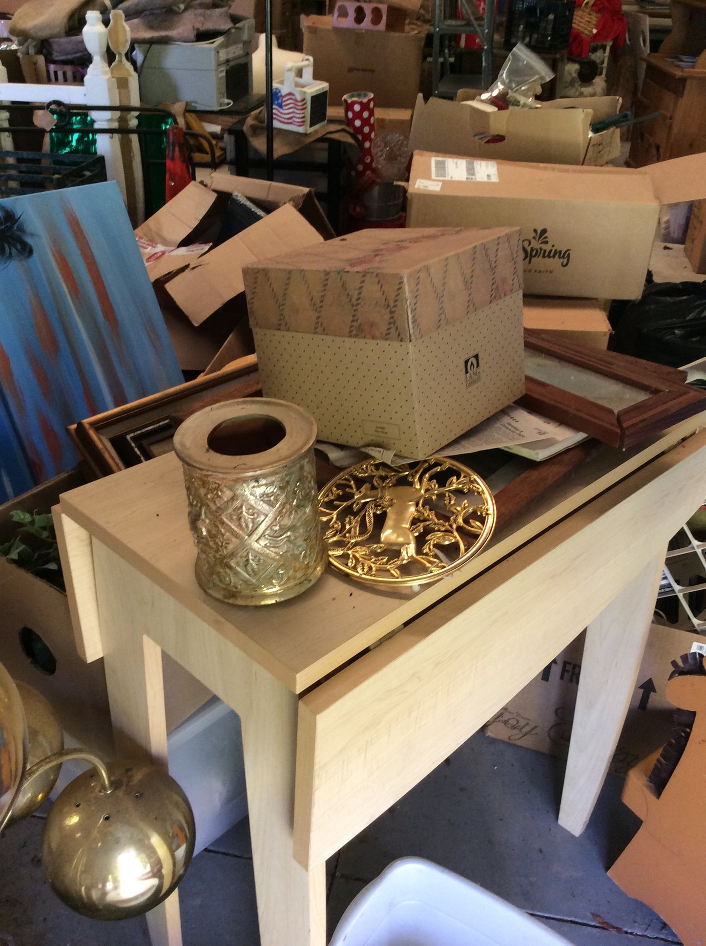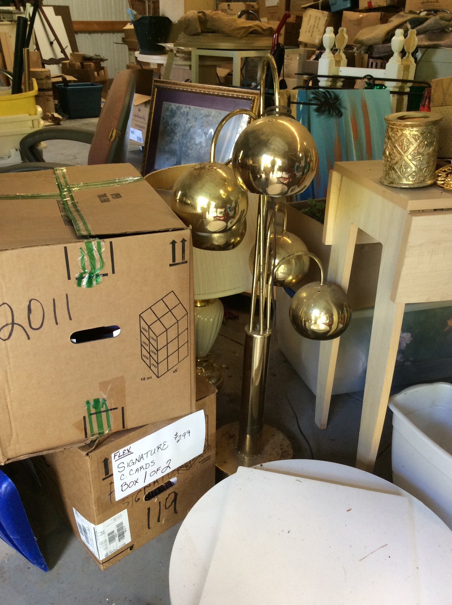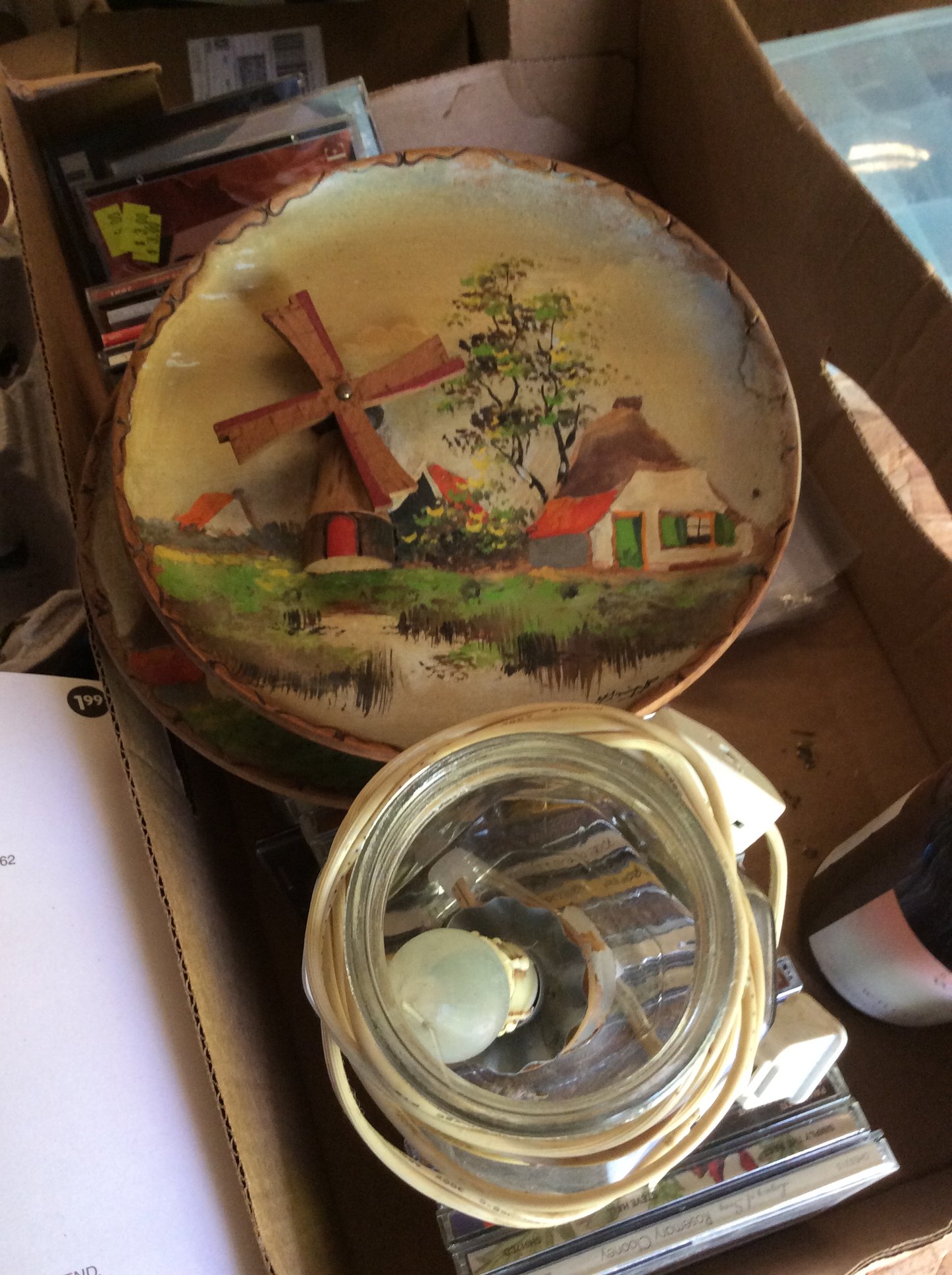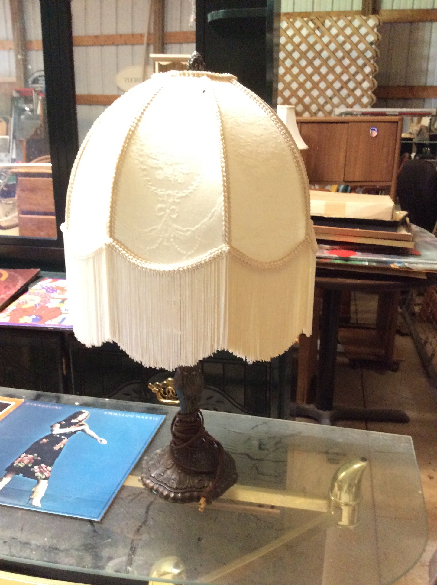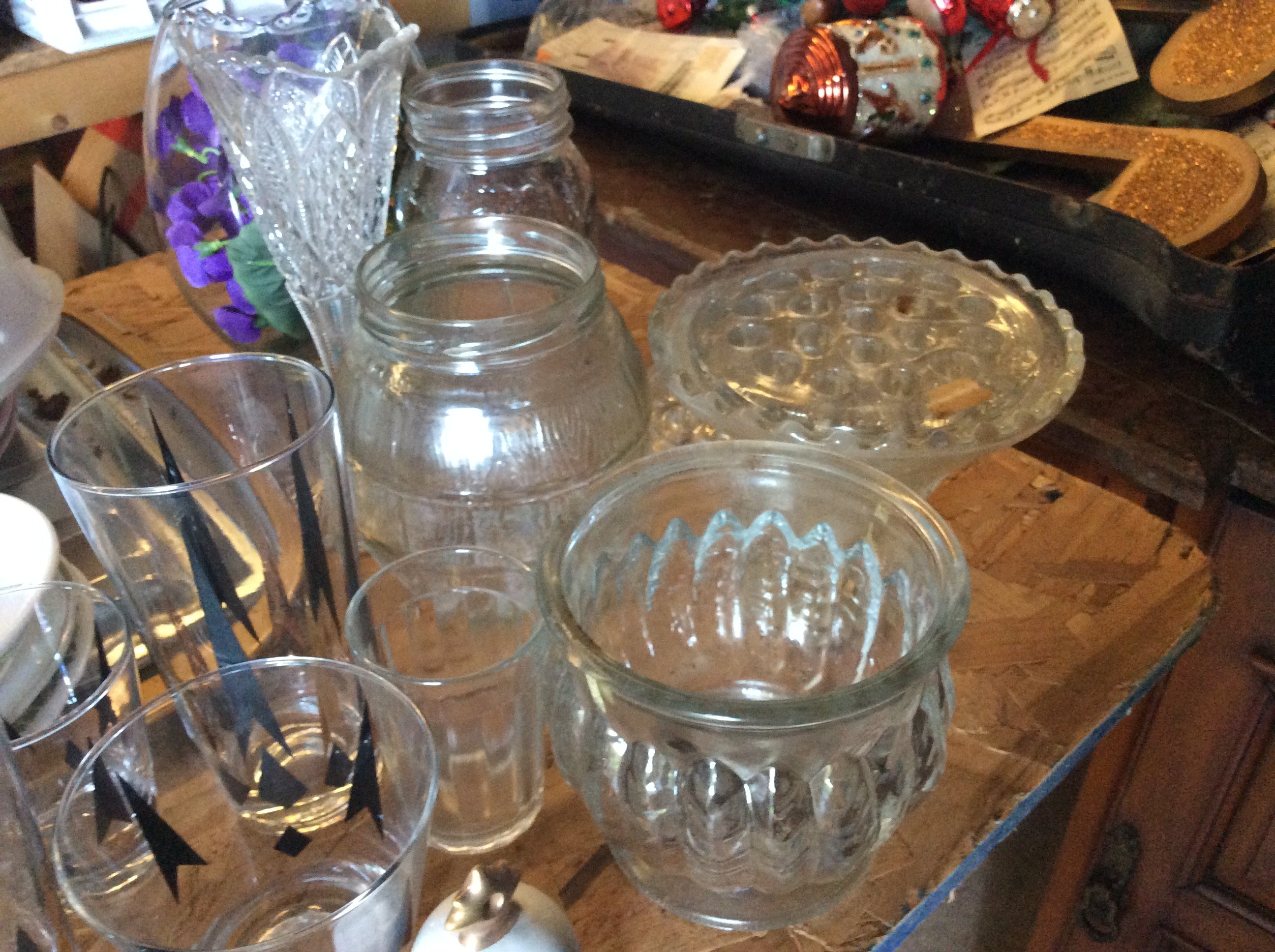 Hanging & Table Lamps, Clocks, Iridized Clock, Pitchers, Baskets, Receiver;