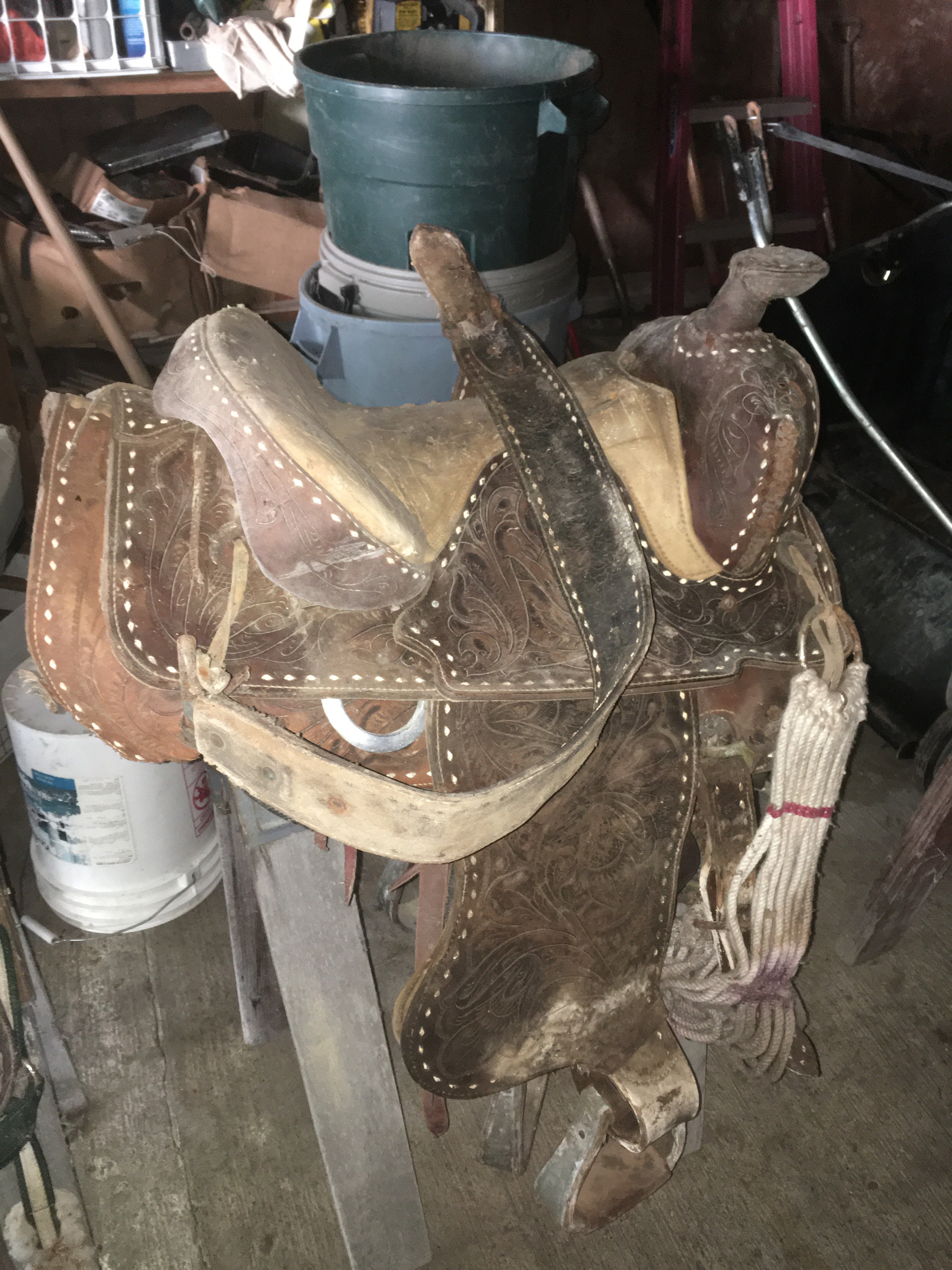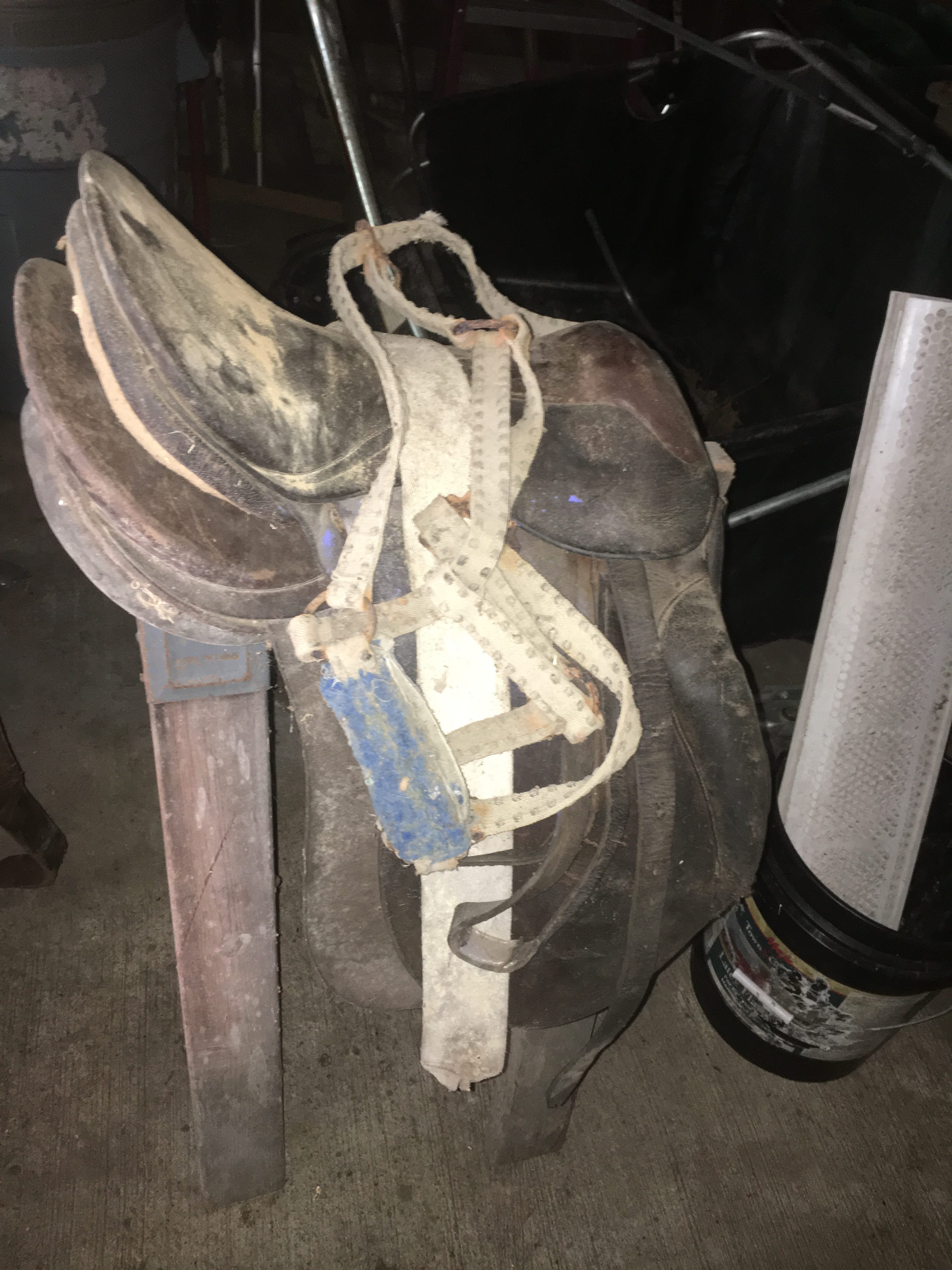 Jack Stands; Gal. Tanks; Hay; Barbed Wire; Western & English Saddles; Horse