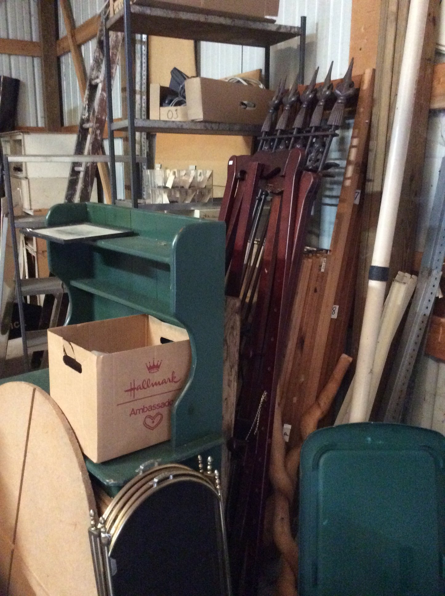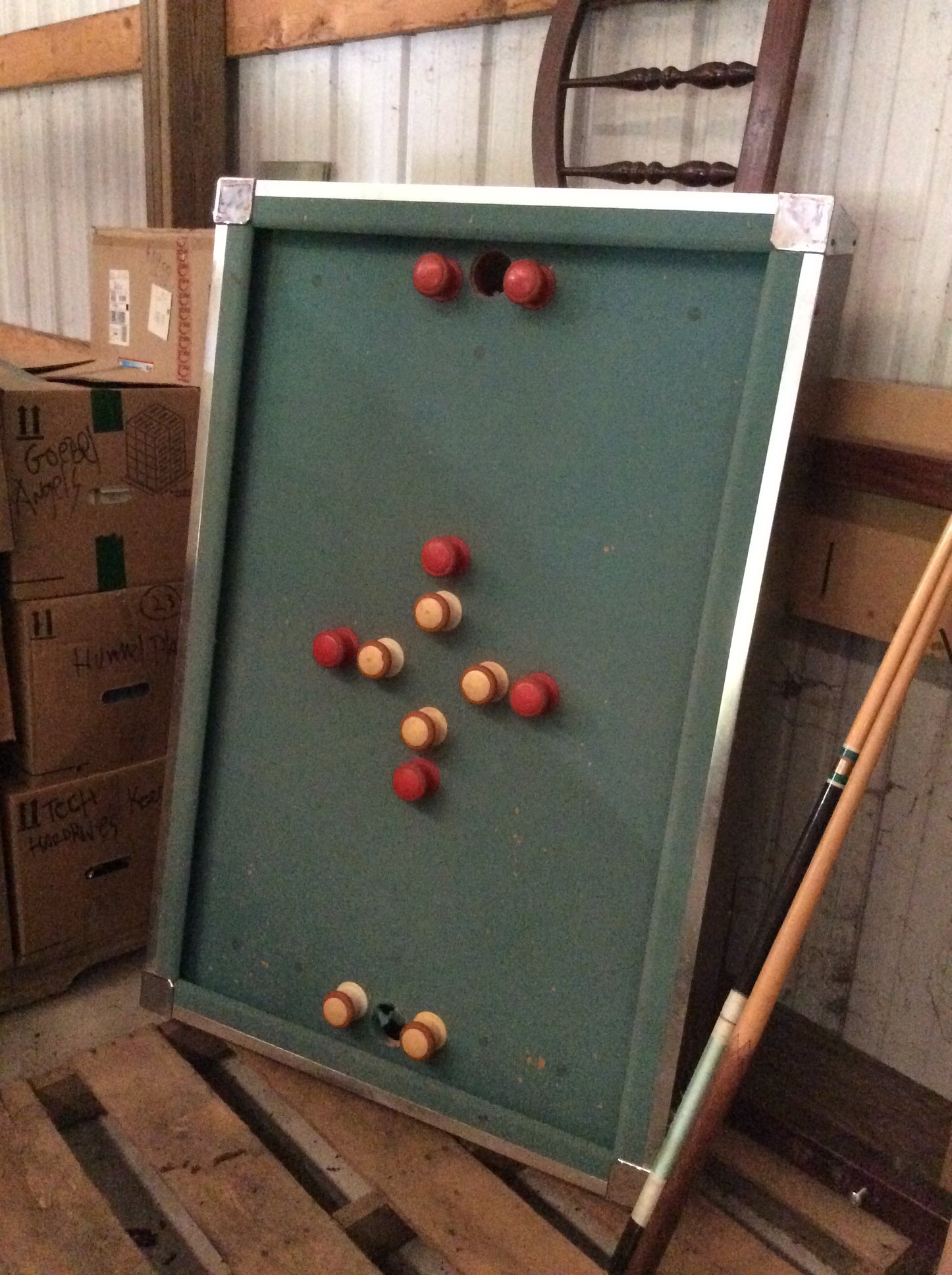 Pool Table; Folding Tables & Chairs; Hall Trees; Pots, Pans, Dishes, Sm.