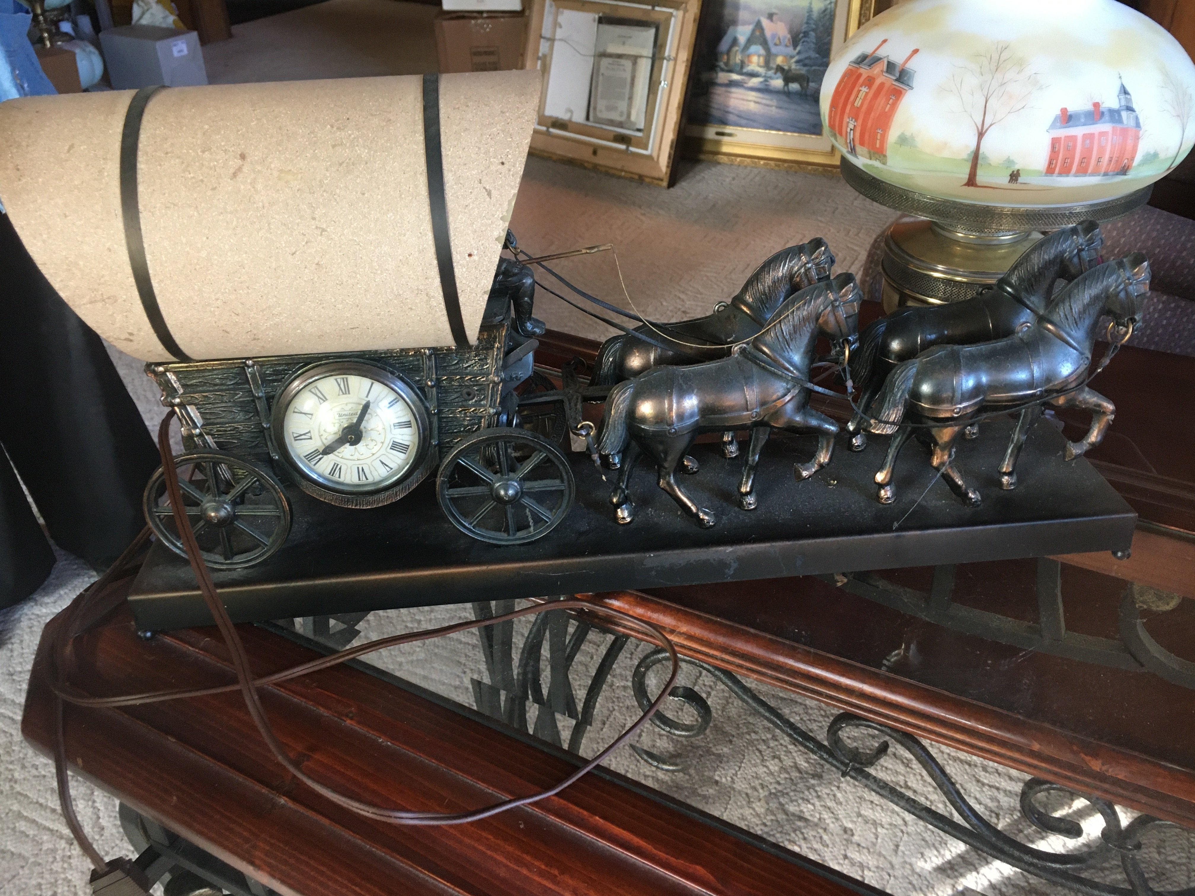 & Lamps; Phonograph; Ornate Frames & Mirrors; Mantle Clocks; United Horse