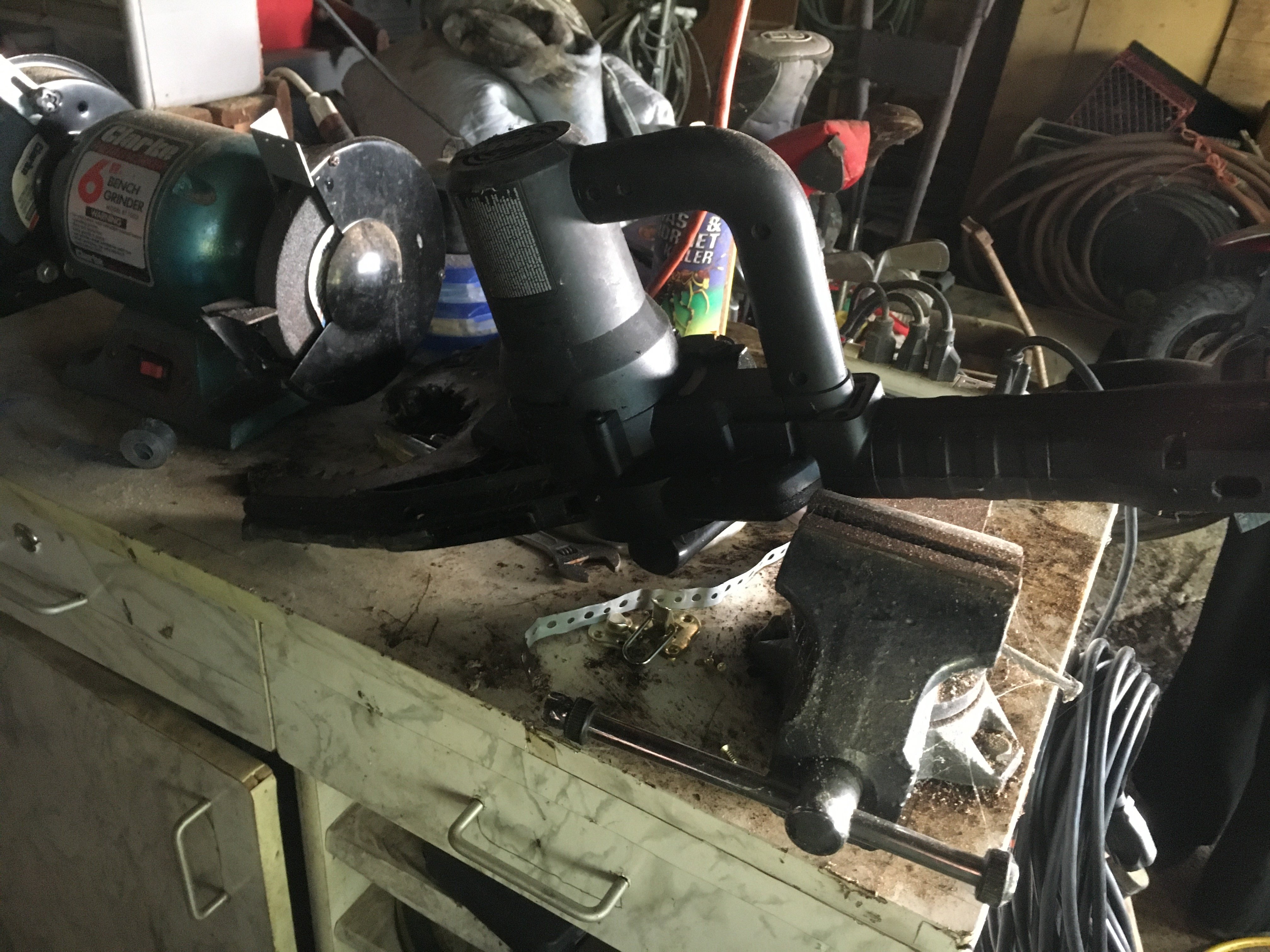 Generator; Campbell Hausfeld Air Compressor; Battery Chargers; Bench Grinder; Vise;