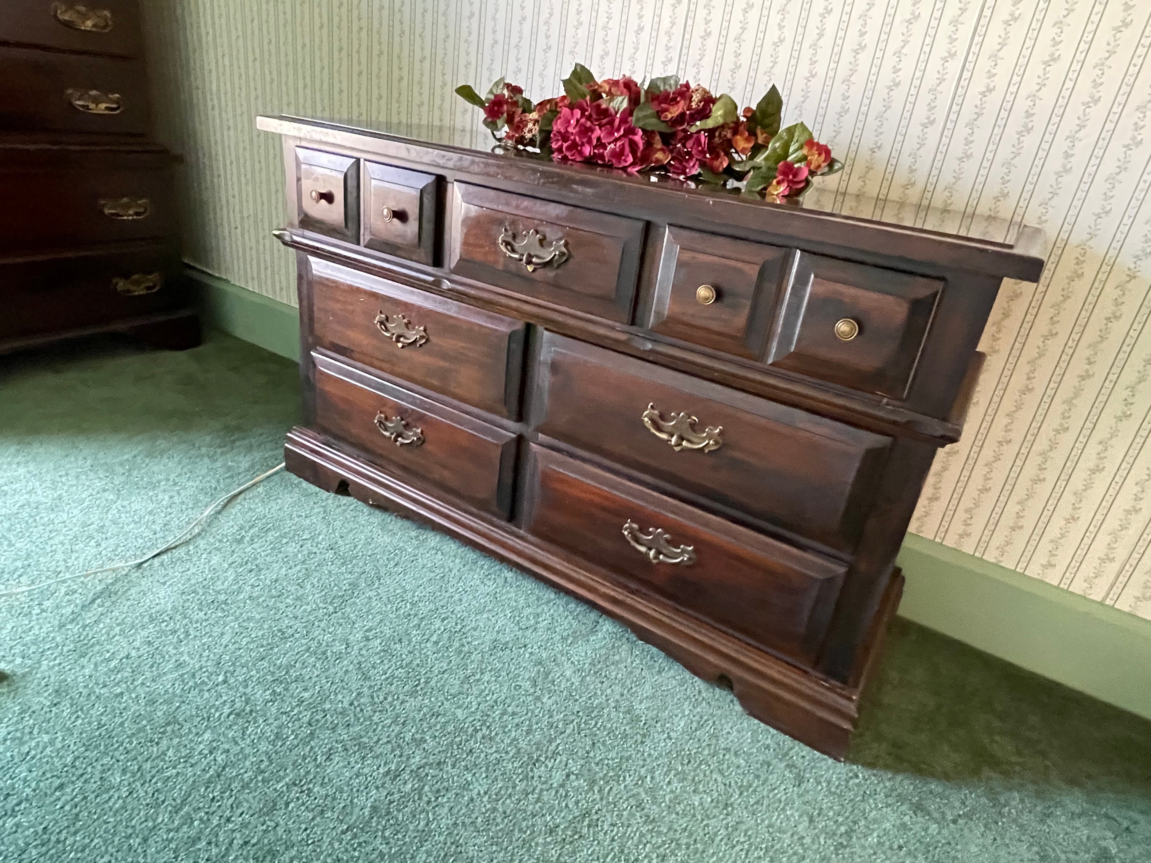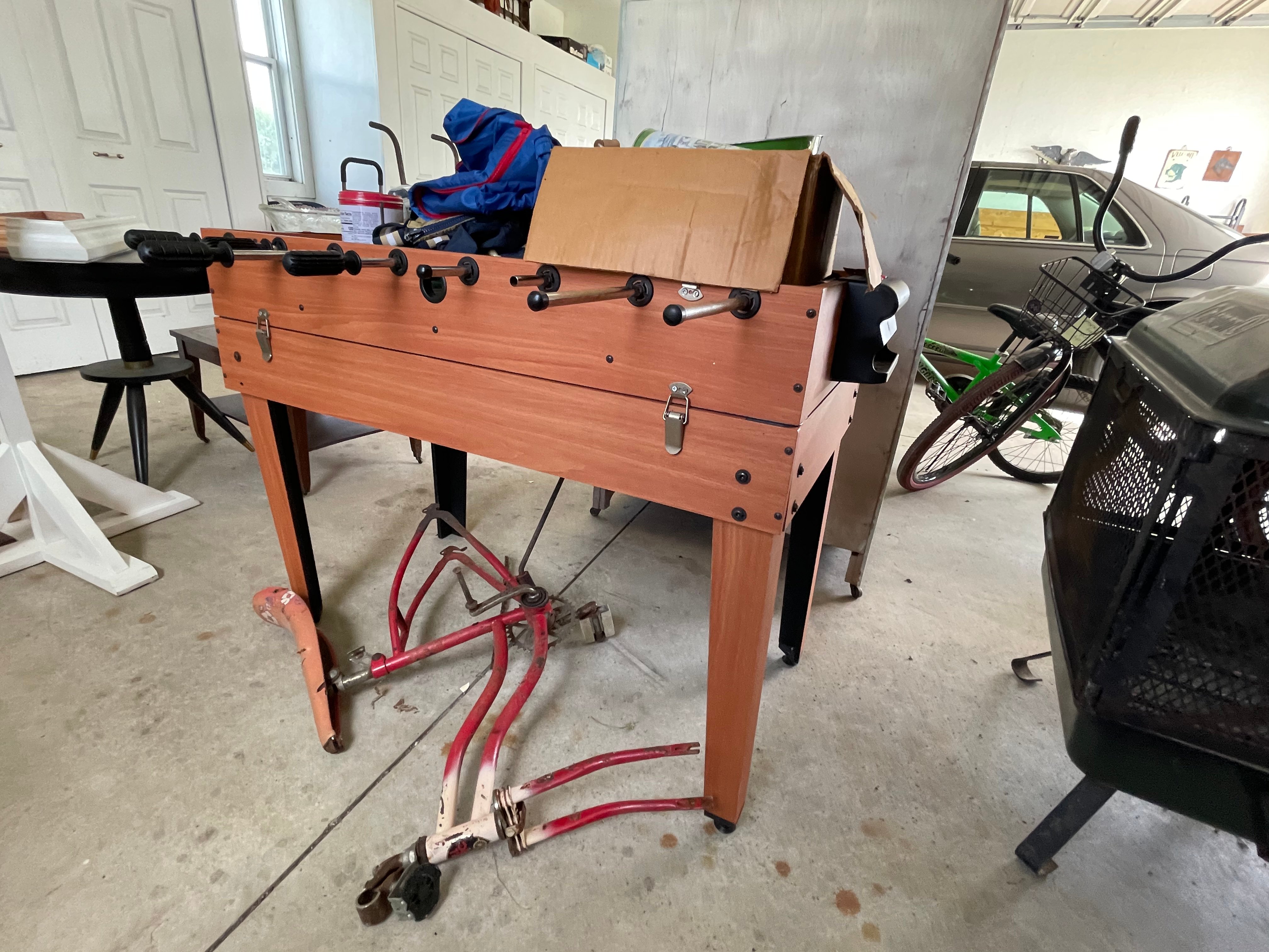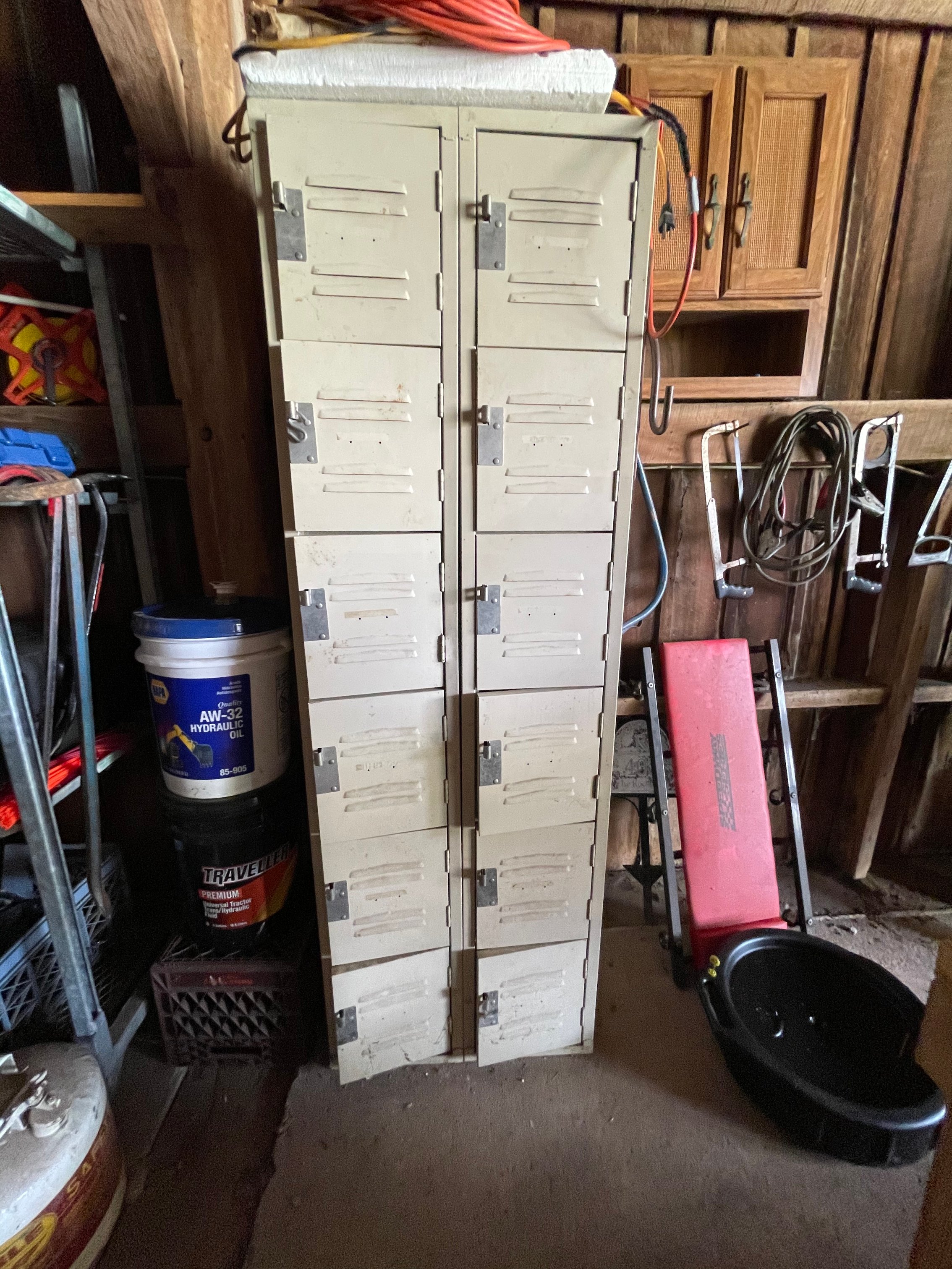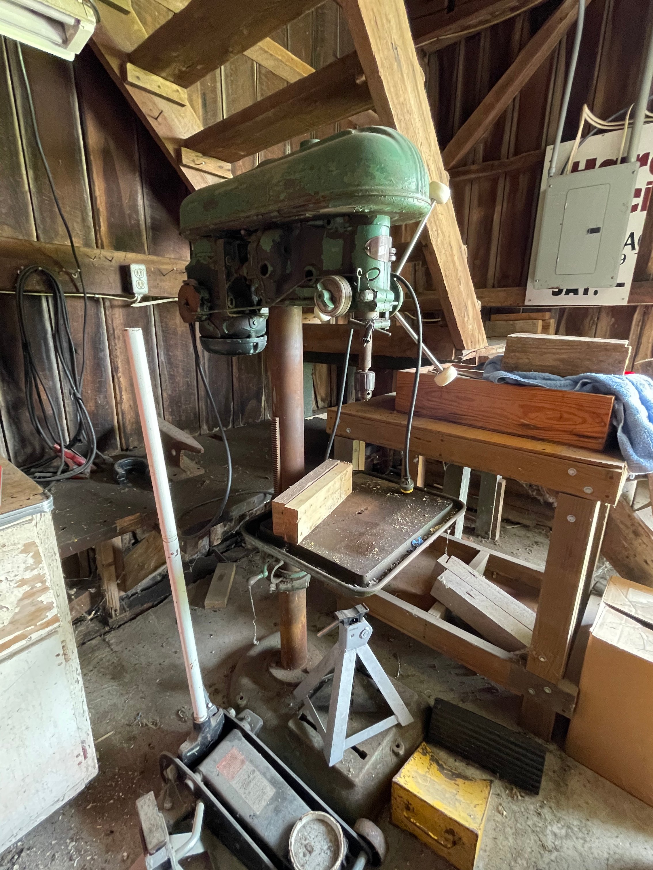Painted Waterfall Chest of Drawers; Dining Room Table & Chairs; Slant Front Desk; School Desk; Dry Sink; Ladderback Chairs; Jenny Lind Changing Table; Set of Lockers; Hall Tree; Wall Clock; Ridgeway Grandfather Clock; Oil Lamps; Pfaltzgraff Set of Dishes & Canisters; Green Depression Glass; Ruby Glass; Aluminum Pitcher; Decanters; Cast Iron Bell; Antique Doors; Barn Windows; Milk Can; Buck Saw; Garden Planter; Antique Tools; Wood Tool Chest; Rag Rugs; Wood Pulleys; Pioneer Thermometer; Repair Manuals inc. Chiltons; Records: Elvis Presley, Diana Ross & The Supremes, Ray Charles, Kansas, KISS & More; Lil Red Wagon; 15+ Franklin Mint Tractor Knives; John Deere Collectables; Kids Toys; Doll Rocker: