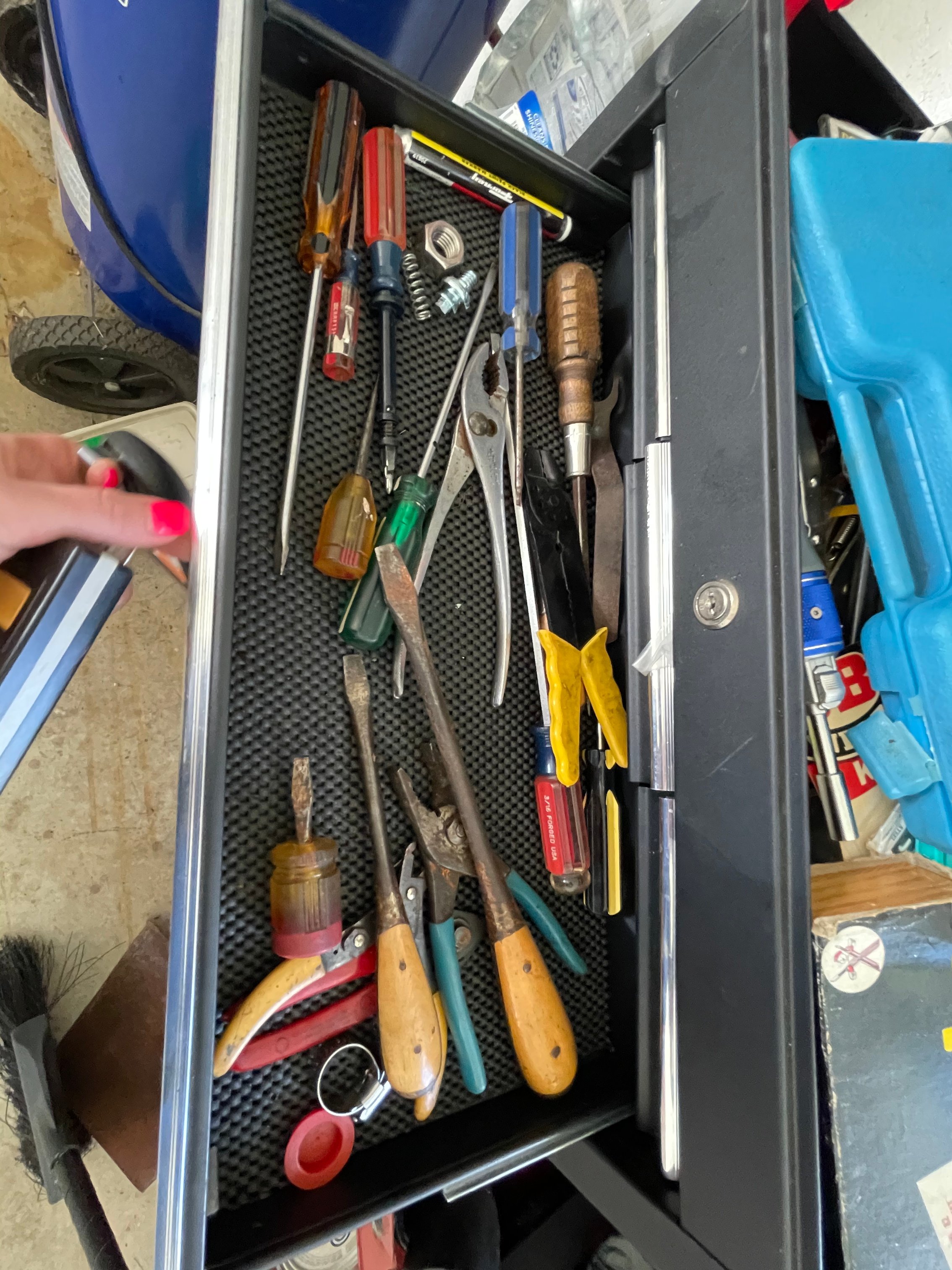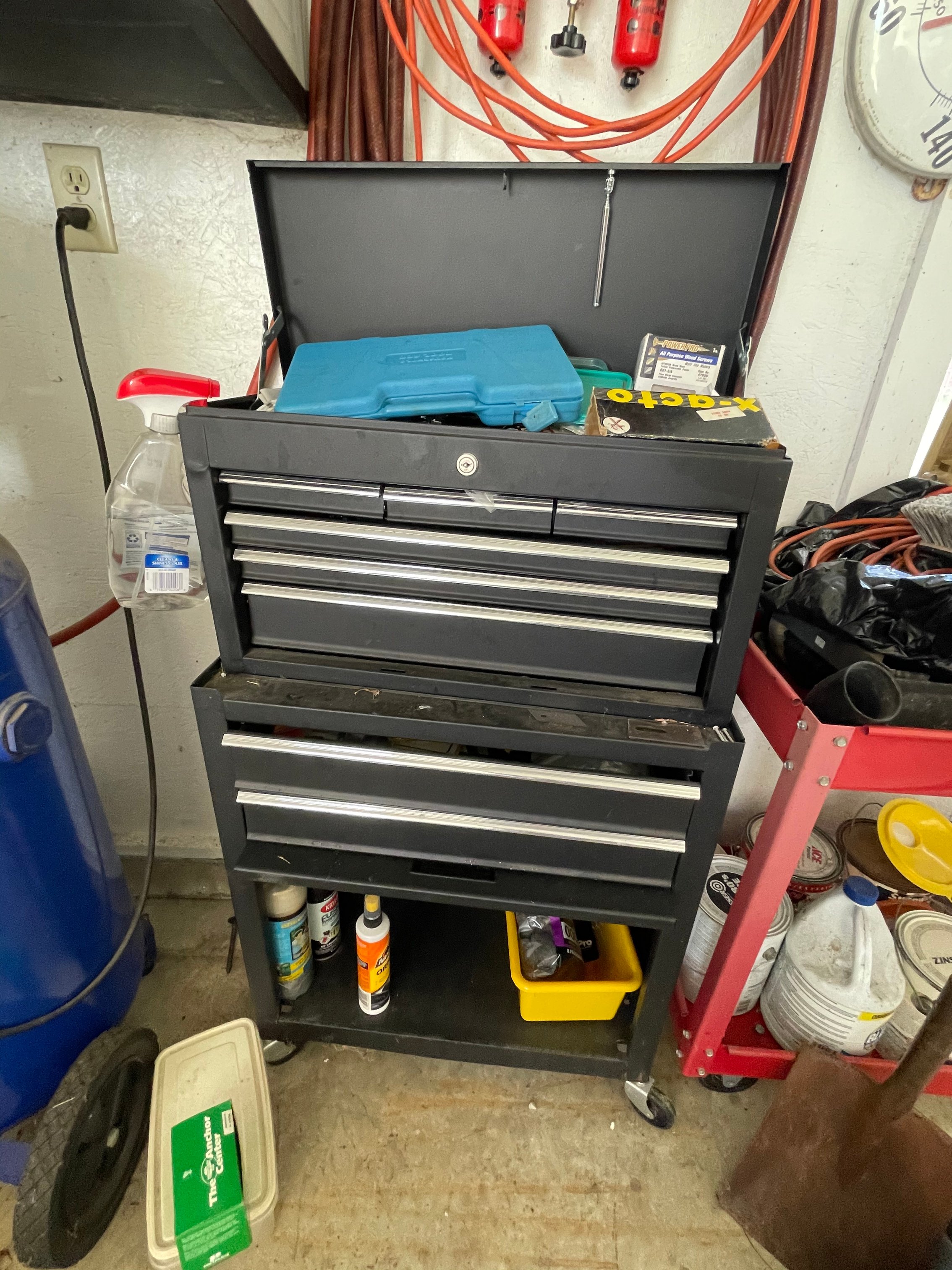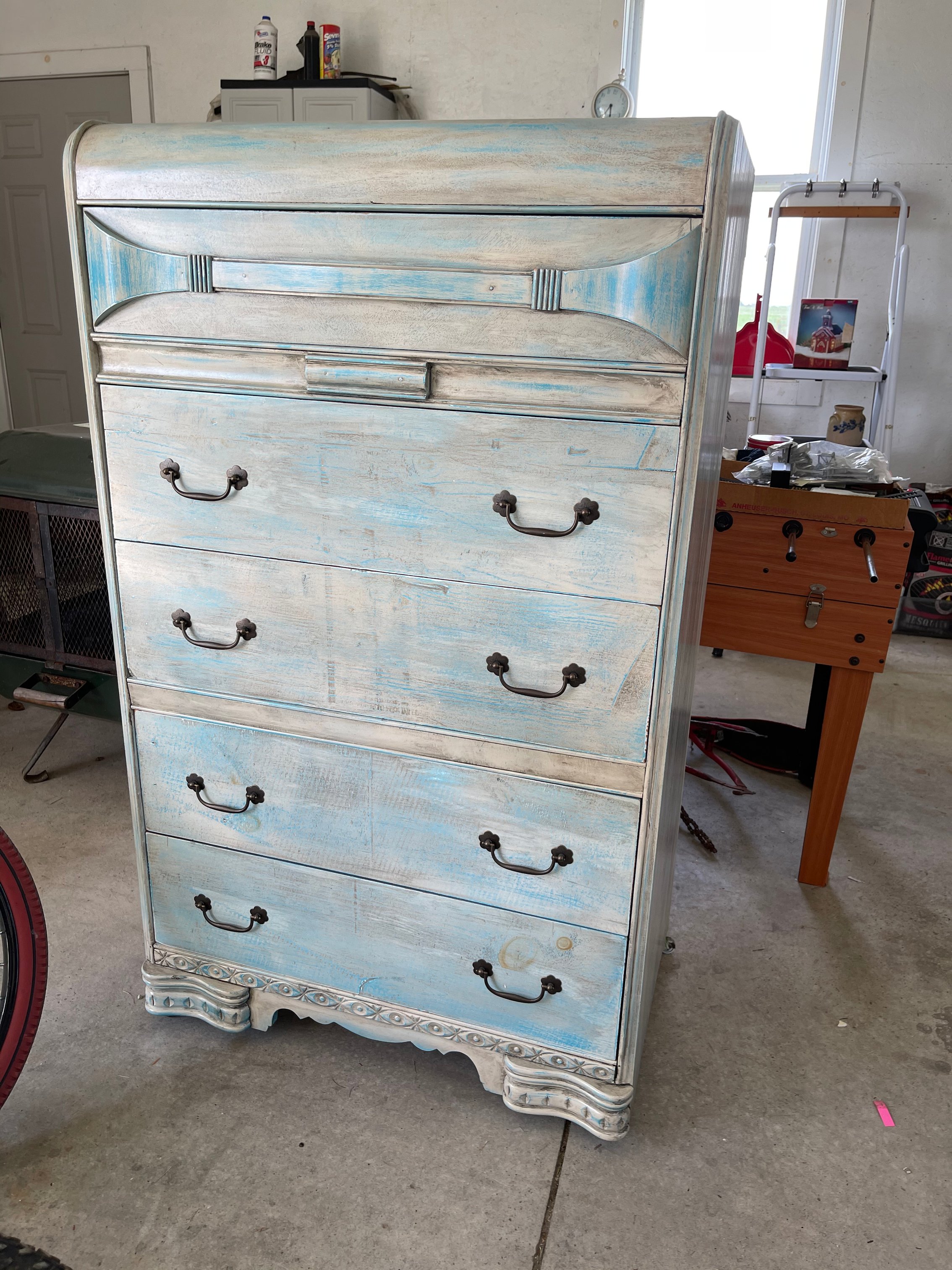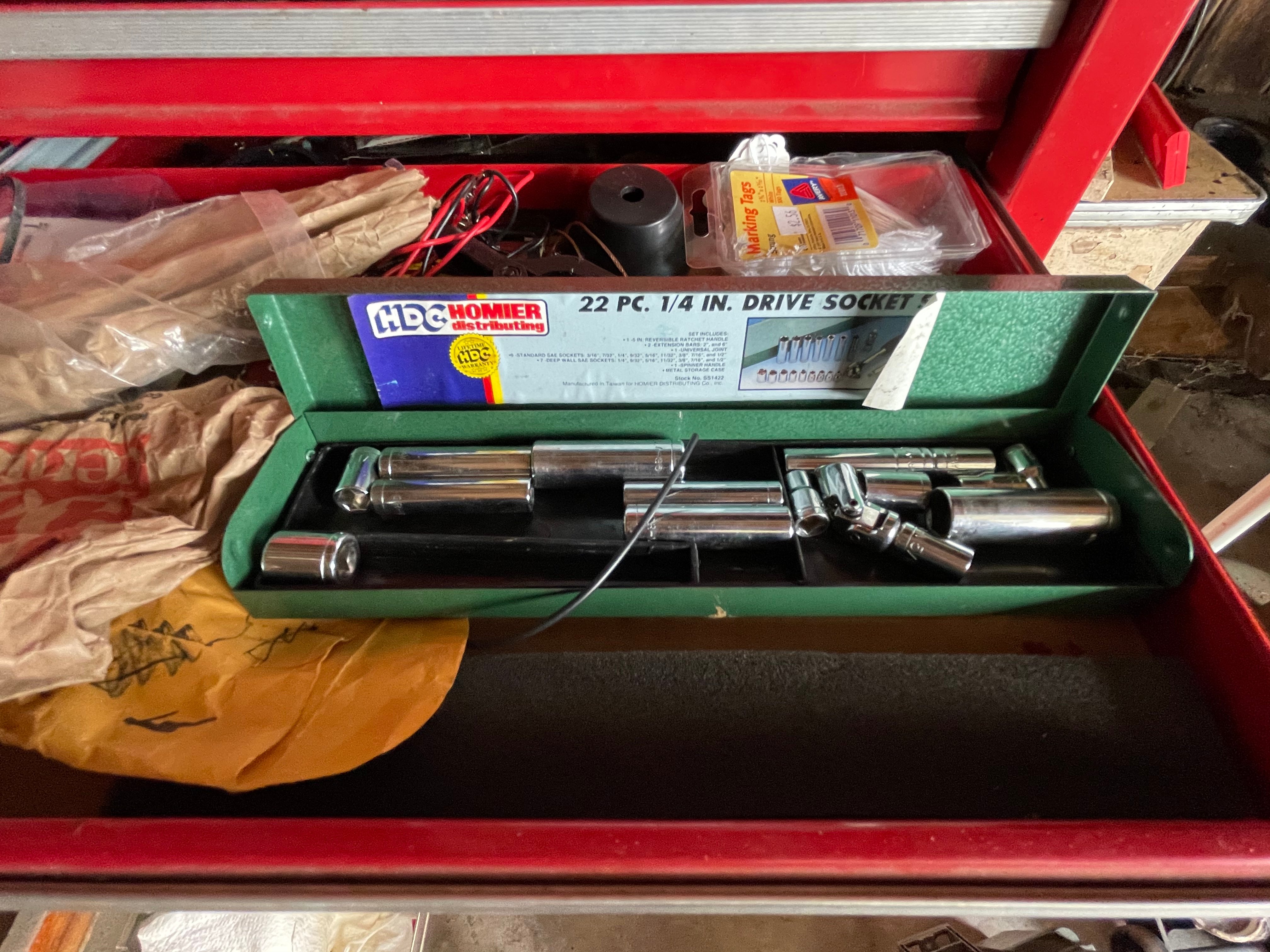 Painted Waterfall Chest of Drawers; Dining Room Table & Chairs; Slant Front Desk; School Desk; Dry Sink; Ladderback Chairs; Jenny Lind Changing Table; Set of Lockers; Hall Tree; Wall Clock; Ridgeway Grandfather Clock; Oil Lamps; Pfaltzgraff Set of Dishes & Canisters; Green Depression Glass; Ruby Glass; Aluminum Pitcher; Decanters; Cast Iron Bell; Antique Doors; Barn Windows; Milk Can; Buck Saw; Garden Planter; Antique Tools; Wood Tool Chest; Rag Rugs; Wood Pulleys; Pioneer Thermometer; Repair Manuals inc. Chiltons; Records: Elvis Presley, Diana Ross & The Supremes, Ray Charles, Kansas, KISS & More; Lil Red Wagon; 15+ Franklin Mint Tractor Knives; John Deere Collectables; Kids Toys; Doll Rocker: