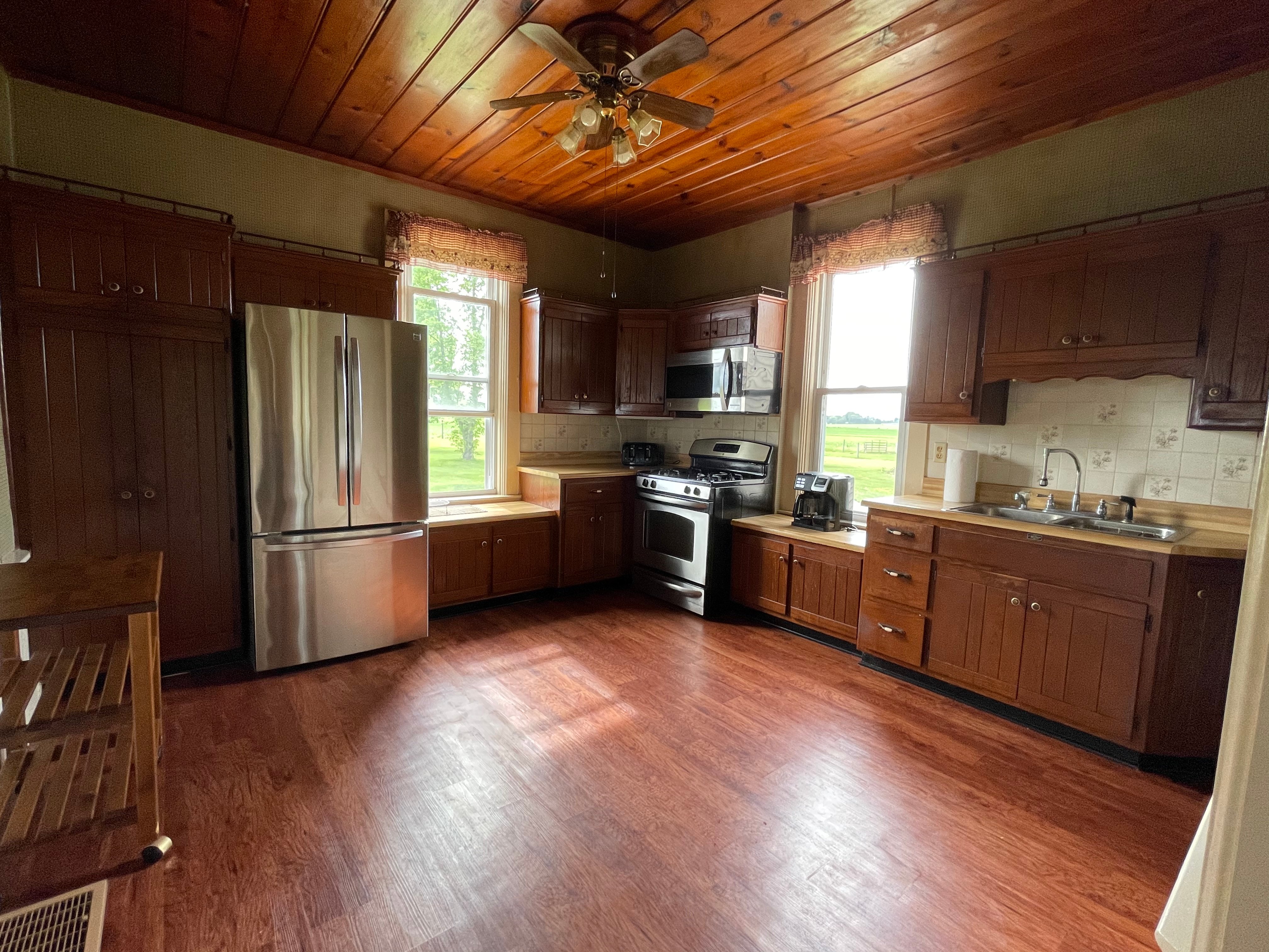 Nice Country Home on 5.95+/- Acres features 3-4 Bedrooms, 2 Baths and Main Floor Laundry! Kitchen has Custom Cabinetry & Wood Paneled Ceiling. There are Transom Windows throughout the home, Exposed Brick & a Wood Burning Fireplace! The 2-Car Detached Garage is great for your vehicles with extra storage space! There are Multiple Outbuildings that would be perfect for your Workshop, Storage, & 4H projects! 60x40 Barn has Hand Hewn Beams, Concrete & Dirt Floor, & Electricity leading out to a Large Fenced Pasture making it great for your livestock! Call for your showing today! Bid Live In-Person or Online. Open House: Monday, June 21 5:30-6pm