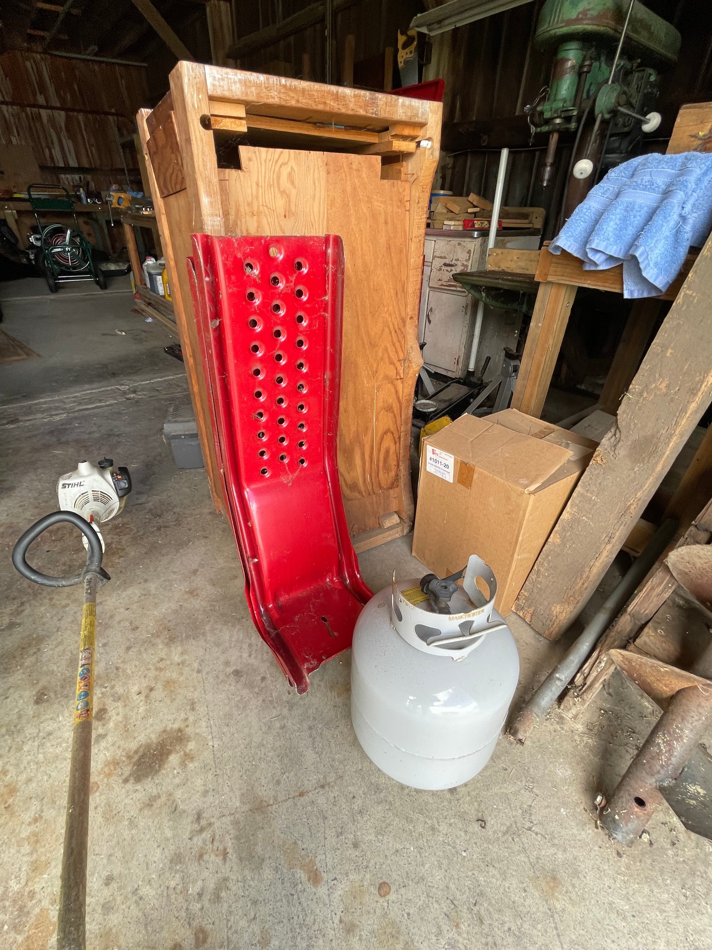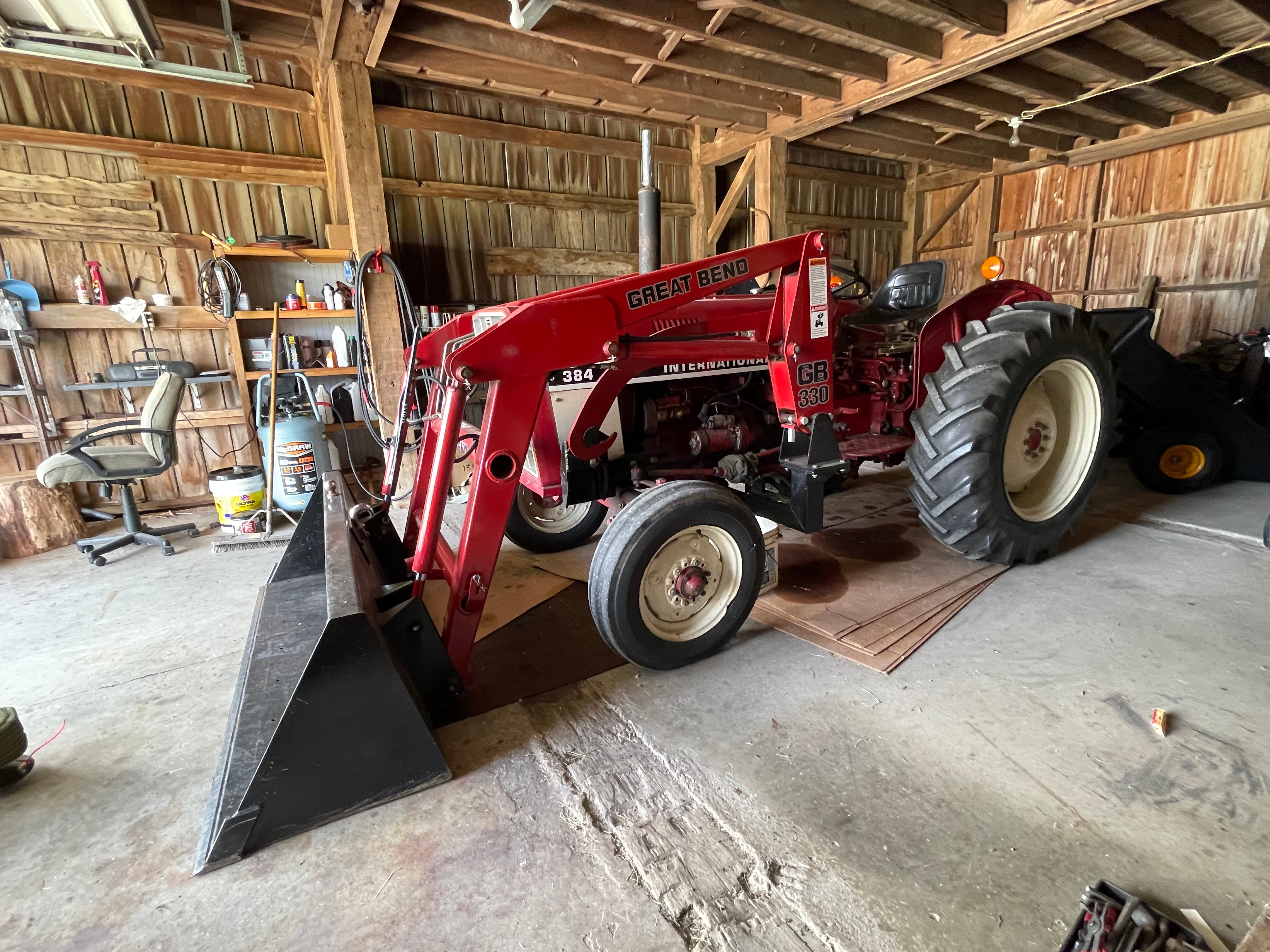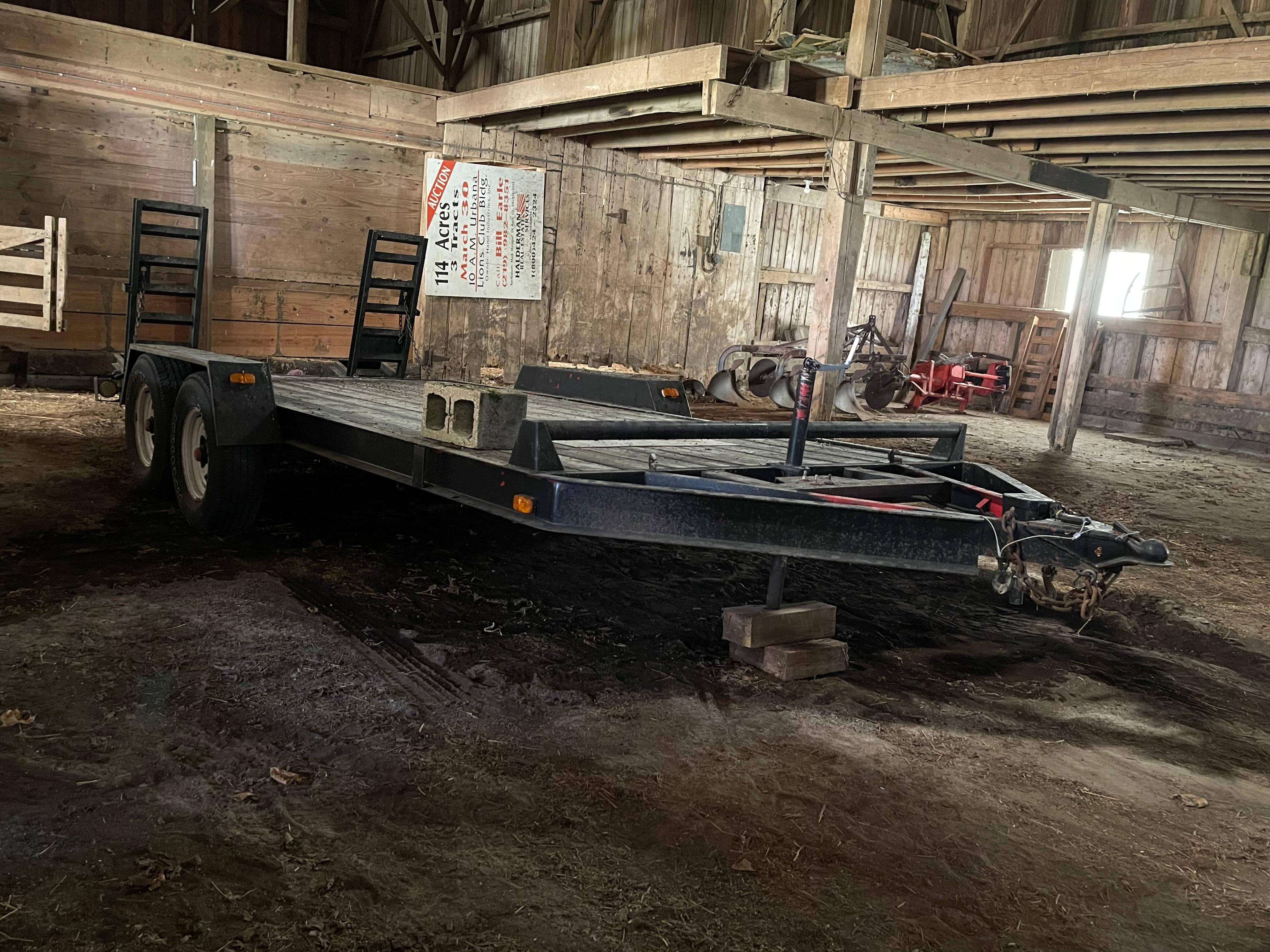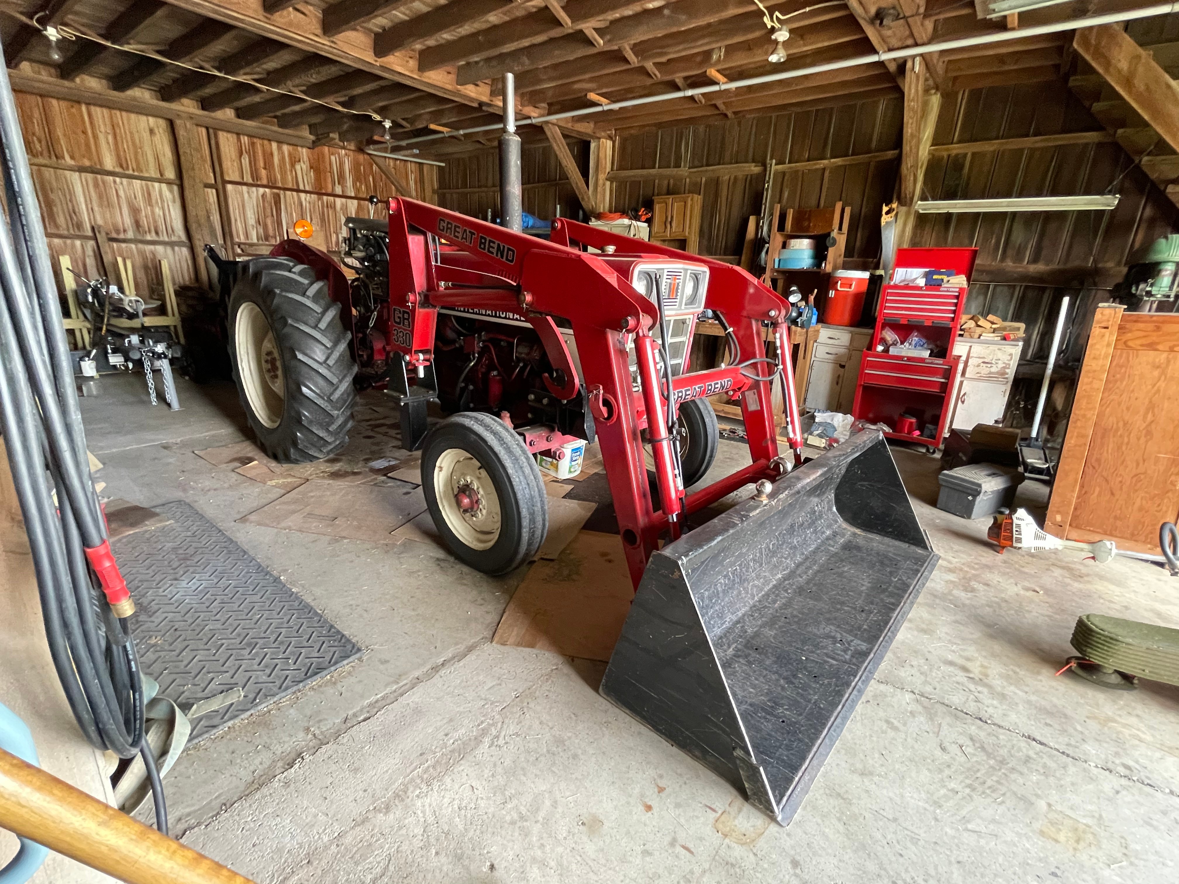 1998 Dodge Ram 3500, Ext. Cab, 128K mi.; 1986 CMC Tandem Axel Trailer w/ Ramps; IH 384 Utility Tractor w/ Great Bend 330 Loader, PT, 2470 Hrs., Newer Tires, Diesel; Farmall Super M, WF, Gas; 3-Btm. Plow; Sickle Bar Mower; 3 Pt. Auger; Galvanized Hay Feeder; Pipe Gates; Fence Posts; Forest King Pro 30-Ton Gas Log Splitter; DR Pro 26 Brush Mower; Stihl 5105 & 020 AVP Chainsaws; Swisher Trimmer; Front Tine Tillers; Fimco 12V Sprayer; Lawn Trailer; Lawn Sweeper; Lawn Spreader; Troy Bilt 5550 Watt Generator; Campbell Hausfeld Upright Air Compressor; McGraw Upright Air Compressor; Battery Charger; Anvil; DeWalt Shopmaster; DeWalt Tools inc. Sanders, Sawzall, Sanders, Drills, Circular Saw; Makita Table Saw; Delta Flood Md. Drill Press; B&D Bench Grinder; Craftsman Cordless Tools; 5” Vise; Wrenches; Socket Sets; Pipe Wrenches inc Craftsman; Tap & Die Set; Snap-On Tools; Paint Gun & Supplies; Asst Hardware; Bar Clamps; Craftsman Roll-Around Toolboxes; Toolboxes; Tool Belts; Rolling Carts; Roller Stand; Rotary Bin; Shelving; Creeper; Sawhorses; Log Chains; Hitches; Car Ramps; Floor Jack; Jack Stands; Shop Lights; Step Ladders; Ext Ladders; Hand Trucks; Utility Carts; Shop Vacs; Ext. Cords; Rolls of Wire; Garden Tools; Hose Reel; Gas Cans inc. Metal; Coleman Fireplace; Lawn Chairs; Firewood; Bikes; Dog Cage; Fishing Baits;
