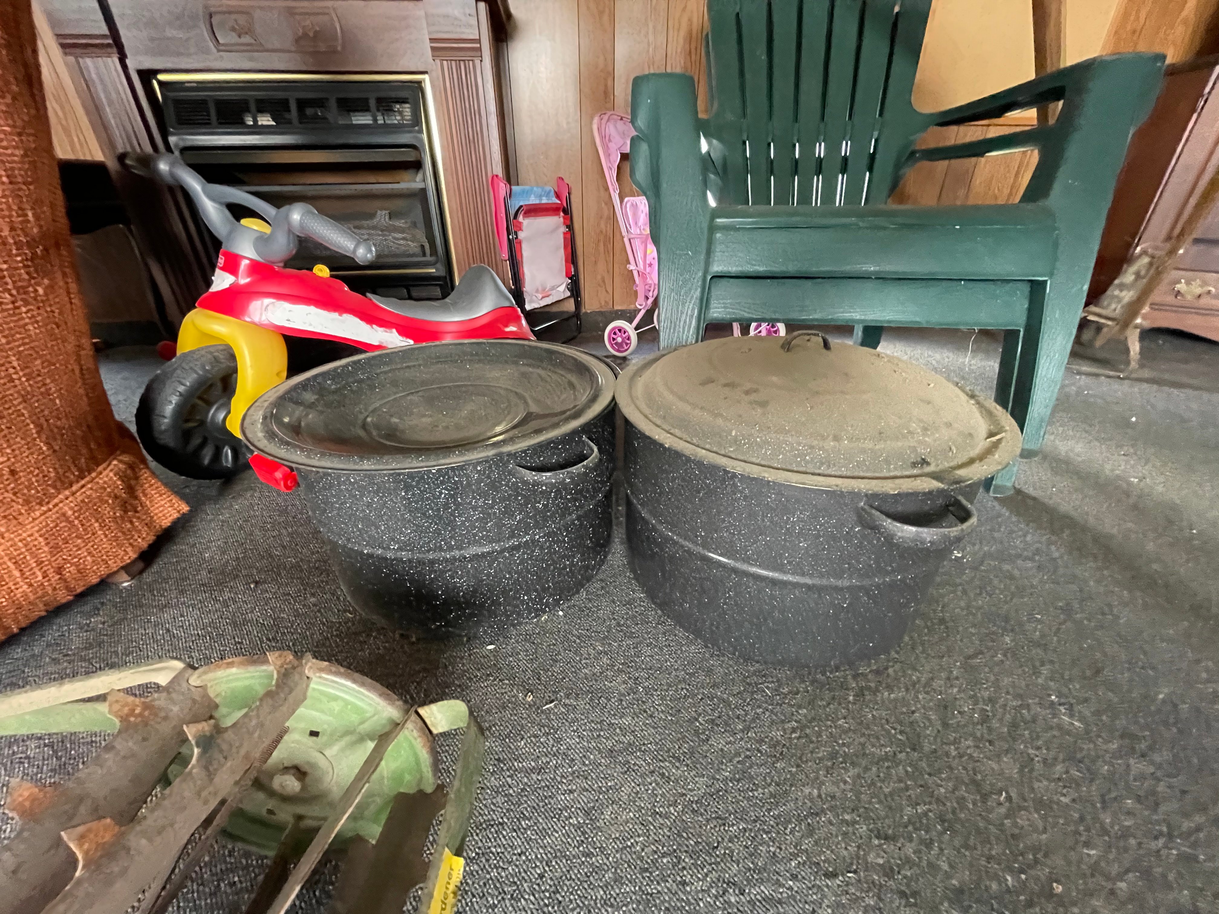 LG Hydro Shield Washer & Dryer, Elec.; Frigidaire Upright Freezer; 3-Piece Bedroom Suite; Glass Front Hutch; Beds; Chest of Drawers; Dressers; Folding Beds; Occ Chair; Dressing Mirrors; Entry Table; Coffee & End Tables; Bookcases; Cabinet Stereo; Desk; Wall Shelves; Pots, Pans, Bakeware, Dishes, Small Appliances; Pressure Canners; Canning Jars & Supplies; Food Chopper; McDonalds Glasses; Coolers; Bedding & Blankets; Drying Racks; Fan; Luggage Stand; Carpet Cleaners; Vacuums; Reprod. Wood Wall Phone; HP All-in-One Printer; Puzzles; VHS Tapes; Books; County Primitive Décor; Pictures & Prints; Home & Christmas Décor; Lamps; Game Table; Window A/C Units;