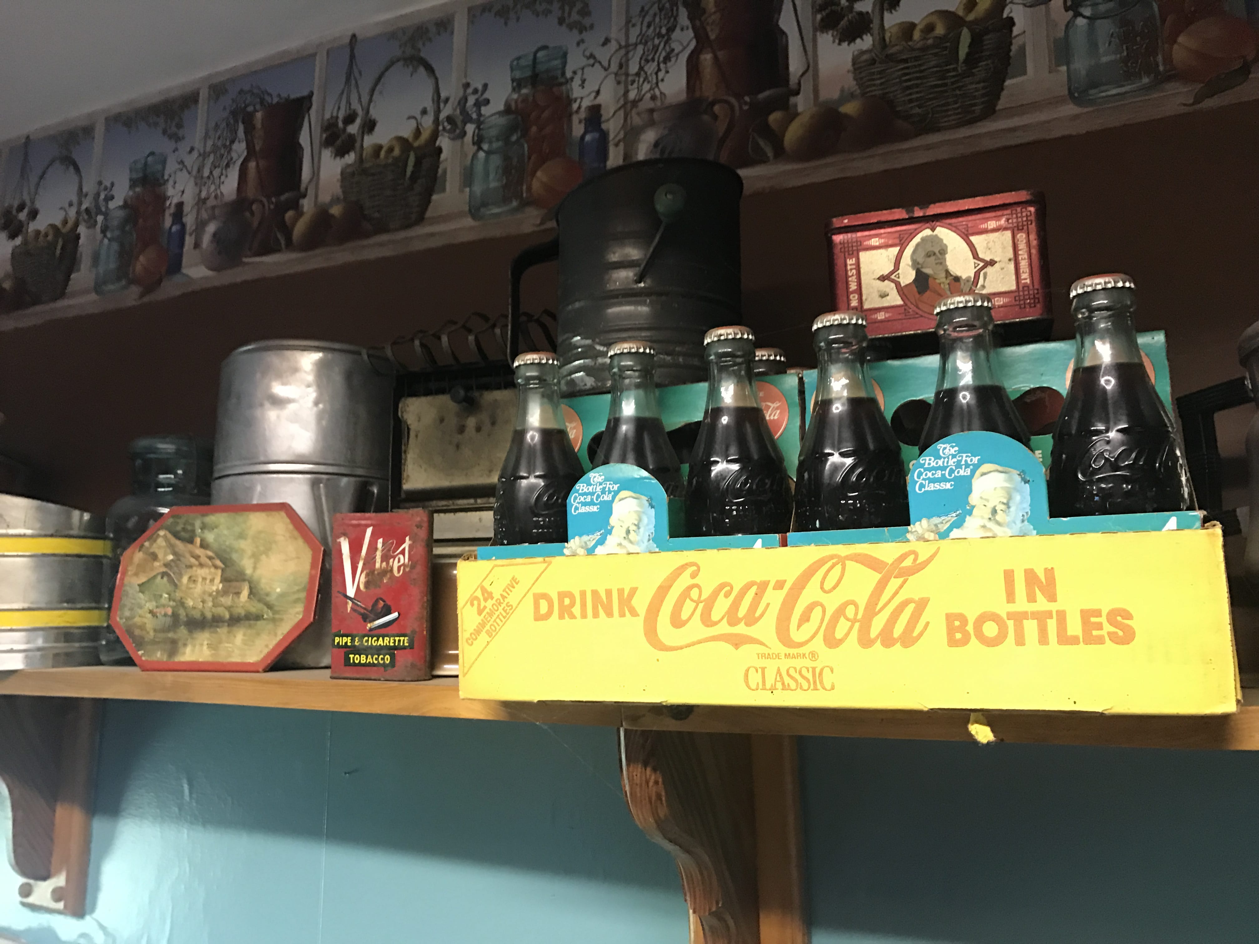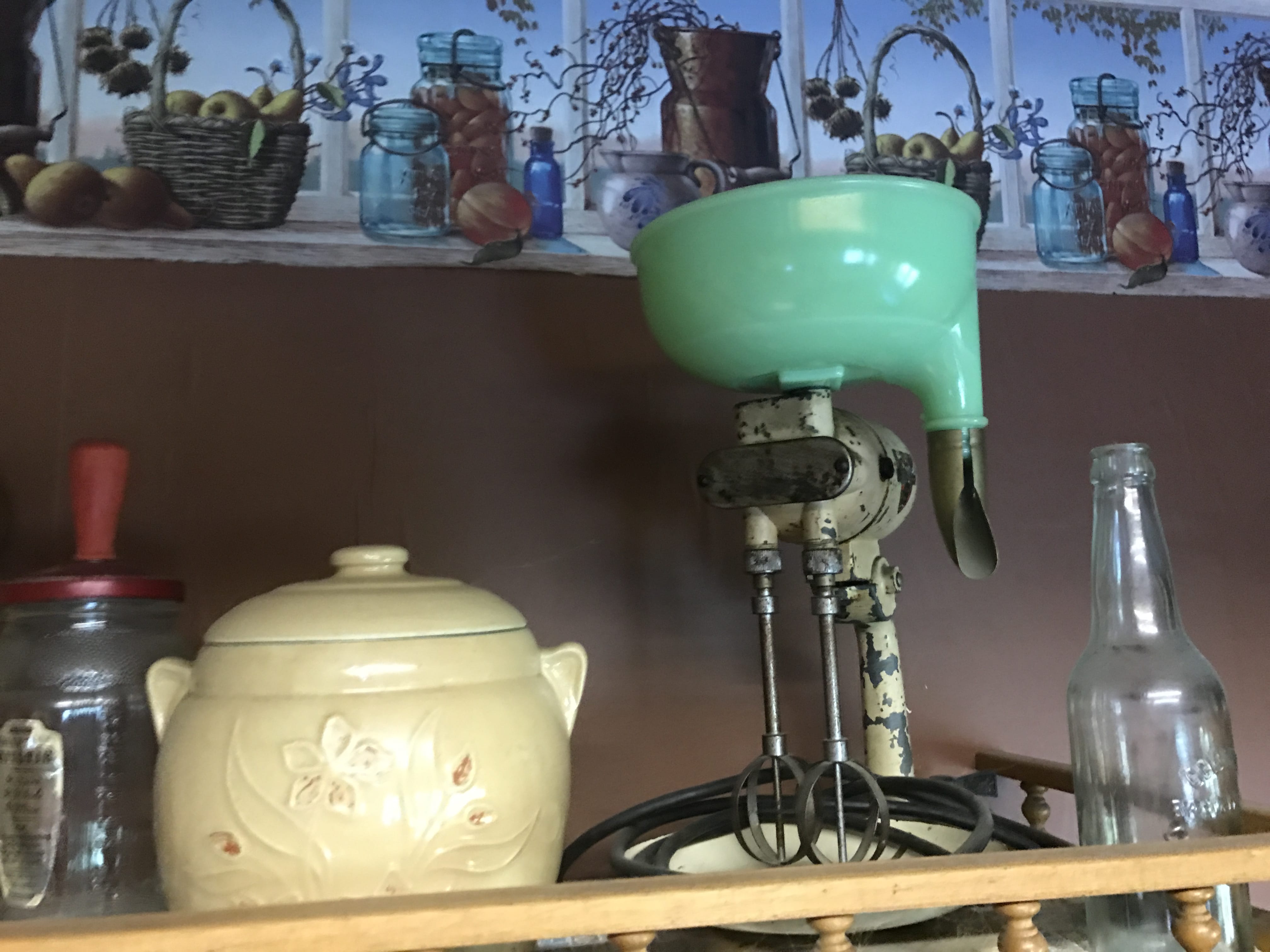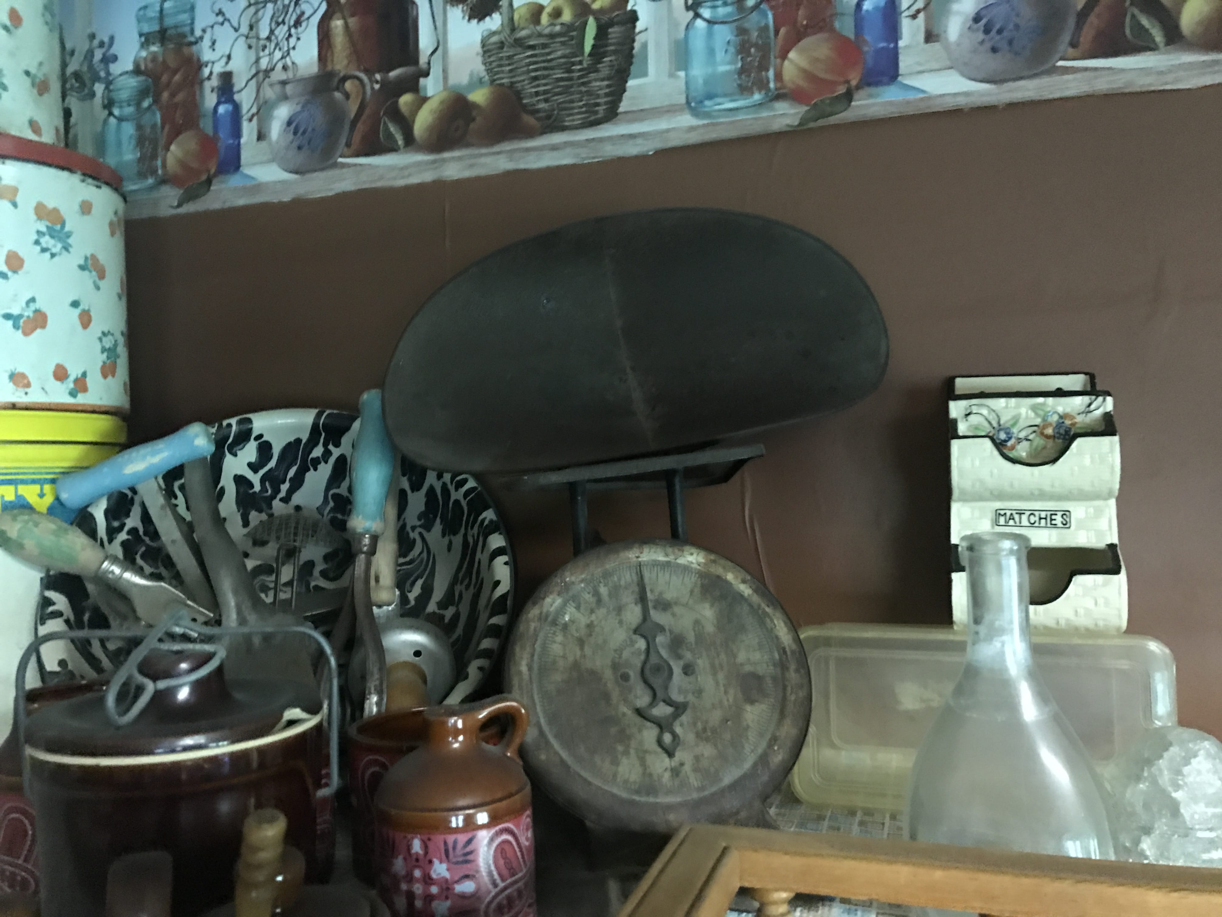 Cord Bed; Dresser; Tiered Table; Cane Bottom Rocker; Youth Chair; Straight Chairs; Camel Back Trunk; Console Radio; Treadle Sewing Machine; Cameras; Radios; Clocks; Oil Lamps; Iron Wall Mount Oil Lamp; Quilts; Quilting Frame; Roseville; Hull Pottery; Depression Glass; Indiana Glass; Stemware; Pitcher & Bowl; Glass Canisters; Cups & Saucers; Spice Jars; Salt & Pepper Shakers; Canning Jars inc. Green; Flour Sifter; Kitchen Primitives; Kitchen Scale; Mixer with Jadeite Bowl; Adv. Tins; Cookie Jars; Sipping Jug; Coca-Cola Cooler; Coke Crates & Bottles; Pepsi Cake Carrier; Picnic Basket; Enamel Pcs.; Galvanized Tubs & Buckets; Cast Iron Safe w/ Key & Combination; Cast Iron Skillets; Match Holder; Pitcher Pump; Dinner Bell; Lightening Rod Balls; Milk Can; Buck Saw; Cross Cut Saws; Block Plane; Nail Keg; Brass Extinguisher; Iron Gate; Wood Ladders; Ant. Doors; Pedestal Sink; Sled; Ford Pedal Tractor; Lionel Train; Toys; Books; HOUSEHOLD: Whirlpool Refrigerator; Kenmore Refrigerator; Amana Refrigerator; 4 Poster Bed; Dining Room Table & 6 Chairs; Sofa; Glass Front Hutch; Open Front Hutch; Chest of Drawers; Computer Desk; Banquet Tables; Wood Filing Cabinet; Pressure Canners; Bakeware; Sm. Appliances; Heater; Bedding & Linens; Luggage; Country Décor; Christmas & Holiday Décor; Dolls; Books; DVDs; Stereos;