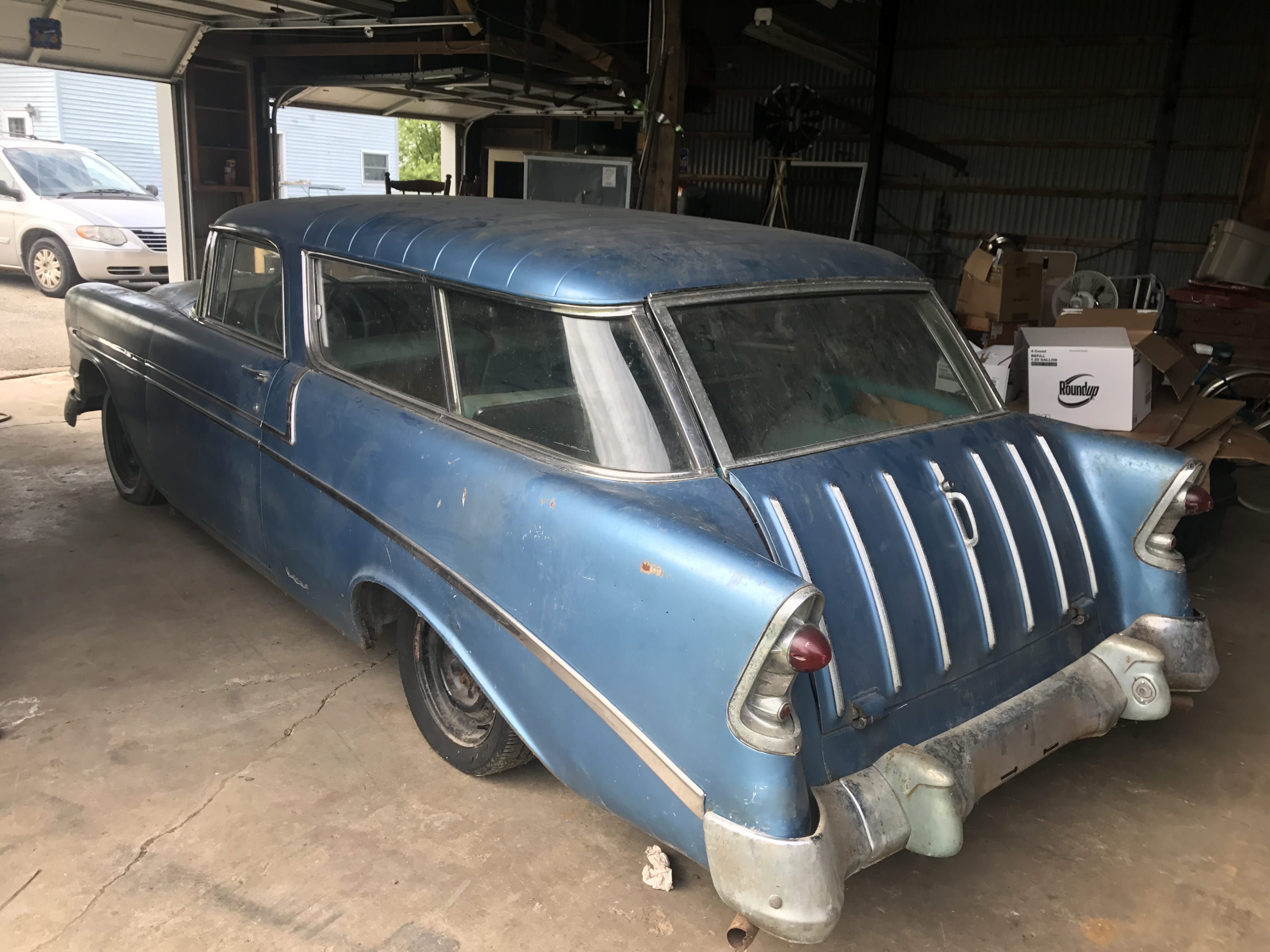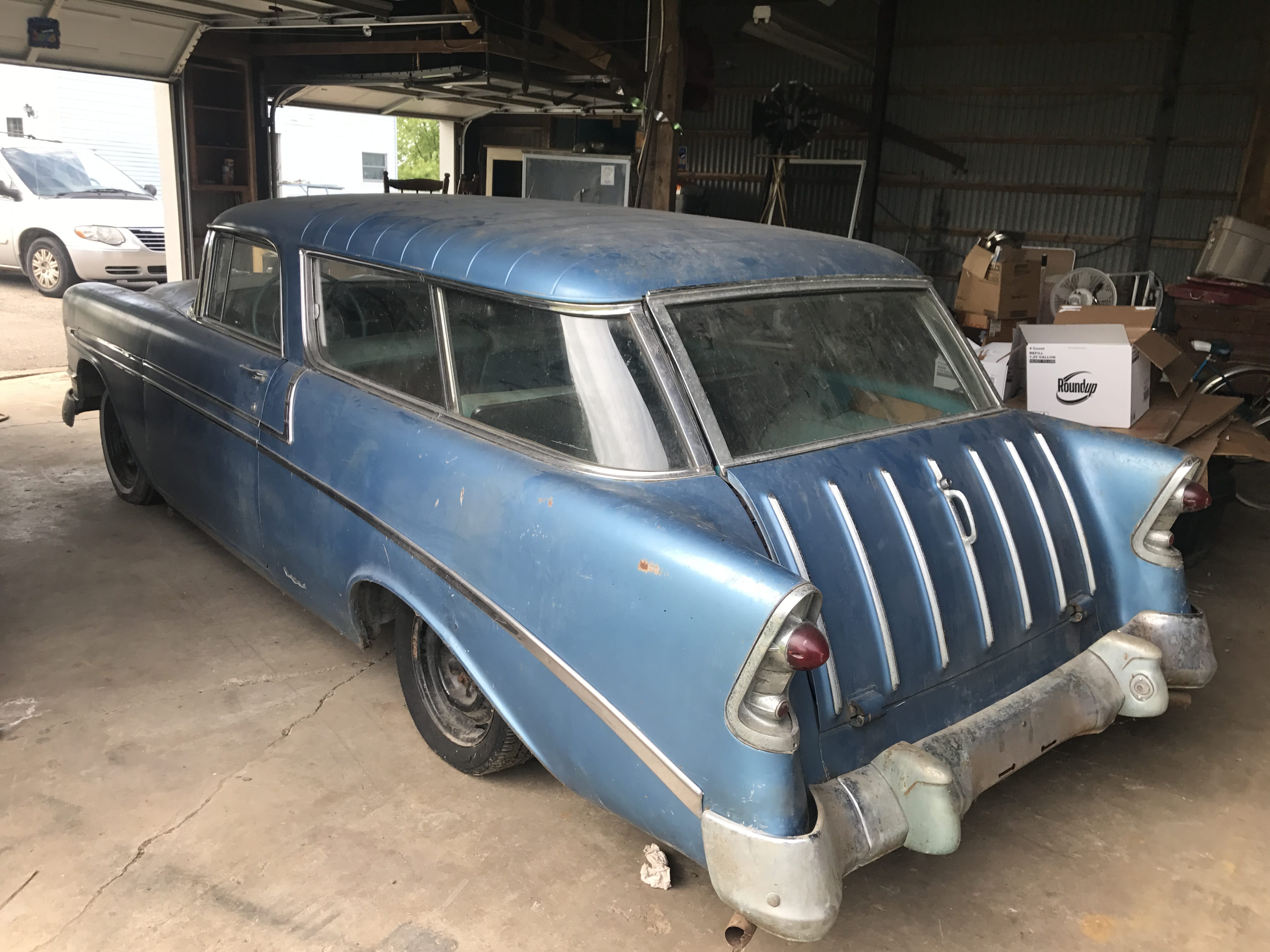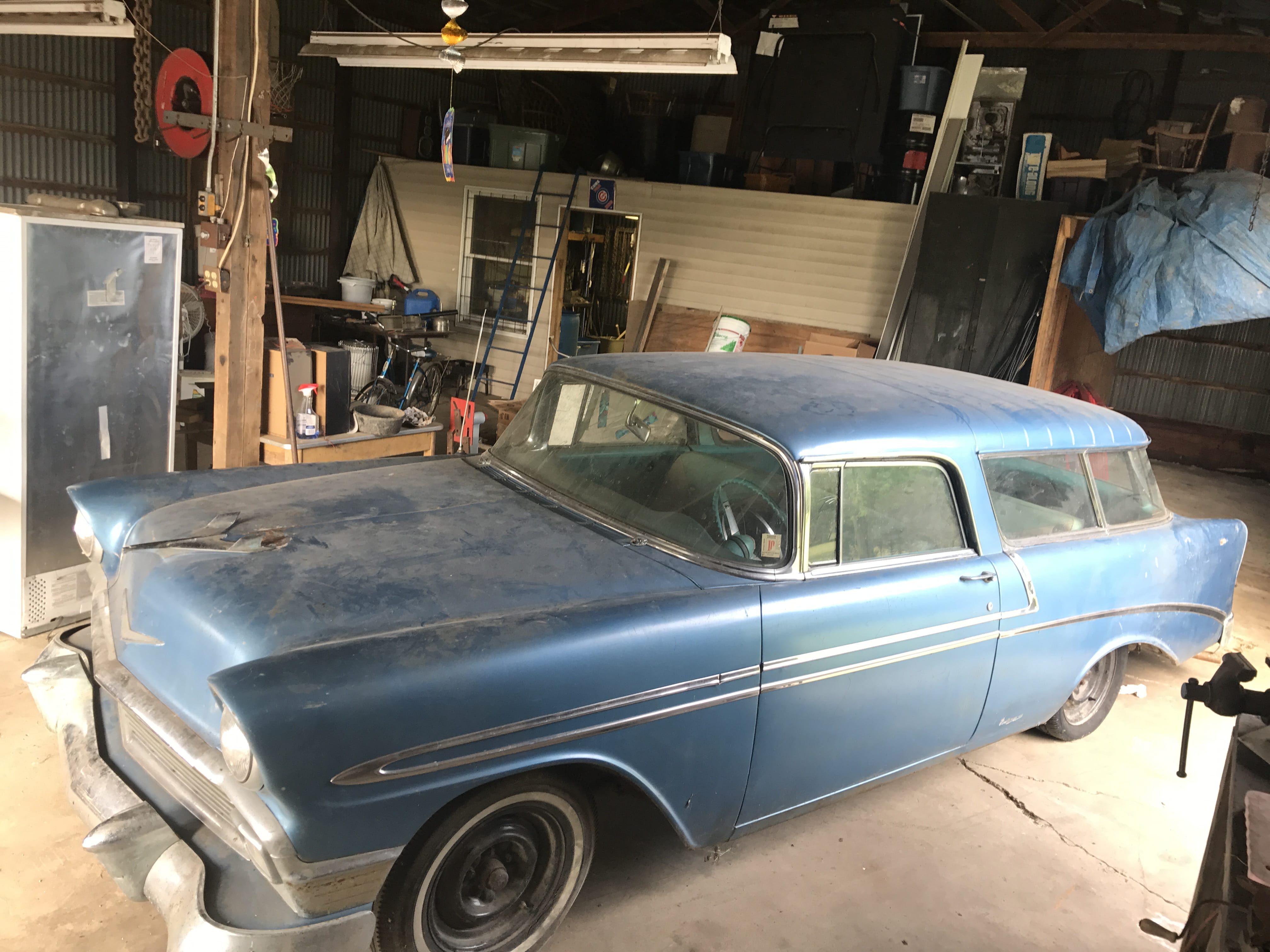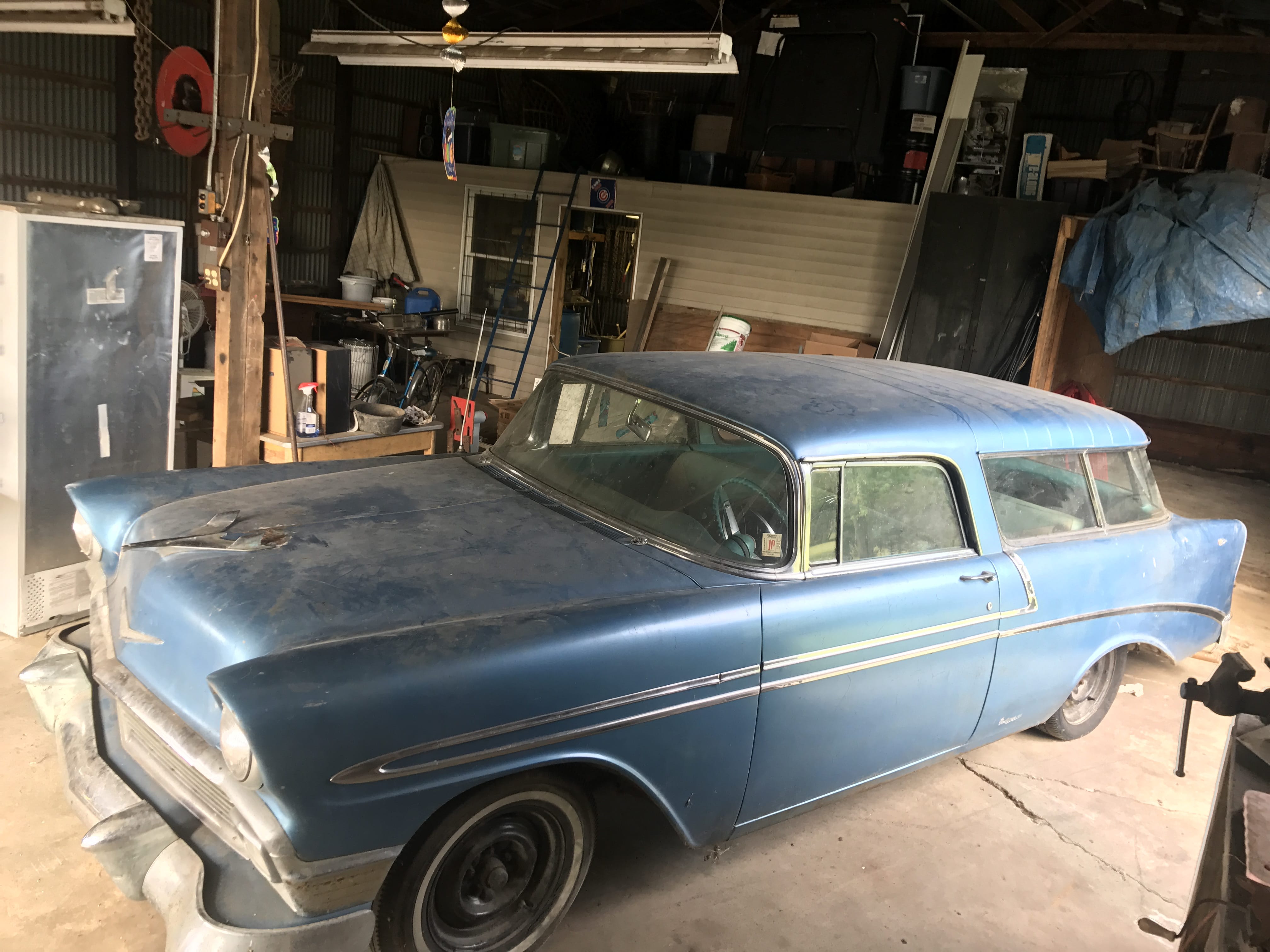1956 Chevy Nomad, 2 dr. Wagon, 54k mi., 2nd owner; 1952 Allis Chalmers WD; AC Plow; AC Disk; AC Blade; Bush Hog Zero Turn Gas Mower, 26 HP, 61â? Deck, 788 hrs.; 4-Wheeler; Air Bumper Jack; Torch Set; Parts Washer; Ross 5HP 220 Air Compressor; Manual Tire Changer; Honda Powermate; Engine Stand; Marquette Welder; Toro Snowblower; Stihl D41AV Chainsaw; Leaf Blowers; Lawn Sweeper; Weedeater; Wheelbarrow; Garden Tools; Garden Planter; Trowels; Craftsman Radial Arm Saw; Stand Grinder; Power & Hand Tools; Vise; ¾ Drive Socket Sets; Pipe Wrenches; Impacts; Hardware; Air Greaser; Key Cutters; Work Bench; Organizers; Ladder Jacks; Floor Jacks; Jack Stands; Scrap Steel; Huge Qty. of Firewood; Asst. Lumber; Pipe & Angle Iron; 8 Strand Wiring; Pallet Racking; Steel Shelving; Fiberglass Ext. Ladder; Alum. Ext. Ladder; Hand Cart; Plastic & Cardboard Barrels; Hose & Reels; Tarps; Log Chains; Come-a-longs; Car Ramps; 60 ft. TV Tower; Chimney Sweep; Shop Furnace; Dayton Shop Fan; Kerosene Heaters; Window Air Conditioner; Craftsman Shop Vac; Generator, needs repair; Curtain Stretchers; Casters; Lawn Swing; Picnic Table; Patio Table; Lawn Windmill; Outhouse; Lawn Ornaments; Fishing Poles & Reels; Golf Clubs; Bicycles inc. Schwinn; Vintage Columbia Girlâ??s Bike; Portable Basketball Goal; Ping Pong Table; Pool Accessories;