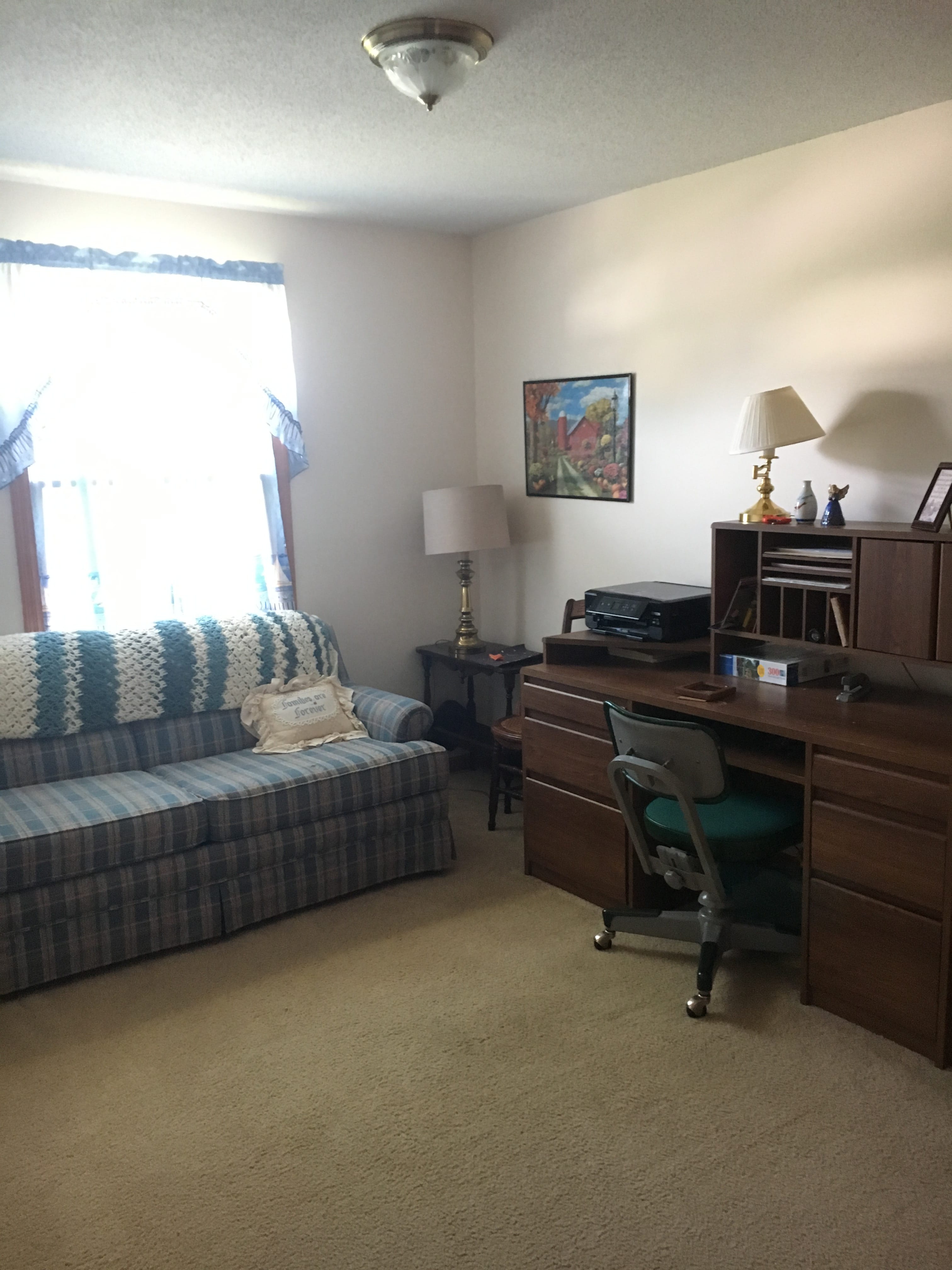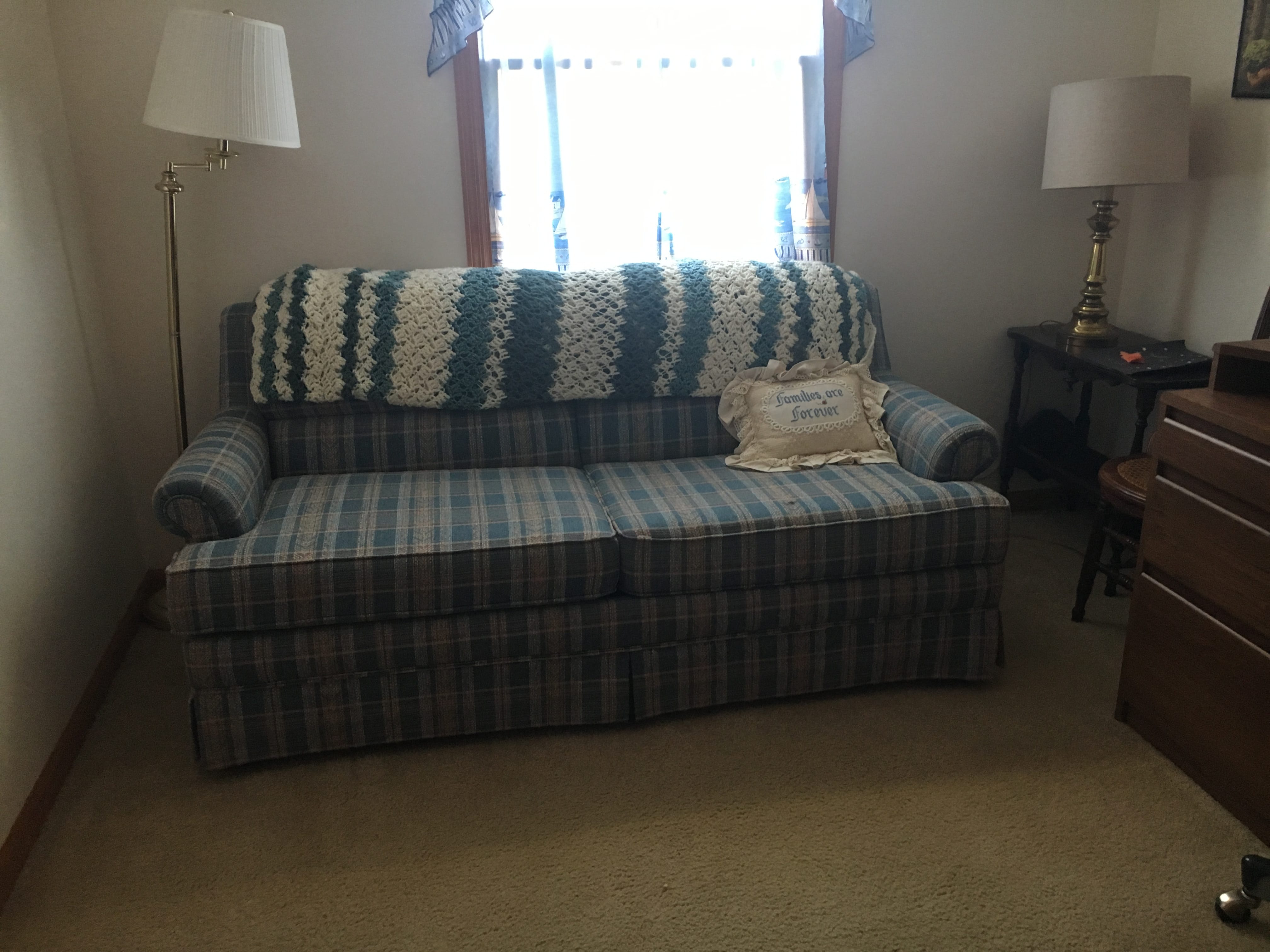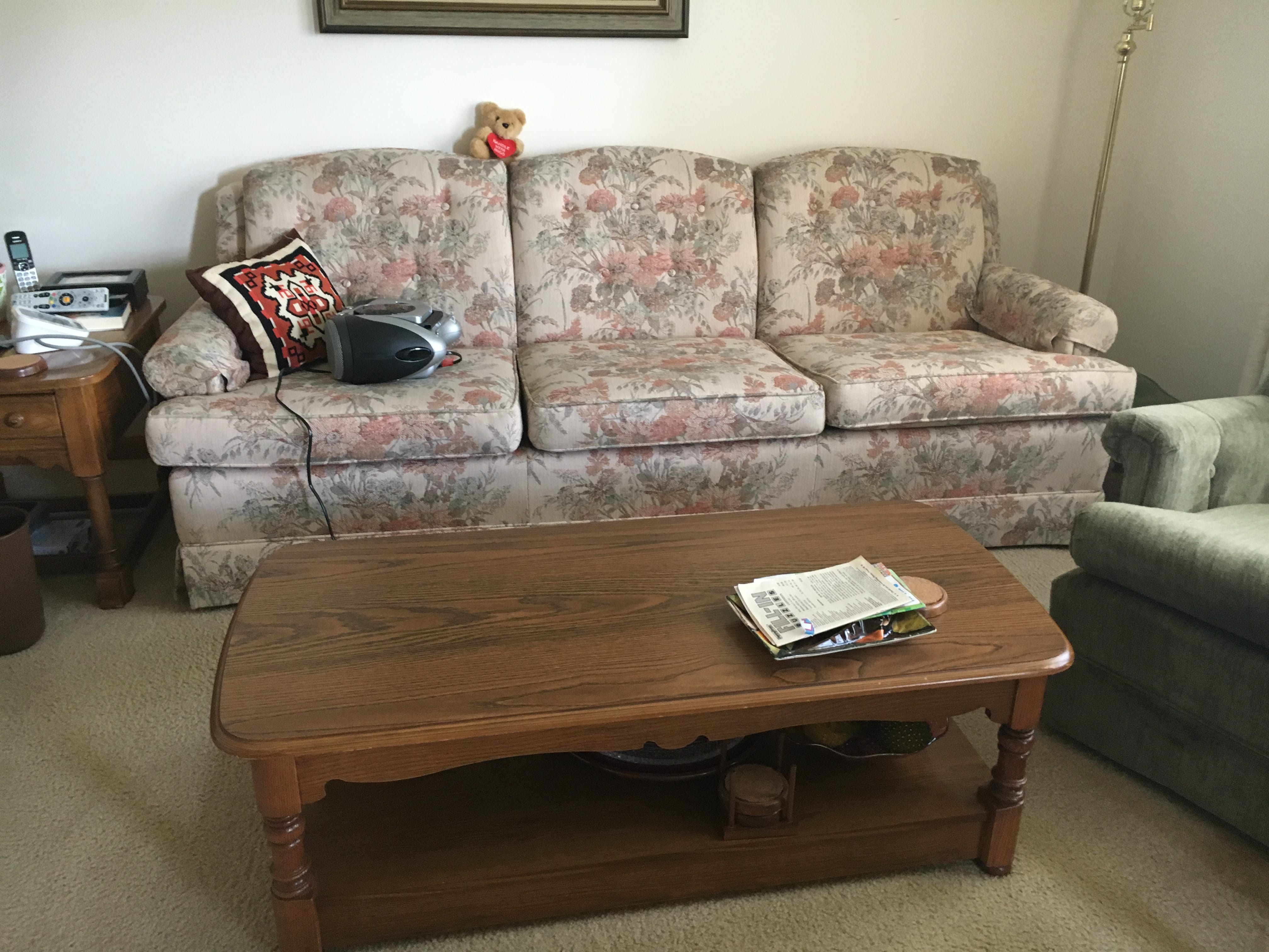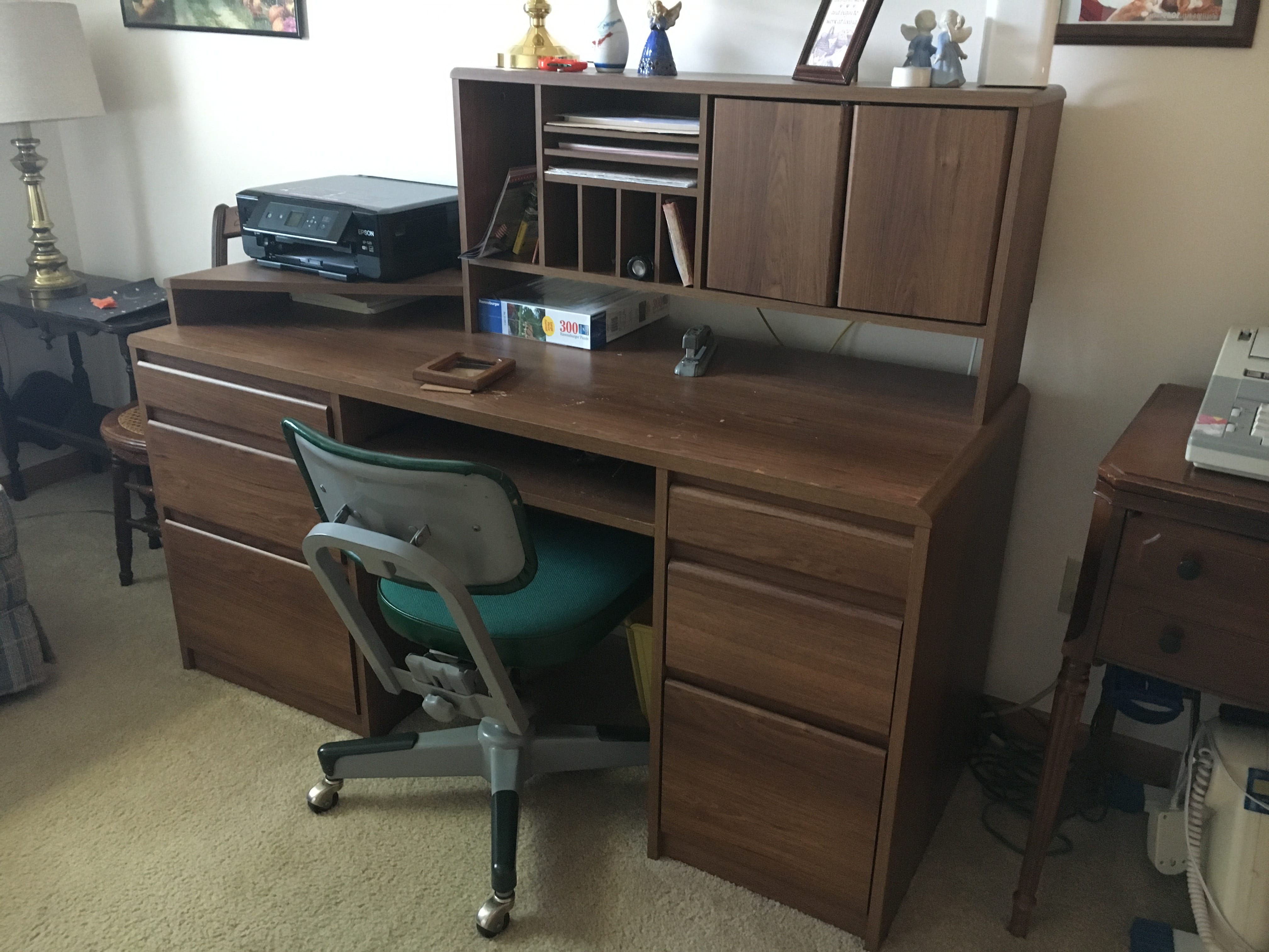 Amana Washing Machine; Frigidaire Refrigerator; Tappan Elec. Stove; Kenmore Elec. Dryer; 3 pc. Bedroom Suite; Recliner; Sofas; Swivel Rockers; Corner Hutch; Entertainment Center; Wood Desks; Two Drawer File Cabinets; 3 Dr. File Cabinet with Storage Cabinet; Office Chair; Coffee & End Tables; Lamps; Card Table & Folding Chairs; Bookshelves; Kitchen Stepstool; Pots, Pans, Dishes, Bakeware, Sm. Appliances; Set of Corelle; Tupperware; Canners; Cookbooks; Dirt Devil Vacuum; Towels, Linens, Bedding & Blankets; Luggage; Home Health Care Items; RCA Flat Screen TV; Epson XP-520 Small-in-one; Puzzles; Books; Home Décor; Pictures & Prints; ANTIQUES: One Drawer Stand; Commode; End Table; Cane Bottom Chairs; Cane Rocker; Retro Office Chair; Wicker Hamper; Picnic Basket; Highchair; Set of Lefton China; Ped. Compotes; Pyrex Pcs.; Egg Dishes; Deep Bowls; Cut Glass; Etched Glass; Smith Corona 450 DKD Typewriter; OUTDOOR: Garden Tools; Garden Hoses; Hand Tools; Hardware; Shelving; Sunbeam Grill; Stack Lawn Chairs; Folding Lawn Chairs; Coolers; Thermos; Flower Pots;