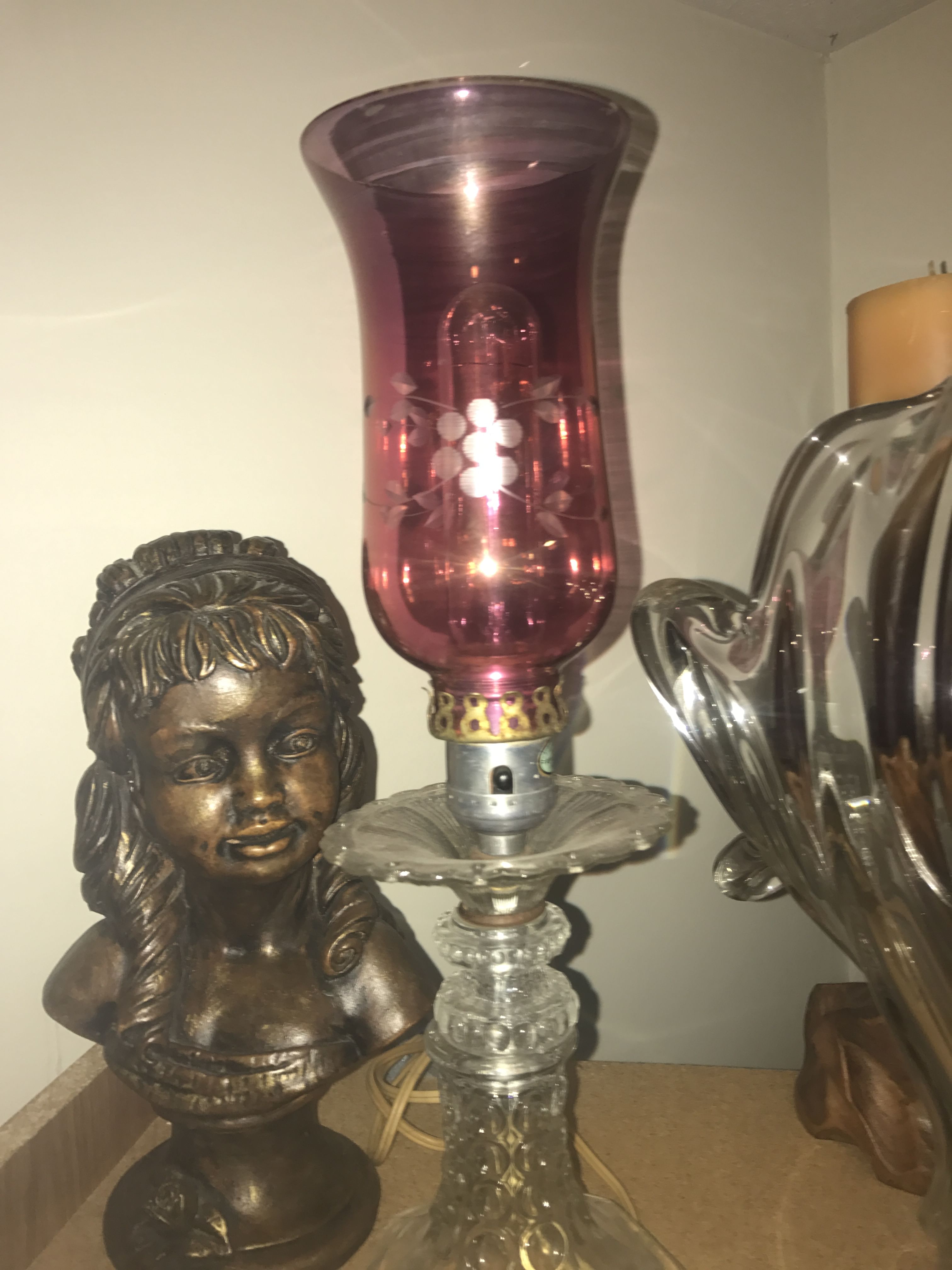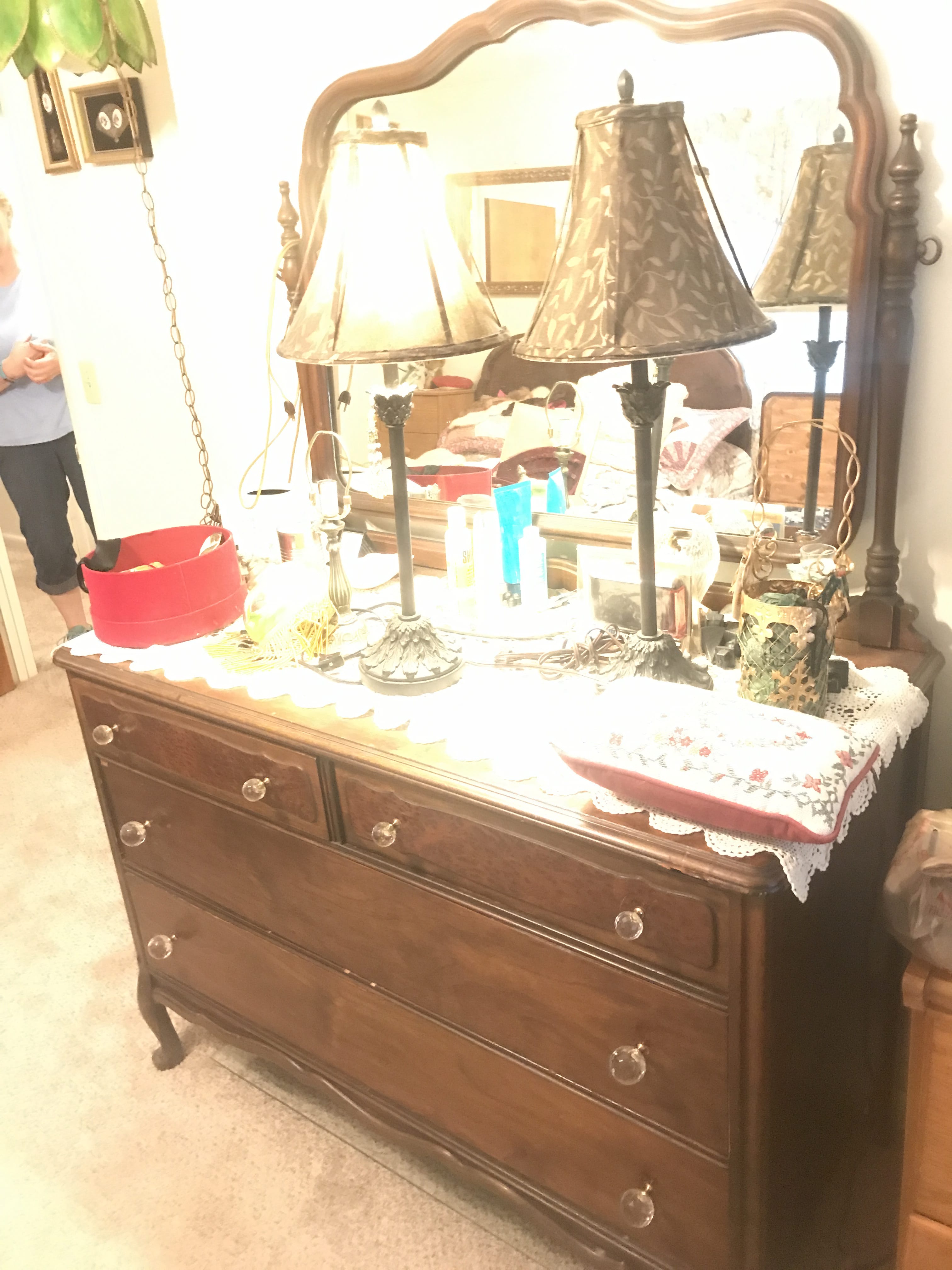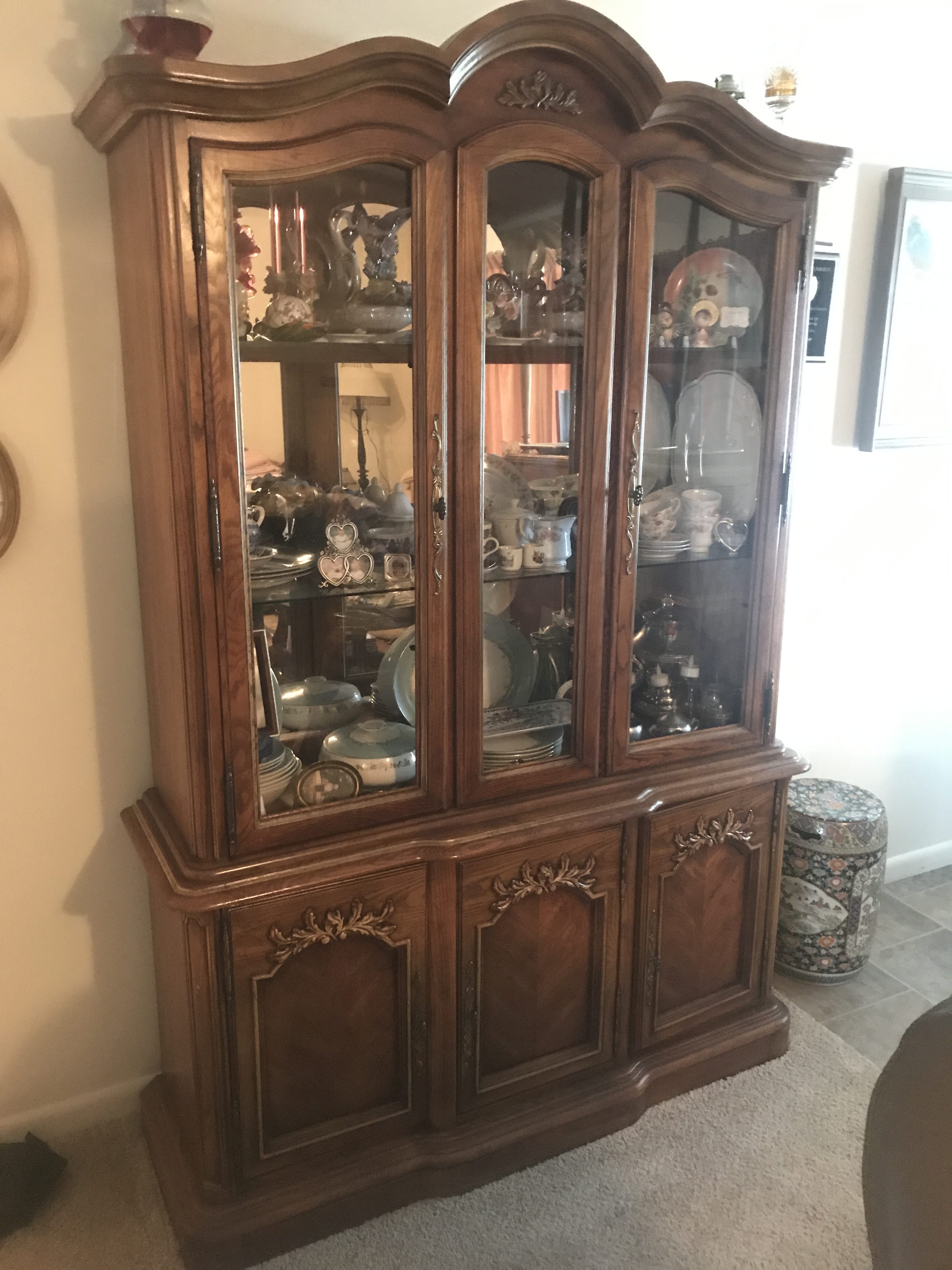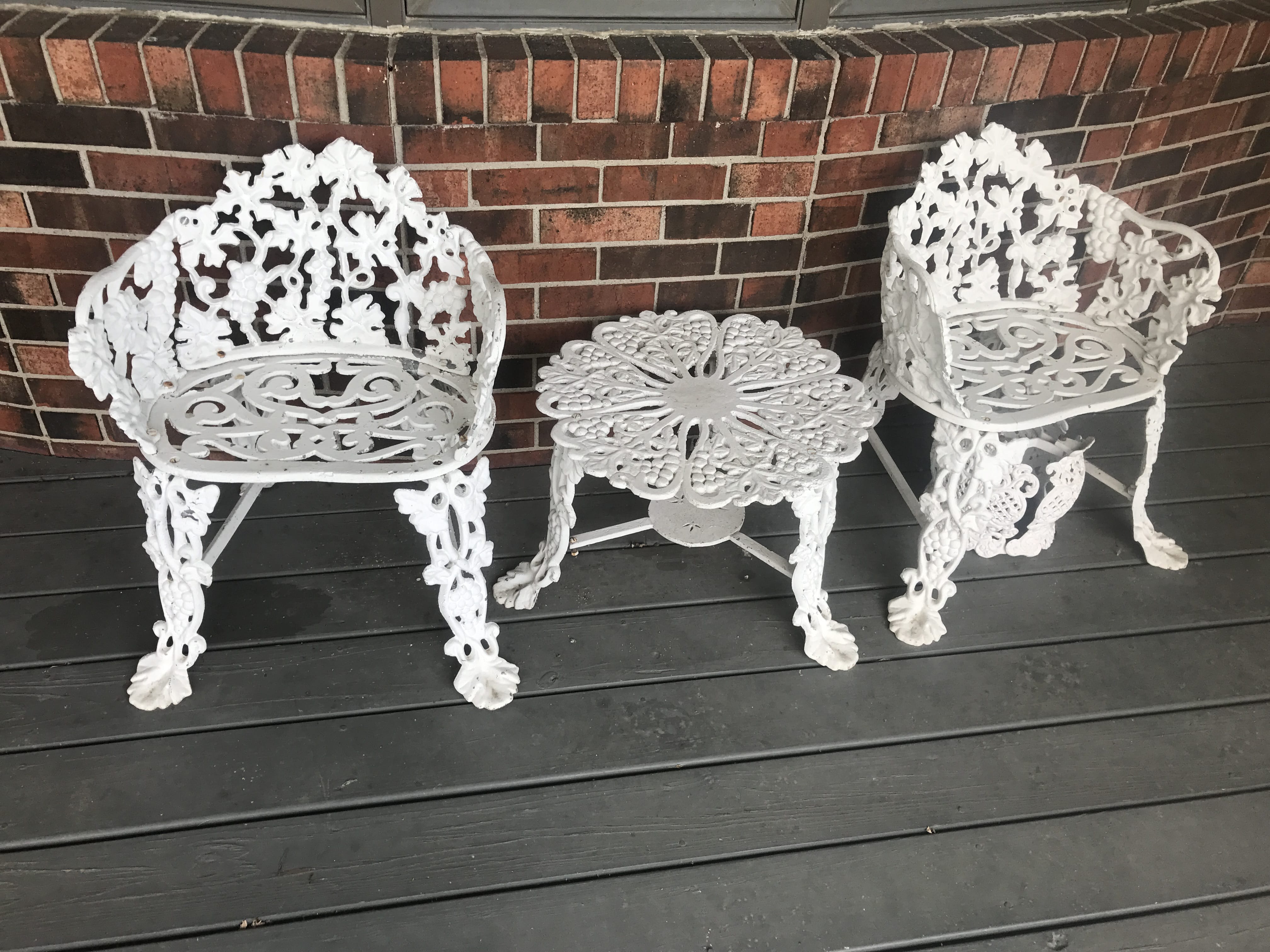 Cast Iron Patio Furniture; Retro Table & Chairs; 3 Pc. Bedroom Suite; Drop Leaf Table; Kitchen Straight Cupboard, British Made Compact Cabinet; Glass Front Hutch; Chest of Drawers; Drum Table; Corner Chair; Quilt Rack; Cedar Chest; Cane Seat Rocker; Hall Tree; Cane Bottom Rocker; Pole Lamp; Ped. Oil Lamps; Cranberry Lusters; Jadeite Salt & Pepper Shakers; Franciscan Apple Set inc. Serving Pcs.; Glass Baskets; Pressed Glass; Milk Glass; Stemware; Japanese Tea Set; Set of China; Cups & Saucers; Figurines; Perfumes; Set of Flatware; Canning Jars; Iron Skillets; Oil Paintings; Pictures & Prints; Barometer; Thermometers; Wood Ironing Board; Wicker Hamper; Rigarmi 6.35mm Handgun;