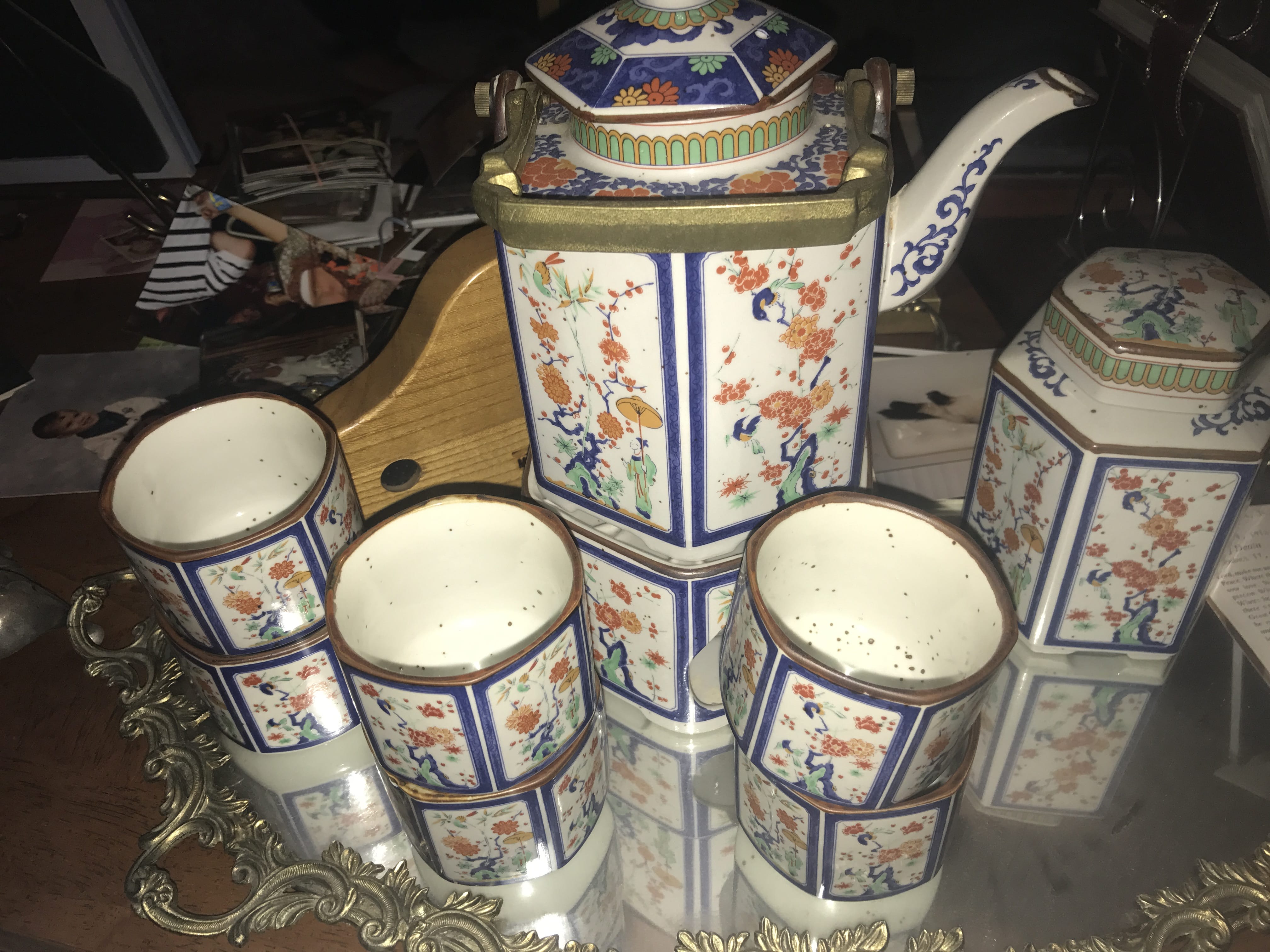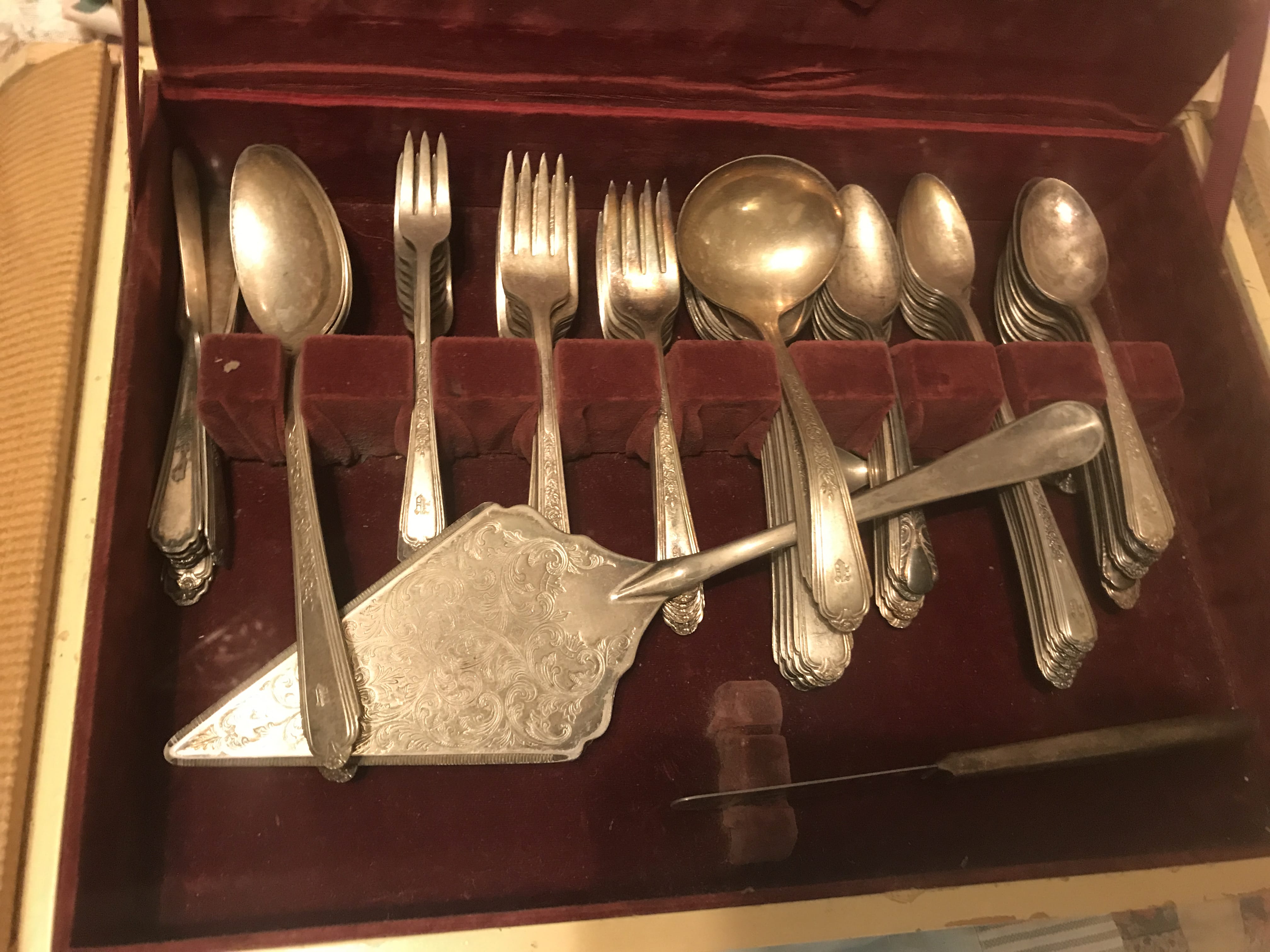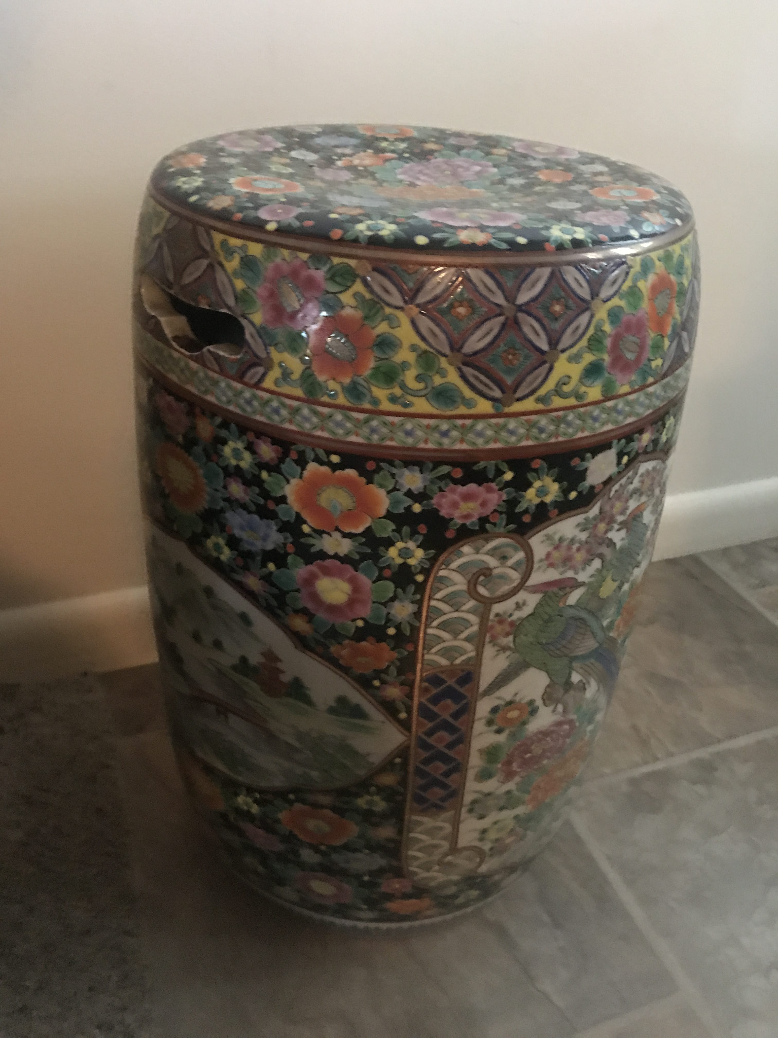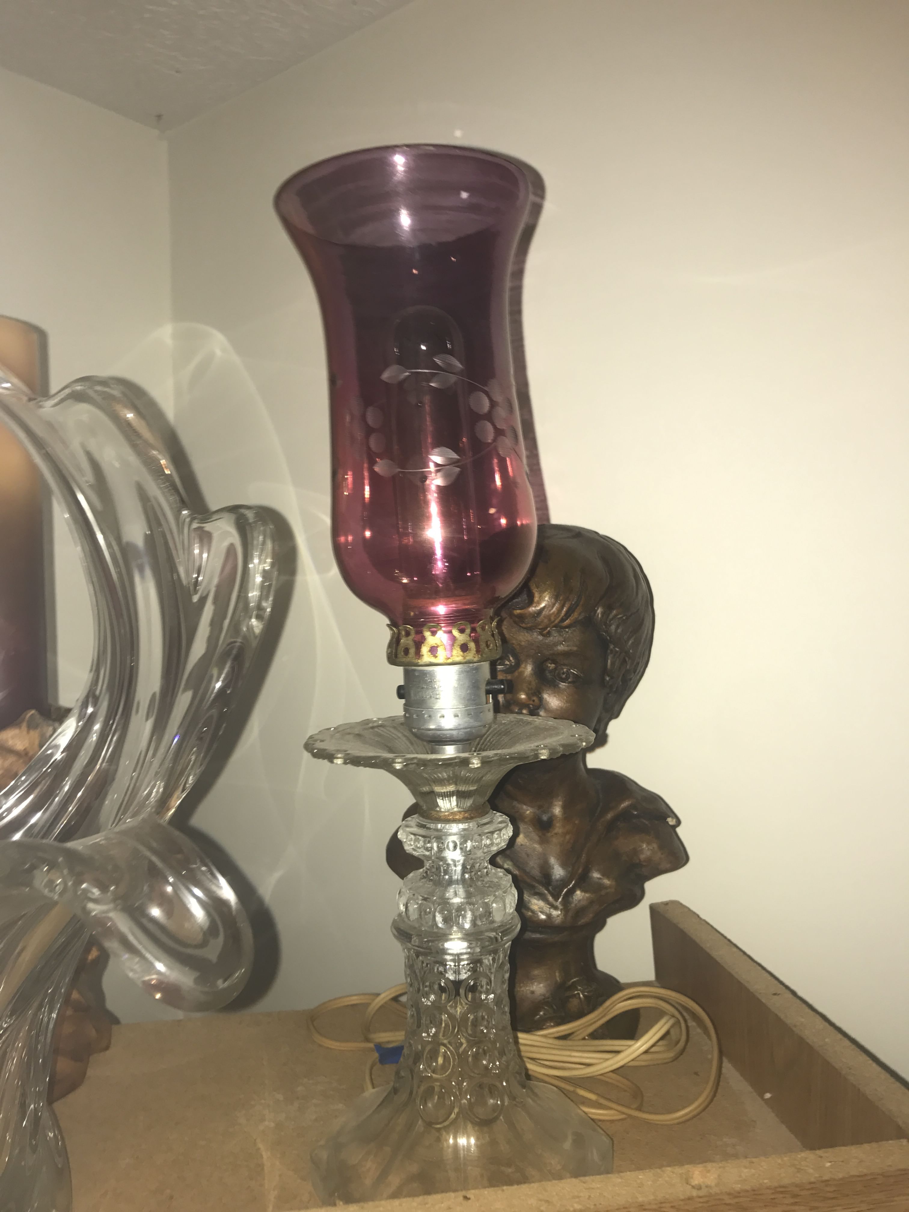 Cast Iron Patio Furniture; Retro Table & Chairs; 3 Pc. Bedroom Suite; Drop Leaf Table; Kitchen Straight Cupboard, British Made Compact Cabinet; Glass Front Hutch; Chest of Drawers; Drum Table; Corner Chair; Quilt Rack; Cedar Chest; Cane Seat Rocker; Hall Tree; Cane Bottom Rocker; Pole Lamp; Ped. Oil Lamps; Cranberry Lusters; Jadeite Salt & Pepper Shakers; Franciscan Apple Set inc. Serving Pcs.; Glass Baskets; Pressed Glass; Milk Glass; Stemware; Japanese Tea Set; Set of China; Cups & Saucers; Figurines; Perfumes; Set of Flatware; Canning Jars; Iron Skillets; Oil Paintings; Pictures & Prints; Barometer; Thermometers; Wood Ironing Board; Wicker Hamper; Rigarmi 6.35mm Handgun;