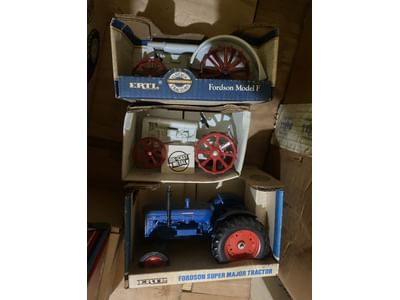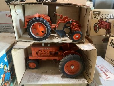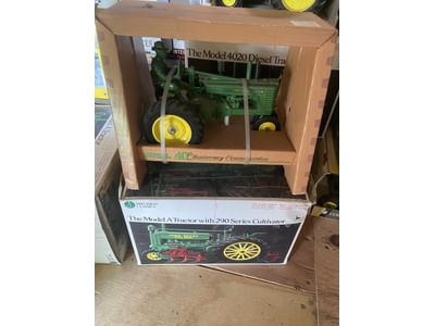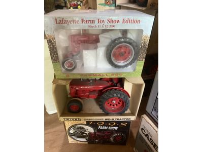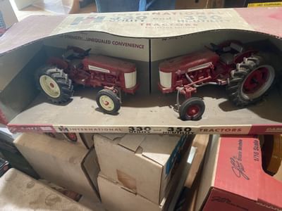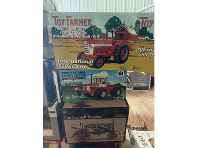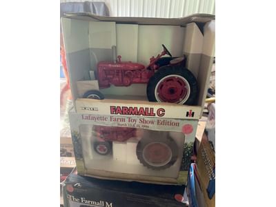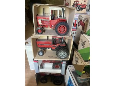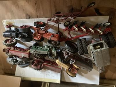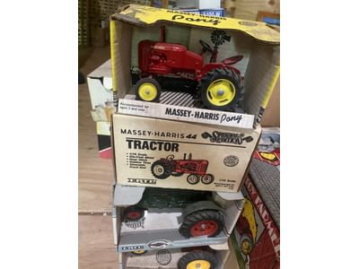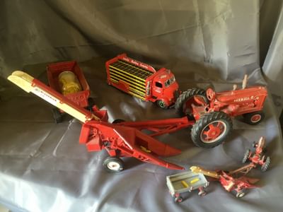 Pedal Tractors inc. Farmall 560; 200+ Diecast Cars & Farm Toys; 10+ 1/8 Scale Farm Toys; Toy Gleaner combine with interchangeable heads; Toy Trains & Sets O & HO Scales; Lionel Tin; 50+ Models; Model Car Hauler w/ Studebaker Cars; Showcases; ADVERTISING SIGNS: Studebaker Service Station; Studebaker Authorized Service Circle Sign; Studebaker Cars & Trucks; Have a Pepsi; Eco Tireflator Meter; 1934 Studebaker Bird Hood Ornament; Hemmings Motor Magazines; Vintage Popular Mechanics Magazines; Vintage Mechanics Illustrated; Life Magazines; Farm Literature & Books; Uncle Henry Pocket Knife w/ Sheath; Milk Can; Popcorn Machine; Curious George Tin; Vintage Bikes;